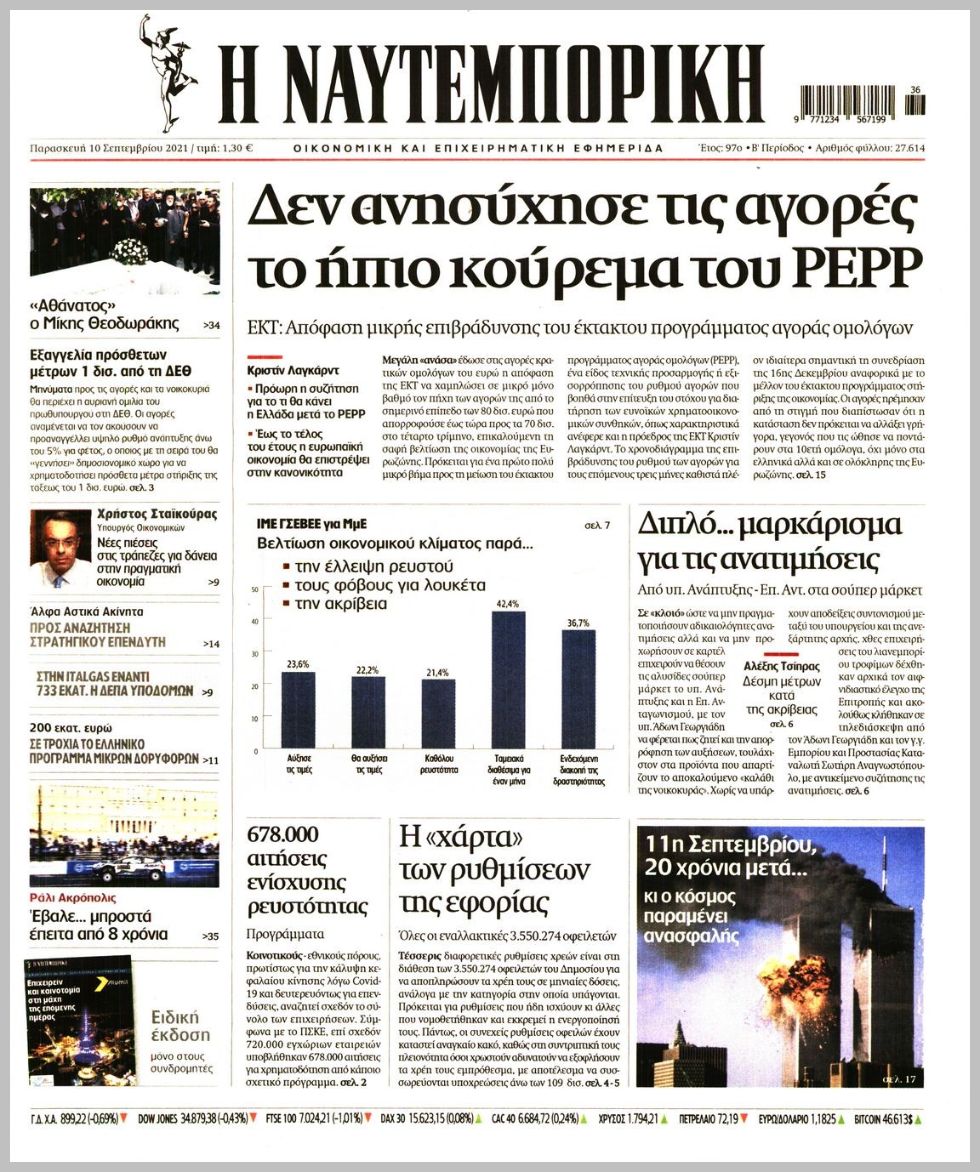 Οι οικονομικές εφημερίδες 10/9/2021 Διονύσης Νίκκας 06:56, Παρασκευή 10 Σεπτεμβρίου 2021 Media Διαβάστε τα πρωτοσέλιδα των οικονομικών εφημερίδων… ΟΙΚΟΝΟΜΙΚΕΣ ΕΦΗΜΕΡΙΔΕΣ Μοιράσου το: σχολίασε κι εσύ (0 σχόλια) Ακολουθήστε το enikos.gr στο Google News και μάθετε πρώτοι όλες τις ειδήσεις Δείτε όλες τις τελευταίες ειδήσεις από την Ελλάδα και τον Κόσμο στο enikos.gr Ειδήσεις Ροή Ειδήσεων 2 ώρες πριν LIVE από Λοριάν: Η ύψωση της ελληνικής σημαίας στην πρώτη φρεγάτα FDI Belharra ΚΙΜΩΝ 2 ώρες πριν Στην Ευελπίδων ο 22χρονος που καταγγέλλει τον Γιώργο Μαζωνάκη για ασελγείς πράξεις – «Έχουμε εμπιστοσύνη στη Δικαιοσύνη, καμία εκβίαση» λέει ο δικηγόρος του 1 ώρα πριν Γαλλία: Η οργή των αγροτών – Αναμένεται η ομιλία του Μακρόν, τα τρακτέρ συγκεντρώνονται μαζικά στις Βρυξέλλες 4 ώρες πριν Συναγερμός και στην Ελλάδα για τη «σούπερ γρίπη»: Πόσο σοβαρή είναι και ποιοι θεωρούνται πιο ευάλωτοι – 3 ειδικοί μιλούν στο enikos.gr 1 ώρα πριν Χριστουγεννιάτικο τραπέζι: Πόσο θα κοστίσει φέτος – Σε ποια είδη τραβούν… την ανηφόρα οι τιμές 5 ώρες πριν Τα 4 ζώδια που λαμβάνουν ένα ισχυρό σημάδι από το σύμπαν – «Αποκαλύπτεται κάτι που μπορεί να αλλάξει τη ζωή μας» 6 ώρες πριν Η σύζυγός του παραπονιέται για τα χρήματα που της δίνει για ψώνια κάθε μήνα – «Λέει ότι νιώθει φτωχή και της είπα να βρει δουλειά» 4 ώρες πριν Αν κάνετε συνεχώς αυτά τα 8 πράγματα με τα κατοικίδιά σας, σας λείπει η ανθρώπινη επαφή 1 ημέρα πριν 20 χρόνια τα Χριστούγεννα ξεκινούν στα Public με μεγάλη ποικιλία σε δώρα! 1 λεπτό πριν Δίκη Βαλυράκη: Καταθέτει ο βασικός αυτόπτης μάρτυρας – «Δέχτηκα πιέσεις να μη μιλήσω, πήγα να ψωνίσω και αυτοκίνητο με χτύπησε στο πόδι» 7 λεπτά πριν Αυτό που κρύβεται κάτω από τη Γροιλανδία θα μπορούσε να ανατρέψει όσα γνωρίζουμε για την άνοδο της στάθμης των θαλασσών 11 λεπτά πριν Parthenis x Papazó & Akylas powered by ΣΚΡΑΤΣ: Το πιο καλαίσθητο act του MadWalk 2025 17 λεπτά πριν Πηγές ΣΥΡΙΖΑ: Η ΝΔ απαξιώνει την Εξεταστική και επιμένει στη συγκάλυψη – Ο επικαιροποιημένος κατάλογος προτεινόμενων μαρτύρων 21 λεπτά πριν Debate Οικονόμου – Σπυρόπουλου στον Realfm 97,8 για τον ΟΠΕΚΕΠΕ, τις αγροτικές κινητοποιήσεις και τον πρωτογενή τομέα ENIKOS NETWORK 100 χρόνια ΠΙΣ: Ένας αιώνας προσφοράς στην Ιατρική και την κοινωνία Ένα ποτήρι την ημέρα από αυτόν τον χυμό μειώνει τη χοληστερίνη, τη φλεγμονή και την πίεση ΑΑΔΕ: Έρχεται το… ΔΕΟΣ – Όλες οι λεπτομέρειες για τον ενιαίο ελεγκτικό μηχανισμό για το οικονομικό έγκλημα e-ΕΦΚΑ: Μέχρι πότε πρέπει να γίνει επιλογή ασφαλιστικής κατηγορίας για το 2026 – Τι πρέπει να γνωρίζετε Χαρτογραφώντας το «σημείο χωρίς επιστροφή»: Για πρώτη φορά αποκαλύπτεται με λεπτομέρεια το ακανθώδες όριο της ατμόσφαιρας τ... Η Google καταργεί τη λειτουργία «dark web report» – Πώς θα μπορούν οι χρήστες να διαγράφουν τα δεδομένα τους περισσότερα 08:00 , Πέμπτη 18 Δεκεμβρίου 2025 Την Κυριακή με τη Realnews: Δωροεπιταγή 10€ Δωροεπιταγή αξίας 10€ για αγορές άνω των 60€ από τα πολυκαταστήματα FactoryOutlet H προσφορά ι... 07:50 , Πέμπτη 18 Δεκεμβρίου 2025 «Το σόι σου»: Backstage στα γυρίσματα για το εορταστικό επεισόδιο «Το σόι σου» φορά τα γιορτινά του για τα Χριστούγεννα και η Όλγα Λαφαζάνη, με την κάμερα του «... 07:36 , Πέμπτη 18 Δεκεμβρίου 2025 Οι αθλητικές μεταδόσεις 18/12/2025 – Πού θα δείτε τον αγώνα της ΑΕΚ με την Κραϊόβα για το Conference League Τα ματς ΑΕΚ – Ουνιβερσιτάτεα Κραϊόβα για το Conference League και Παναθηναϊκός – Χάποελ Τελ Αβ... 05:48 , Πέμπτη 18 Δεκεμβρίου 2025 Οι οικονομικές εφημερίδες 18/12/2025 Διαβάστε τα 