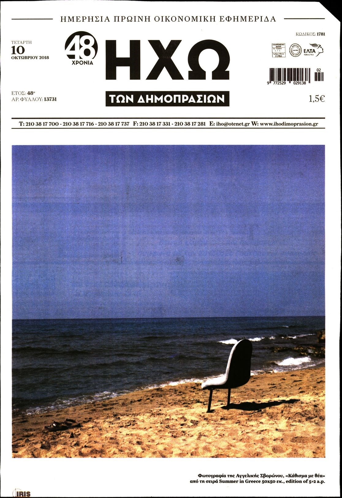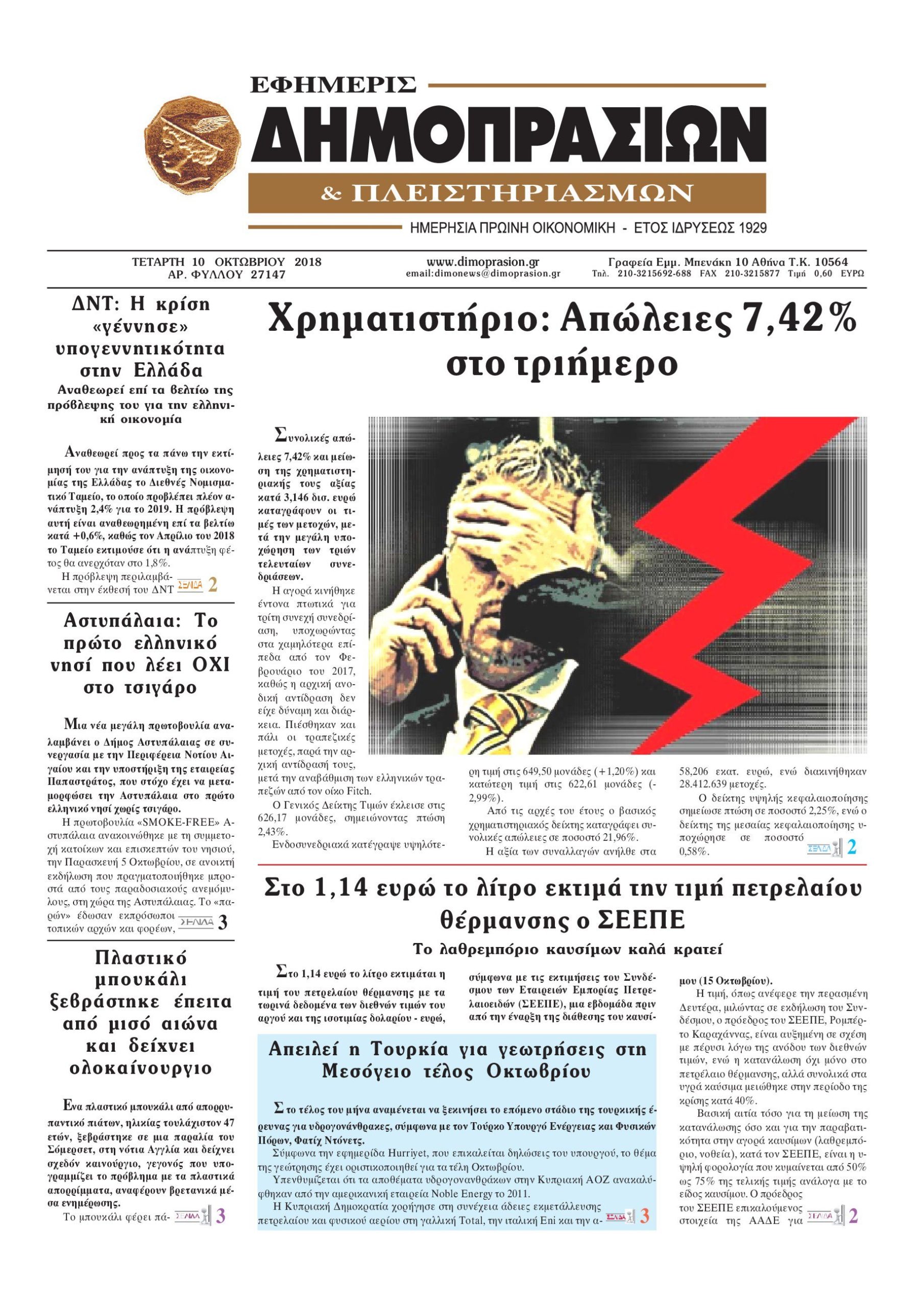 Οι οικονομικές εφημερίδες 10/10/18 Enikos Newsroom 06:39, Τετάρτη 10 Οκτωβρίου 2018 Media Διαβάστε τα πρωτοσέλιδα: ΟΙΚΟΝΟΜΙΚΕΣ ΕΦΗΜΕΡΙΔΕΣ ΠΡΩΤΟΣΕΛΙΔΑ Μοιράσου το: σχολίασε κι εσύ (0 σχόλια) Ακολουθήστε το enikos.gr στο Google News και μάθετε πρώτοι όλες τις ειδήσεις Δείτε όλες τις τελευταίες ειδήσεις από την Ελλάδα και τον Κόσμο στο enikos.gr Ειδήσεις Ροή Ειδήσεων 1 ώρα πριν Ευρωπαϊκή Ένωση: Συμφωνία για δάνειο 90 δισ. ευρώ στην Ουκρανία τη διετία 2026-2027 6 ώρες πριν ΟΠΕΚΕΠΕ: Προφυλακιστέος ο φερόμενος αρχηγός και ο λογιστής της εγκληματικής οργάνωσης 7 ώρες πριν Αυξάνουν την πίεση προς την κυβέρνηση οι αγρότες: Κλείνουν παρακαμπτήριους και ανοίγουν διόδια – Τι θα γίνει τις γιορτές 7 ώρες πριν Φοινικούντα: Το Σάββατο απολογείται ο 30χρονος γιος γνωστού επιχειρηματία της Πλάκας που παραδόθηκε – Όσα είπε στους αστυνομικούς και ο ρόλος του στο έγκλημα 5 ώρες πριν ΑΕΚ – Κραϊόβα 3-2: Επική ανατροπή και πρόκριση στους «16» του Conference League η Ένωση 6 ώρες πριν Αρχαιολόγοι ανακάλυψαν ρωμαϊκά τεχνουργήματα από μια πόλη που δεν υπήρξε ποτέ – Τα τρία εντυπωσιακά κτίρια και ο αμφορέας με τις… σαρδέλες 7 ώρες πριν Ύπνος: Η απλή βραδινή ρουτίνα για να προστατεύσετε τα μαλλιά σας από το κρύο κατά τη διάρκεια του χειμώνα 8 ώρες πριν Manifesting: Πώς να συναντήσετε τον σύντροφο της ζωής σας, ανάλογα με τον μήνα γέννησής σας 2 ημέρες πριν 20 χρόνια τα Χριστούγεννα ξεκινούν στα Public με μεγάλη ποικιλία σε δώρα! 5 λεπτά πριν Εφημερεύοντα φαρμακεία σε Αθήνα και Θεσσαλονίκη (19/12) 11 λεπτά πριν Η TikTok στις ΗΠΑ πωλείται σε Oracle, Silver Lake και MGX – Οι λεπτομέρειες του «deal» 20 λεπτά πριν Αλεξάντερ Λουκασένκο: Η Λευκορωσία βρίσκεται κοντά στην αποκατάσταση των σχέσεών της με τις ΗΠΑ 35 λεπτά πριν Αυστραλία: Κήρυξε την Κυριακή (21/12) ημέρα εθνικού πένθους για τη φονική επίθεση στην παραλία Μπόνταϊ 45 λεπτά πριν Ρόδος: Δάσκαλος καράτε καταδικάστηκε για ασέλγεια σε ανήλικες αθλήτριες – Μαρτυρίες για αγγίγματα σε ευαίσθητα σημεία ENIKOS NETWORK Σε περίοδο αυξημένης δραστηριότητας η γρίπη στην Ελλάδα-Μέτρα προστασίας από τον ΕΟΔΥ Σκέφτεστε συνέχεια συζητήσεις που έχετε κάνει; Τι σημαίνει αυτό, σύμφωνα με ειδικό Στεγαστικό: Τι λέει η ΠΟΜΙΔΑ για τα νέα μέτρα που ανακοίνωσε ο Κυριάκος Μητσοτάκης Λαγκάρντ: Αισιόδοξη για την ανάπτυξη της Ευρωζώνης, αβέβαιη για τον πληθωρισμό Χαρτογραφώντας το «σημείο χωρίς επιστροφή»: Για πρώτη φορά αποκαλύπτεται με λεπτομέρεια το ακανθώδες όριο της ατμόσφαιρας τ... Η Google καταργεί τη λειτουργία «dark web report» – Πώς θα μπορούν οι χρήστες να διαγράφουν τα δεδομένα τους περισσότερα 02:50 , Παρασκευή 19 Δεκεμβρίου 2025 GNTM: «Κλείδωσαν» οι τέσσερις φιναλίστ – Μεγάλη ανατροπή στις τελευταίες αποχωρήσεις Για προτελευταία φορά εμφανίστηκαν στο πλατό του GNTM οι φιναλίστ του φετινού κύκλου, το βράδυ... 17:45 , Πέμπτη 18 Δεκεμβρίου 2025 ROUK ZOUK: Εορταστικό επεισόδιο με καλεσμένους τους πρωταγωνιστές του «Γιατί ρε πατέρα» Το Σάββατο 20 Δεκεμβρίου στις 21:00, η Ζέτα Μακρυπούλια υποδέχεται εκλεκτούς ηθοποιούς που όλο... 17:20 , Πέμπτη 18 Δεκεμβρίου 2025 Άγιος έρωτας: Η Χριστίνα εξομολογείται στον πατέρα Νικόλαο, απόψε στις 21:00 στον Alpha Η Νότα αποφασίζει να εκδικηθεί τον Πέτρο και τον Στέφανο, για χάρη του Λούη, όμως τα πράγματα ... 16:50 , Πέμπτη 18 Δεκεμβρίου 2025 Να μ’ αγαπάς: Ζωή και Φωτεινή συμφιλιώνονται ως μάνα με κόρη, απόψε στις 20:00 Η ταυτότητα του Άγγελου αποκαλύπτεται στο νέο επεισόδιο της σειράς “Να μ’ αγαπάς... ΤΕΛΕΥΤΑΙΕΣ ΕΙΔΗΣΕΙΣ 5 λεπτά πριν Εφ