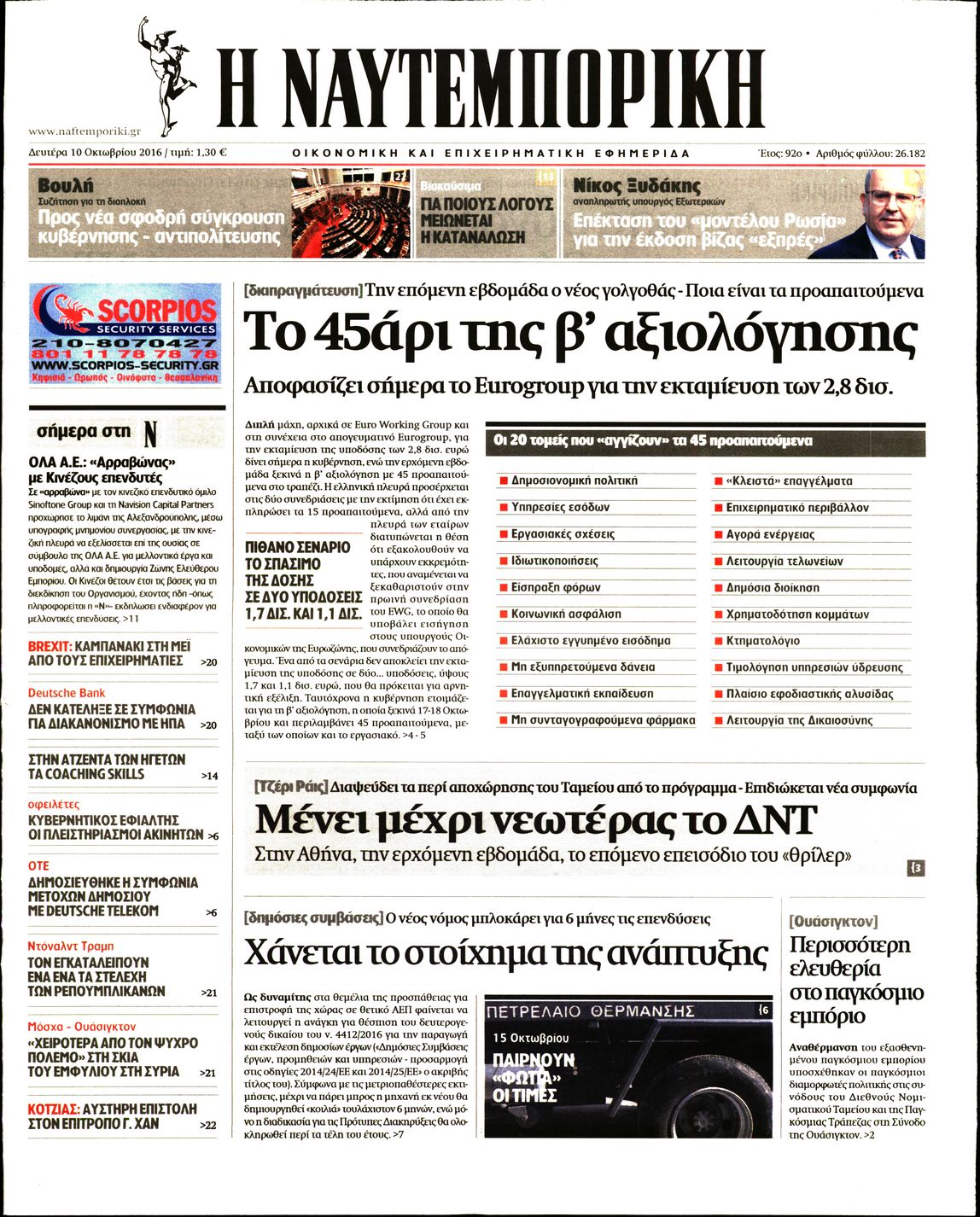 Οι οικονομικές εφημερίδες 10/10/2016 Enikos Newsroom 06:49, Δευτέρα 10 Οκτωβρίου 2016 Media Διαβάστε τα σημερινά πρωτοσέλιδα των οικονομικών εφημερίδων: ΟΙΚΟΝΟΜΙΚΕΣ ΕΦΗΜΕΡΙΔΕΣ ΠΡΩΤΟΣΕΛΙΔΑ Μοιράσου το: σχολίασε κι εσύ (0 σχόλια) Ακολουθήστε το enikos.gr στο Google News και μάθετε πρώτοι όλες τις ειδήσεις Δείτε όλες τις τελευταίες ειδήσεις από την Ελλάδα και τον Κόσμο στο enikos.gr Ειδήσεις Ροή Ειδήσεων 8 ώρες πριν Μητσοτάκης: Αναγκαία η μεταρρύθμιση του πρωτογενούς τομέα – Τα 6 νέα μέτρα για το στεγαστικό και οι αναφορές σε «Ιθάκη» και «πολιτικούς του καναπέ» 7 ώρες πριν Δάνεια σε ελβετικό φράγκο: Τα βασικά σημεία της ρύθμισης – ανάσας για 40.000 δανειολήπτες – Αναλυτικός οδηγός με ερωτήσεις και απαντήσεις 7 ώρες πριν Κυψέλη: Εξιτήριο πήρε η 14χρονη μαθήτρια που μαχαιρώθηκε από την 16χρονη σε σχολείο – «Θέλω να βοηθήσω το παιδί, έχει μπλέξει με κακές παρέες» 6 ώρες πριν Τραμπ: Γιατί κατέθεσε τώρα την αγωγή κατά του BBC – Πώς η κίνησή του εξυπηρετεί το νέο δόγμα του για «αντίσταση» στην Ευρώπη, υπέρ των συντηρητικών 7 ώρες πριν ΟΠΕΚΕΠΕ – Παράνομες επιδοτήσεις: Ελεύθεροι με περιοριστικούς όρους και οι 7 κατηγορούμενοι που απολογήθηκαν σήμερα 6 ώρες πριν Ανακαλύφθηκε βυθισμένη πέτρινη κατασκευή ανοιχτά της Κριμαίας – Αποτελεί μέρος αρχαίας ελληνικής αποικίας 7 ώρες πριν Ύπνος: Αυτό μπορεί να είναι το χειρότερο λάθος για το βιολογικό ρολόι σας, σύμφωνα με ειδικό 8 ώρες πριν Αριθμολογία: Οι άνθρωποι που έχουν γεννηθεί αυτές τις 3 ημερομηνίες, προσελκύουν μεγάλη τύχη πριν από το τέλος του 2025 10 ώρες πριν Οι 7 συμπεριφορές που μαρτυρούν ότι ένας άνδρας επενδύει μακροπρόθεσμα σε μια σχέση 3 λεπτά πριν Κόστα Ρίκα: Το Κογκρέσο απέρριψε το αίτημα για άρση της ασυλίας του προέδρου Τσάβες 11 λεπτά πριν Κολομβία: Νεκροί τέσσερις αστυνομικοί σε βομβιστικές επιθέσεις ανταρτών 19 λεπτά πριν Στάση εργασίας 11:00 – 17:00 σήμερα στα λεωφορεία του ΟΑΣΑ – Ποιες γραμμές θα λειτουργήσουν 35 λεπτά πριν Παλαιστινιακό: «Η λύση των δύο κρατών είναι ο μόνος βιώσιμος δρόμος», τόνισε η Ελλάδα στο Συμβούλιο Ασφαλείας του ΟΗΕ 42 λεπτά πριν Ελένη Καρακάση: «Ένιωθα πολύ αδικημένη, δεν μπορούσα να ελέγξω τον εαυτό μου σε δύσκολες στιγμές» ENIKOS NETWORK Αίτημα ΙΣΑ για την εξαίρεση των προσωπικών γιατρών από τις κατ’ οίκον επισκέψεις Η σκανδιναβική μέθοδος στον ύπνο που μπορεί να σώσει έναν γάμο Πιερρακάκης: Ο προϋπολογισμός συμβάλλει ουσιαστικά στην ενίσχυση της αγοραστικής δύναμης της πλειονότητας των εργαζομένων e-ΕΦΚΑ: Παρατείνεται η προθεσμία για την υποβολή ΑΠΔ – Ποιους αφορά Σύγχρονος Νοστράδαμος: Προειδοποιεί για «μεγάλο γεγονός» τους επόμενους μήνες που θα συγκλονίσει τη Βρετανία και τον κόσμο Τεστ παρατηρητικότητας: Μπορείτε να βρείτε τις 3 διαφορές στις εικόνες με έναν πιγκουίνο σε 14 δευτερόλεπτα περισσότερα 20:06 , Τρίτη 16 Δεκεμβρίου 2025 Ο ΣΚΑΙ καταγγέλλει τον ΕΚΚΟΜΕΔ Επιστολή με την οποία καταγράφει την έντονη διαμαρτυρία του προς τον διευθύνοντα σύμβουλο του... 17:40 , Τρίτη 16 Δεκεμβρίου 2025 Eurovision: Στις 4 Ιανουαρίου αποκαλύπτονται τα 28 τραγούδια του ελληνικού τελικού Η αγωνία τελειώνει, η γιορτή της Eurovision αρχίζει στην ΕΡΤ από τις πρώτες ημέρες της νέας χρ... 17:09 , Τρίτη 16 Δεκεμβρίου 2025 Alter Ego Media: Βαθύτατη θλίψη και ειλικρινή συλλυπητήρια για την απώλεια της Ειρήνης Μαρινάκη Τη βαθύτατη θλίψη και τα ειλικρινή συλλυπητήριά της εκφράζει η Alter Ego Media για τον θάνατο ... 13:00 , Τρίτη 16 Δεκεμβρίου 2025 «Στο Παρά Πέντε – 20 Χρόνια Μ