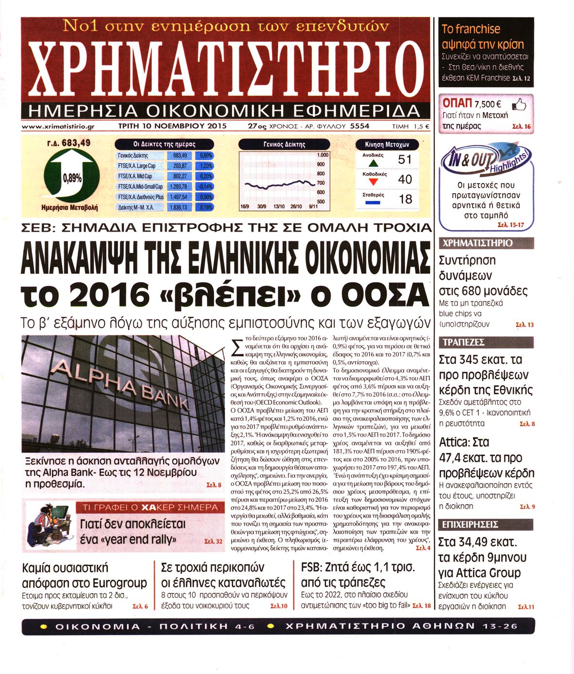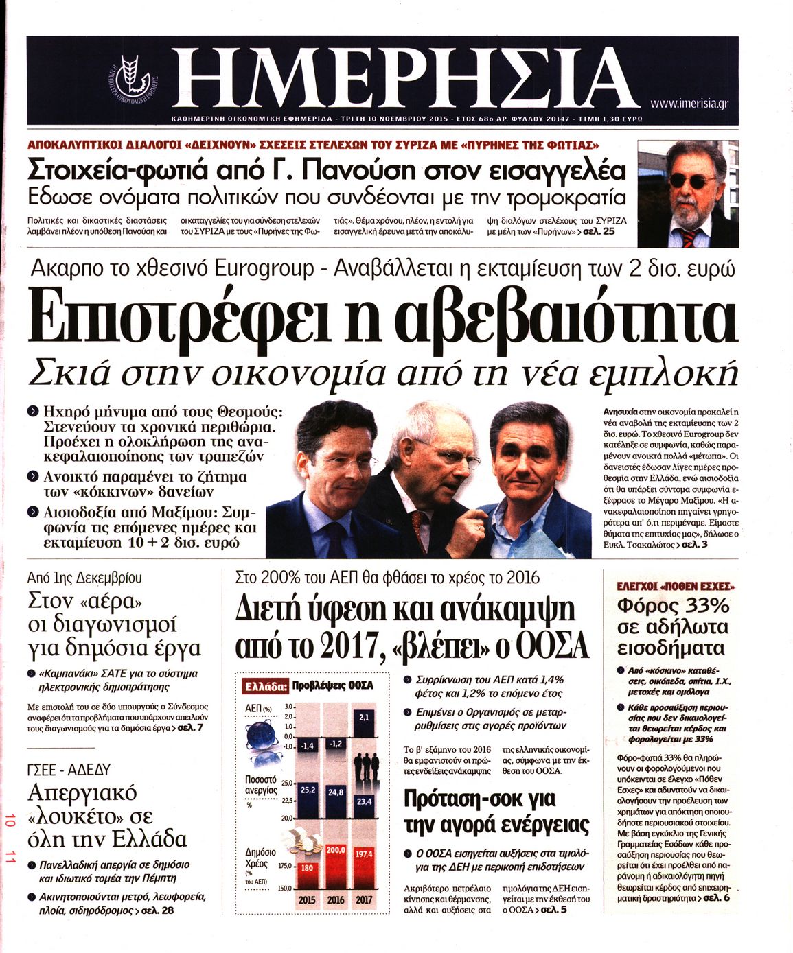 Οι οικονομικές εφημερίδες 10/11/2015 Enikos Newsroom 06:19, Τρίτη 10 Νοεμβρίου 2015 Media Διαβάστε τα σημερινά πρωτοσέλιδα των οικονομικών εφημερίδων: ΟΙΚΟΝΟΜΙΚΕΣ ΕΦΗΜΕΡΙΔΕΣ ΠΡΩΤΟΣΕΛΙΔΑ Μοιράσου το: σχολίασε κι εσύ (0 σχόλια) Ακολουθήστε το enikos.gr στο Google News και μάθετε πρώτοι όλες τις ειδήσεις Δείτε όλες τις τελευταίες ειδήσεις από την Ελλάδα και τον Κόσμο στο enikos.gr Ειδήσεις Ροή Ειδήσεων 18 λεπτά πριν Αγρότες: «Όχι στον διάλογο, μας εμπαίζει η κυβέρνηση» – Αποφάσισαν κλιμάκωση των κινητοποιήσεων 45 λεπτά πριν Την πρώτη Belharra παρέλαβε η χώρα μας, υψώθηκε η ελληνική σημαία στη φρεγάτα «Κίμων» – Δένδιας: «Το ισχυρότερο Πολεμικό Ναυτικό που είχε ποτέ ο ελληνισμός» 3 ώρες πριν Γιώργος Μαζωνάκης: «Δεν ζήτησα χρήματα, παρά μόνο ηθική δικαίωση» – Οι πρώτες δηλώσεις του 21χρονου μετά την κατάθεση της μήνυσης 2 ώρες πριν Δίκη Βαλυράκη: Καταθέτει ο βασικός αυτόπτης μάρτυρας – «Δέχτηκα πιέσεις να μη μιλήσω, πήγα να ψωνίσω και αυτοκίνητο με χτύπησε στο πόδι» 7 ώρες πριν Συναγερμός και στην Ελλάδα για τη «σούπερ γρίπη»: Πόσο σοβαρή είναι και ποιοι θεωρούνται πιο ευάλωτοι – 3 ειδικοί μιλούν στο enikos.gr 1 ώρα πριν Τα 5 ζώδια που θα ευνοηθούν στα οικονομικά τους το 2026 – «Τραβούν το χρήμα σαν μαγνήτες» 6 ώρες πριν Αν κάνετε συνεχώς αυτά τα 8 πράγματα με τα κατοικίδιά σας, σας λείπει η ανθρώπινη επαφή 2 ώρες πριν Αυτό που κρύβεται κάτω από τη Γροιλανδία θα μπορούσε να ανατρέψει όσα γνωρίζουμε για την άνοδο της στάθμης των θαλασσών 1 ημέρα πριν 20 χρόνια τα Χριστούγεννα ξεκινούν στα Public με μεγάλη ποικιλία σε δώρα! 2 λεπτά πριν Μιχάλης Χουρδάκης: «Είμαι διαθέσιμος να συμβάλω στην προσωρινή κάλυψη του ιατρείου της Ψερίμου» – Η επιστολή στον Άδωνι Γεωργιάδη 7 λεπτά πριν Κουίζ για την παλιά Αθήνα: Αναγνωρίζετε την περιοχή; Είναι από τις πιο γνωστές 13 λεπτά πριν Λάμπρος Κωνσταντάρας για τα φετινά Χριστούγεννα: «Θα είναι πάρα πολύ δύσκολα, γιατί θα είναι τα πρώτα χωρίς τον πατέρα μου» 18 λεπτά πριν Αγρότες: «Όχι στον διάλογο, μας εμπαίζει η κυβέρνηση» – Αποφάσισαν κλιμάκωση των κινητοποιήσεων 21 λεπτά πριν Να μ’ αγαπάς: Ζωή και Φωτεινή συμφιλιώνονται ως μάνα με κόρη, απόψε στις 20:00 ENIKOS NETWORK 100 χρόνια ΠΙΣ: Ένας αιώνας προσφοράς στην Ιατρική και την κοινωνία Ένα ποτήρι την ημέρα από αυτόν τον χυμό μειώνει τη χοληστερίνη, τη φλεγμονή και την πίεση Κρατική επιχορήγηση έως 14.500 ευρώ: Ποιοι θα λάβουν από σήμερα την προκαταβολή στον τραπεζικό λογαριασμό τους Αυτόματη απόδοση ΦΠΑ: Τα δύο σενάρια που επεξεργάζεται η ΑΑΔΕ Χαρτογραφώντας το «σημείο χωρίς επιστροφή»: Για πρώτη φορά αποκαλύπτεται με λεπτομέρεια το ακανθώδες όριο της ατμόσφαιρας τ... Η Google καταργεί τη λειτουργία «dark web report» – Πώς θα μπορούν οι χρήστες να διαγράφουν τα δεδομένα τους περισσότερα 16:50 , Πέμπτη 18 Δεκεμβρίου 2025 Να μ’ αγαπάς: Ζωή και Φωτεινή συμφιλιώνονται ως μάνα με κόρη, απόψε στις 20:00 Η ταυτότητα του Άγγελου αποκαλύπτεται στο νέο επεισόδιο της σειράς “Να μ’ αγαπάς... 15:52 , Πέμπτη 18 Δεκεμβρίου 2025 Το Σπίτι Δίπλα Στο Ποτάμι: Το καθηλωτικό τελευταίο επεισόδιο για το 2025 απόψε στις 22:30 Καθηλώνει το σημερινό επεισόδιο της σειράς “Το Σπίτι Δίπλα Στο Ποτάμι” που έρχεται... 15:20 , Πέμπτη 18 Δεκεμβρίου 2025 Άγιος έρωτας – Η Ελευθερία Αρβανιτάκη τραγουδά και ο Γιάννης Τσορτέκης καθηλώνει με τον χορό του Ο Κλεάνθης χορεύει στους ήχους της Ελευθερίας Αρβανιτάκη στη σειρά “Άγιος Έρωτας“.... 08:00 , Πέμπτη 18 Δεκεμβρίου 2025 Την Κυριακή με τη Realnews: Δωροεπιταγ