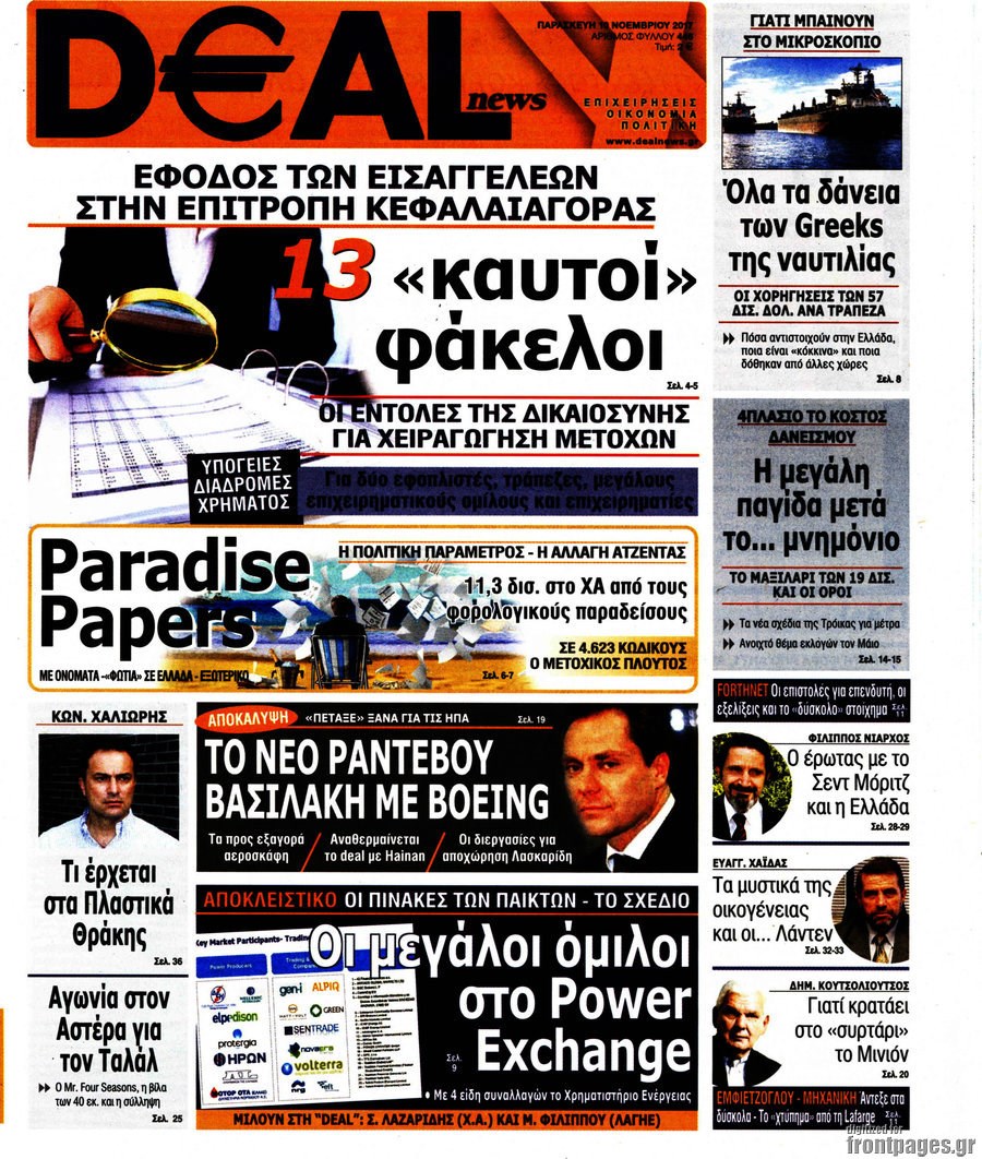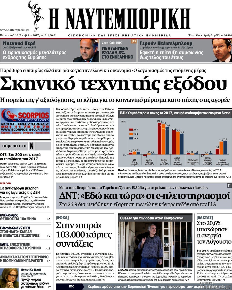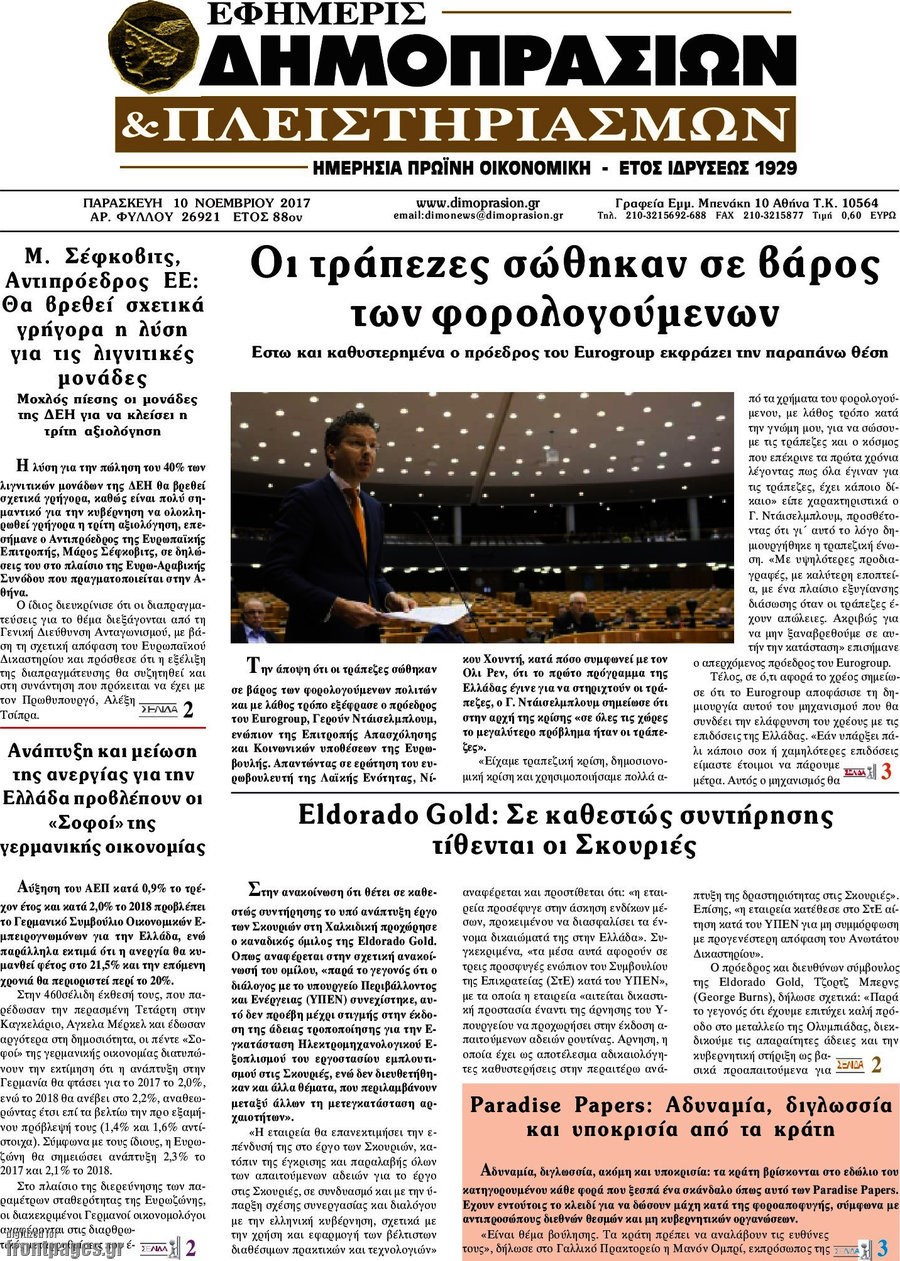 Οι οικονομικές εφημερίδες 10/11/2017 Enikos Newsroom 07:42, Παρασκευή 10 Νοεμβρίου 2017 Media Διαβάστε τα σημερινά πρωτοσέλιδα των οικονομικών εφημερίδων: ΟΙΚΟΝΟΜΙΚΕΣ ΕΦΗΜΕΡΙΔΕΣ ΠΡΩΤΟΣΕΛΙΔΑ Μοιράσου το: σχολίασε κι εσύ (0 σχόλια) Ακολουθήστε το enikos.gr στο Google News και μάθετε πρώτοι όλες τις ειδήσεις Δείτε όλες τις τελευταίες ειδήσεις από την Ελλάδα και τον Κόσμο στο enikos.gr Ειδήσεις Ροή Ειδήσεων 1 ώρα πριν Ευρωπαϊκή Ένωση: Συμφωνία για δάνειο 90 δισ. ευρώ στην Ουκρανία τη διετία 2026-2027 6 ώρες πριν ΟΠΕΚΕΠΕ: Προφυλακιστέος ο φερόμενος αρχηγός και ο λογιστής της εγκληματικής οργάνωσης 7 ώρες πριν Αυξάνουν την πίεση προς την κυβέρνηση οι αγρότες: Κλείνουν παρακαμπτήριους και ανοίγουν διόδια – Τι θα γίνει τις γιορτές 7 ώρες πριν Φοινικούντα: Το Σάββατο απολογείται ο 30χρονος γιος γνωστού επιχειρηματία της Πλάκας που παραδόθηκε – Όσα είπε στους αστυνομικούς και ο ρόλος του στο έγκλημα 5 ώρες πριν ΑΕΚ – Κραϊόβα 3-2: Επική ανατροπή και πρόκριση στους «16» του Conference League η Ένωση 6 ώρες πριν Αρχαιολόγοι ανακάλυψαν ρωμαϊκά τεχνουργήματα από μια πόλη που δεν υπήρξε ποτέ – Τα τρία εντυπωσιακά κτίρια και ο αμφορέας με τις… σαρδέλες 7 ώρες πριν Ύπνος: Η απλή βραδινή ρουτίνα για να προστατεύσετε τα μαλλιά σας από το κρύο κατά τη διάρκεια του χειμώνα 8 ώρες πριν Manifesting: Πώς να συναντήσετε τον σύντροφο της ζωής σας, ανάλογα με τον μήνα γέννησής σας 2 ημέρες πριν 20 χρόνια τα Χριστούγεννα ξεκινούν στα Public με μεγάλη ποικιλία σε δώρα! 3 λεπτά πριν Εφημερεύοντα φαρμακεία σε Αθήνα και Θεσσαλονίκη (19/12) 10 λεπτά πριν Η TikTok στις ΗΠΑ πωλείται σε Oracle, Silver Lake και MGX – Οι λεπτομέρειες του «deal» 18 λεπτά πριν Αλεξάντερ Λουκασένκο: Η Λευκορωσία βρίσκεται κοντά στην αποκατάσταση των σχέσεών της με τις ΗΠΑ 33 λεπτά πριν Αυστραλία: Κήρυξε την Κυριακή (21/12) ημέρα εθνικού πένθους για τη φονική επίθεση στην παραλία Μπόνταϊ 43 λεπτά πριν Ρόδος: Δάσκαλος καράτε καταδικάστηκε για ασέλγεια σε ανήλικες αθλήτριες – Μαρτυρίες για αγγίγματα σε ευαίσθητα σημεία ENIKOS NETWORK Σε περίοδο αυξημένης δραστηριότητας η γρίπη στην Ελλάδα-Μέτρα προστασίας από τον ΕΟΔΥ Σκέφτεστε συνέχεια συζητήσεις που έχετε κάνει; Τι σημαίνει αυτό, σύμφωνα με ειδικό Στεγαστικό: Τι λέει η ΠΟΜΙΔΑ για τα νέα μέτρα που ανακοίνωσε ο Κυριάκος Μητσοτάκης Λαγκάρντ: Αισιόδοξη για την ανάπτυξη της Ευρωζώνης, αβέβαιη για τον πληθωρισμό Χαρτογραφώντας το «σημείο χωρίς επιστροφή»: Για πρώτη φορά αποκαλύπτεται με λεπτομέρεια το ακανθώδες όριο της ατμόσφαιρας τ... Η Google καταργεί τη λειτουργία «dark web report» – Πώς θα μπορούν οι χρήστες να διαγράφουν τα δεδομένα τους περισσότερα 02:50 , Παρασκευή 19 Δεκεμβρίου 2025 GNTM: «Κλείδωσαν» οι τέσσερις φιναλίστ – Μεγάλη ανατροπή στις τελευταίες αποχωρήσεις Για προτελευταία φορά εμφανίστηκαν στο πλατό του GNTM οι φιναλίστ του φετινού κύκλου, το βράδυ... 17:45 , Πέμπτη 18 Δεκεμβρίου 2025 ROUK ZOUK: Εορταστικό επεισόδιο με καλεσμένους τους πρωταγωνιστές του «Γιατί ρε πατέρα» Το Σάββατο 20 Δεκεμβρίου στις 21:00, η Ζέτα Μακρυπούλια υποδέχεται εκλεκτούς ηθοποιούς που όλο... 17:20 , Πέμπτη 18 Δεκεμβρίου 2025 Άγιος έρωτας: Η Χριστίνα εξομολογείται στον πατέρα Νικόλαο, απόψε στις 21:00 στον Alpha Η Νότα αποφασίζει να εκδικηθεί τον Πέτρο και τον Στέφανο, για χάρη του Λούη, όμως τα πράγματα ... 16:50 , Πέμπτη 18 Δεκεμβρίου 2025 Να μ’ αγαπάς: Ζωή και Φωτεινή συμφιλιώνονται ως μάνα με κόρη, απόψε στις 20:00 Η ταυτότητα του Άγγελου αποκαλύπτεται στο νέο επεισόδιο της σειράς “Να μ’ αγα