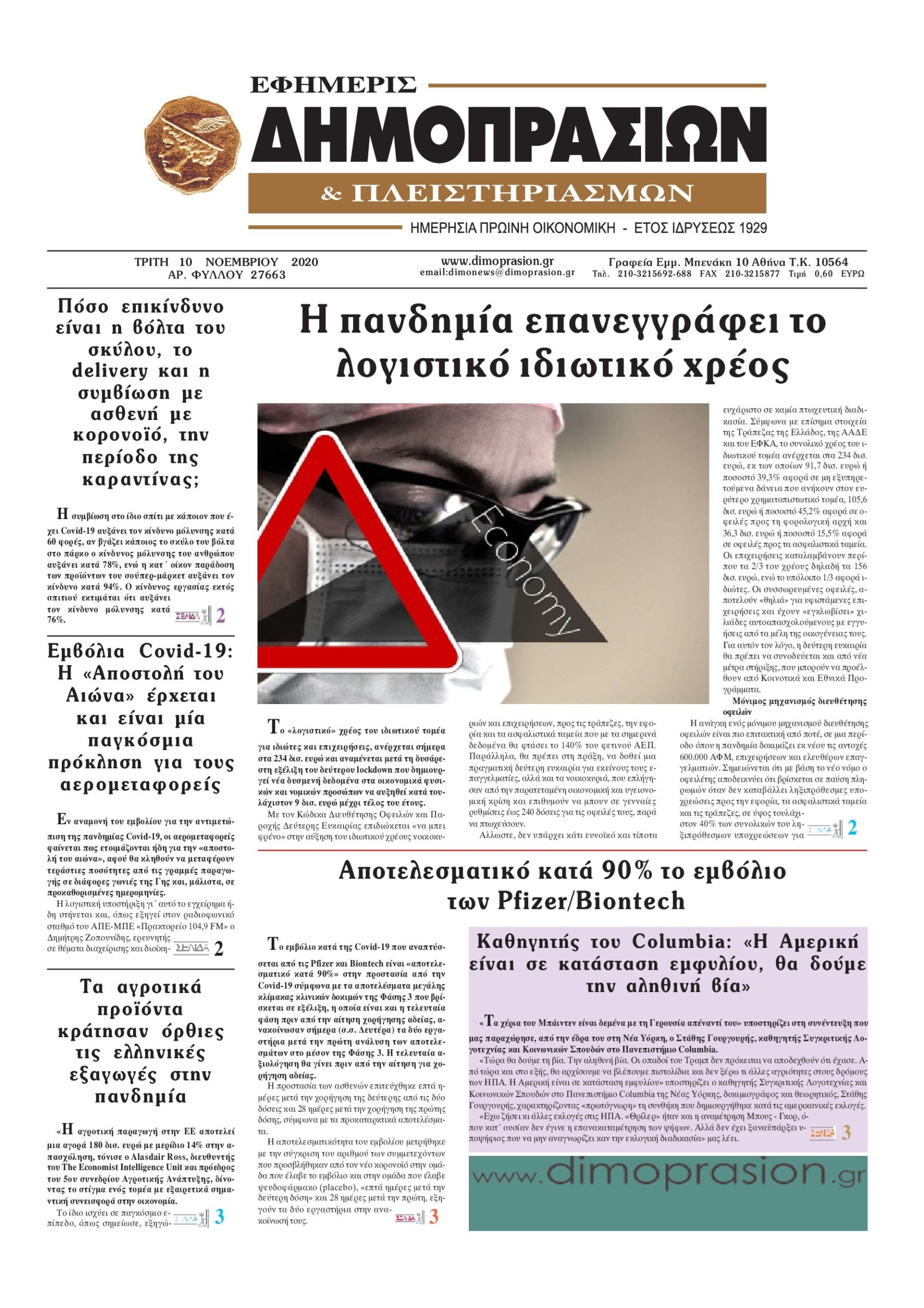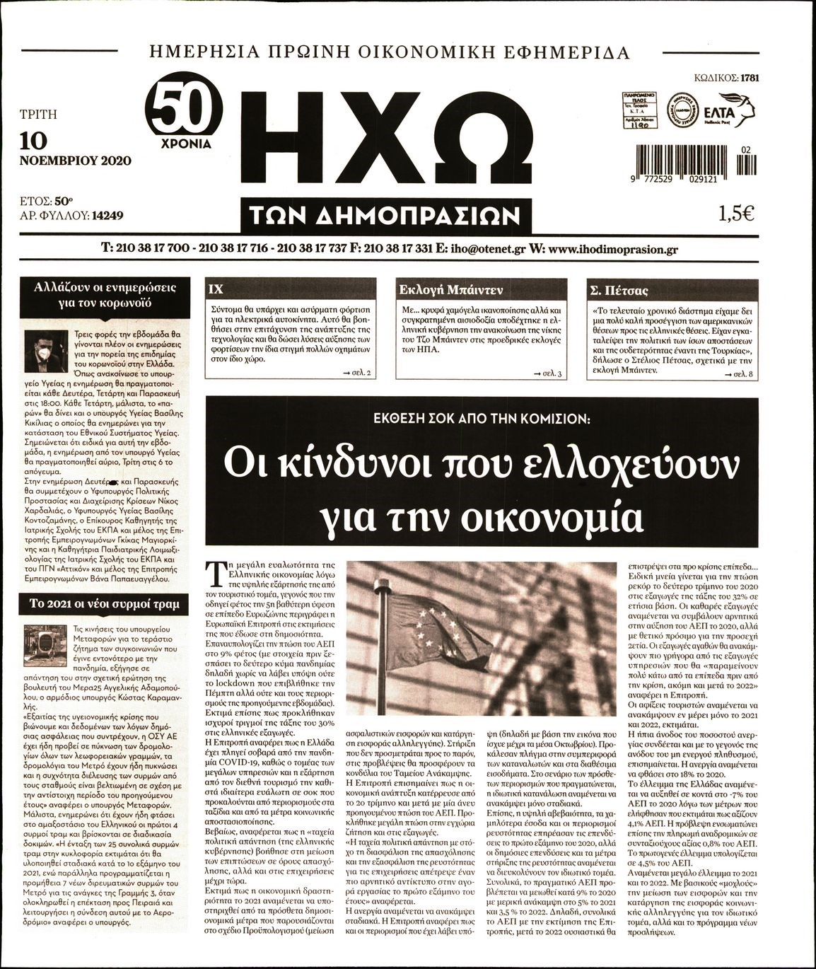 Οι οικονομικές εφημερίδες 10/11/2020 Διονύσης Νίκκας 06:20, Τρίτη 10 Νοεμβρίου 2020 Media Διαβάστε τα πρωτοσέλιδα των οικονομικών εφημερίδων… ΟΙΚΟΝΟΜΙΚΕΣ ΕΦΗΜΕΡΙΔΕΣ Μοιράσου το: σχολίασε κι εσύ (0 σχόλια) Ακολουθήστε το enikos.gr στο Google News και μάθετε πρώτοι όλες τις ειδήσεις Δείτε όλες τις τελευταίες ειδήσεις από την Ελλάδα και τον Κόσμο στο enikos.gr Ειδήσεις Ροή Ειδήσεων 45 λεπτά πριν Ευρωπαϊκή Ένωση: Χωρίς συμφωνία, για την μακροπρόθεσμη χρηματοδότηση της Ουκρανίας, ολοκληρώθηκε η Σύνοδος Κορυφής στις Βρυξέλλες 4 ώρες πριν ΟΠΕΚΕΠΕ: Προφυλακιστέος ο φερόμενος αρχηγός και ο λογιστής της εγκληματικής οργάνωσης 5 ώρες πριν Αυξάνουν την πίεση προς την κυβέρνηση οι αγρότες: Κλείνουν παρακαμπτήριους και ανοίγουν διόδια – Τι θα γίνει τις γιορτές 5 ώρες πριν Φοινικούντα: Το Σάββατο απολογείται ο 30χρονος γιος γνωστού επιχειρηματία της Πλάκας που παραδόθηκε – Όσα είπε στους αστυνομικούς και ο ρόλος του στο έγκλημα 4 ώρες πριν ΑΕΚ – Κραϊόβα 3-2: Επική ανατροπή και πρόκριση στους «16» του Conference League η Ένωση 5 ώρες πριν Αρχαιολόγοι ανακάλυψαν ρωμαϊκά τεχνουργήματα από μια πόλη που δεν υπήρξε ποτέ – Τα τρία εντυπωσιακά κτίρια και ο αμφορέας με τις… σαρδέλες 6 ώρες πριν Ύπνος: Η απλή βραδινή ρουτίνα για να προστατεύσετε τα μαλλιά σας από το κρύο κατά τη διάρκεια του χειμώνα 7 ώρες πριν Manifesting: Πώς να συναντήσετε τον σύντροφο της ζωής σας, ανάλογα με τον μήνα γέννησής σας 2 ημέρες πριν 20 χρόνια τα Χριστούγεννα ξεκινούν στα Public με μεγάλη ποικιλία σε δώρα! 1 λεπτό πριν Στη Φλόριντα σήμερα οι διαβουλεύσεις σχετικά με τα επόμενα στάδια για τη Λωρίδα της Γάζας 6 λεπτά πριν Σίσσυ Τουμάση: «Είμαι ασθενοφοβική πάρα πολύ και με πιάνει μια παράνοια μ’ αυτό» 30 λεπτά πριν Ντόναλντ Τραμπ: Δεν χρειάζομαι την έγκριση του Κογκρέσου για να διατάξω στρατιωτικά πλήγματα στη Βενεζουέλα 45 λεπτά πριν Ευρωπαϊκή Ένωση: Χωρίς συμφωνία, για την μακροπρόθεσμη χρηματοδότηση της Ουκρανίας, ολοκληρώθηκε η Σύνοδος Κορυφής στις Βρυξέλλες 1 ώρα πριν GNTM: «Κλείδωσαν» οι τέσσερις φιναλίστ – Μεγάλη ανατροπή στις τελευταίες αποχωρήσεις ENIKOS NETWORK Σε περίοδο αυξημένης δραστηριότητας η γρίπη στην Ελλάδα-Μέτρα προστασίας από τον ΕΟΔΥ Σκέφτεστε συνέχεια συζητήσεις που έχετε κάνει; Τι σημαίνει αυτό, σύμφωνα με ειδικό Στεγαστικό: Τι λέει η ΠΟΜΙΔΑ για τα νέα μέτρα που ανακοίνωσε ο Κυριάκος Μητσοτάκης Λαγκάρντ: Αισιόδοξη για την ανάπτυξη της Ευρωζώνης, αβέβαιη για τον πληθωρισμό Χαρτογραφώντας το «σημείο χωρίς επιστροφή»: Για πρώτη φορά αποκαλύπτεται με λεπτομέρεια το ακανθώδες όριο της ατμόσφαιρας τ... Η Google καταργεί τη λειτουργία «dark web report» – Πώς θα μπορούν οι χρήστες να διαγράφουν τα δεδομένα τους περισσότερα 02:50 , Παρασκευή 19 Δεκεμβρίου 2025 GNTM: «Κλείδωσαν» οι τέσσερις φιναλίστ – Μεγάλη ανατροπή στις τελευταίες αποχωρήσεις Για προτελευταία φορά εμφανίστηκαν στο πλατό του GNTM οι φιναλίστ του φετινού κύκλου, το βράδυ... 17:45 , Πέμπτη 18 Δεκεμβρίου 2025 ROUK ZOUK: Εορταστικό επεισόδιο με καλεσμένους τους πρωταγωνιστές του «Γιατί ρε πατέρα» Το Σάββατο 20 Δεκεμβρίου στις 21:00, η Ζέτα Μακρυπούλια υποδέχεται εκλεκτούς ηθοποιούς που όλο... 17:20 , Πέμπτη 18 Δεκεμβρίου 2025 Άγιος έρωτας: Η Χριστίνα εξομολογείται στον πατέρα Νικόλαο, απόψε στις 21:00 στον Alpha Η Νότα αποφασίζει να εκδικηθεί τον Πέτρο και τον Στέφανο, για χάρη του Λούη, όμως τα πράγματα ... 16:50 , Πέμπτη 18 Δεκεμβρίου 2025 Να μ’ αγαπάς: Ζωή και Φωτεινή συμφιλιώνονται ως μάνα με κόρη, α