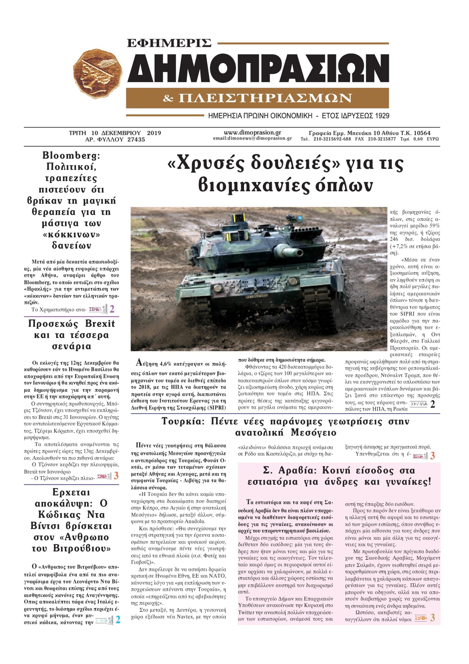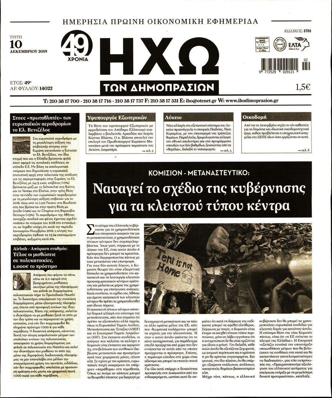 Οι οικονομικές εφημερίδες 10/12/19 Διονύσης Νίκκας 06:50, Τρίτη 10 Δεκεμβρίου 2019 Media Διαβάστε τα πρωτοσέλιδα των οικονομικών εφημερίδων… ΕΦΗΜΕΡΙΔΕΣ ΟΙΚΟΝΟΜΙΚΕΣ Μοιράσου το: σχολίασε κι εσύ (0 σχόλια) Ακολουθήστε το enikos.gr στο Google News και μάθετε πρώτοι όλες τις ειδήσεις Δείτε όλες τις τελευταίες ειδήσεις από την Ελλάδα και τον Κόσμο στο enikos.gr Ειδήσεις Ροή Ειδήσεων 6 ώρες πριν Μητσοτάκης: Αναγκαία η μεταρρύθμιση του πρωτογενούς τομέα – Τα 6 νέα μέτρα για το στεγαστικό και οι αναφορές σε «Ιθάκη» και «πολιτικούς του καναπέ» 5 ώρες πριν Δάνεια σε ελβετικό φράγκο: Τα βασικά σημεία της ρύθμισης – ανάσας για 40.000 δανειολήπτες – Αναλυτικός οδηγός με ερωτήσεις και απαντήσεις 5 ώρες πριν Κυψέλη: Εξιτήριο πήρε η 14χρονη μαθήτρια που μαχαιρώθηκε από την 16χρονη σε σχολείο – «Θέλω να βοηθήσω το παιδί, έχει μπλέξει με κακές παρέες» 5 ώρες πριν Τραμπ: Γιατί κατέθεσε τώρα την αγωγή κατά του BBC – Πώς η κίνησή του εξυπηρετεί το νέο δόγμα του για «αντίσταση» στην Ευρώπη, υπέρ των συντηρητικών 6 ώρες πριν ΟΠΕΚΕΠΕ – Παράνομες επιδοτήσεις: Ελεύθεροι με περιοριστικούς όρους και οι 7 κατηγορούμενοι που απολογήθηκαν σήμερα 5 ώρες πριν Ανακαλύφθηκε βυθισμένη πέτρινη κατασκευή ανοιχτά της Κριμαίας – Αποτελεί μέρος αρχαίας ελληνικής αποικίας 6 ώρες πριν Ύπνος: Αυτό μπορεί να είναι το χειρότερο λάθος για το βιολογικό ρολόι σας, σύμφωνα με ειδικό 7 ώρες πριν Αριθμολογία: Οι άνθρωποι που έχουν γεννηθεί αυτές τις 3 ημερομηνίες, προσελκύουν μεγάλη τύχη πριν από το τέλος του 2025 9 ώρες πριν Οι 7 συμπεριφορές που μαρτυρούν ότι ένας άνδρας επενδύει μακροπρόθεσμα σε μια σχέση 6 λεπτά πριν Ντόναλντ Τραμπ: Ξένη τρομοκρατική οργάνωση η Βενεζουέλα – Πλήρης αποκλεισμός των δεξαμενόπλοιων από και προς το Καράκας 21 λεπτά πριν Παναγιώτης Μπουγιούρης: «Έχω μια αφέλεια σε σχέση με τη δουλειά μου» 36 λεπτά πριν Παναθηναϊκός: Η έντονη επιθυμία του Ματίας Λεσόρ να επιστρέψει στα γήπεδα – «Μου λείπει πολύ το γ@@@@». 51 λεπτά πριν Νίκος Πλακιάς: Η Μαρία Καρυστιανού πλέον θα κρίνεται ως πολιτικός και όχι ως συγγενής 1 ώρα πριν Ντόναλντ Τραμπ: Κάλυψε απόλυτα την προσωπάρχη του Λευκού Οίκου: «Ναι, έχω προσωπικότητα αλκοολικού» ENIKOS NETWORK Αίτημα ΙΣΑ για την εξαίρεση των προσωπικών γιατρών από τις κατ’ οίκον επισκέψεις Η σκανδιναβική μέθοδος στον ύπνο που μπορεί να σώσει έναν γάμο Πιερρακάκης: Ο προϋπολογισμός συμβάλλει ουσιαστικά στην ενίσχυση της αγοραστικής δύναμης της πλειονότητας των εργαζομένων e-ΕΦΚΑ: Παρατείνεται η προθεσμία για την υποβολή ΑΠΔ – Ποιους αφορά Σύγχρονος Νοστράδαμος: Προειδοποιεί για «μεγάλο γεγονός» τους επόμενους μήνες που θα συγκλονίσει τη Βρετανία και τον κόσμο Τεστ παρατηρητικότητας: Μπορείτε να βρείτε τις 3 διαφορές στις εικόνες με έναν πιγκουίνο σε 14 δευτερόλεπτα περισσότερα 20:06 , Τρίτη 16 Δεκεμβρίου 2025 Ο ΣΚΑΙ καταγγέλλει τον ΕΚΚΟΜΕΔ Επιστολή με την οποία καταγράφει την έντονη διαμαρτυρία του προς τον διευθύνοντα σύμβουλο του... 17:40 , Τρίτη 16 Δεκεμβρίου 2025 Eurovision: Στις 4 Ιανουαρίου αποκαλύπτονται τα 28 τραγούδια του ελληνικού τελικού Η αγωνία τελειώνει, η γιορτή της Eurovision αρχίζει στην ΕΡΤ από τις πρώτες ημέρες της νέας χρ... 17:09 , Τρίτη 16 Δεκεμβρίου 2025 Alter Ego Media: Βαθύτατη θλίψη και ειλικρινή συλλυπητήρια για την απώλεια της Ειρήνης Μαρινάκη Τη βαθύτατη θλίψη και τα ειλικρινή συλλυπητήριά της εκφράζει η Alter Ego Media για τον θάνατο ... 13:00 , Τρίτη 16 Δεκεμβρίου 2025 «Στο Παρά Πέντε – 20 Χρόνια Μ