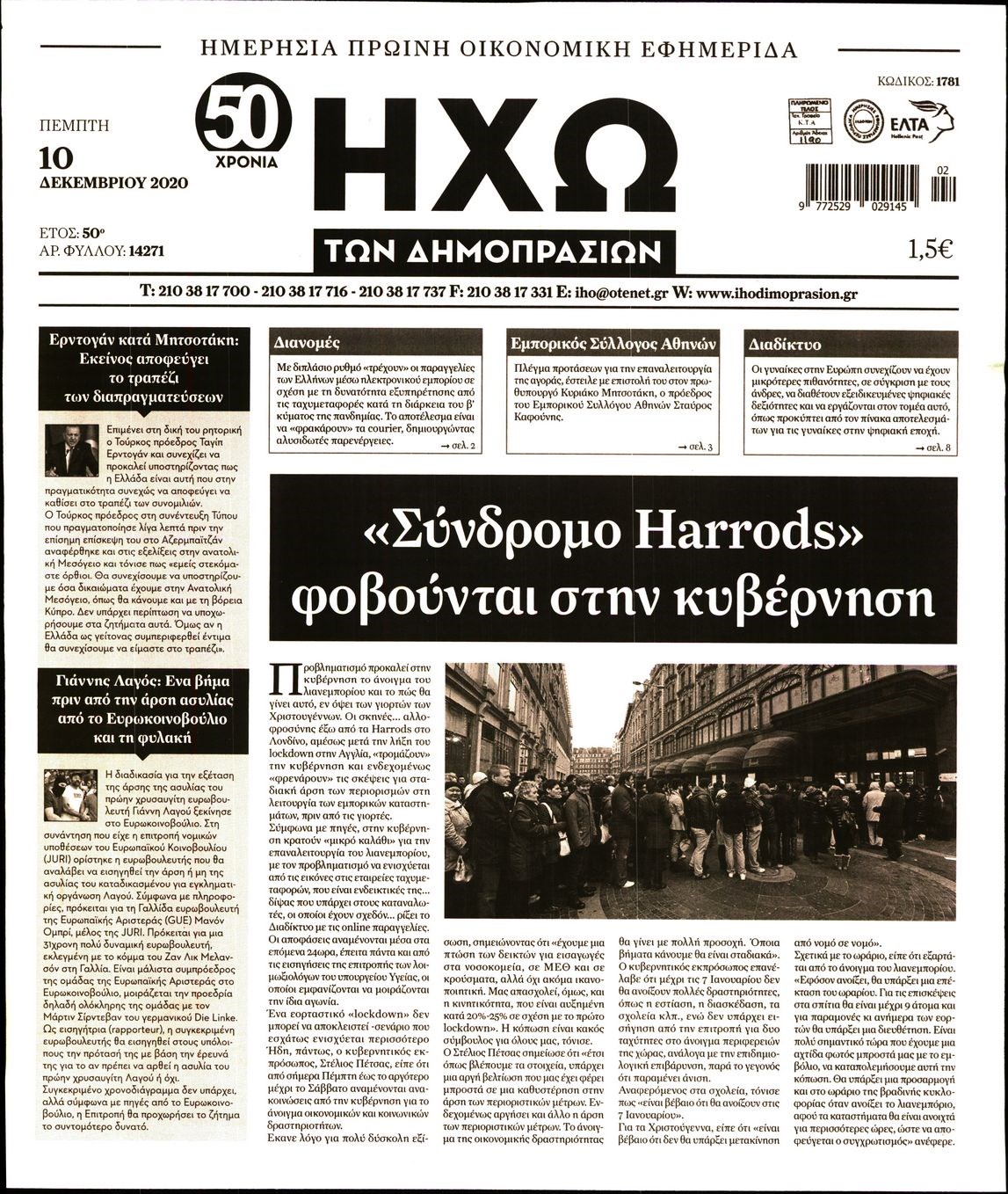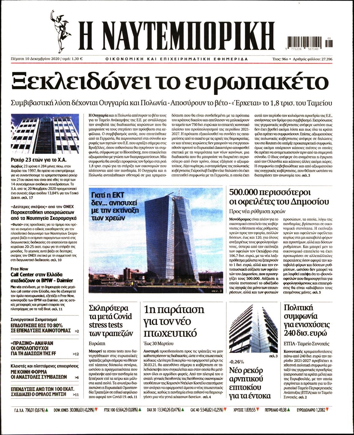 Οι οικονομικές εφημερίδες 10/12/2020 Διονύσης Νίκκας 06:39, Πέμπτη 10 Δεκεμβρίου 2020 Media Διαβάστε τα πρωτοσέλιδα των οικονομικών εφημερίδων… ΟΙΚΟΝΟΜΙΚΕΣ ΕΦΗΜΕΡΙΔΕΣ Μοιράσου το: σχολίασε κι εσύ (0 σχόλια) Ακολουθήστε το enikos.gr στο Google News και μάθετε πρώτοι όλες τις ειδήσεις Δείτε όλες τις τελευταίες ειδήσεις από την Ελλάδα και τον Κόσμο στο enikos.gr Ειδήσεις Ροή Ειδήσεων 1 ώρα πριν Μεσόγειος: Η διαδρομή του ρωσικού τάνκερ «Qendil» και η στοχευμένη επίθεση της Ουκρανίας με drone – Ο Πούτιν προειδοποίησε για αντίποινα 1 ώρα πριν Αττική: Θρίλερ με νεκρό βρέφος 5 μηνών – Κοιμόταν στο ίδιο κρεβάτι με τους γονείς του 2 ώρες πριν Από το Ορμένιο ως τα Μάλγαρα κι από τη Σιάτιστα μέχρι τη Νίκαια: Μπλόκα σε όλη την Ελλάδα – Το Σάββατο ανοίγουν τα διόδια οι αγρότες 2 ώρες πριν «Έλληνας Εσκομπάρ»: Φωτογραφίες με τους 4 τόνους κοκαΐνης που κατασχέθηκαν από το σκάφος «Ουρανία» 4 ώρες πριν Πούτιν: Σαρκαστικά μηνύματα, παράπονα και απρόοπτα στη συνέντευξη Τύπου – Η πρόταση γάμου on air και οι ερωτήσεις για τα αγγούρια και τους… εξωγήινους 3 ώρες πριν Τα 5 ζώδια που ευνοούνται στην ερωτική ζωή τους την επόμενη εβδομάδα – «Η ενέργεια του Αιγόκερου φέρνει αγάπη και σταθερότητα» 7 ώρες πριν Ειδικός μοιράζεται 6 κόλπα για να διατηρείστε σε φόρμα με πάνω από 40 ώρες εργασίας την εβδομάδα: «Προπονηθείτε πριν από τη δουλειά, όχι μετά» 4 ώρες πριν Αυτό το έξυπνο μαθηματικό κόλπο θα μπορούσε να αλλάξει τον τρόπο με τον οποίο οι επιστήμονες μελετούν τους σεισμούς 2 ώρες πριν Κουίζ για την παλιά Αθήνα: Αναγνωρίζετε την περιοχή; Έχετε περάσει 100% από εκεί 3 λεπτά πριν ΗΠΑ: Νέος γύρος συνομιλιών στο Μαϊάμι – Σήμερα συνάντηση Γουίτκοφ με Ουκρανούς και Ευρωπαίους διαπραγματευτές, το Σαββατοκύριακο με Ρώσους αξιωματούχους 7 λεπτά πριν Νέα σειρά γραμματοσήμων «ΕΛΠΙΔΑ-Μαριάννα Β. Βαρδινογιάννη» 11 λεπτά πριν Ιταλία: Με εισιτήριο από την 1η Φεβρουαρίου 2026 η πρόσβαση στη Φοντάνα ντι Τρέβι – Πόσο θα κοστίζει 19 λεπτά πριν Μήπως έχετε χάσει τον εαυτό σας στη σχέση σας; 7 «αθόρυβες» υποχωρήσεις που μάλλον κάνατε, χωρίς να το συνειδητοποιήσετε 25 λεπτά πριν Λάρισα: Ασθενοφόρο έπεσε πάνω σε κλούβα της ΕΛ.ΑΣ στον Πλατύκαμπο – Τραυματίστηκε ο συνοδηγός – ΒΙΝΤΕΟ ENIKOS NETWORK «Η σούπερ» γρίπη εξαπλώνεται στην Ευρώπη-Στοιχεία από το ECDC για την αποτελεσματικότητα του εμβολίου ΕΛΣΤΑΤ: Αύξηση κατά 1,7% των επαγγελματιών υγείας το 2024 Προκήρυξη ΑΣΕΠ για 397 μόνιμες προσλήψεις στο Δημόσιο: Βγήκαν τα προσωρινά αποτελέσματα – Πότε αρχίζει η υποβολή ενστάσεων Η απάντηση της κυβέρνησης στα αιτήματα των αγροτών: 16 έχουν ικανοποιηθεί, 4 βρίσκονται υπό επεξεργασία και 7 δεν είναι εφι... Χαρτογραφώντας το «σημείο χωρίς επιστροφή»: Για πρώτη φορά αποκαλύπτεται με λεπτομέρεια το ακανθώδες όριο της ατμόσφαιρας τ... Η Google καταργεί τη λειτουργία «dark web report» – Πώς θα μπορούν οι χρήστες να διαγράφουν τα δεδομένα τους περισσότερα 18:11 , Παρασκευή 19 Δεκεμβρίου 2025 Το σόι σου: Ο Άρης έρχεται στην Ελλάδα για τις γιορτές των Χριστουγέννων – Τι θα δούμε στο αποψινό εορταστικό επεισόδιο Ένα απολαυστικό, εορταστικό επεισόδιο της σειράς “Το σόι σου”, γεμάτο ευτράπελα αλ... 15:15 , Παρασκευή 19 Δεκεμβρίου 2025 Την Κυριακή με τη Realnews: Ό,τι και αν αγοράσεις, σκανάρεις και κερδίζεις! Την Κυριακή με τη Realnews: Ό,τι και αν αγοράσεις, σκανάρεις και κερδίζεις! Με το PADU app, το... 08:00 , Παρασκευή 19 Δεκεμβρίου 2025 Την Κυριακή με τη Realnews: Δωροεπιταγή 10€ Δωροεπιταγή αξίας 10€ για α