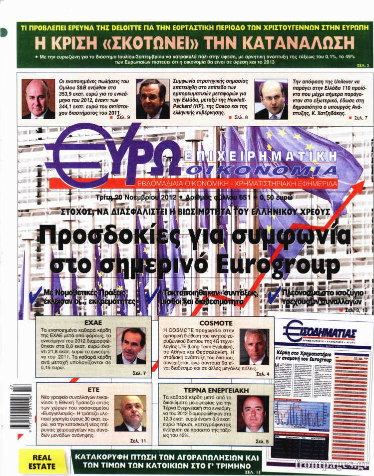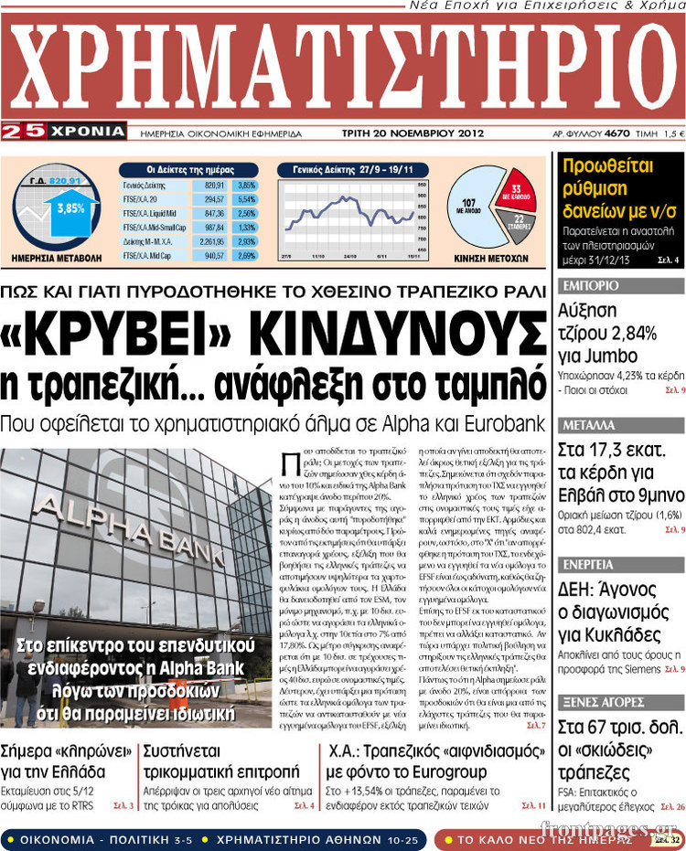 Οι οικονομικές εφημερίδες Enikos Newsroom 08:41, Τρίτη 20 Νοεμβρίου 2012 Media Οι οικονομικές εφημερίδες Τα σημερινά πρωτοσέλιδα των οικονομικών εφημερίδων. ΕΦΗΜΕΡΙΔΕΣ ΟΙΚΟΝΟΜΙΚΑ ΘΕΜΑΤΑ ΟΙΚΟΝΟΜΙΚΕΣ ΕΦΗΜΕΡΙΔΕΣ ΠΡΩΤΟΣΕΛΙΔΑ Μοιράσου το: σχολίασε κι εσύ (0 σχόλια) Ακολουθήστε το enikos.gr στο Google News και μάθετε πρώτοι όλες τις ειδήσεις Δείτε όλες τις τελευταίες ειδήσεις από την Ελλάδα και τον Κόσμο στο enikos.gr Ειδήσεις Ροή Ειδήσεων 2 ώρες πριν Νίκος Παππάς: Άφαντος παραμένει ο ευρωβουλευτής μετά την επίθεση στον Νίκο Γιαννόπουλο 1 ώρα πριν Βρυξέλλες: Ένταση με τους αγρότες – Πέταξαν πατάτες και κροτίδες 3 ώρες πριν Συναγερμός και στην Ελλάδα για τη «σούπερ γρίπη»: Πόσο σοβαρή είναι και ποιοι θεωρούνται πιο ευάλωτοι – 3 ειδικοί μιλούν στο enikos.gr 2 ώρες πριν Μητσοτάκης: Η Ελλάδα στηρίζει την Ουκρανία και θα υποστηρίξει οποιαδήποτε λύση της παρέχει χρηματοδοτική σταθερότητα 1 ώρα πριν Γαλλία: Το δικαστήριο έκρινε ένοχο τον «διεστραμμένο» αναισθησιολόγο για τη δολοφονία 12 ασθενών – Είχε το παρατσούκλι «Δρ. Θάνατος» 3 ώρες πριν Τα 4 ζώδια που λαμβάνουν ένα ισχυρό σημάδι από το σύμπαν – «Αποκαλύπτεται κάτι που μπορεί να αλλάξει τη ζωή μας» 4 ώρες πριν Η σύζυγός του παραπονιέται για τα χρήματα που της δίνει για ψώνια κάθε μήνα – «Λέει ότι νιώθει φτωχή και της είπα να βρει δουλειά» 2 ώρες πριν Αν κάνετε συνεχώς αυτά τα 8 πράγματα με τα κατοικίδιά σας, σας λείπει η ανθρώπινη επαφή 1 ημέρα πριν 20 χρόνια τα Χριστούγεννα ξεκινούν στα Public με μεγάλη ποικιλία σε δώρα! 5 λεπτά πριν Μαρινάκης για Νίκο Παππά: Να δώσει απαντήσεις ο άνθρωπος που τον έβαλε στην πολιτική – Ήταν προσωπική επιλογή Τσίπρα 8 λεπτά πριν LIVE από Λοριάν: Η ύψωση της ελληνικής σημαίας στην πρώτη φρεγάτα FDI Belharra ΚΙΜΩΝ 10 λεπτά πριν Θεσσαλονίκη: Υπό κράτηση ο 48χρονος που κατηγορείται για φοροδιαφυγή ύψους 29,6 εκατ. ευρώ στη Γερμανία 15 λεπτά πριν Φίλης στον Realfm 97,8: «Δεν πρέπει να είμαστε τόσο γενναιόδωροι στην εξωτερική μας πολιτική» 20 λεπτά πριν Στην Ευελπίδων ο 22χρονος που καταγγέλλει τον Γιώργο Μαζωνάκη για ασελγείς πράξεις – «Έχουμε εμπιστοσύνη στη Δικαιοσύνη, καμία εκβίαση» λέει ο δικηγόρος του ENIKOS NETWORK Όμιλος ΙΑΤΡΟΠΟΛΙΣ: Πρωτοπόροι στη μοριακή απεικόνιση και στην πυρηνική ιατρική Τι περιλαμβάνει το σχέδιο της ΕΕ για την καρδιαγγειακή υγεία-Οι προτάσεις της Ελληνικής Καρδιολογικής Εταιρείας Ενοίκια: Τι αλλάζει με τη νέα τροπολογία στην πληρωμή Ειδικό επιδοτούμενο πρόγραμμα κατάρτισης από ΔΥΠΑ και ΕΛΓΟ – ΔΗΜΗΤΡΑ: Έως αύριο οι ενστάσεις – Όσα πρέπει να γνωρίζετε Χαρτογραφώντας το «σημείο χωρίς επιστροφή»: Για πρώτη φορά αποκαλύπτεται με λεπτομέρεια το ακανθώδες όριο της ατμόσφαιρας τ... Η Google καταργεί τη λειτουργία «dark web report» – Πώς θα μπορούν οι χρήστες να διαγράφουν τα δεδομένα τους περισσότερα 08:00 , Πέμπτη 18 Δεκεμβρίου 2025 Την Κυριακή με τη Realnews: Δωροεπιταγή 10€ Δωροεπιταγή αξίας 10€ για αγορές άνω των 60€ από τα πολυκαταστήματα FactoryOutlet H προσφορά ι... 07:50 , Πέμπτη 18 Δεκεμβρίου 2025 «Το σόι σου»: Backstage στα γυρίσματα για το εορταστικό επεισόδιο «Το σόι σου» φορά τα γιορτινά του για τα Χριστούγεννα και η Όλγα Λαφαζάνη, με την κάμερα του «... 07:36 , Πέμπτη 18 Δεκεμβρίου 2025 Οι αθλητικές μεταδόσεις 18/12/2025 – Πού θα δείτε τον αγώνα της ΑΕΚ με την Κραϊόβα για το Conference League Τα ματς ΑΕΚ – Ουνιβερσιτάτεα Κραϊόβα για το Conference League και Παναθηναϊκός – Χάποελ Τελ Αβ... 05:48 , Πέμπτη 18 Δεκεμβρίου 2025 Οι οικονομικές εφημερίδες 18/12/2025 Διαβάστε τ