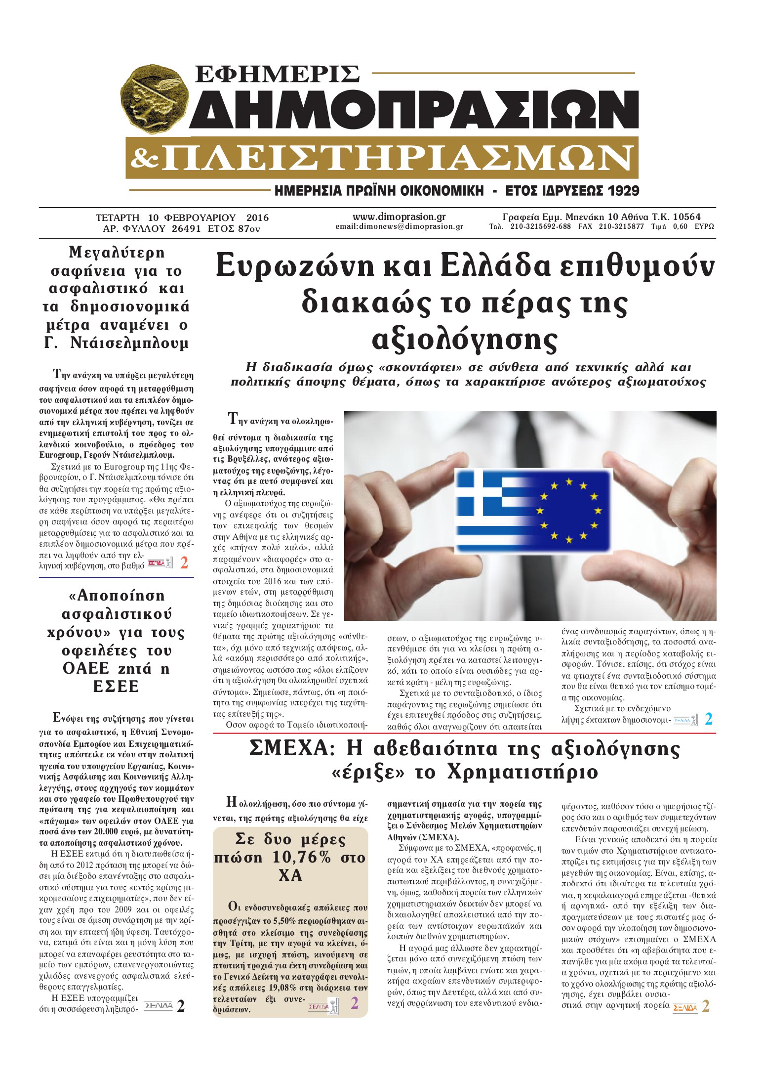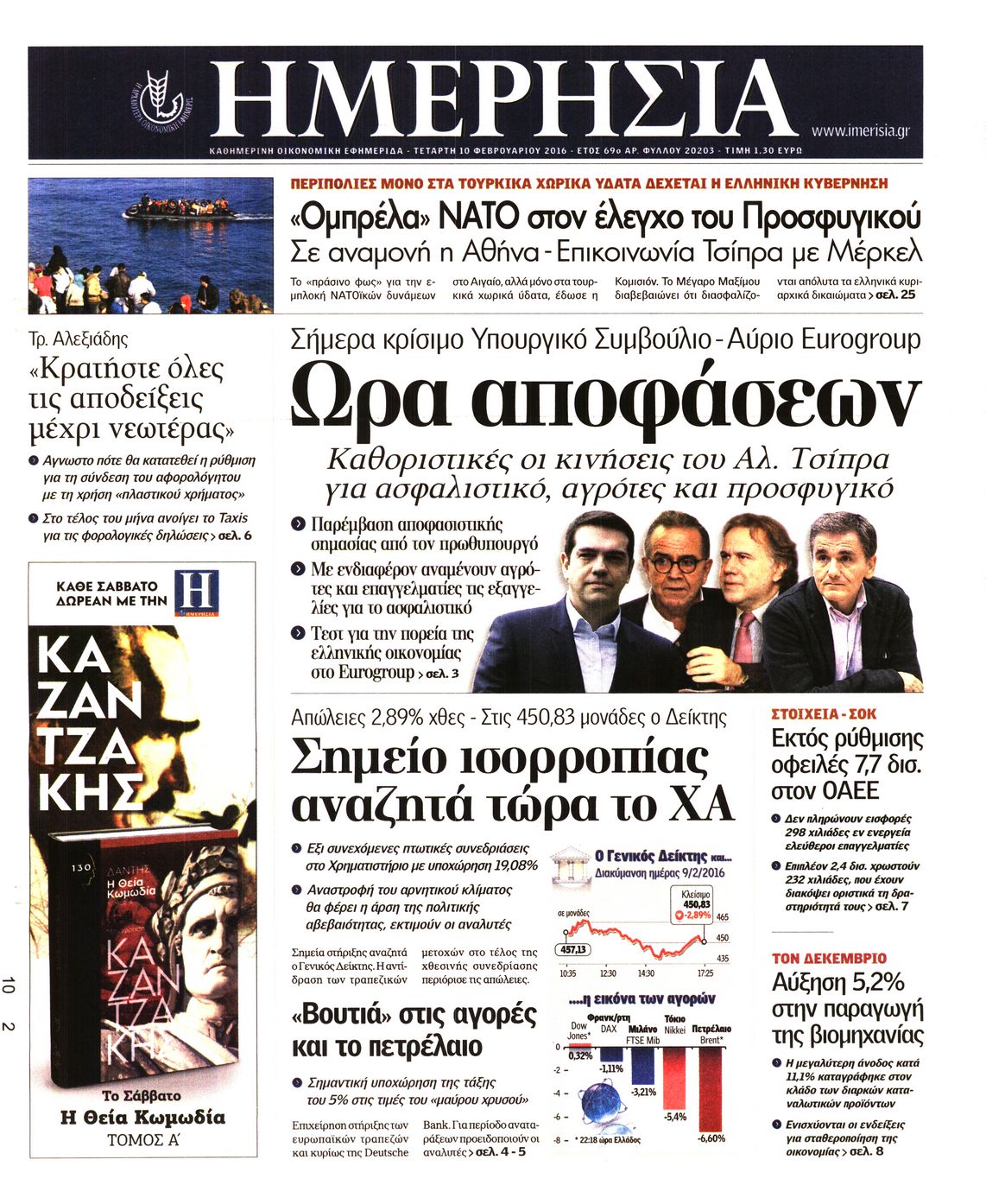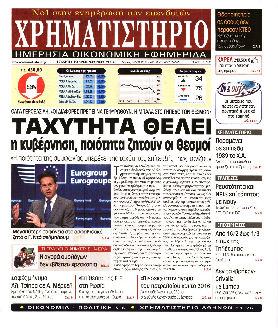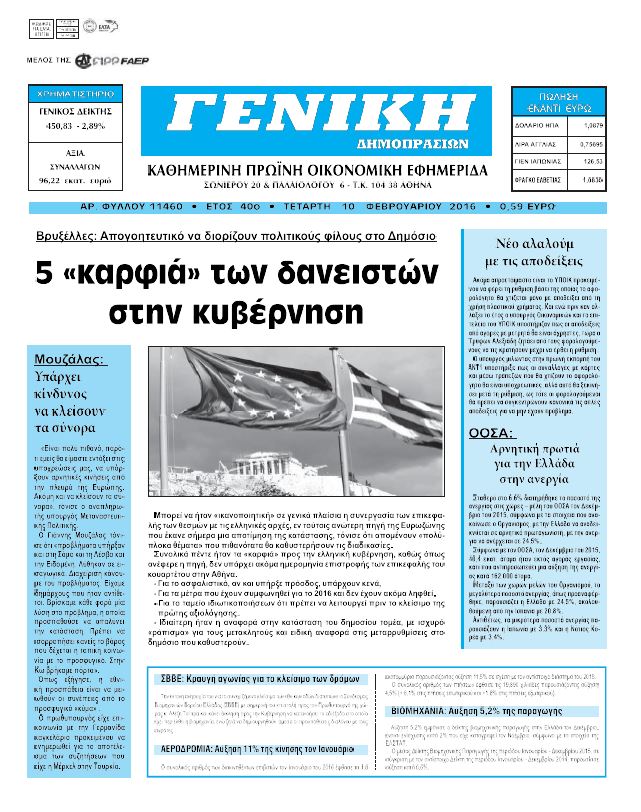 Οι οικονομικές εφημερίδες 10/2/2016 Enikos Newsroom 06:18, Τετάρτη 10 Φεβρουαρίου 2016 Media Διαβάστε τα σημερινά πρωτοσέλιδα των οικονομικών εφημερίδων. ΟΙΚΟΝΟΜΙΚΕΣ ΕΦΗΜΕΡΙΔΕΣ ΠΡΩΤΟΣΕΛΙΔΑ Μοιράσου το: σχολίασε κι εσύ (0 σχόλια) Ακολουθήστε το enikos.gr στο Google News και μάθετε πρώτοι όλες τις ειδήσεις Δείτε όλες τις τελευταίες ειδήσεις από την Ελλάδα και τον Κόσμο στο enikos.gr Ειδήσεις Ροή Ειδήσεων 2 ώρες πριν Στεγαστικό: Όλο το σχέδιο για περισσότερα και φθηνότερα ενοικιαζόμενα σπίτια 35 λεπτά πριν Προϋπολογισμός 2026: Τα μηνύματα από την ομιλία Μητσοτάκη και τα «καρφιά» με πολλαπλούς αποδέκτες 1 ώρα πριν Αγρότες: Ορισμένοι ζητούν πιο σκληρή μορφή κινητοποιήσεων – Κρίσιμη η αυριανή σύσκεψη στις Σέρρες 36 λεπτά πριν Ρομπ Ράινερ: Το δείπνο με τους Ομπάμα που δεν έγινε ποτέ και νέα στοιχεία για τον «καβγά» στο πάρτι – Βίντεο με τον γιο του να περιφέρεται κοντά στο σπίτι της τραγωδίας 2 ώρες πριν Κανόνια λέιζερ σε φρεγάτες – Το επόμενο άλμα στις ναυτικές επιχειρήσεις – Δείτε βίντεο 3 ώρες πριν Οπτική ψευδαίσθηση: Μόνο αν είσαι ο Σέρλοκ Χολμς θα βρεις τον σκύλο σε 15 δευτερόλεπτα 3 ώρες πριν Υγεία του εντέρου: Προσθέστε 1 superfood στα scrambled eggs για καλύτερη πέψη και ευεξία 4 ώρες πριν Τα ζώδια σήμερα, Τετάρτη 17 Δεκεμβρίου: Κριοί, η αυτοπεποίθησή σας ενισχύεται 56 λεπτά πριν Νεολιθικός σκύλος βρέθηκε προσεκτικά θαμμένος στον βυθό λίμνης – Δίπλα του βρέθηκε ένα στιλέτο 1 λεπτό πριν Έλαβε τελεσίγραφο από τη σύντροφό του – «Μου είπε πως ή θα της κάνω πρόταση στα δύο χρόνια σχέσης ή θα με χωρίσει» 11 λεπτά πριν Αγγελική Ηλιάδη: «Έχω βιώσει άρρωστη και κακοποιητική ζήλεια, δεν θα ήθελα ποτέ στη ζωή μου να το ξαναπεράσω αυτό» 19 λεπτά πριν Θεσσαλονίκη: Διέρρηξαν το σπίτι του προέδρου του δημοτικού συμβουλίου, Σπύρου Βούγια 26 λεπτά πριν Καρυστιανού: Δεν θα αυτοπροταθώ ως ηγέτης, παραποιούν τα λόγια μου για να με αποδομήσουν 31 λεπτά πριν Η μοναδική συνταγή της Μάρθα Στιούαρτ για gingerbread cookies ENIKOS NETWORK Δύο συστατικά που είναι καλό να βάλετε στον πρωινό σας καφέ – Βοηθούν στην απώλεια βάρους και τη ρύθμιση του σακχάρου Πρωτοποριακή θεραπεία για το Αλτσχάιμερ: Φως και ήχος μπορεί να επιβραδύνουν την εξέλιξη της νόσου Έρχεται «νοικοκύρεμα » στα ακίνητα- Τι πρέπει να γνωρίζουν οι πολίτες Στεγαστικό: Όλο το σχέδιο για περισσότερα και φθηνότερα ενοικιαζόμενα σπίτια Σύγχρονος Νοστράδαμος: Προειδοποιεί για «μεγάλο γεγονός» τους επόμενους μήνες που θα συγκλονίσει τη Βρετανία και τον κόσμο Τεστ παρατηρητικότητας: Μπορείτε να βρείτε τις 3 διαφορές στις εικόνες με έναν πιγκουίνο σε 14 δευτερόλεπτα περισσότερα 08:00 , Τετάρτη 17 Δεκεμβρίου 2025 Την Κυριακή με τη Realnews: Δωροεπιταγή 10€ Δωροεπιταγή αξίας 10€ για αγορές άνω των 60€ από τα πολυκαταστήματα FactoryOutlet H προσφορά ι... 07:00 , Τετάρτη 17 Δεκεμβρίου 2025 Την Κυριακή με τη Realnews: Ό,τι και αν αγοράσεις, σκανάρεις και κερδίζεις! Την Κυριακή με τη Realnews: Ό,τι και αν αγοράσεις, σκανάρεις και κερδίζεις! Με το PADU app, το... 05:48 , Τετάρτη 17 Δεκεμβρίου 2025 Οι οικονομικές εφημερίδες 17/12/2025 Διαβάστε τα πρωτοσέλιδα από τις οικονομικές εφημερίδες, σήμερα 17/12/2025. 05:43 , Τετάρτη 17 Δεκεμβρίου 2025 Οι αθλητικές εφημερίδες 17/12/2025 Διαβάστε τα πρωτοσέλιδα από τις αθλητικές εφημερίδες, σήμερα 17/12/2025. ΤΕΛΕΥΤΑΙΕΣ ΕΙΔΗΣΕΙΣ 11 λεπτά πριν Αγγελική Ηλιάδη: «Έχω βιώσει άρρωστη και κακοποιητική... 19 λεπτά πριν Θεσσαλονίκη: Διέρρηξαν το σπίτι του προέδρου του... 26 λεπτά πριν Καρυστιανού: Δεν θα αυτοπροταθώ ως ηγέτ