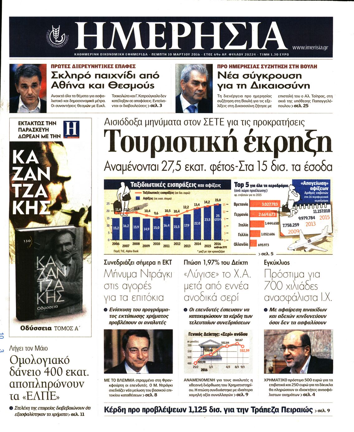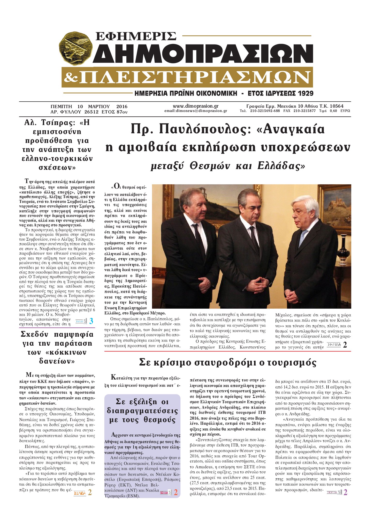 Oι οικονομικές εφημερίδες 10/3/2016 Enikos Newsroom 05:20, Πέμπτη 10 Μαρτίου 2016 Media Διαβάστε τα σημερινά πρωτοσέλιδα των οικονομικών εφημερίδων: ΟΙΚΟΝΟΜΙΚΕΣ ΕΦΗΜΕΡΙΔΕΣ ΠΡΩΤΟΣΕΛΙΔΑ Μοιράσου το: σχολίασε κι εσύ (0 σχόλια) Ακολουθήστε το enikos.gr στο Google News και μάθετε πρώτοι όλες τις ειδήσεις Δείτε όλες τις τελευταίες ειδήσεις από την Ελλάδα και τον Κόσμο στο enikos.gr Ειδήσεις Ροή Ειδήσεων 48 λεπτά πριν ΣΥΡΙΖΑ: Διαγράφεται ο ευρωβουλευτής Νίκος Παππάς μετά την μήνυση δημοσιογράφου για ξυλοδαρμό 2 ώρες πριν Πώς στήθηκε η επιχείρηση «Ίπαλλος» που οδήγησε στη σύλληψη του «Έλληνα Εσκομπάρ» – «Ο πόλεμος ενάντια στους εμπόρους ναρκωτικών θα συνεχιστεί» 2 ώρες πριν Δίκη Χρυσής Αυγής: Την ενοχή και των 42 κατηγορουμένων ζητά η εισαγγελέας 2 ώρες πριν Κυψέλη: Στη φυλακή η 16χρονη που μαχαίρωσε συμμαθήτριά της 5 ώρες πριν Αμοργός: «Θα προσπαθήσω να το κάνω κάθε μέρα» – Ποιος είναι ο αγρότης που έστησε μόνος του το πρώτο μπλόκο στο νησί 2 ώρες πριν Τα 3 ζώδια που θα δουν τη ζωή τους να αλλάζει ριζικά το 2026 – «Όλα γίνονται καλύτερα σταδιακά» 7 ώρες πριν «Δεν είχα κλάψει από τότε που διαγνώστηκα με καρκίνο, ώσπου ένα τηλεφώνημα με έκανε να λυγίσω» – Η συγκλονιστική εξομολόγηση ενός άνδρα 3 ώρες πριν Ο σπάνιος σεισμός που έλυσε τα χέρια των επιστημόνων – Αποκάλυψε ακριβώς όσα αναζητούσαν 9 ώρες πριν 20 χρόνια τα Χριστούγεννα ξεκινούν στα Public με μεγάλη ποικιλία σε δώρα! 2 λεπτά πριν ΑΣΕΠ: Οι προσωρινοί πίνακες για 4.276 θέσεις επιτυχόντων του πρώτου γραπτού διαγωνισμού – Η διαδικασία για τις ενστάσεις 7 λεπτά πριν Αίγινα: Βλάβη στον υποθαλάσσιο αγωγό του νησιού – «Προσωρινά από τις γεωτρήσεις του Δήμου η κάλυψη των αναγκών ύδρευσης» 14 λεπτά πριν Βασιλιάς Κάρολος: Η κίνηση απομόνωσης προς τον αδελφό του Άντριου, στο γεύμα των Χριστουγέννων 19 λεπτά πριν Παύλος Μαρινάκης για Νίκο Παππά: Έπρεπε να χειροδικήσει για να αναγκαστεί ο ΣΥΡΙΖΑ να τον διαγράψει 26 λεπτά πριν Ελένη Βασάρα: Ανοιχτό το ενδεχόμενο καθαίρεσης της Καρυστιανού από την προεδρία του Συλλόγου Θυμάτων Τεμπών – Η ανάρτηση του Δημήτρη Πλακιά ENIKOS NETWORK Γιατί αναζητούμε τα Χριστούγεννα όλο και νωρίτερα; Ποιοι οι ψυχολογικοί και οι συναισθηματικοί λόγοι Σοβαροί κίνδυνοι από τη λάθος χορήγηση φαρμάκου για τις αιμορραγίες-Συστάσεις προς τους γιατρούς Δάνεια σε ελβετικό φράγκο: Αύριο η κατάθεση της τροπολογίας στη Βουλή – Όλες οι λεπτομέρειες Επίδομα παιδιού: Πότε θα δοθεί η τελευταία δόση για το 2025 από τον ΟΠΕΚΑ και τι πρέπει να γνωρίζετε Χαρτογραφώντας το «σημείο χωρίς επιστροφή»: Για πρώτη φορά αποκαλύπτεται με λεπτομέρεια το ακανθώδες όριο της ατμόσφαιρας τ... Η Google καταργεί τη λειτουργία «dark web report» – Πώς θα μπορούν οι χρήστες να διαγράφουν τα δεδομένα τους περισσότερα 12:35 , Τετάρτη 17 Δεκεμβρίου 2025 Μίρκα Παπακωνσταντίνου: «Δεν ήμουν αισιόδοξη για τα νούμερα – Είμαι ρεαλίστρια» Στα γυρίσματα του εορταστικού επεισοδίου της αγαπημένης σειράς “Το Σόι Σου”, βρέθηκε η κάμερα ... 12:12 , Τετάρτη 17 Δεκεμβρίου 2025 Ακούστε την εκπομπή του Νίκου Χατζηνικολάου 17/12/2025 Ακούστε την εκπομπή του Νίκου Χατζηνικολάου στον ραδιοφωνικό σταθμό RealFm 97,8, την Τετάρτη 1... 11:35 , Τετάρτη 17 Δεκεμβρίου 2025 Home Alone: Το σπίτι της ταινίας θα ανακαινιστεί – Επιστροφή στην αισθητική της δεκαετίας του ’90 Οι νέοι ιδιοκτήτες του πραγματικού σπιτιού που παρουσιάζεται στην κλασική ταινία του 1990 «Hom... 11:25 , Τετάρτη 17 Δεκεμβρίου 2025 Grand Hotel: Απόψε το τελευταίο επεισόδιο τ