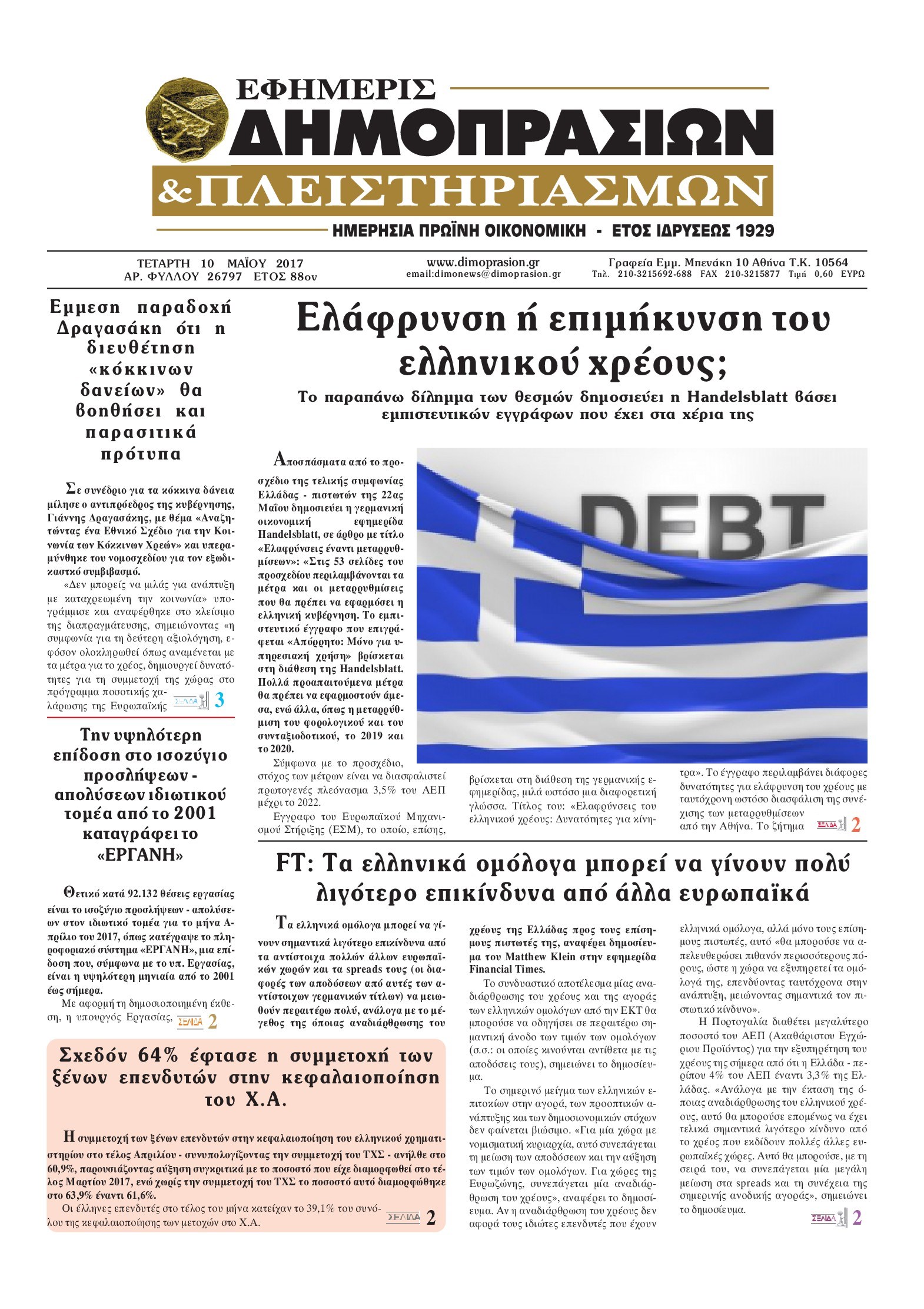 Οι οικονομικές εφημερίδες 10/5/2017 Enikos Newsroom 06:28, Τετάρτη 10 Μαΐου 2017 Media Διαβάστε τα σημερινά πρωτοσέλιδα των οικονομικών εφημερίδων: ΟΙΚΟΝΟΜΙΚΕΣ ΕΦΗΜΕΡΙΔΕΣ ΠΡΩΤΟΣΕΛΙΔΑ Μοιράσου το: σχολίασε κι εσύ (0 σχόλια) Ακολουθήστε το enikos.gr στο Google News και μάθετε πρώτοι όλες τις ειδήσεις Δείτε όλες τις τελευταίες ειδήσεις από την Ελλάδα και τον Κόσμο στο enikos.gr Ειδήσεις Ροή Ειδήσεων 2 ώρες πριν LIVE από Λοριάν: Η ύψωση της ελληνικής σημαίας στην πρώτη φρεγάτα FDI Belharra ΚΙΜΩΝ 2 ώρες πριν Στην Ευελπίδων ο 22χρονος που καταγγέλλει τον Γιώργο Μαζωνάκη για ασελγείς πράξεις – «Έχουμε εμπιστοσύνη στη Δικαιοσύνη, καμία εκβίαση» λέει ο δικηγόρος του 1 ώρα πριν Γαλλία: Η οργή των αγροτών – Αναμένεται η ομιλία του Μακρόν, τα τρακτέρ συγκεντρώνονται μαζικά στις Βρυξέλλες 5 ώρες πριν Συναγερμός και στην Ελλάδα για τη «σούπερ γρίπη»: Πόσο σοβαρή είναι και ποιοι θεωρούνται πιο ευάλωτοι – 3 ειδικοί μιλούν στο enikos.gr 1 ώρα πριν Χριστουγεννιάτικο τραπέζι: Πόσο θα κοστίσει φέτος – Σε ποια είδη τραβούν… την ανηφόρα οι τιμές 5 ώρες πριν Τα 4 ζώδια που λαμβάνουν ένα ισχυρό σημάδι από το σύμπαν – «Αποκαλύπτεται κάτι που μπορεί να αλλάξει τη ζωή μας» 6 ώρες πριν Η σύζυγός του παραπονιέται για τα χρήματα που της δίνει για ψώνια κάθε μήνα – «Λέει ότι νιώθει φτωχή και της είπα να βρει δουλειά» 4 ώρες πριν Αν κάνετε συνεχώς αυτά τα 8 πράγματα με τα κατοικίδιά σας, σας λείπει η ανθρώπινη επαφή 1 ημέρα πριν 20 χρόνια τα Χριστούγεννα ξεκινούν στα Public με μεγάλη ποικιλία σε δώρα! 7 λεπτά πριν Δίκη Βαλυράκη: Καταθέτει ο βασικός αυτόπτης μάρτυρας – «Δέχτηκα πιέσεις να μη μιλήσω, πήγα να ψωνίσω και αυτοκίνητο με χτύπησε στο πόδι» 12 λεπτά πριν Αυτό που κρύβεται κάτω από τη Γροιλανδία θα μπορούσε να ανατρέψει όσα γνωρίζουμε για την άνοδο της στάθμης των θαλασσών 17 λεπτά πριν Parthenis x Papazó & Akylas powered by ΣΚΡΑΤΣ: Το πιο καλαίσθητο act του MadWalk 2025 22 λεπτά πριν Πηγές ΣΥΡΙΖΑ: Η ΝΔ απαξιώνει την Εξεταστική και επιμένει στη συγκάλυψη – Ο επικαιροποιημένος κατάλογος προτεινόμενων μαρτύρων 27 λεπτά πριν Debate Οικονόμου – Σπυρόπουλου στον Realfm 97,8 για τον ΟΠΕΚΕΠΕ, τις αγροτικές κινητοποιήσεις και τον πρωτογενή τομέα ENIKOS NETWORK 100 χρόνια ΠΙΣ: Ένας αιώνας προσφοράς στην Ιατρική και την κοινωνία Ένα ποτήρι την ημέρα από αυτόν τον χυμό μειώνει τη χοληστερίνη, τη φλεγμονή και την πίεση ΑΑΔΕ: Έρχεται το… ΔΕΟΣ – Όλες οι λεπτομέρειες για τον ενιαίο ελεγκτικό μηχανισμό για το οικονομικό έγκλημα e-ΕΦΚΑ: Μέχρι πότε πρέπει να γίνει επιλογή ασφαλιστικής κατηγορίας για το 2026 – Τι πρέπει να γνωρίζετε Χαρτογραφώντας το «σημείο χωρίς επιστροφή»: Για πρώτη φορά αποκαλύπτεται με λεπτομέρεια το ακανθώδες όριο της ατμόσφαιρας τ... Η Google καταργεί τη λειτουργία «dark web report» – Πώς θα μπορούν οι χρήστες να διαγράφουν τα δεδομένα τους περισσότερα 08:00 , Πέμπτη 18 Δεκεμβρίου 2025 Την Κυριακή με τη Realnews: Δωροεπιταγή 10€ Δωροεπιταγή αξίας 10€ για αγορές άνω των 60€ από τα πολυκαταστήματα FactoryOutlet H προσφορά ι... 07:50 , Πέμπτη 18 Δεκεμβρίου 2025 «Το σόι σου»: Backstage στα γυρίσματα για το εορταστικό επεισόδιο «Το σόι σου» φορά τα γιορτινά του για τα Χριστούγεννα και η Όλγα Λαφαζάνη, με την κάμερα του «... 07:36 , Πέμπτη 18 Δεκεμβρίου 2025 Οι αθλητικές μεταδόσεις 18/12/2025 – Πού θα δείτε τον αγώνα της ΑΕΚ με την Κραϊόβα για το Conference League Τα ματς ΑΕΚ – Ουνιβερσιτάτεα Κραϊόβα για το Conference League και Παναθηναϊκός – Χάποελ Τελ Αβ... 05:48 , Πέμπτη 18 Δεκεμβρίου 2025 Οι οικονομικές εφημερίδες 18/12/2025 Διαβάσ