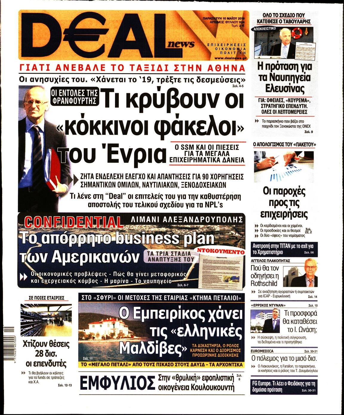 Οι οικονομικές εφημερίδες 10/5/2019 Enikos Newsroom 06:56, Παρασκευή 10 Μαΐου 2019 Media Διαβάστε τα πρωτοσέλιδα των οικονομικών εφημερίδων: ΟΙΚΟΝΟΜΙΚΕΣ ΕΦΗΜΕΡΙΔΕΣ ΠΡΩΤΟΣΕΛΙΔΑ Μοιράσου το: σχολίασε κι εσύ (0 σχόλια) Ακολουθήστε το enikos.gr στο Google News και μάθετε πρώτοι όλες τις ειδήσεις Δείτε όλες τις τελευταίες ειδήσεις από την Ελλάδα και τον Κόσμο στο enikos.gr Ειδήσεις Ροή Ειδήσεων 5 ώρες πριν Η κοινή διακήρυξη Ελλάδας – Κύπρου – Ισραήλ: Ενίσχυση αμυντικής συνεργασίας, δέσμευση για τον Great Sea Inteconnector – Τα μηνύματα της τριμερούς Συνόδου 5 ώρες πριν Αγρότες: Bάζουν στην άκρη τα τρακτέρ ενόψει Χριστουγέννων, θέμα ασφαλείας εγείρει η αστυνομία – Οι αναδιατάξεις που θα γίνουν από την Τρίτη 5 ώρες πριν Νεκρός ο άνδρας που έπεσε στις ράγες του Ηλεκτρικού στα Κάτω Πατήσια 8 ώρες πριν Αλεξανδρούπολη: Μήνυση υπέβαλε ο παππούς του 3χρονου που πέθανε από ασιτία – Αναζητούνται οι δράστες που τον ξυλοκόπησαν 4 ώρες πριν Ολλανδία: Αυτοκίνητο έπεσε σε πλήθος στην πόλη Νούνσπετ – Τουλάχιστον εννέα τραυματίες – ΦΩΤΟ και ΒΙΝΤΕΟ 5 ώρες πριν Το «μαγικό» υλικό της Αρχαιότητας βρίσκεται ακόμα ανάμεσά μας – Η επιστήμη έλυσε το μυστήριο 7 ώρες πριν Αριθμολογία: Η λέξη που σας χαρακτηρίζει, με βάση την ημερομηνία γέννησής σας – «Είναι η αύρα που εκπέμπετε πριν καν μιλήσετε» 6 ώρες πριν Ύπνος: Γιατρός μοιράζεται τα σημάδια που δείχνουν ότι μπορεί να πάσχετε από «ορμονική αϋπνία» 3 ημέρες πριν Enerwave: Το νέο «ρεύμα» στη λιανική ενέργειας που αλλάζει την εμπειρία του καταναλωτή 13 λεπτά πριν Μαδούρο για Τραμπ: «Θα τα πήγαινε καλύτερα αν επικεντρωνόταν στις υποθέσεις της χώρας του» 33 λεπτά πριν Τραγωδία στο Μεξικό: Συνετρίβη αεροσκάφος του Ναυτικού – Τουλάχιστον δύο νεκροί 56 λεπτά πριν Τραμπ για Μαδούρο: «Θα ήταν έξυπνο να εγκαταλείψει την εξουσία» – ΒΙΝΤΕΟ 1 ώρα πριν «Είμαστε ένα»: 3.330.000 ευρώ συγκεντρώθηκαν για τα παιδιά στον Χριστουγεννιάτικο Τηλεμαραθώνιο του ΑΝΤ1 2 ώρες πριν Παναμάς: Το δεξαμενόπλοιο που κατασχέθηκε το Σάββατο από αμερικανικές δυνάμεις παραβίαζε τους κανόνες του ναυτικού δικαίου ENIKOS NETWORK Στέλνετε ακόμα Χριστουγεννιάτικες κάρτες; Τι μπορεί να δείχνει για την προσωπικότητά σας Ενεργειακή αναβάθμιση του νοσοκομείου Πατρών «Ο Άγιος Ανδρέας» ΔΕΔΔΗΕ: Τάσεις αποκλιμάκωσης των ρευματοκλοπών αλλά παραμένουν σε υψηλά επίπεδα – Τι δείχνουν τα τελευταία στοιχεία ΥΠΑΑΤ – Ελληνική Αναπτυξιακή Τράπεζα: Συμφωνία για 3 νέα χρηματοδοτικά εργαλεία με μόχλευση πόρων 365 εκατ. ευρώ Ο Google Assistant θα παραμείνει λίγο περισσότερο για ορισμένους χρήστες Android Τεστ προσωπικότητας: Το βάζο που θα επιλέξετε αποκαλύπτει πώς λύνετε προβλήματα στη ζωή σας περισσότερα 20:16 , Δευτέρα 22 Δεκεμβρίου 2025 «Το παιδί από την αρχή»: Special edition επεισόδια της επιτυχημένης σειράς αρχίζουν από σήμερα στην ΕΡΤ1 «Το παιδί», η ξεχωριστή σειρά της ΕΡΤ1 με στοιχεία μαύρης κωμωδίας, που φέρει την υπογραφή του... 19:41 , Δευτέρα 22 Δεκεμβρίου 2025 Porto Leone: Στη γειτονιά με τα κόκκινα φανάρια – Η Αλεξάνδρα ανακαλύπτει το μυστικό της Γαλήνης και της στήνει παγίδα Απόψε στις 22:30 στον Alpha η συγκλονιστική συνέχεια της δραματικής σειράς του Apha «Porto Leo... 19:16 , Δευτέρα 22 Δεκεμβρίου 2025 Άγιος έρωτας: Η Πετρούλα αφήνει την τελευταία της πνοή Καθηλώνει το προτελευταίο επεισόδιο της χρονιάς της σειράς “Άγιος Έρωτας” απόψε στ... 18:39 , Δευτέρα 22 Δεκεμβρίου 2025 Να μ’αγαπάς: Ο Θεόφιλος απειλεί να καταστρέψει τη Ζωή Σοκαριστικές αποκαλύψεις έρχονται στο 
