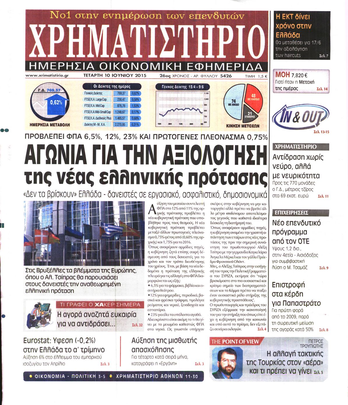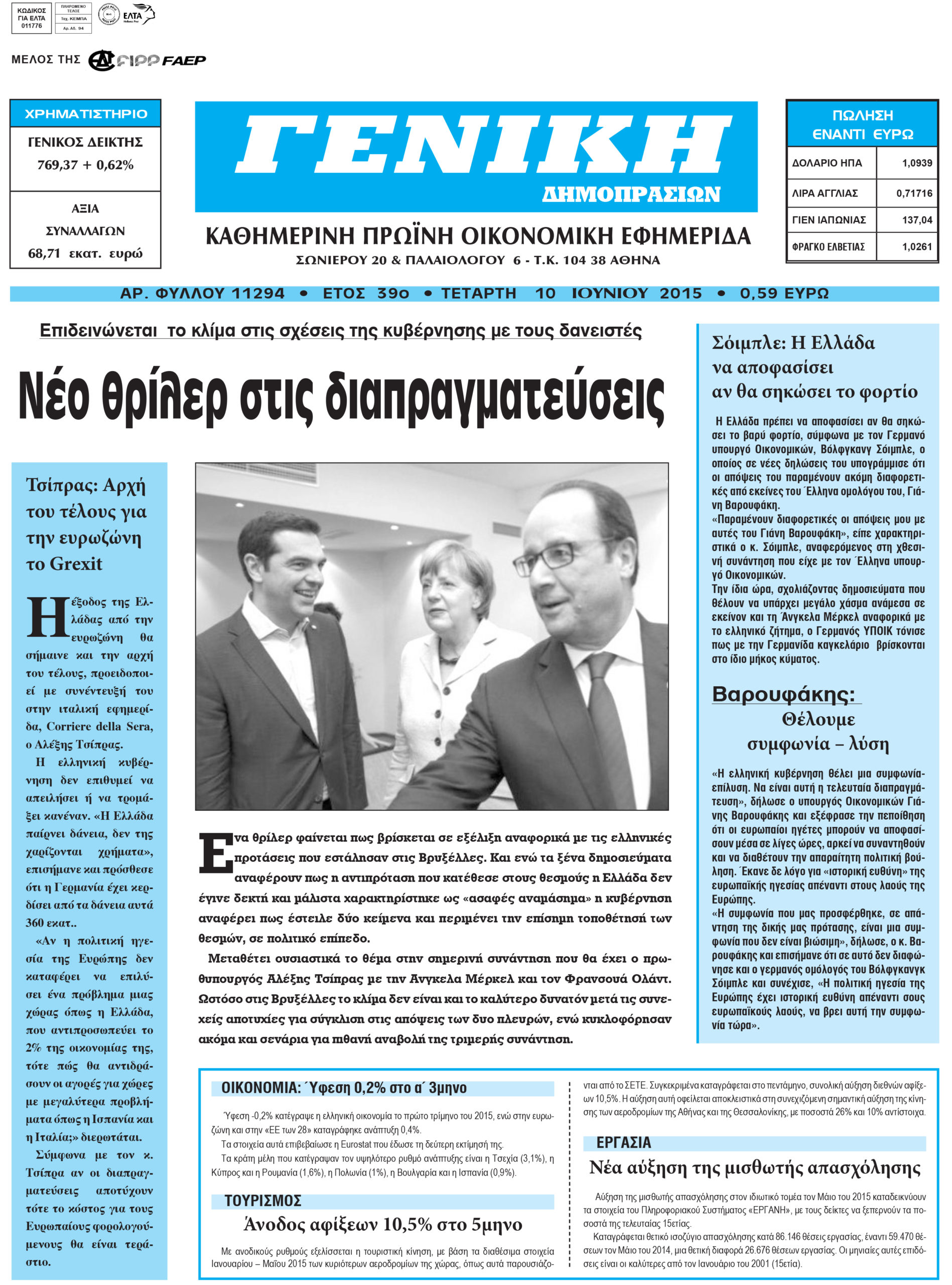 Oι οικονομικές εφημερίδες 10/6/2015 Enikos Newsroom 06:49, Τετάρτη 10 Ιουνίου 2015 Media Διαβάστε τα σημερινά πρωτοσέλιδα των οικονομικών εφημερίδων: ΟΙΚΟΝΟΜΙΚΕΣ ΕΦΗΜΕΡΙΔΕΣ ΠΡΩΤΟΣΕΛΙΔΑ Μοιράσου το: σχολίασε κι εσύ (0 σχόλια) Ακολουθήστε το enikos.gr στο Google News και μάθετε πρώτοι όλες τις ειδήσεις Δείτε όλες τις τελευταίες ειδήσεις από την Ελλάδα και τον Κόσμο στο enikos.gr Ειδήσεις Ροή Ειδήσεων 22 λεπτά πριν Πώς στήθηκε η επιχείρηση «Ίπαλλος» που οδήγησε στη σύλληψη του «Έλληνα Εσκομπάρ» – «Ο πόλεμος ενάντια στους εμπόρους ναρκωτικών θα συνεχιστεί» 7 λεπτά πριν Δίκη Χρυσής Αυγής: Την ενοχή και των 42 κατηγορουμένων ζητά η εισαγγελέας 27 λεπτά πριν Κυψέλη: Στη φυλακή η 16χρονη που μαχαίρωσε συμμαθήτριά της 3 ώρες πριν Αμοργός: «Θα προσπαθήσω να το κάνω κάθε μέρα» – Ποιος είναι ο αγρότης που έστησε μόνος του το πρώτο μπλόκο στο νησί 1 ώρα πριν Τραγωδία στην Αλεξανδρούπολη: Παιδάκι 3 ετών μεταφέρθηκε νεκρό από τη μητέρα του στο νοσοκομείο 33 λεπτά πριν Τα 3 ζώδια που θα δουν τη ζωή τους να αλλάζει ριζικά το 2026 – «Όλα γίνονται καλύτερα σταδιακά» 6 ώρες πριν «Δεν είχα κλάψει από τότε που διαγνώστηκα με καρκίνο, ώσπου ένα τηλεφώνημα με έκανε να λυγίσω» – Η συγκλονιστική εξομολόγηση ενός άνδρα 1 ώρα πριν Ο σπάνιος σεισμός που έλυσε τα χέρια των επιστημόνων – Αποκάλυψε ακριβώς όσα αναζητούσαν 7 ώρες πριν 20 χρόνια τα Χριστούγεννα ξεκινούν στα Public με μεγάλη ποικιλία σε δώρα! 57 δευτερόλεπτα πριν Τραγωδία στην Αχαΐα: 48χρονος κατέρρευσε στο κυνήγι μπροστά στα μάτια του πατέρα του 7 λεπτά πριν Δίκη Χρυσής Αυγής: Την ενοχή και των 42 κατηγορουμένων ζητά η εισαγγελέας 9 λεπτά πριν Μαρκέλλα Γιαννάτου: «Είμαι κοντά στα 14 χρόνια σε ψυχανάλυση – Είχα αρχίσει να έχω κρίσεις άγχους, νόμιζα ότι θα πεθάνω» 16 λεπτά πριν Υπουργείο Αγροτικής Ανάπτυξης: Πώς θα γίνει η πληρωμή αγροτεμαχίων έως 20 στρέμματα παρά τα ζητήματα ΚΑΕΚ 22 λεπτά πριν Πώς στήθηκε η επιχείρηση «Ίπαλλος» που οδήγησε στη σύλληψη του «Έλληνα Εσκομπάρ» – «Ο πόλεμος ενάντια στους εμπόρους ναρκωτικών θα συνεχιστεί» ENIKOS NETWORK Σοβαροί κίνδυνοι από τη λάθος χορήγηση φαρμάκου για τις αιμορραγίες-Συστάσεις προς τους γιατρούς 5 πράγματα που αποφεύγει γαστρεντερολόγος για να μειώσει τον κίνδυνο καρκίνου του εντέρου Eurostat: Κάτω από την αρχική εκτίμηση της Υπηρεσίας ο πληθωρισμός στην Ελλάδα τον Νοέμβριο του 2025 – Tα στοιχεία για την ... Συντάξεις Ιανουαρίου 2026: Σε ποιους θα πιστωθούν την Πέμπτη τα χρήματα και τι αυξήσεις θα δοθούν – Δείτε αναλυτικά παραδεί... Χαρτογραφώντας το «σημείο χωρίς επιστροφή»: Για πρώτη φορά αποκαλύπτεται με λεπτομέρεια το ακανθώδες όριο της ατμόσφαιρας τ... Η Google καταργεί τη λειτουργία «dark web report» – Πώς θα μπορούν οι χρήστες να διαγράφουν τα δεδομένα τους περισσότερα 12:35 , Τετάρτη 17 Δεκεμβρίου 2025 Μίρκα Παπακωνσταντίνου: «Δεν ήμουν αισιόδοξη για τα νούμερα – Είμαι ρεαλίστρια» Στα γυρίσματα του εορταστικού επεισοδίου της αγαπημένης σειράς “Το Σόι Σου”, βρέθηκε η κάμερα ... 12:12 , Τετάρτη 17 Δεκεμβρίου 2025 Ακούστε την εκπομπή του Νίκου Χατζηνικολάου 17/12/2025 Ακούστε την εκπομπή του Νίκου Χατζηνικολάου στον ραδιοφωνικό σταθμό RealFm 97,8, την Τετάρτη 1... 11:35 , Τετάρτη 17 Δεκεμβρίου 2025 Home Alone: Το σπίτι της ταινίας θα ανακαινιστεί – Επιστροφή στην αισθητική της δεκαετίας του ’90 Οι νέοι ιδιοκτήτες του πραγματικού σπιτιού που παρουσιάζεται στην κλασική ταινία του 1990 «Hom... 11:25 , Τετάρτη 17 Δεκεμβρίου 2025 Grand Hotel: Απόψε το τελευταίο επεισόδιο 