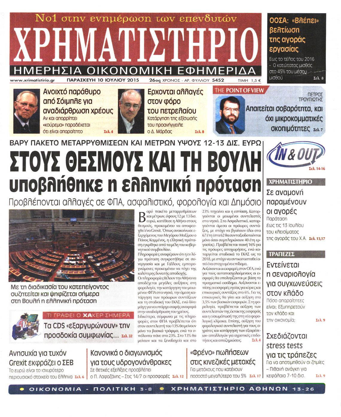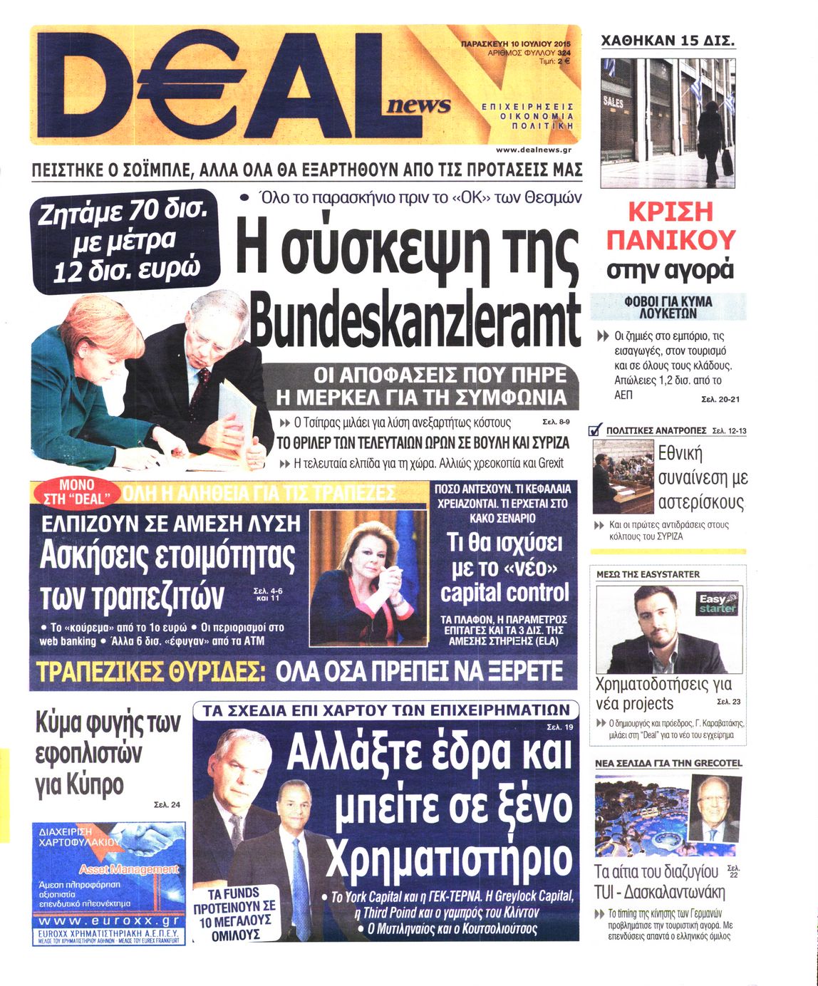Οι οικονομικές εφημερίδες 10/7/2015 Enikos Newsroom 06:24, Παρασκευή 10 Ιουλίου 2015 Media Διαβάστε τα σημερινά πρωτοσέλιδα των οικονομικών εφημερίδων: ΟΙΚΟΝΟΜΙΚΕΣ ΕΦΗΜΕΡΙΔΕΣ ΠΡΩΤΟΣΕΛΙΔΑ Μοιράσου το: σχολίασε κι εσύ (0 σχόλια) Ακολουθήστε το enikos.gr στο Google News και μάθετε πρώτοι όλες τις ειδήσεις Δείτε όλες τις τελευταίες ειδήσεις από την Ελλάδα και τον Κόσμο στο enikos.gr Ειδήσεις Ροή Ειδήσεων 7 λεπτά πριν Πώς στήθηκε η επιχείρηση «Ίπαλλος» που οδήγησε στη σύλληψη του «Έλληνα Εσκομπάρ» – «Ο πόλεμος ενάντια στους εμπόρους ναρκωτικών θα συνεχιστεί» 2 ώρες πριν Πούτιν: «Ανοησίες» και «υστερίες» οι ισχυρισμοί της Ευρώπης για πιθανή σύγκρουση με τη Ρωσία – «Κάνουν πλύση εγκεφάλου» 3 ώρες πριν Αμοργός: «Θα προσπαθήσω να το κάνω κάθε μέρα» – Ποιος είναι ο αγρότης που έστησε μόνος του το πρώτο μπλόκο στο νησί 12 λεπτά πριν Κυψέλη: Στη φυλακή η 16χρονη που μαχαίρωσε συμμαθήτριά της 1 ώρα πριν Τραγωδία στην Αλεξανδρούπολη: Παιδάκι 3 ετών μεταφέρθηκε νεκρό από τη μητέρα του στο νοσοκομείο 18 λεπτά πριν Τα 3 ζώδια που θα δουν τη ζωή τους να αλλάζει ριζικά το 2026 – «Όλα γίνονται καλύτερα σταδιακά» 5 ώρες πριν «Δεν είχα κλάψει από τότε που διαγνώστηκα με καρκίνο, ώσπου ένα τηλεφώνημα με έκανε να λυγίσω» – Η συγκλονιστική εξομολόγηση ενός άνδρα 1 ώρα πριν Ο σπάνιος σεισμός που έλυσε τα χέρια των επιστημόνων – Αποκάλυψε ακριβώς όσα αναζητούσαν 7 ώρες πριν 20 χρόνια τα Χριστούγεννα ξεκινούν στα Public με μεγάλη ποικιλία σε δώρα! 21 δευτερόλεπτα πριν Υπουργείο Αγροτικής Ανάπτυξης: Πώς θα γίνει η πληρωμή αγροτεμαχίων έως 20 στρέμματα παρά τα ζητήματα ΚΑΕΚ 7 λεπτά πριν Πώς στήθηκε η επιχείρηση «Ίπαλλος» που οδήγησε στη σύλληψη του «Έλληνα Εσκομπάρ» – «Ο πόλεμος ενάντια στους εμπόρους ναρκωτικών θα συνεχιστεί» 12 λεπτά πριν Κυψέλη: Στη φυλακή η 16χρονη που μαχαίρωσε συμμαθήτριά της 18 λεπτά πριν Τα 3 ζώδια που θα δουν τη ζωή τους να αλλάζει ριζικά το 2026 – «Όλα γίνονται καλύτερα σταδιακά» 21 λεπτά πριν Νέο επεισόδιο στην Εξεταστική ανάμεσα σε Κωνσταντοπούλου και Συρεγγέλα – Διακόπηκε προσωρινά η συνεδρίαση ENIKOS NETWORK 5 πράγματα που αποφεύγει γαστρεντερολόγος για να μειώσει τον κίνδυνο καρκίνου του εντέρου Ανησυχητική αύξηση της υπέρτασης στα παιδιά – Πώς θα τα προστατέψουμε; Συντάξεις Ιανουαρίου 2026: Σε ποιους θα πιστωθούν την Πέμπτη τα χρήματα και τι αυξήσεις θα δοθούν – Δείτε αναλυτικά παραδεί... ΕΛΕΤΑΕΝ: Πόσα χρήματα θα δοθούν σε δήμους και νοικοκυριά από τις ΑΠΕ Σύγχρονος Νοστράδαμος: Προειδοποιεί για «μεγάλο γεγονός» τους επόμενους μήνες που θα συγκλονίσει τη Βρετανία και τον κόσμο Τεστ παρατηρητικότητας: Μπορείτε να βρείτε τις 3 διαφορές στις εικόνες με έναν πιγκουίνο σε 14 δευτερόλεπτα περισσότερα 12:35 , Τετάρτη 17 Δεκεμβρίου 2025 Μίρκα Παπακωνσταντίνου: «Δεν ήμουν αισιόδοξη για τα νούμερα – Είμαι ρεαλίστρια» Στα γυρίσματα του εορταστικού επεισοδίου της αγαπημένης σειράς “Το Σόι Σου”, βρέθηκε η κάμερα ... 12:12 , Τετάρτη 17 Δεκεμβρίου 2025 Ακούστε την εκπομπή του Νίκου Χατζηνικολάου 17/12/2025 Ακούστε την εκπομπή του Νίκου Χατζηνικολάου στον ραδιοφωνικό σταθμό RealFm 97,8, την Τετάρτη 1... 11:35 , Τετάρτη 17 Δεκεμβρίου 2025 Home Alone: Το σπίτι της ταινίας θα ανακαινιστεί – Επιστροφή στην αισθητική της δεκαετίας του ’90 Οι νέοι ιδιοκτήτες του πραγματικού σπιτιού που παρουσιάζεται στην κλασική ταινία του 1990 «Hom... 11:25 , Τετάρτη 17 Δεκεμβρίου 2025 Grand Hotel: Απόψε το τελευταίο επεισόδιο της χρονιάς – Όλα τα μυστικά μένουν εδ