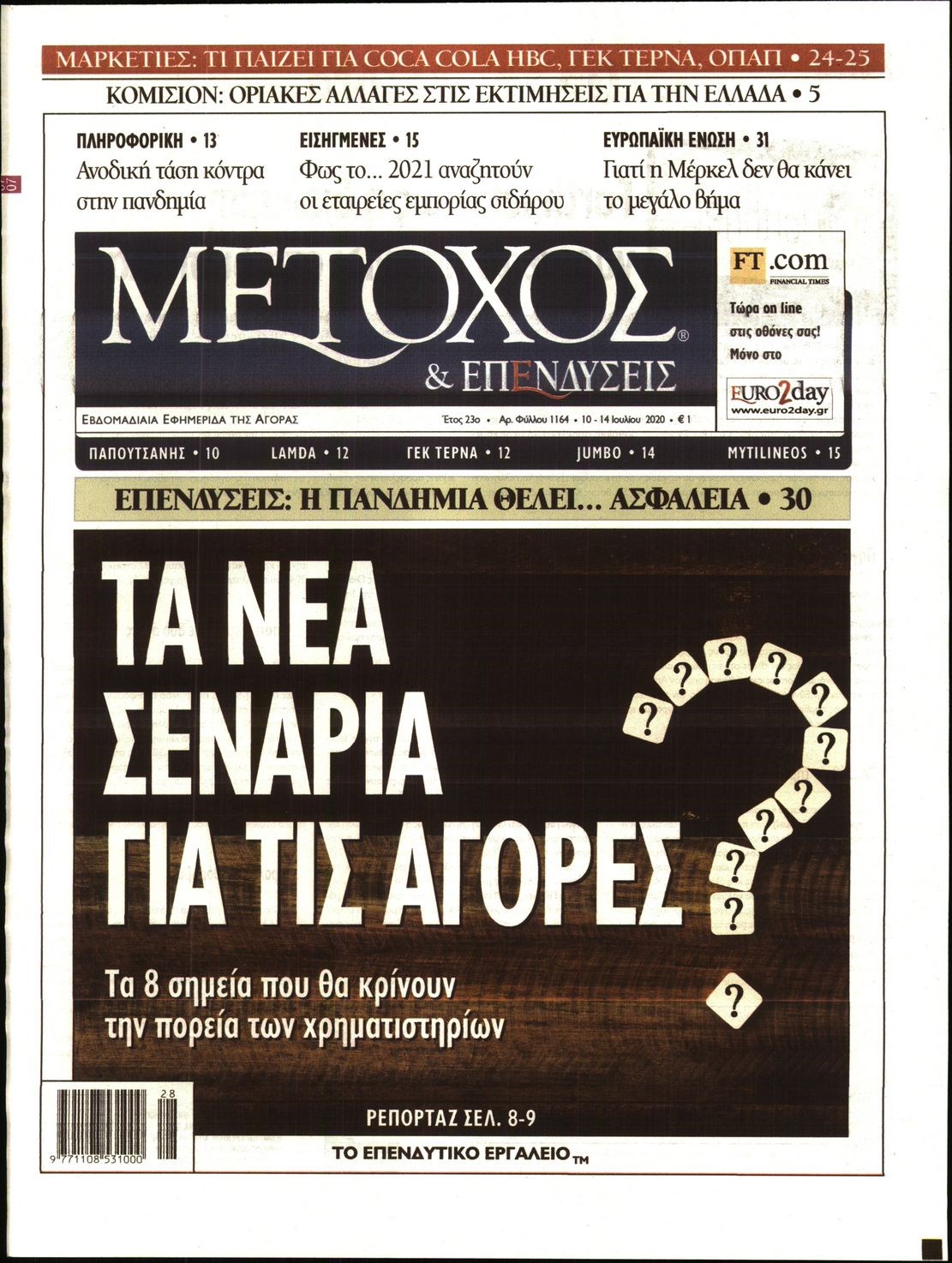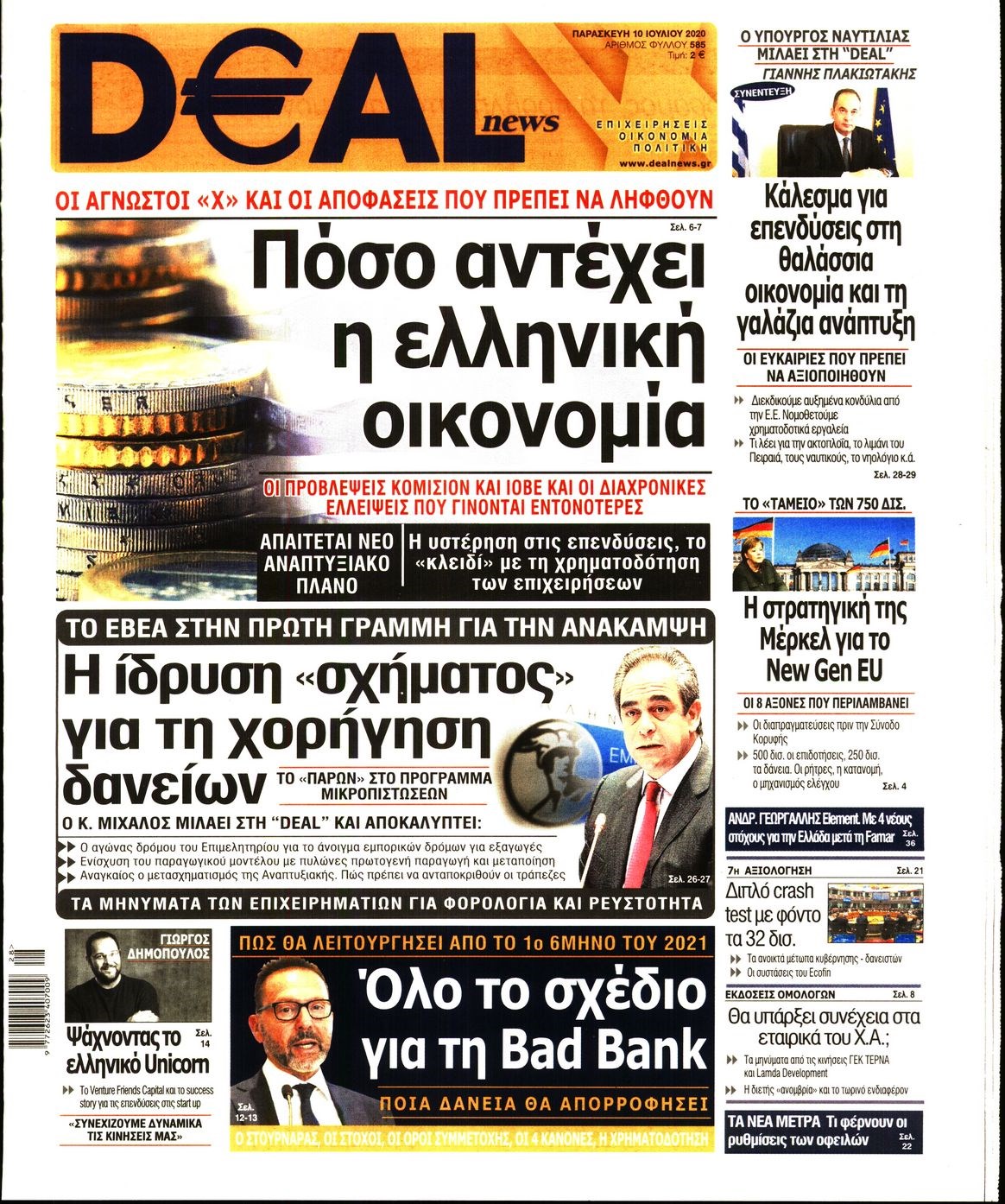 Οι οικονομικές εφημερίδες 10/7/2020 Διονύσης Νίκκας 06:28, Παρασκευή 10 Ιουλίου 2020 Media Διαβάστε τα πρωτοσέλιδα των οικονομικών εφημερίδων… ΟΙΚΟΝΟΜΙΚΕΣ ΕΦΗΜΕΡΙΔΕΣ Μοιράσου το: σχολίασε κι εσύ (0 σχόλια) Ακολουθήστε το enikos.gr στο Google News και μάθετε πρώτοι όλες τις ειδήσεις Δείτε όλες τις τελευταίες ειδήσεις από την Ελλάδα και τον Κόσμο στο enikos.gr Ειδήσεις Ροή Ειδήσεων 3 ώρες πριν Χριστούγεννα στα μπλόκα: Επιμένουν στις κινητοποιήσεις τους οι αγρότες – Ανοίγουν τα διόδια το Σαββατοκύριακο 3 ώρες πριν Ουκρανία: Η άνευ προηγουμένου επίθεση σε ρωσικό τάνκερ στη Μεσόγειο και το μήνυμα προς στον Πούτιν – Το «μακρύ χέρι» του Κιέβου 2 ώρες πριν Πούτιν: Τα μηνύματα σε Ευρώπη και ΝΑΤΟ από το μαραθώνιο «σόου» του – Η απαίτηση για «σεβασμό» και η ειρήνη «με τους όρους» της Μόσχας 3 ώρες πριν Τραμπ: Δεν αποκλείει την πιθανότητα ενός πολέμου στη Βενεζουέλα – «Ο Μαδούρο ξέρει καλύτερα από τον καθένα τι ακριβώς θέλω» 4 ώρες πριν Συνεχίζει να προκαλεί ο Μίτσκοσκι: «Για μένα το όνομα Μακεδονία είναι ιερό» 2 ώρες πριν Ανακαλύφθηκαν αρχαία χρυσά νομίσματα 2.200 ετών που απεικονίζουν τον θεό Απόλλωνα – Η άγνωστη σύνδεση με τον Φίλιππο Β΄ της Μακεδονίας 3 ώρες πριν Ύπνος: Μια κρυφή κατάσταση του εγκεφάλου πριν από τον ύπνο μπορεί να είναι το “κλειδί” για υψηλή ευφυΐα και δημιουργικότητα 4 ώρες πριν Αριθμολογία: Οι άνθρωποι που έχουν γεννηθεί αυτές τις 4 ημερομηνίες, συχνά παρεξηγούνται – «Η καλοσύνη τους κρύβει τεράστια δύναμη» 5 ώρες πριν Ξεχάστε το καθάρισμα το Σαββατοκύριακο: Ο «κανόνας των 20 λεπτών» που θα σας λύσει τα χέρια 18 λεπτά πριν Συρία: Μαζικά πλήγματα των ΗΠΑ σε θέσεις του Ισλαμικού Κράτους – Χέγκσεθ: «Δεν είναι αρχή πολέμου, είναι μια δήλωση εκδίκησης» για το θάνατο των στρατιωτών μας 31 λεπτά πριν Ουκρανία: Ολοκληρώθηκαν οι συνομιλίες με τους Αμερικανούς κι Ευρωπαίους διαπραγματευτές 46 λεπτά πριν Μπαρτσελόνα – Μπασκόνια 134-124: Οι «μπλαουγκράνα» πήραν το ματς της χρονιάς ύστερα από τρεις παρατάσεις 1 ώρα πριν Φαίη Σκορδά: «Παλιότερα τα κομπλιμέντα τα προσπερνούσα, τώρα τα έχω ανάγκη» 1 ώρα πριν Βασίλης Σπανούλης: Δεν εμφανίστηκε ούτε ένας δημοσιογράφος στην συνέντευξη Τύπου – «Καλησπέρα στον… κανέναν», δείτε βίντεο ENIKOS NETWORK Το ΕΚΑΒ τιμήθηκε από την Ακαδημία Αθηνών για τα 40 χρόνια προσφοράς του Έχετε πραγματικά μεγάλη καρδιά; 10 χαρακτηριστικά όσων έχουν καλοσύνη Αναστολή μέτρων αναγκαστικής εκτέλεσης για κτηνοτρόφους που πλήττονται από την ευλογιά των αιγοπροβάτων Πλήρης επάρκεια προϊόντων στις λαϊκές της Αττικής, παρά τις αγροτικές κινητοποιήσεις – Τι απαντούν οι πωλητές Χαρτογραφώντας το «σημείο χωρίς επιστροφή»: Για πρώτη φορά αποκαλύπτεται με λεπτομέρεια το ακανθώδες όριο της ατμόσφαιρας τ... Η Google καταργεί τη λειτουργία «dark web report» – Πώς θα μπορούν οι χρήστες να διαγράφουν τα δεδομένα τους περισσότερα 22:42 , Παρασκευή 19 Δεκεμβρίου 2025 Γιώργος Γιαννόπουλος για “Το σόι σου”: “Είναι ευτυχία και ευλογία αυτή η σειρά” «Είναι ευτυχία και ευλογία η συγκυρία αυτής της σειράς», θα πει ο Γιώργος Γιαννόπουλος -ο αγαπ... 20:37 , Παρασκευή 19 Δεκεμβρίου 2025 Don’t Forget The Lyrics: Η Έλλη Κοκκίνου υποδέχεται 4 παίκτες που θα κάνουν τα πάντα για να μη χάσουν ούτε… μισή λέξη από τους στίχους Το «Don’t Forget The Lyrics» επιστρέφει απόψε, Παρασκευή 19 Δεκεμβρίου, στις 21:00 με νέο επει... 19:31 , Παρασκευή 19 Δεκεμβρίου 2025 GNTM: Απόψε ο μεγάλος τελικός για τους 4 φιναλίστ Έπειτα από μήνες γεμάτους μό
