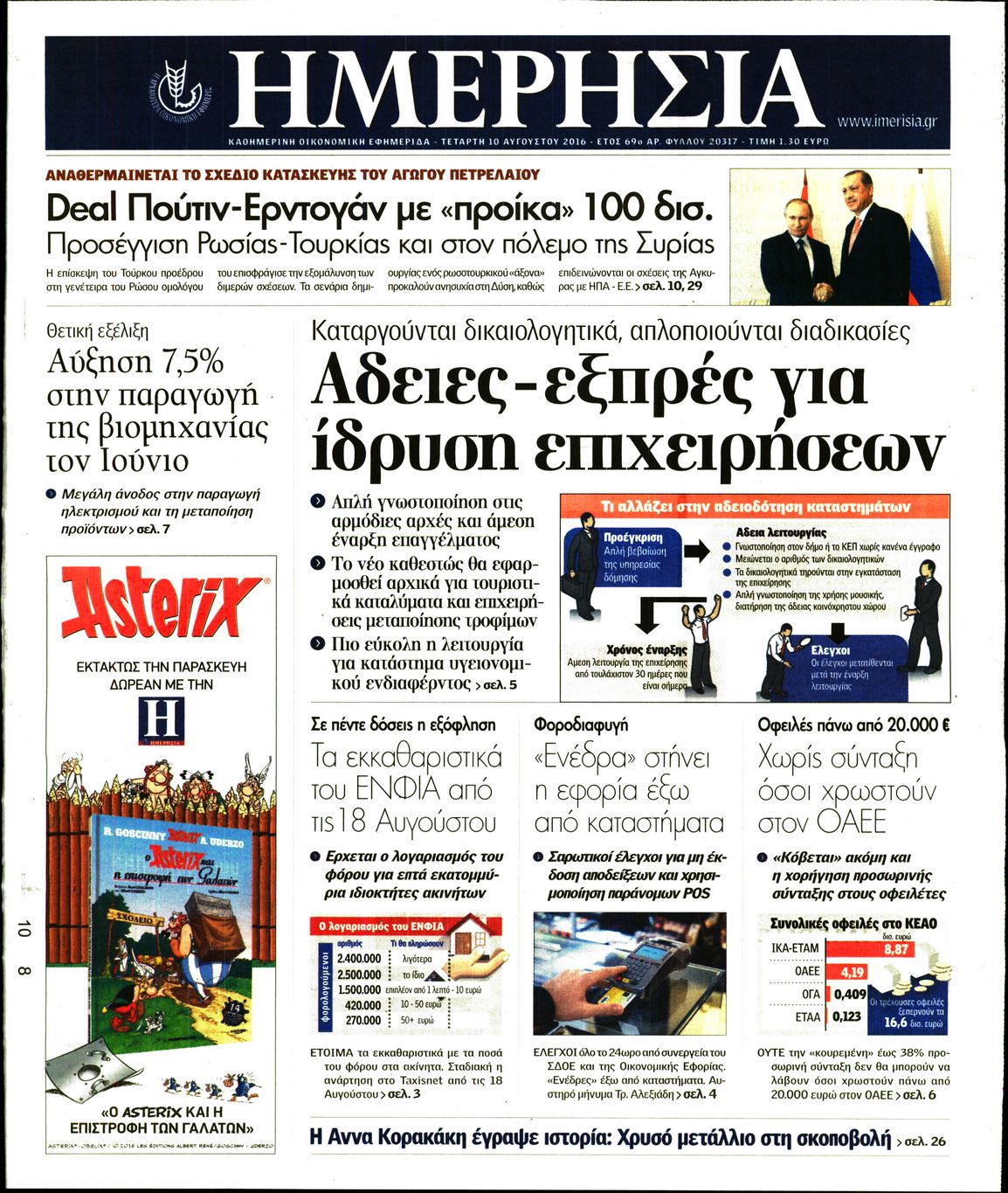 Οι οικονομικές εφημερίδες 10/8/2016 Enikos Newsroom 05:27, Τετάρτη 10 Αυγούστου 2016 Media Διαβάστε τα σημερινά πρωτοσέλιδα των οικονομικών εφημερίδων: ΟΙΚΟΝΟΜΙΚΕΣ ΕΦΗΜΕΡΙΔΕΣ ΠΡΩΤΟΣΕΛΙΔΑ Μοιράσου το: σχολίασε κι εσύ (0 σχόλια) Ακολουθήστε το enikos.gr στο Google News και μάθετε πρώτοι όλες τις ειδήσεις Δείτε όλες τις τελευταίες ειδήσεις από την Ελλάδα και τον Κόσμο στο enikos.gr Ειδήσεις Ροή Ειδήσεων 2 ώρες πριν Στεγαστικό: Όλο το σχέδιο για περισσότερα και φθηνότερα ενοικιαζόμενα σπίτια 34 λεπτά πριν Προϋπολογισμός 2026: Τα μηνύματα από την ομιλία Μητσοτάκη και τα «καρφιά» με πολλαπλούς αποδέκτες 1 ώρα πριν Αγρότες: Ορισμένοι ζητούν πιο σκληρή μορφή κινητοποιήσεων – Κρίσιμη η αυριανή σύσκεψη στις Σέρρες 35 λεπτά πριν Ρομπ Ράινερ: Το δείπνο με τους Ομπάμα που δεν έγινε ποτέ και νέα στοιχεία για τον «καβγά» στο πάρτι – Βίντεο με τον γιο του να περιφέρεται κοντά στο σπίτι της τραγωδίας 2 ώρες πριν Κανόνια λέιζερ σε φρεγάτες – Το επόμενο άλμα στις ναυτικές επιχειρήσεις – Δείτε βίντεο 3 ώρες πριν Οπτική ψευδαίσθηση: Μόνο αν είσαι ο Σέρλοκ Χολμς θα βρεις τον σκύλο σε 15 δευτερόλεπτα 3 ώρες πριν Υγεία του εντέρου: Προσθέστε 1 superfood στα scrambled eggs για καλύτερη πέψη και ευεξία 4 ώρες πριν Τα ζώδια σήμερα, Τετάρτη 17 Δεκεμβρίου: Κριοί, η αυτοπεποίθησή σας ενισχύεται 55 λεπτά πριν Νεολιθικός σκύλος βρέθηκε προσεκτικά θαμμένος στον βυθό λίμνης – Δίπλα του βρέθηκε ένα στιλέτο 10 λεπτά πριν Αγγελική Ηλιάδη: «Έχω βιώσει άρρωστη και κακοποιητική ζήλεια, δεν θα ήθελα ποτέ στη ζωή μου να το ξαναπεράσω αυτό» 18 λεπτά πριν Θεσσαλονίκη: Διέρρηξαν το σπίτι του προέδρου του δημοτικού συμβουλίου, Σπύρου Βούγια 25 λεπτά πριν Καρυστιανού: Δεν θα αυτοπροταθώ ως ηγέτης, παραποιούν τα λόγια μου για να με αποδομήσουν 30 λεπτά πριν Η μοναδική συνταγή της Μάρθα Στιούαρτ για gingerbread cookies 34 λεπτά πριν Προϋπολογισμός 2026: Τα μηνύματα από την ομιλία Μητσοτάκη και τα «καρφιά» με πολλαπλούς αποδέκτες ENIKOS NETWORK Δύο συστατικά που είναι καλό να βάλετε στον πρωινό σας καφέ – Βοηθούν στην απώλεια βάρους και τη ρύθμιση του σακχάρου Πρωτοποριακή θεραπεία για το Αλτσχάιμερ: Φως και ήχος μπορεί να επιβραδύνουν την εξέλιξη της νόσου Έρχεται «νοικοκύρεμα » στα ακίνητα- Τι πρέπει να γνωρίζουν οι πολίτες Στεγαστικό: Όλο το σχέδιο για περισσότερα και φθηνότερα ενοικιαζόμενα σπίτια Σύγχρονος Νοστράδαμος: Προειδοποιεί για «μεγάλο γεγονός» τους επόμενους μήνες που θα συγκλονίσει τη Βρετανία και τον κόσμο Τεστ παρατηρητικότητας: Μπορείτε να βρείτε τις 3 διαφορές στις εικόνες με έναν πιγκουίνο σε 14 δευτερόλεπτα περισσότερα 08:00 , Τετάρτη 17 Δεκεμβρίου 2025 Την Κυριακή με τη Realnews: Δωροεπιταγή 10€ Δωροεπιταγή αξίας 10€ για αγορές άνω των 60€ από τα πολυκαταστήματα FactoryOutlet H προσφορά ι... 07:00 , Τετάρτη 17 Δεκεμβρίου 2025 Την Κυριακή με τη Realnews: Ό,τι και αν αγοράσεις, σκανάρεις και κερδίζεις! Την Κυριακή με τη Realnews: Ό,τι και αν αγοράσεις, σκανάρεις και κερδίζεις! Με το PADU app, το... 05:48 , Τετάρτη 17 Δεκεμβρίου 2025 Οι οικονομικές εφημερίδες 17/12/2025 Διαβάστε τα πρωτοσέλιδα από τις οικονομικές εφημερίδες, σήμερα 17/12/2025. 05:43 , Τετάρτη 17 Δεκεμβρίου 2025 Οι αθλητικές εφημερίδες 17/12/2025 Διαβάστε τα πρωτοσέλιδα από τις αθλητικές εφημερίδες, σήμερα 17/12/2025. ΤΕΛΕΥΤΑΙΕΣ ΕΙΔΗΣΕΙΣ 10 λεπτά πριν Αγγελική Ηλιάδη: «Έχω βιώσει άρρωστη και κακοποιητική... 18 λεπτά πριν Θεσσαλονίκη: Διέρρηξαν το σπίτι του προέδρου του... 25 λεπτά πριν Καρυστιανού: Δεν θα αυτοπροταθώ ως ηγέτις, παραποιούν... 30 