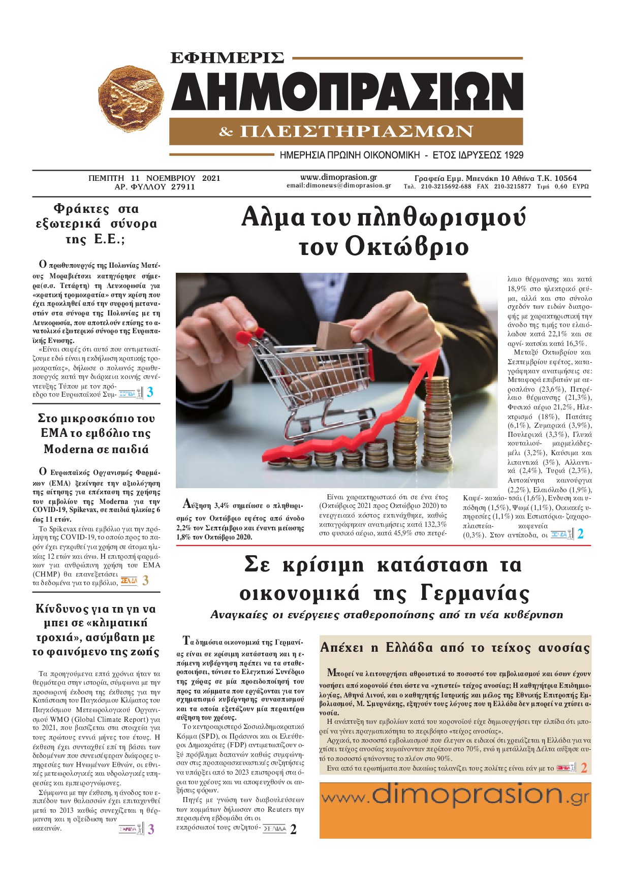 Οι οικονομικές εφημερίδες 11/11/2021 Διονύσης Νίκκας 06:50, Πέμπτη 11 Νοεμβρίου 2021 Media Διαβάστε τα πρωτοσέλιδα από τις οικονομικές εφημερίδες… ΟΙΚΟΝΟΜΙΚΕΣ ΕΦΗΜΕΡΙΔΕΣ Μοιράσου το: σχολίασε κι εσύ (0 σχόλια) Ακολουθήστε το enikos.gr στο Google News και μάθετε πρώτοι όλες τις ειδήσεις Δείτε όλες τις τελευταίες ειδήσεις από την Ελλάδα και τον Κόσμο στο enikos.gr Ειδήσεις Ροή Ειδήσεων 1 ώρα πριν Κλιμακώνουν από σήμερα τις κινητοποιήσεις οι αγρότες: Νέα μπλόκα, κλείσιμο παρακαμπτηρίων και άνοιγμα διοδίων – Το νέο μήνυμα Μητσοτάκη 24 λεπτά πριν Ευρωπαϊκό Συμβούλιο: Όλες οι λεπτομέρειες για το δάνειο των 90 δισ. ευρώ στην Ουκρανία – Τα συμπεράσματα της Συνόδου Κορυφής 2 ώρες πριν Συντάξεις: Οι κερδισμένοι και οι χαμένοι από τις αυξήσεις – Αναλυτικός οδηγός και παραδείγματα 2 ώρες πριν Θανατηφόρο τροχαίο στη Νέα Φιλαδέλφεια: Νεκρός 27χρονος οδηγός μηχανής ύστερα από σύγκρουση με τρόλεϊ 27 λεπτά πριν Peter Greene: Ο πρωταγωνιστής του «Pulp Fiction» είχε τραύματα στο σώμα του όταν βρέθηκε νεκρός στο αιματοβαμμένο διαμέρισμα 3 ώρες πριν Κρύα χέρια και πόδια: Γιατρός εξηγεί ποια είναι η αίτια και πότε πρέπει να ανησυχήσετε 4 ώρες πριν Τα ζώδια σήμερα, Παρασκευή 19 Δεκεμβρίου: Τοξότες, με τη Νέα Σελήνη έρχεται η προσωπική ανανέωσή σας 55 λεπτά πριν Πώς το αρχαίο DNA του κυνηγού – συλλέκτη ξεκλείδωσε τα μυστικά της μακροζωίας 2 ημέρες πριν 20 χρόνια τα Χριστούγεννα ξεκινούν στα Public με μεγάλη ποικιλία σε δώρα! 6 λεπτά πριν Νίκος Παππάς: Δρομολογήθηκαν οι διαδικασίες για τη διαγραφή του από τον ΣΥΡΙΖΑ μέσα στις γιορτές 11 λεπτά πριν Τραγωδία στη Θεσσαλονίκη: Νεκρός 19χρονος που έπεσε από μπαλκόνι τετάρτου ορόφου 16 λεπτά πριν Περιοδικό Science: Η ανάπτυξη των ανανεώσιμων πηγών ενέργειας «Ανακάλυψη της Χρονιάς» για το 2025 21 λεπτά πριν Κρήτη: Πάνω από 500 μετανάστες διασώθηκαν ανοιχτά της Γαύδου 24 λεπτά πριν Ευρωπαϊκό Συμβούλιο: Όλες οι λεπτομέρειες για το δάνειο των 90 δισ. ευρώ στην Ουκρανία – Τα συμπεράσματα της Συνόδου Κορυφής ENIKOS NETWORK 24χρονη που έπασχε από καρκίνο του εντέρου αγνόησε 3 βασικά συμπτώματα: «Μην κάνετε το ίδιο λάθος με μένα» Άνοια: Ειδικοί προειδοποιούν για 5 κοινές συνήθειες που μπορεί να αυξήσουν τον κίνδυνο Συντάξεις: Οι κερδισμένοι και οι χαμένοι από τις αυξήσεις – Αναλυτικός οδηγός Στεγαστικό: Τι λέει η ΠΟΜΙΔΑ για τα νέα μέτρα που ανακοίνωσε ο Κυριάκος Μητσοτάκης Χαρτογραφώντας το «σημείο χωρίς επιστροφή»: Για πρώτη φορά αποκαλύπτεται με λεπτομέρεια το ακανθώδες όριο της ατμόσφαιρας τ... Η Google καταργεί τη λειτουργία «dark web report» – Πώς θα μπορούν οι χρήστες να διαγράφουν τα δεδομένα τους περισσότερα 08:00 , Παρασκευή 19 Δεκεμβρίου 2025 Την Κυριακή με τη Realnews: Δωροεπιταγή 10€ Δωροεπιταγή αξίας 10€ για αγορές άνω των 60€ από τα πολυκαταστήματα FactoryOutlet H προσφορά ι... 05:48 , Παρασκευή 19 Δεκεμβρίου 2025 Οι οικονομικές εφημερίδες 19/12/2025 Διαβάστε τα πρωτοσέλιδα από τις οικονομικές εφημερίδες, σήμερα 19/12/2025. 05:43 , Παρασκευή 19 Δεκεμβρίου 2025 Οι αθλητικές εφημερίδες 19/12/2025 Διαβάστε τα πρωτοσέλιδα από τις αθλητικές εφημερίδες, σήμερα 19/12/2025. 05:38 , Παρασκευή 19 Δεκεμβρίου 2025 Οι πολιτικές εφημερίδες 19/12/2025 Διαβάστε τα πρωτοσέλιδα από τις πολιτικές εφημερίδες, σήμερα 19/12/2025. ΤΕΛΕΥΤΑΙΕΣ ΕΙΔΗΣΕΙΣ 6 λεπτά πριν Νίκος Παππάς: Δρομολογήθηκαν οι διαδικασίες για τη... 11 λεπτά πριν Τραγωδία στη Θεσσαλονίκη: Νεκρός 19χρονος που έπεσε... 16 λεπτά πριν Περιοδικό Science: Η ανάπτυξη των ανανεώσιμων πηγών... 21 λεπτά πριν Κρήτη: Πάνω α