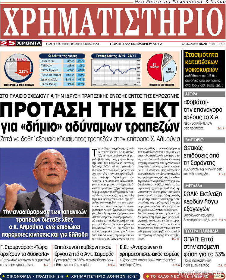 Οι οικονομικές εφημερίδες Enikos Newsroom 09:16, Πέμπτη 29 Νοεμβρίου 2012 Media Οι οικονομικές εφημερίδες Τα πρωτοσέλιδα των οικονομικών εφημερίδων. ΕΦΗΜΕΡΙΔΕΣ ΟΙΚΟΝΟΜΙΚΕΣ ΕΦΗΜΕΡΙΔΕΣ ΠΡΩΤΟΣΕΛΙΔΑ Μοιράσου το: σχολίασε κι εσύ (0 σχόλια) Ακολουθήστε το enikos.gr στο Google News και μάθετε πρώτοι όλες τις ειδήσεις Δείτε όλες τις τελευταίες ειδήσεις από την Ελλάδα και τον Κόσμο στο enikos.gr Ειδήσεις Ροή Ειδήσεων 2 ώρες πριν Κυψέλη: Για πρώτη ημέρα βρισκόταν στο σχολείο η 16χρονη που επιτέθηκε με μαχαίρι στην 14χρονη – Τι αναφέρουν μαρτυρίες μαθητών για το επεισόδιο 56 λεπτά πριν Ρομπ και Μισέλ Ράινερ: Συνελήφθη ο γιος τους ως ύποπτος για την δολοφονία τους 3 ώρες πριν Τσιάρας: Καλούμε άμεσα τους εκπροσώπους των αγροτών σε ουσιαστικό διάλογο – Υπάρχουν περιθώρια, η κοινωνία περιμένει υπευθυνότητα 50 λεπτά πριν Σίδνεϊ: Δεύτερος ήρωας κλωτσάει το όπλο του δράστη πριν τον πυροβολήσουν οι αστυνομικοί και τον χτυπήσουν πολίτες κατά λάθος 1 ώρα πριν Γερμανία: Ολοκληρώθηκαν οι συνομιλίες ΗΠΑ-Ουκρανίας – Άγνωστο εάν οι Αμερικανοί διαπραγματευτές θα συμμετάσχουν στη συνάντηση με τους Ευρωπαίους ηγέτες 3 ώρες πριν Τα 3 ζώδια που θα έχουν τύχη «βουνό» έως τις 21 Δεκεμβρίου – «Η ανατροπή που περιμένετε πλησιάζει» 7 ώρες πριν Μακροζωία: 55χρονος που ισχυρίζεται ότι βιολογικά είναι 20 ετών μοιράζεται μια απλή συμβουλή για υγιή εγκέφαλο 8 ώρες πριν Οι 8 φράσεις που δίνουν αμέσως την εντύπωση πως είστε δύσκολος άνθρωπος 10 ώρες πριν Κληρονόμησε 2,8 εκατ. ευρώ και φοβάται ότι οι άνδρες θα την πλησιάζουν για τα λεφτά – «Μήπως καλύτερα να το κρατήσω μυστικό;» 34 δευτερόλεπτα πριν Συνέδριο «Ελληνικός Τουρισμός 2025, Μια εθνική υπόθεση!» – «Ο Θαλάσσιος Πυλώνας ως Ενιαία Στρατηγική: Συνέργειες σε Λιμάνια, Μαρίνες, Ακτοπλοΐα, Κρουαζιέρα και Yachting». 6 λεπτά πριν Το συγκλονιστικό «αντίο» του Χρήστου Ζαφείρη στη Σλάβια Πράγας – «Οι αναμνήσεις που δημιουργήσαμε θα μείνουν για πάντα μαζί μου» 11 λεπτά πριν Βρετανία: Η νέα αρχηγός της ΜΙ6 προειδοποιεί για αυξανόμενη ρωσική απειλή – «Επιθετικότητα, επεκτατισμός και αναθεωρητισμός από τον Πούτιν» 17 λεπτά πριν FBI: Ανακοίνωσε ότι απέτρεψε τρομοκρατική επίθεση την παραμονή της Πρωτοχρονιάς στην Καλιφόρνια – Πέντε συλλήψεις 22 λεπτά πριν Εξάρχεια: Άνδρας έβαλε με τη βία την σύντροφό του μέσα σε αυτοκίνητο και την απείλησε με ψεύτικο όπλο ENIKOS NETWORK Στο νοσοκομείο 15χρονη μαθήτρια μετά από μαχαίρωμα μέσα σε γυμνάσιο της Αθήνας Οι 9 κορυφαίες ιατρικές έρευνες για το 2025 που αλλάζουν το τοπίο της υγείας Υγειονομικοί: Ανανεώνονται οι συμβάσεις εργαζομένων άνω των 55 ετών στο ΕΣΥ – Τα 2 νέα προγράμματα στη ΔΥΠΑ Κεραμέως στη Βουλή: Στόχος για το 2026 η αύξηση μισθών και η μείωση ανεργίας κάτω από το 8% Σύγχρονος Νοστράδαμος: Προειδοποιεί για «μεγάλο γεγονός» τους επόμενους μήνες που θα συγκλονίσει τη Βρετανία και τον κόσμο Τεστ παρατηρητικότητας: Μπορείτε να βρείτε τις 3 διαφορές στις εικόνες με έναν πιγκουίνο σε 14 δευτερόλεπτα περισσότερα 18:13 , Δευτέρα 15 Δεκεμβρίου 2025 Συνέδριο «Ελληνικός Τουρισμός 2025, Μια εθνική υπόθεση!» – Κικίλιας: «Μεγάλα asset της Ελλάδας η ναυτιλία και ο τουρισμός» Στον θαλάσσιο οικονομικό «πυλώνα» της χώρας μας και τις δυνατότητες που κρύβει για το μέλλον α... 15:31 , Δευτέρα 15 Δεκεμβρίου 2025 Συνέδριο «Ελληνικός Τουρισμός 2025, Μια εθνική υπόθεση!» – Το στοίχημα του ανθρώπινου δυναμικού στον τουρισμό Τον κρίσιμο ρόλο της εκπαίδευσης, της κατάρτισης και τη