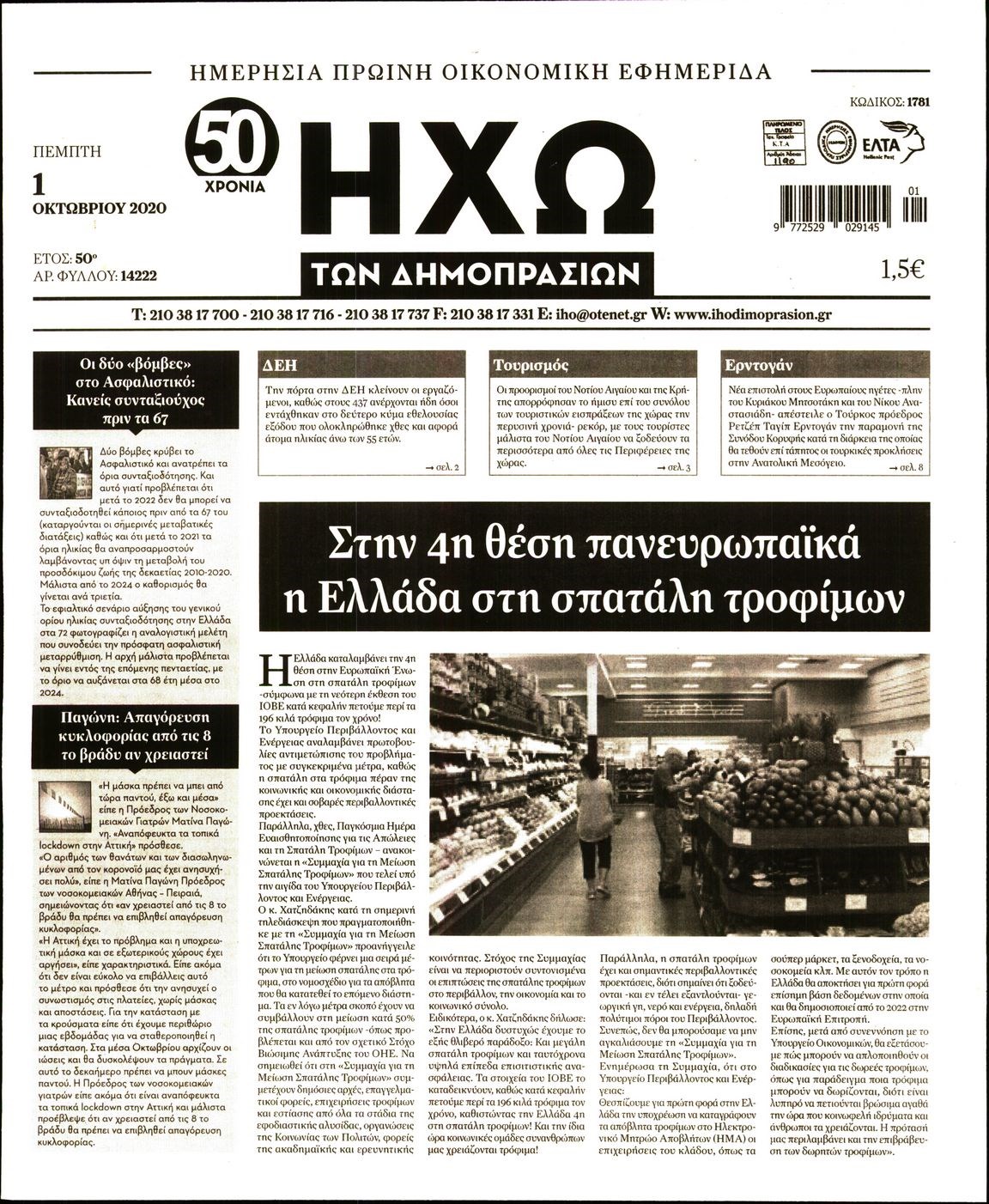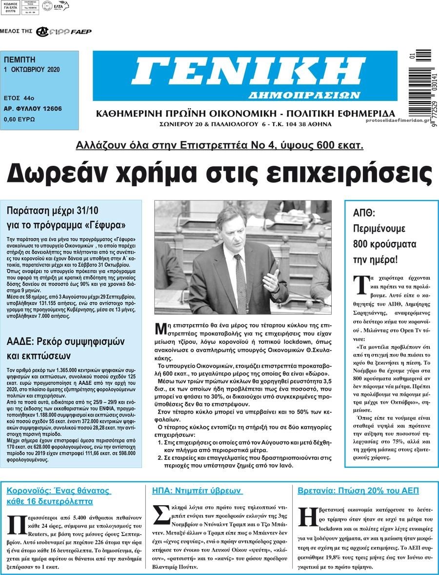Οι οικονομικές εφημερίδες 1/10/2020 Διονύσης Νίκκας 06:43, Πέμπτη 01 Οκτωβρίου 2020 Media Διαβάστε τα πρωτοσέλιδα των οικονομικών εφημερίδων… ΟΙΚΟΝΟΜΙΚΕΣ ΕΦΗΜΕΡΙΔΕΣ Μοιράσου το: σχολίασε κι εσύ (0 σχόλια) Ακολουθήστε το enikos.gr στο Google News και μάθετε πρώτοι όλες τις ειδήσεις Δείτε όλες τις τελευταίες ειδήσεις από την Ελλάδα και τον Κόσμο στο enikos.gr Ειδήσεις Ροή Ειδήσεων 2 ώρες πριν Κυριάκος Μητσοτάκης: «Κάποιοι αγρότες δεν αισθάνονται την ανάγκη να διαφωνήσουν με τις προτάσεις της κυβέρνησης, η Ευρώπη στέκεται στο πλευρό της Ουκρανίας» 7 ώρες πριν ΟΠΕΚΕΠΕ: Προφυλακιστέος ο φερόμενος αρχηγός και ο λογιστής της εγκληματικής οργάνωσης 8 ώρες πριν Αυξάνουν την πίεση προς την κυβέρνηση οι αγρότες: Κλείνουν παρακαμπτήριους και ανοίγουν διόδια – Τι θα γίνει τις γιορτές 8 ώρες πριν Φοινικούντα: Το Σάββατο απολογείται ο 30χρονος γιος γνωστού επιχειρηματία της Πλάκας που παραδόθηκε – Όσα είπε στους αστυνομικούς και ο ρόλος του στο έγκλημα 7 ώρες πριν ΑΕΚ – Κραϊόβα 3-2: Επική ανατροπή και πρόκριση στους «16» του Conference League η Ένωση 8 ώρες πριν Αρχαιολόγοι ανακάλυψαν ρωμαϊκά τεχνουργήματα από μια πόλη που δεν υπήρξε ποτέ – Τα τρία εντυπωσιακά κτίρια και ο αμφορέας με τις… σαρδέλες 9 ώρες πριν Ύπνος: Η απλή βραδινή ρουτίνα για να προστατεύσετε τα μαλλιά σας από το κρύο κατά τη διάρκεια του χειμώνα 10 ώρες πριν Manifesting: Πώς να συναντήσετε τον σύντροφο της ζωής σας, ανάλογα με τον μήνα γέννησής σας 2 ημέρες πριν 20 χρόνια τα Χριστούγεννα ξεκινούν στα Public με μεγάλη ποικιλία σε δώρα! 12 λεπτά πριν Απειλή για το Προϋπολογισμό τα ληξιπρόθεσμα χρέη των ιδιωτών προς την εφορία 12 λεπτά πριν Πέντε νεκροί σε πλήγματα των ΗΠΑ κατά δύο σκαφών που φέρεται να μετέφεραν ναρκωτικά στον Ανατολικό Ειρηνικό 21 λεπτά πριν ΕΥΔΑΠ: Αλλάζουν τα τιμολόγια του νερού 28 λεπτά πριν Οπτική ψευδαίσθηση: Μόνο αν έχεις αετίσια ματιά θα βρεις τον παπαγάλο σε 12 δευτερόλεπτα 35 λεπτά πριν Αθήνα: Βρέθηκε η 16χρονη που είχε εξαφανιστεί από τις 6 Δεκεμβρίου – Η ανακοίνωση από το «Χαμόγελο του Παιδιού» ENIKOS NETWORK Σε περίοδο αυξημένης δραστηριότητας η γρίπη στην Ελλάδα-Μέτρα προστασίας από τον ΕΟΔΥ Σκέφτεστε συνέχεια συζητήσεις που έχετε κάνει; Τι σημαίνει αυτό, σύμφωνα με ειδικό Στεγαστικό: Τι λέει η ΠΟΜΙΔΑ για τα νέα μέτρα που ανακοίνωσε ο Κυριάκος Μητσοτάκης Λαγκάρντ: Αισιόδοξη για την ανάπτυξη της Ευρωζώνης, αβέβαιη για τον πληθωρισμό Χαρτογραφώντας το «σημείο χωρίς επιστροφή»: Για πρώτη φορά αποκαλύπτεται με λεπτομέρεια το ακανθώδες όριο της ατμόσφαιρας τ... Η Google καταργεί τη λειτουργία «dark web report» – Πώς θα μπορούν οι χρήστες να διαγράφουν τα δεδομένα τους περισσότερα 05:48 , Παρασκευή 19 Δεκεμβρίου 2025 Οι οικονομικές εφημερίδες 19/12/2025 Διαβάστε τα πρωτοσέλιδα από τις οικονομικές εφημερίδες, σήμερα 19/12/2025. 05:43 , Παρασκευή 19 Δεκεμβρίου 2025 Οι αθλητικές εφημερίδες 19/12/2025 Διαβάστε τα πρωτοσέλιδα από τις αθλητικές εφημερίδες, σήμερα 19/12/2025. 05:38 , Παρασκευή 19 Δεκεμβρίου 2025 Οι πολιτικές εφημερίδες 19/12/2025 Διαβάστε τα πρωτοσέλιδα από τις πολιτικές εφημερίδες, σήμερα 19/12/2025. 02:50 , Παρασκευή 19 Δεκεμβρίου 2025 GNTM: «Κλείδωσαν» οι τέσσερις φιναλίστ – Μεγάλη ανατροπή στις τελευταίες αποχωρήσεις Για προτελευταία φορά εμφανίστηκαν στο πλατό του GNTM οι φιναλίστ του φετινού κύκλου, το βράδυ... ΤΕΛΕΥΤΑΙΕΣ ΕΙΔΗΣΕΙΣ 12 λεπτά πριν Απειλή για το Προϋπολογισμό τα ληξιπρόθεσμα χρέη των... 12 λεπτά πριν Πέντε νεκροί σε πλήγματα των ΗΠΑ κατά δύο σκαφών 