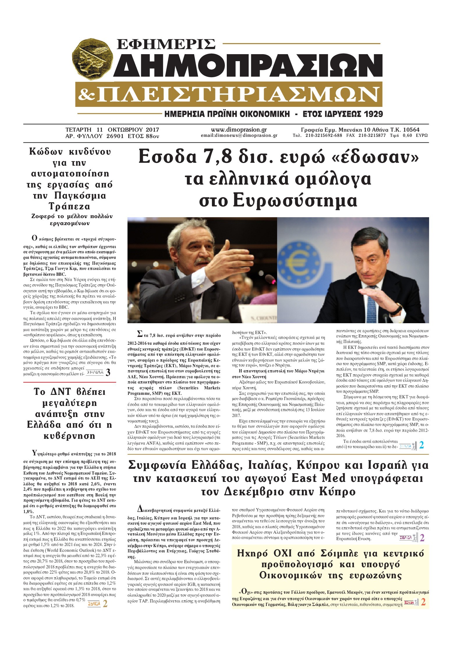 Oι οικονομικές εφημερίδες 11/10/2017 Enikos Newsroom 07:38, Τετάρτη 11 Οκτωβρίου 2017 Media Διαβάστε τα σημερινά πρωτοσέλιδα των οικονομικών εφημερίδων: ΟΙΚΟΝΟΜΙΚΕΣ ΕΦΗΜΕΡΙΔΕΣ ΠΡΩΤΟΣΕΛΙΔΑ Μοιράσου το: σχολίασε κι εσύ (0 σχόλια) Ακολουθήστε το enikos.gr στο Google News και μάθετε πρώτοι όλες τις ειδήσεις Δείτε όλες τις τελευταίες ειδήσεις από την Ελλάδα και τον Κόσμο στο enikos.gr Ειδήσεις Ροή Ειδήσεων 5 ώρες πριν Αυξάνουν την πίεση προς την κυβέρνηση οι αγρότες: Κλείνουν παρακαμπτήριους και ανοίγουν διόδια – Τι θα γίνει τις γιορτές 4 ώρες πριν ΟΠΕΚΕΠΕ: Προφυλακιστέος ο φερόμενος αρχηγός και ο λογιστής της εγκληματικής οργάνωσης 22 λεπτά πριν Ευρωπαϊκή Ένωση: Χωρίς συμφωνία, για την μακροπρόθεσμη χρηματοδότηση της Ουκρανίας, ολοκληρώθηκε η Σύνοδος Κορυφής στις Βρυξέλλες 3 ώρες πριν ΑΕΚ – Κραϊόβα 3-2: Επική ανατροπή και πρόκριση στους «16» του Conference League η Ένωση 5 ώρες πριν Φοινικούντα: Το Σάββατο απολογείται ο 30χρονος γιος γνωστού επιχειρηματία της Πλάκας που παραδόθηκε – Όσα είπε στους αστυνομικούς και ο ρόλος του στο έγκλημα 4 ώρες πριν Αρχαιολόγοι ανακάλυψαν ρωμαϊκά τεχνουργήματα από μια πόλη που δεν υπήρξε ποτέ – Τα τρία εντυπωσιακά κτίρια και ο αμφορέας με τις… σαρδέλες 5 ώρες πριν Ύπνος: Η απλή βραδινή ρουτίνα για να προστατεύσετε τα μαλλιά σας από το κρύο κατά τη διάρκεια του χειμώνα 6 ώρες πριν Manifesting: Πώς να συναντήσετε τον σύντροφο της ζωής σας, ανάλογα με τον μήνα γέννησής σας 2 ημέρες πριν 20 χρόνια τα Χριστούγεννα ξεκινούν στα Public με μεγάλη ποικιλία σε δώρα! 22 λεπτά πριν Ευρωπαϊκή Ένωση: Χωρίς συμφωνία, για την μακροπρόθεσμη χρηματοδότηση της Ουκρανίας, ολοκληρώθηκε η Σύνοδος Κορυφής στις Βρυξέλλες 37 λεπτά πριν GNTM: «Κλείδωσαν» οι τέσσερις φιναλίστ – Μεγάλη ανατροπή στις τελευταίες αποχωρήσεις 52 λεπτά πριν Γιώργος Μαζωνάκης: Αποθεώθηκε στην πρεμιέρα του στην «Ακτή Πειραιώς» λίγες ώρες μετά τις καταγγελίες – «Είμαι αληθινός», είπε με νόημα 1 ώρα πριν Πόλεμος στην Ουκρανία: Ρωσικά drones έπληξαν την Οδησσό – Μία νεκρή και ζημιές σε ενεργειακές υποδομές 1 ώρα πριν ΑΕΚ-Κραϊόβα: Τα highlights της μυθικής ανατροπής της «Ένωσης» ENIKOS NETWORK Σε περίοδο αυξημένης δραστηριότητας η γρίπη στην Ελλάδα-Μέτρα προστασίας από τον ΕΟΔΥ Σκέφτεστε συνέχεια συζητήσεις που έχετε κάνει; Τι σημαίνει αυτό, σύμφωνα με ειδικό Στεγαστικό: Τι λέει η ΠΟΜΙΔΑ για τα νέα μέτρα που ανακοίνωσε ο Κυριάκος Μητσοτάκης Λαγκάρντ: Αισιόδοξη για την ανάπτυξη της Ευρωζώνης, αβέβαιη για τον πληθωρισμό Χαρτογραφώντας το «σημείο χωρίς επιστροφή»: Για πρώτη φορά αποκαλύπτεται με λεπτομέρεια το ακανθώδες όριο της ατμόσφαιρας τ... Η Google καταργεί τη λειτουργία «dark web report» – Πώς θα μπορούν οι χρήστες να διαγράφουν τα δεδομένα τους περισσότερα 02:50 , Παρασκευή 19 Δεκεμβρίου 2025 GNTM: «Κλείδωσαν» οι τέσσερις φιναλίστ – Μεγάλη ανατροπή στις τελευταίες αποχωρήσεις Για προτελευταία φορά εμφανίστηκαν στο πλατό του GNTM οι φιναλίστ του φετινού κύκλου, το βράδυ... 17:45 , Πέμπτη 18 Δεκεμβρίου 2025 ROUK ZOUK: Εορταστικό επεισόδιο με καλεσμένους τους πρωταγωνιστές του «Γιατί ρε πατέρα» Το Σάββατο 20 Δεκεμβρίου στις 21:00, η Ζέτα Μακρυπούλια υποδέχεται εκλεκτούς ηθοποιούς που όλο... 17:20 , Πέμπτη 18 Δεκεμβρίου 2025 Άγιος έρωτας: Η Χριστίνα εξομολογείται στον πατέρα Νικόλαο, απόψε στις 21:00 στον Alpha Η Νότα αποφασίζει να εκδικηθεί τον Πέτρο και τον Στέφανο, για χάρη του Λούη, όμως τα πράγματα ... 16:50 , Πέμπτη 18 Δεκεμβρίου 2025 Να μ’ αγαπάς: Ζωή και Φωτεινή συμφιλ