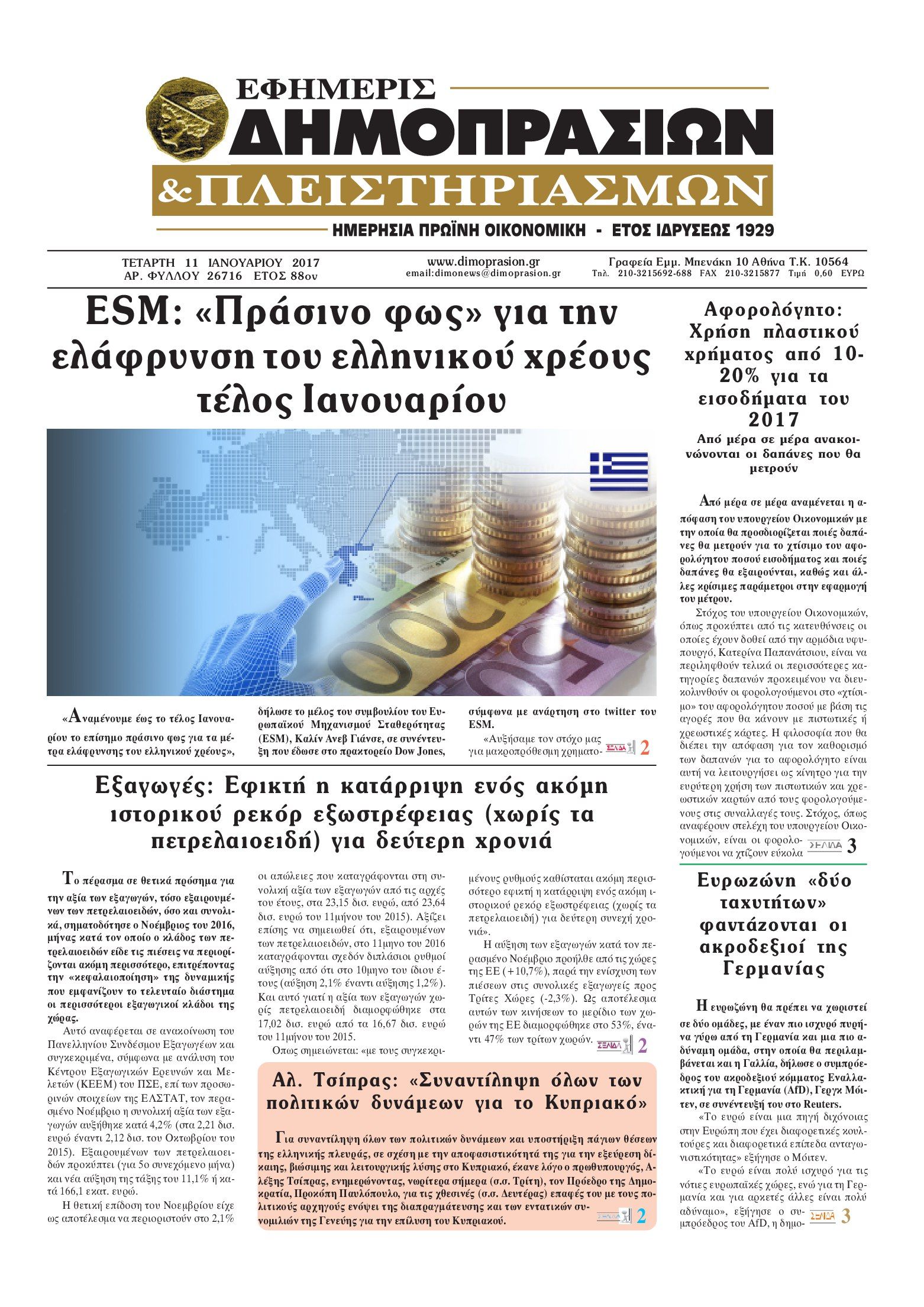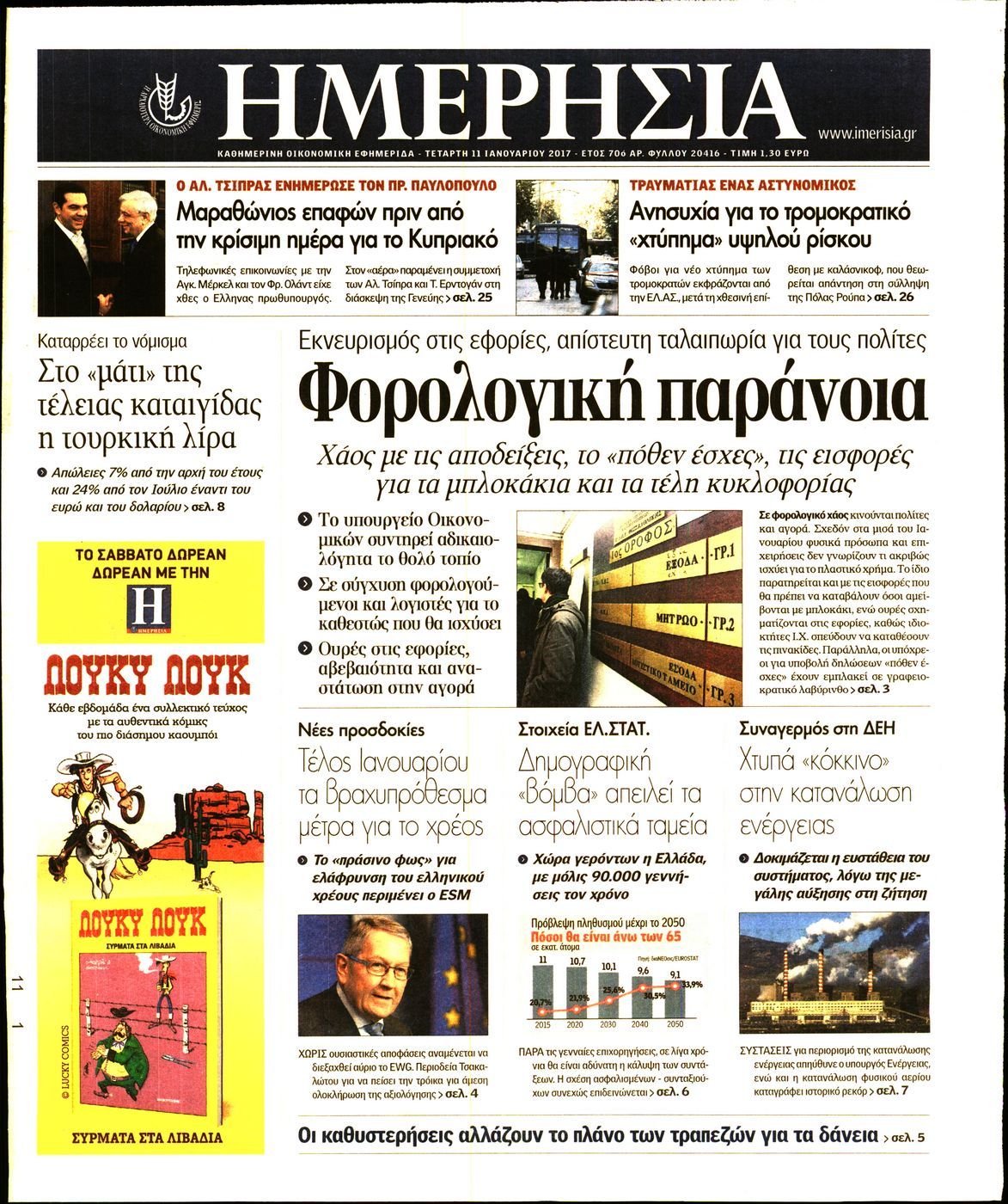 Οι οικονομικές εφημερίδες 11/1/2017 Enikos Newsroom 04:17, Τετάρτη 11 Ιανουαρίου 2017 Media Διαβάστε τα σημερινά πρωτοσέλιδα των οικονομικών εφημερίδων: ΟΙΚΟΝΟΜΙΚΕΣ ΕΦΗΜΕΡΙΔΕΣ ΠΡΩΤΟΣΕΛΙΔΑ Μοιράσου το: σχολίασε κι εσύ (0 σχόλια) Ακολουθήστε το enikos.gr στο Google News και μάθετε πρώτοι όλες τις ειδήσεις Δείτε όλες τις τελευταίες ειδήσεις από την Ελλάδα και τον Κόσμο στο enikos.gr Ειδήσεις Ροή Ειδήσεων 5 ώρες πριν Εκτός ευρωομάδας ΣΥΡΙΖΑ ο Νίκος Παππάς μετά την επίθεση στον δημοσιογράφο Νίκο Γιαννόπουλο – Η μήνυση και οι νέες δηλώσεις 6 ώρες πριν «Αγριεύουν» οι αγρότες: «Δεν συντρέχει λόγος συνάντησης με τον πρωθυπουργό» – Ώρα αποφάσεων στη σύσκεψη της Πέμπτης 6 ώρες πριν Κυψέλη: Χωρίς την οικογένειά της δίπλα της απολογήθηκε η 16χρονη – «Της είχε επιτεθεί κάποιος για να την βιάσει, φοβήθηκε και κυκλοφορούσε με μαχαίρι» 5 ώρες πριν Politico: Το πρόβλημα της Ευρώπης δεν είναι το Βέλγιο αλλά ο Ντόναλντ Τραμπ 7 ώρες πριν Αλεξανδρούπολη: Πολυοργανική ανεπάρκεια λόγω υποσιτισμού η αιτία θανάτου του 3χρονου αγοριού 6 ώρες πριν Μυστήριο με τεράστιες κυκλικές πέτρες 200 κιλών – Ανακαλύφθηκαν τυχαία κατά τη διάρκεια οδικών έργων και κανείς δεν ξέρει από πού προέρχονται 7 ώρες πριν Ύπνος: Ειδικός εξηγεί τον πραγματικό λόγο που ξυπνάτε στις 4 τα ξημερώματα – Ο ρόλος των ορμονών και του κιρκάδιου ρυθμού 8 ώρες πριν Αριθμολογία: Οι άνθρωποι που έχουν γεννηθεί αυτές τις 4 ημερομηνίες, είναι τρυφεροί και αγαπούν ανιδιοτελώς 19 ώρες πριν 20 χρόνια τα Χριστούγεννα ξεκινούν στα Public με μεγάλη ποικιλία σε δώρα! 10 λεπτά πριν Κτηνοτρόφοι: Με δάκρυα στα μάτια ζουν τον εφιάλτη των άδειων στάβλων – «Καταστράφηκαν οι ζωές μας» 25 λεπτά πριν Νέο αμερικανικό πλήγμα σε σκάφος που φέρεται να μετέφερε ναρκωτικά στον Ειρηνικό – Τέσσερις νεκροί 40 λεπτά πριν Αλ Τσαντίρι Νιουζ: «Λύγισε» ο Δημήτρης Λάλος για τον Δημήτρη Ήμελλο – «Τον μνημονεύω, να ‘ναι καλά εκεί που είναι» 55 λεπτά πριν GNTM: Με δάκρυα τον αποχαιρέτησε η Ηλιάνα Παπαγεωργίου πριν από τον ημιτελικό – «Αισθάνομαι πολύ παράξενα» 1 ώρα πριν Αμερικανικά στρατεύματα στον Ισημερινό για «προσωρινή» επιχείρηση κατά των ναρκωτικών ENIKOS NETWORK Αϋπνία: Το κόλπο που θα σας βοηθήσει να κοιμηθείτε απόψε – Είναι απλό και έχει αποτέλεσμα 2,6 εκατομμύρια πολίτες έχουν ήδη εμβολιαστεί κατά της γρίπης ΕΛΣΤΑΤ: Τι δείχνουν τα νέα στοιχεία για τις ηλεκτρονικές παραγγελίες των επιχειρήσεων ΚΕΠΕ: Οι 3 διακριτές συμβολές των ΜμΕ και της μεταποίησης στην ελληνική οικονομία Χαρτογραφώντας το «σημείο χωρίς επιστροφή»: Για πρώτη φορά αποκαλύπτεται με λεπτομέρεια το ακανθώδες όριο της ατμόσφαιρας τ... Η Google καταργεί τη λειτουργία «dark web report» – Πώς θα μπορούν οι χρήστες να διαγράφουν τα δεδομένα τους περισσότερα 02:30 , Πέμπτη 18 Δεκεμβρίου 2025 Αλ Τσαντίρι Νιουζ: Η κόρη της Πάολα στο κοινό – Η ατάκα Λαζόπουλου που την έκανε να «κοκκινήσει» Γιορτινή διάθεση και ευχάριστες στιγμές γέμισε η αποψινή, τελευταία για το 2025, εκπομπή του «... 22:24 , Τετάρτη 17 Δεκεμβρίου 2025 Το Σπίτι Δίπλα Στο Ποτάμι: Σε κίνδυνο η υγεία του Απόστολου – Τι θα δούμε απόψε “Το Σπίτι Δίπλα στο Ποτάμι” ξετυλίγει το νήμα της ζωής των πέντε αδελφών με καταισ... 21:14 , Τετάρτη 17 Δεκεμβρίου 2025 Παιχνίδια Εκδίκησης: Θα καταφέρει ο Χρήστος να κλονίσει την εμπιστοσύνη της Μάγιας απέναντι στον Άγη; Τα «Παιχνίδια Εκδίκησης» έρχονται απόψε στις 22:30, στον Αντ1, με το τελευταίο επεισόδιο της χ... 20:57 , Τετάρτη 17 Δεκεμβρίου 2025 Άγιος Έρωτας