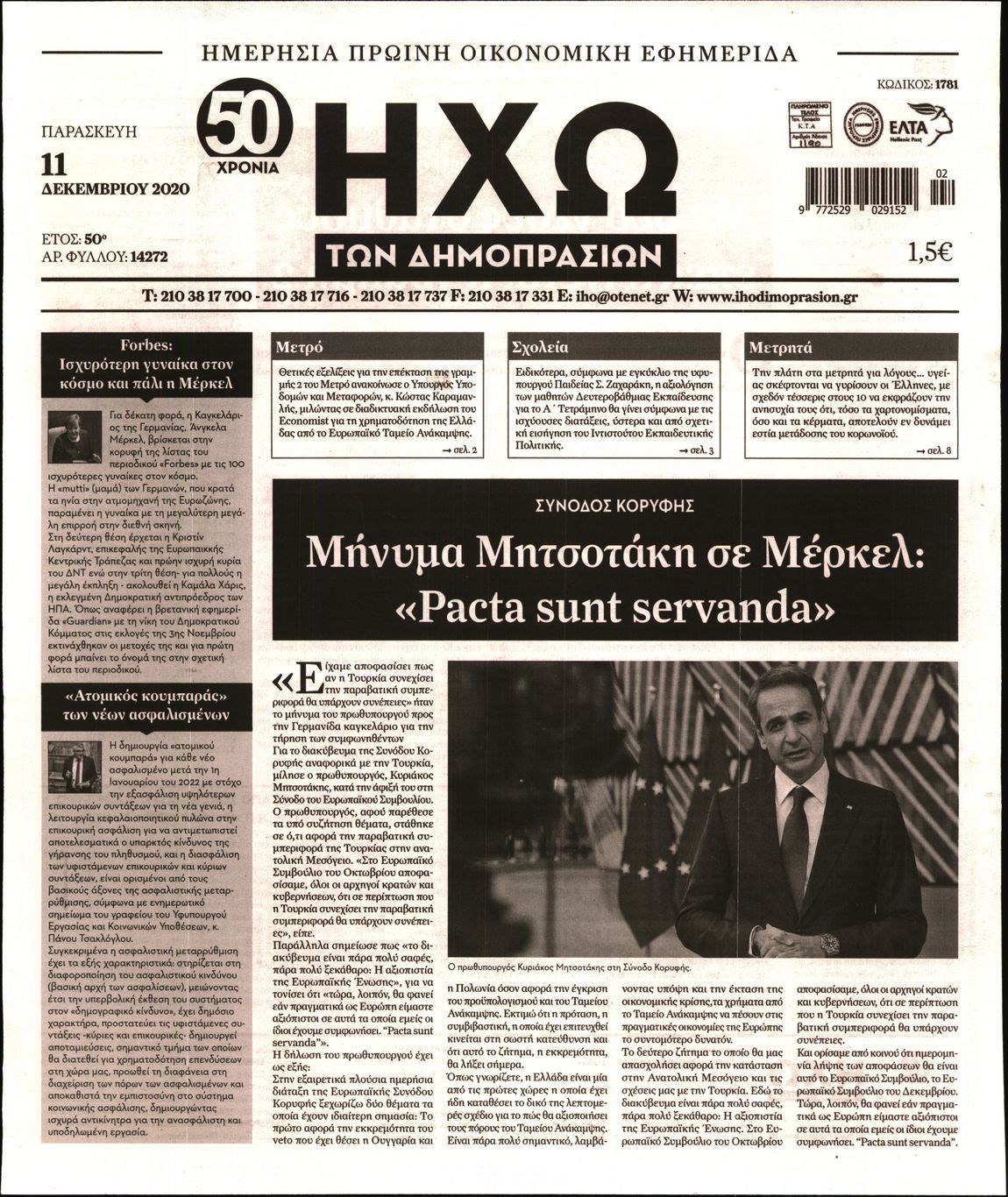 Οι οικονομικές εφημερίδες 11/12/2020 Διονύσης Νίκκας 06:40, Παρασκευή 11 Δεκεμβρίου 2020 Media Διαβάστε τα πρωτοσέλιδα των οικονομικών εφημερίδων… ΟΙΚΟΝΟΜΙΚΕΣ ΕΦΗΜΕΡΙΔΕΣ Μοιράσου το: σχολίασε κι εσύ (0 σχόλια) Ακολουθήστε το enikos.gr στο Google News και μάθετε πρώτοι όλες τις ειδήσεις Δείτε όλες τις τελευταίες ειδήσεις από την Ελλάδα και τον Κόσμο στο enikos.gr Ειδήσεις Ροή Ειδήσεων 1 ώρα πριν Χριστούγεννα στα μπλόκα: Επιμένουν στις κινητοποιήσεις τους οι αγρότες – Ανοίγουν τα διόδια το Σαββατοκύριακο 1 ώρα πριν Ουκρανία: Η άνευ προηγουμένου επίθεση σε ρωσικό τάνκερ στη Μεσόγειο και το μήνυμα προς στον Πούτιν – Το «μακρύ χέρι» του Κιέβου 39 λεπτά πριν Πούτιν: Τα μηνύματα σε Ευρώπη και ΝΑΤΟ από το μαραθώνιο «σόου» του – Η απαίτηση για «σεβασμό» και η ειρήνη «με τους όρους» της Μόσχας 2 ώρες πριν Τραμπ: Δεν αποκλείει την πιθανότητα ενός πολέμου στη Βενεζουέλα – «Ο Μαδούρο ξέρει καλύτερα από τον καθένα τι ακριβώς θέλω» 2 ώρες πριν Συνεχίζει να προκαλεί ο Μίτσκοσκι: «Για μένα το όνομα Μακεδονία είναι ιερό» 40 λεπτά πριν Ανακαλύφθηκαν αρχαία χρυσά νομίσματα 2.200 ετών που απεικονίζουν τον θεό Απόλλωνα – Η άγνωστη σύνδεση με τον Φίλιππο Β΄ της Μακεδονίας 2 ώρες πριν Ύπνος: Μια κρυφή κατάσταση του εγκεφάλου πριν από τον ύπνο μπορεί να είναι το “κλειδί” για υψηλή ευφυΐα και δημιουργικότητα 3 ώρες πριν Αριθμολογία: Οι άνθρωποι που έχουν γεννηθεί αυτές τις 4 ημερομηνίες, συχνά παρεξηγούνται – «Η καλοσύνη τους κρύβει τεράστια δύναμη» 4 ώρες πριν Ξεχάστε το καθάρισμα το Σαββατοκύριακο: Ο «κανόνας των 20 λεπτών» που θα σας λύσει τα χέρια 3 λεπτά πριν Άνω Λιόσια: Πυροβολισμοί σε επιχείρηση με χαλιά – Εντοπίστηκαν 10 κάλυκες 10 λεπτά πριν Γάζα: Ισραηλινό πλήγμα σε σχολείο που είχαν καταφύγει εκτοπισμένοι – Τουλάχιστον έξι νεκροί 24 λεπτά πριν Ολυμπιακός – Βιλερμπάν 107-84: Επιστροφή στις νίκες με… προπόνηση 30 λεπτά πριν Νέος Κόσμος: Συνελήφθη 41χρονος με ένταλμα από την Τουρκία για εμπόριο ναρκωτικών και ληστεία 39 λεπτά πριν Πούτιν: Τα μηνύματα σε Ευρώπη και ΝΑΤΟ από το μαραθώνιο «σόου» του – Η απαίτηση για «σεβασμό» και η ειρήνη «με τους όρους» της Μόσχας ENIKOS NETWORK Το ΕΚΑΒ τιμήθηκε από την Ακαδημία Αθηνών για τα 40 χρόνια προσφοράς του Έχετε πραγματικά μεγάλη καρδιά; 10 χαρακτηριστικά όσων έχουν καλοσύνη Αναστολή μέτρων αναγκαστικής εκτέλεσης για κτηνοτρόφους που πλήττονται από την ευλογιά των αιγοπροβάτων Πλήρης επάρκεια προϊόντων στις λαϊκές της Αττικής, παρά τις αγροτικές κινητοποιήσεις – Τι απαντούν οι πωλητές Χαρτογραφώντας το «σημείο χωρίς επιστροφή»: Για πρώτη φορά αποκαλύπτεται με λεπτομέρεια το ακανθώδες όριο της ατμόσφαιρας τ... Η Google καταργεί τη λειτουργία «dark web report» – Πώς θα μπορούν οι χρήστες να διαγράφουν τα δεδομένα τους περισσότερα 22:42 , Παρασκευή 19 Δεκεμβρίου 2025 Γιώργος Γιαννόπουλος για “Το σόι σου”: “Είναι ευτυχία και ευλογία αυτή η σειρά” «Είναι ευτυχία και ευλογία η συγκυρία αυτής της σειράς», θα πει ο Γιώργος Γιαννόπουλος -ο αγαπ... 20:37 , Παρασκευή 19 Δεκεμβρίου 2025 Don’t Forget The Lyrics: Η Έλλη Κοκκίνου υποδέχεται 4 παίκτες που θα κάνουν τα πάντα για να μη χάσουν ούτε… μισή λέξη από τους στίχους Το «Don’t Forget The Lyrics» επιστρέφει απόψε, Παρασκευή 19 Δεκεμβρίου, στις 21:00 με νέο επει... 19:31 , Παρασκευή 19 Δεκεμβρίου 2025 GNTM: Απόψε ο μεγάλος τελικός για τους 4 φιναλίστ Έπειτα από μήνες γεμάτους μόδα, δημιουργία και έντονες αναμετρήσεις, το GNTM 2025 κορυφώνεται,... 18:11 , Παρασκευή 19 Δεκεμβ