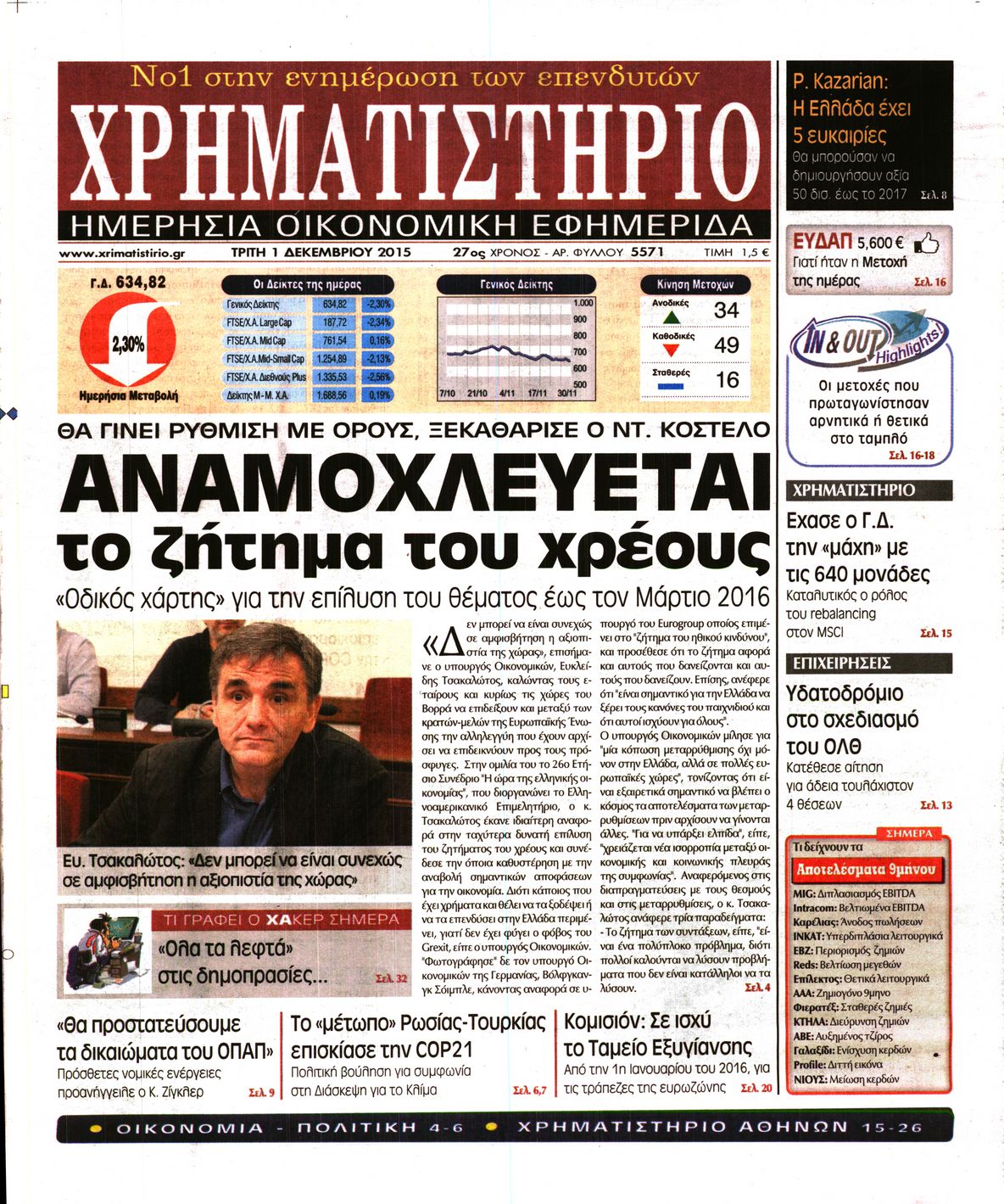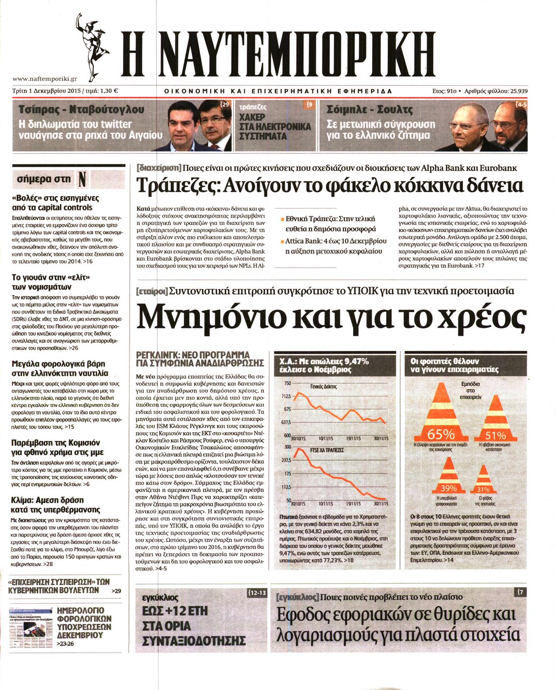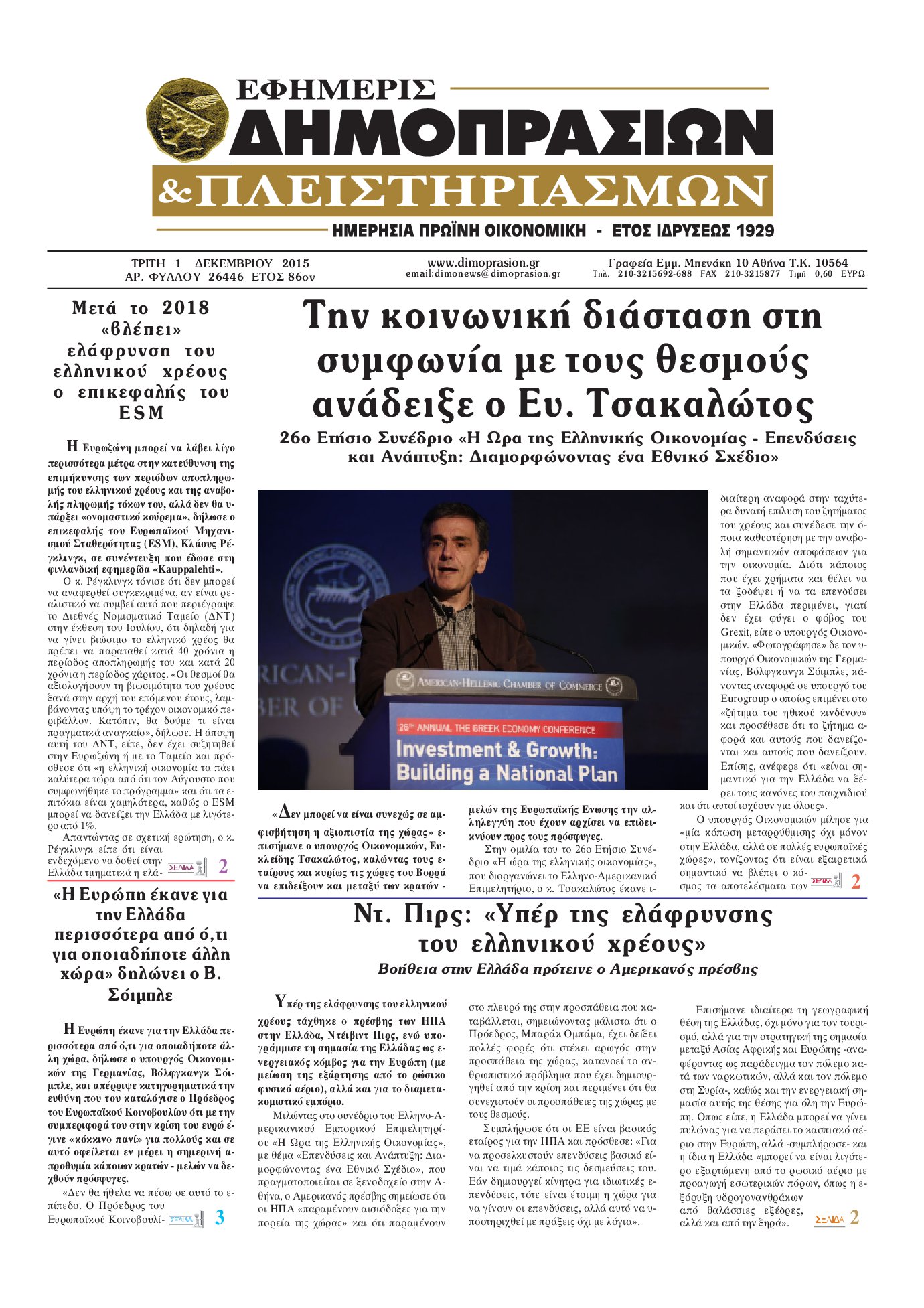 Oι οικονομικές εφημερίδες 1/12/2015 Enikos Newsroom 06:32, Τρίτη 01 Δεκεμβρίου 2015 Media Διαβάστε τα σημερινά πρωτοσέλιδα των οικονομικών εφημερίδων: ΟΙΚΟΝΟΜΙΚΕΣ ΕΦΗΜΕΡΙΔΕΣ ΠΡΩΤΟΣΕΛΙΔΑ Μοιράσου το: σχολίασε κι εσύ (0 σχόλια) Ακολουθήστε το enikos.gr στο Google News και μάθετε πρώτοι όλες τις ειδήσεις Δείτε όλες τις τελευταίες ειδήσεις από την Ελλάδα και τον Κόσμο στο enikos.gr Ειδήσεις Ροή Ειδήσεων 1 ώρα πριν Ευρωπαϊκή Ένωση: Συμφωνία για δάνειο 90 δισ. ευρώ στην Ουκρανία τη διετία 2026-2027 6 ώρες πριν ΟΠΕΚΕΠΕ: Προφυλακιστέος ο φερόμενος αρχηγός και ο λογιστής της εγκληματικής οργάνωσης 7 ώρες πριν Αυξάνουν την πίεση προς την κυβέρνηση οι αγρότες: Κλείνουν παρακαμπτήριους και ανοίγουν διόδια – Τι θα γίνει τις γιορτές 7 ώρες πριν Φοινικούντα: Το Σάββατο απολογείται ο 30χρονος γιος γνωστού επιχειρηματία της Πλάκας που παραδόθηκε – Όσα είπε στους αστυνομικούς και ο ρόλος του στο έγκλημα 5 ώρες πριν ΑΕΚ – Κραϊόβα 3-2: Επική ανατροπή και πρόκριση στους «16» του Conference League η Ένωση 6 ώρες πριν Αρχαιολόγοι ανακάλυψαν ρωμαϊκά τεχνουργήματα από μια πόλη που δεν υπήρξε ποτέ – Τα τρία εντυπωσιακά κτίρια και ο αμφορέας με τις… σαρδέλες 7 ώρες πριν Ύπνος: Η απλή βραδινή ρουτίνα για να προστατεύσετε τα μαλλιά σας από το κρύο κατά τη διάρκεια του χειμώνα 8 ώρες πριν Manifesting: Πώς να συναντήσετε τον σύντροφο της ζωής σας, ανάλογα με τον μήνα γέννησής σας 2 ημέρες πριν 20 χρόνια τα Χριστούγεννα ξεκινούν στα Public με μεγάλη ποικιλία σε δώρα! 1 λεπτό πριν Εφημερεύοντα φαρμακεία σε Αθήνα και Θεσσαλονίκη (19/12) 8 λεπτά πριν Η TikTok στις ΗΠΑ πωλείται σε Oracle, Silver Lake και MGX – Οι λεπτομέρειες του «deal» 16 λεπτά πριν Αλεξάντερ Λουκασένκο: Η Λευκορωσία βρίσκεται κοντά στην αποκατάσταση των σχέσεών της με τις ΗΠΑ 32 λεπτά πριν Αυστραλία: Κήρυξε την Κυριακή (21/12) ημέρα εθνικού πένθους για τη φονική επίθεση στην παραλία Μπόνταϊ 42 λεπτά πριν Ρόδος: Δάσκαλος καράτε καταδικάστηκε για ασέλγεια σε ανήλικες αθλήτριες – Μαρτυρίες για αγγίγματα σε ευαίσθητα σημεία ENIKOS NETWORK Σε περίοδο αυξημένης δραστηριότητας η γρίπη στην Ελλάδα-Μέτρα προστασίας από τον ΕΟΔΥ Σκέφτεστε συνέχεια συζητήσεις που έχετε κάνει; Τι σημαίνει αυτό, σύμφωνα με ειδικό Στεγαστικό: Τι λέει η ΠΟΜΙΔΑ για τα νέα μέτρα που ανακοίνωσε ο Κυριάκος Μητσοτάκης Λαγκάρντ: Αισιόδοξη για την ανάπτυξη της Ευρωζώνης, αβέβαιη για τον πληθωρισμό Χαρτογραφώντας το «σημείο χωρίς επιστροφή»: Για πρώτη φορά αποκαλύπτεται με λεπτομέρεια το ακανθώδες όριο της ατμόσφαιρας τ... Η Google καταργεί τη λειτουργία «dark web report» – Πώς θα μπορούν οι χρήστες να διαγράφουν τα δεδομένα τους περισσότερα 02:50 , Παρασκευή 19 Δεκεμβρίου 2025 GNTM: «Κλείδωσαν» οι τέσσερις φιναλίστ – Μεγάλη ανατροπή στις τελευταίες αποχωρήσεις Για προτελευταία φορά εμφανίστηκαν στο πλατό του GNTM οι φιναλίστ του φετινού κύκλου, το βράδυ... 17:45 , Πέμπτη 18 Δεκεμβρίου 2025 ROUK ZOUK: Εορταστικό επεισόδιο με καλεσμένους τους πρωταγωνιστές του «Γιατί ρε πατέρα» Το Σάββατο 20 Δεκεμβρίου στις 21:00, η Ζέτα Μακρυπούλια υποδέχεται εκλεκτούς ηθοποιούς που όλο... 17:20 , Πέμπτη 18 Δεκεμβρίου 2025 Άγιος έρωτας: Η Χριστίνα εξομολογείται στον πατέρα Νικόλαο, απόψε στις 21:00 στον Alpha Η Νότα αποφασίζει να εκδικηθεί τον Πέτρο και τον Στέφανο, για χάρη του Λούη, όμως τα πράγματα ... 16:50 , Πέμπτη 18 Δεκεμβρίου 2025 Να μ’ αγαπάς: Ζωή και Φωτεινή συμφιλιώνονται ως μάνα με κόρη, απόψε στις 20:00 Η ταυτότητα του Άγγελου αποκαλύπτεται στο νέο επεισόδιο της σειράς “Να μ’ αγαπάς... 