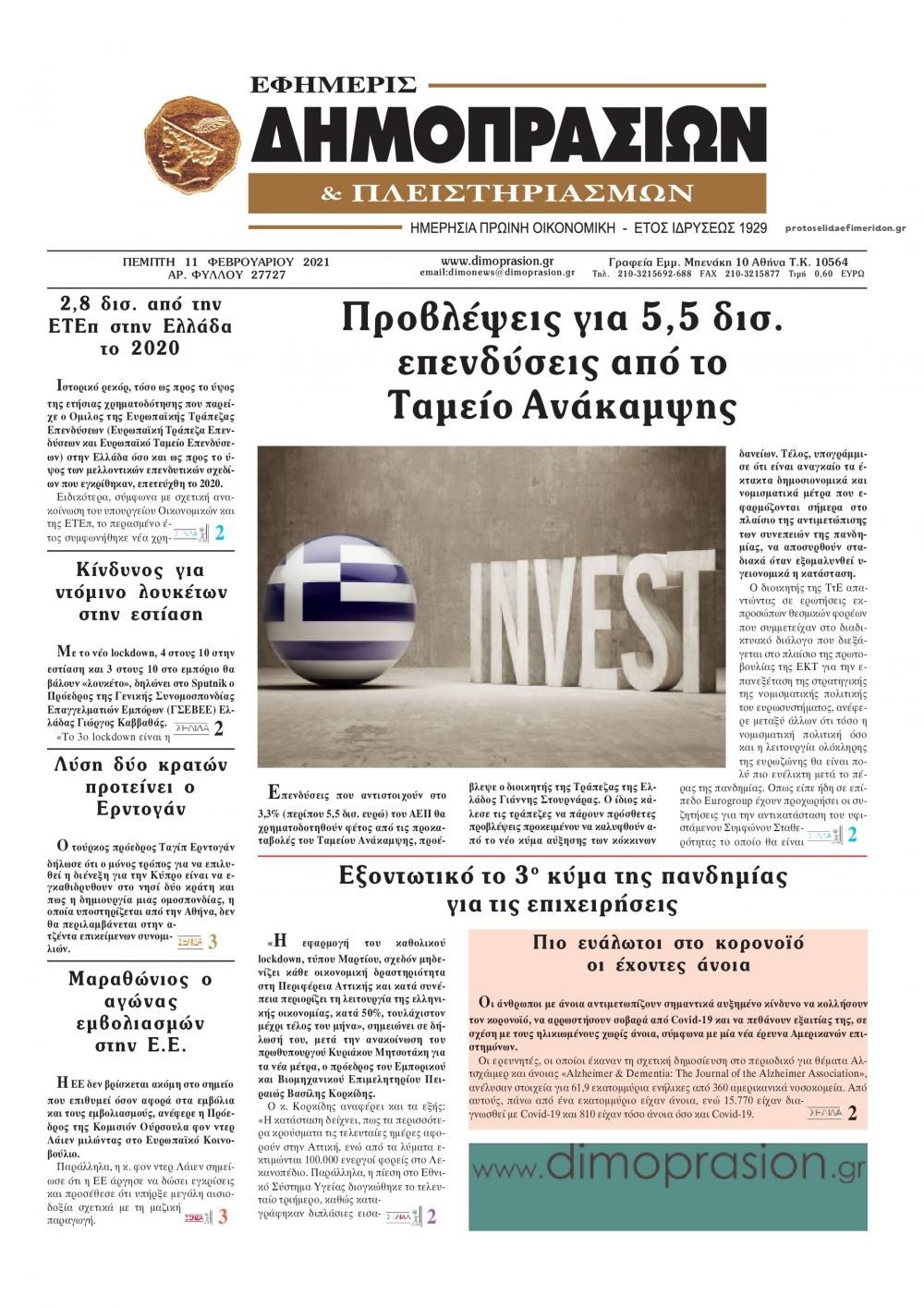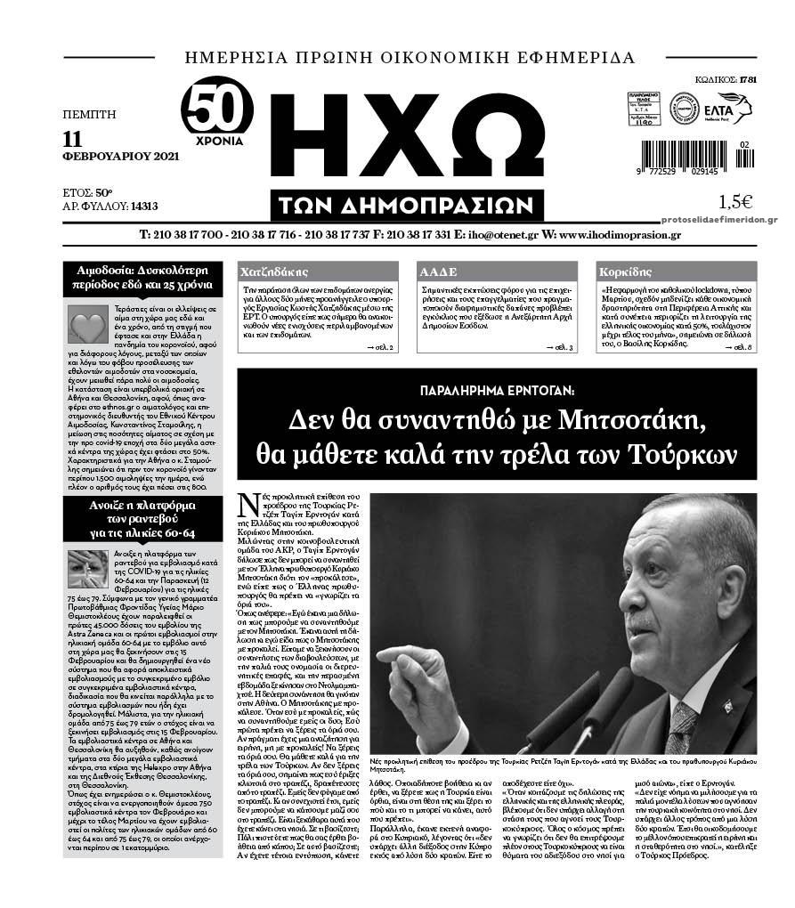 Οι οικονομικές εφημερίδες 11/2/2021 Διονύσης Νίκκας 06:39, Πέμπτη 11 Φεβρουαρίου 2021 Media Διαβάστε τα πρωτοσέλιδα των οικονομικών εφημερίδων… ΟΙΚΟΝΟΜΙΚΕΣ ΕΦΗΜΕΡΙΔΕΣ Μοιράσου το: σχολίασε κι εσύ (0 σχόλια) Ακολουθήστε το enikos.gr στο Google News και μάθετε πρώτοι όλες τις ειδήσεις Δείτε όλες τις τελευταίες ειδήσεις από την Ελλάδα και τον Κόσμο στο enikos.gr Ειδήσεις Ροή Ειδήσεων 5 ώρες πριν Χριστούγεννα στα μπλόκα: Επιμένουν στις κινητοποιήσεις τους οι αγρότες – Ανοίγουν τα διόδια το Σαββατοκύριακο 5 ώρες πριν Ουκρανία: Η άνευ προηγουμένου επίθεση σε ρωσικό τάνκερ στη Μεσόγειο και το μήνυμα προς στον Πούτιν – Το «μακρύ χέρι» του Κιέβου 4 ώρες πριν Πούτιν: Τα μηνύματα σε Ευρώπη και ΝΑΤΟ από το μαραθώνιο «σόου» του – Η απαίτηση για «σεβασμό» και η ειρήνη «με τους όρους» της Μόσχας 5 ώρες πριν Τραμπ: Δεν αποκλείει την πιθανότητα ενός πολέμου στη Βενεζουέλα – «Ο Μαδούρο ξέρει καλύτερα από τον καθένα τι ακριβώς θέλω» 6 ώρες πριν Συνεχίζει να προκαλεί ο Μίτσκοσκι: «Για μένα το όνομα Μακεδονία είναι ιερό» 4 ώρες πριν Ανακαλύφθηκαν αρχαία χρυσά νομίσματα 2.200 ετών που απεικονίζουν τον θεό Απόλλωνα – Η άγνωστη σύνδεση με τον Φίλιππο Β΄ της Μακεδονίας 5 ώρες πριν Ύπνος: Μια κρυφή κατάσταση του εγκεφάλου πριν από τον ύπνο μπορεί να είναι το “κλειδί” για υψηλή ευφυΐα και δημιουργικότητα 6 ώρες πριν Αριθμολογία: Οι άνθρωποι που έχουν γεννηθεί αυτές τις 4 ημερομηνίες, συχνά παρεξηγούνται – «Η καλοσύνη τους κρύβει τεράστια δύναμη» 7 ώρες πριν Ξεχάστε το καθάρισμα το Σαββατοκύριακο: Ο «κανόνας των 20 λεπτών» που θα σας λύσει τα χέρια 14 λεπτά πριν Η Ελλάδα προσχωρεί στη Διεθνή Επιτροπή Αποζημιώσεων για την Ουκρανία 29 λεπτά πριν GNTM: Η Ξένια Τσίρκοβα αναδείχθηκε μεγάλη νικήτρια και πήρε τις 50.000 ευρώ – Ποιος βρέθηκε σε απόσταση αναπνοής; 44 λεπτά πριν Θεσσαλονίκη: Εξαφανίστηκε 13χρονος από χώρο φιλοξενίας ασυνόδευτων ανηλίκων στο Ωραιόκαστρο 54 λεπτά πριν Ντόναλντ Τραμπ: «Πολύ βαριά αντίποινα» στη Συρία – «Πλήττουμε πολύ δυνατά οχυρά του Ισλαμικού Κράτους» 1 ώρα πριν Εξάρχεια: Ένταση με μολότοφ, χημικά και κρότου λάμψης ENIKOS NETWORK Το ΕΚΑΒ τιμήθηκε από την Ακαδημία Αθηνών για τα 40 χρόνια προσφοράς του Έχετε πραγματικά μεγάλη καρδιά; 10 χαρακτηριστικά όσων έχουν καλοσύνη Αναστολή μέτρων αναγκαστικής εκτέλεσης για κτηνοτρόφους που πλήττονται από την ευλογιά των αιγοπροβάτων Πλήρης επάρκεια προϊόντων στις λαϊκές της Αττικής, παρά τις αγροτικές κινητοποιήσεις – Τι απαντούν οι πωλητές Χαρτογραφώντας το «σημείο χωρίς επιστροφή»: Για πρώτη φορά αποκαλύπτεται με λεπτομέρεια το ακανθώδες όριο της ατμόσφαιρας τ... Η Google καταργεί τη λειτουργία «dark web report» – Πώς θα μπορούν οι χρήστες να διαγράφουν τα δεδομένα τους περισσότερα 02:50 , Σάββατο 20 Δεκεμβρίου 2025 GNTM: Η Ξένια Τσίρκοβα αναδείχθηκε μεγάλη νικήτρια και πήρε τις 50.000 ευρώ – Ποιος βρέθηκε σε απόσταση αναπνοής; Με φαντασμαγορικό τρόπο ολοκληρώθηκε το βράδυ της Παρασκευής ο μεγάλος τελικός του GNTM, μέσα ... 22:42 , Παρασκευή 19 Δεκεμβρίου 2025 Γιώργος Γιαννόπουλος για “Το σόι σου”: “Είναι ευτυχία και ευλογία αυτή η σειρά” «Είναι ευτυχία και ευλογία η συγκυρία αυτής της σειράς», θα πει ο Γιώργος Γιαννόπουλος -ο αγαπ... 20:37 , Παρασκευή 19 Δεκεμβρίου 2025 Don’t Forget The Lyrics: Η Έλλη Κοκκίνου υποδέχεται 4 παίκτες που θα κάνουν τα πάντα για να μη χάσουν ούτε… μισή λέξη από τους στίχους Το «Don’t Forget The Lyrics» επιστρέφει απόψε, Παρασκευή 19 Δεκεμβρίου, στις 21:00 με νέο ε