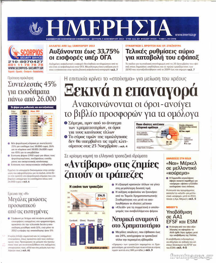 Οι οικονομικές εφημερίδες Enikos Newsroom 09:57, Δευτέρα 03 Δεκεμβρίου 2012 Media Οι οικονομικές εφημερίδες Τα πρωτοσέλιδα των οικονομικών εφημερίδων. ΕΦΗΜΕΡΙΔΕΣ ΠΡΩΤΟΣΕΛΙΔΑ ΟΙΚΟΝΟΜΙΚΕΣ ΕΦΗΜΕΡΙΔΕΣ ΠΡΩΤΟΣΕΛΙΔΑ Μοιράσου το: σχολίασε κι εσύ (0 σχόλια) Ακολουθήστε το enikos.gr στο Google News και μάθετε πρώτοι όλες τις ειδήσεις Δείτε όλες τις τελευταίες ειδήσεις από την Ελλάδα και τον Κόσμο στο enikos.gr Ειδήσεις Ροή Ειδήσεων 2 ώρες πριν Τρομοκρατική επίθεση στο Σίδνεϊ: Νεκροί 11 πολίτες και ένας δράστης – Εντοπίστηκε αυτοσχέδιος εκρηκτικός μηχανισμός 1 ώρα πριν ΟΠΕΚΕΠΕ-Κρήτη: Προθεσμία να απολογηθούν από την Τρίτη έως την Πέμπτη έλαβαν οι 16 συλληφθέντες 5 ώρες πριν Σκληραίνουν τη στάση τους οι αγρότες: Αποφασίζουν τις δράσεις της εβδομάδας – Αύριο το συλλαλητήριο στα δικαστήρια της Λάρισας 7 ώρες πριν Κυριάκος Μητσοτάκης μετά το «όχι» των αγροτών: Διάλογος δεν γίνεται με τελεσίγραφα και οι λύσεις προκύπτουν μόνο από συζήτηση 2 ώρες πριν Πανεπιστήμιο Μπράουν: Υπό κράτηση ένα «άτομο ενδιαφέροντος» για το μακελειό με τους 2 νεκρούς και τους 9 τραυματίες 58 λεπτά πριν Τα 5 ζώδια που ευνοούνται στα ερωτικά τους έως τις 21 Δεκεμβρίου – «Η επόμενη σχέση σας θα είναι καθοριστική» 2 ώρες πριν Γεωλογική αποκάλυψη: Επιστήμονες εξηγούν πώς η Ιβηρική Χερσόνησος περιστρέφεται σαν… ρολόι 5 ώρες πριν Προπονήτρια ευεξίας που έχασε 24 κιλά αποκαλύπτει: «Αυτά είναι τα 6 ανησυχητικά σημάδια της υψηλής κορτιζόλης» 6 ώρες πριν Τα 8 πράγματα που τα ευτυχισμένα ζευγάρια δεν κάνουν ποτέ μπροστά στα παιδιά τους 10 λεπτά πριν Κικίλιας: Επενδύσεις σε ναυτιλία και λιμενικές υποδομές – Η μεγάλη ευκαιρία της ελληνικής οικονομίας για ανάπτυξη 18 λεπτά πριν Χατζηδάκης για αγρότες: «Τα προβλήματα απαιτούν διάλογο, δεν αντιμετωπίζεται η κατάσταση με τελεσίγραφα» 26 λεπτά πριν Τηλεθέαση (13/12): Πώς κινήθηκαν οι εκπομπές στην πρωινή ζώνη το Σάββατο 34 λεπτά πριν Κρήτη: Χαμός σε ποδοσφαιρικό αγώνα – Προπονητής χτύπησε με κουτουλιά παίκτη της αντίπαλης ομάδας 42 λεπτά πριν Νετανιάχου για την επίθεση στο Σίδνεϊ: «Τους είχα προειδοποιήσει – Ρίχνουν λάδι στην φωτιά του αντισημιτισμού» ENIKOS NETWORK Πρωτοβουλία της Ελλάδας για ενιαίο ευρωπαϊκό πλαίσιο στη δωρεά σπέρματος και ωαρίων Η ορθολογική χρήση των αντιβιοτικών στο επίκεντρο σεμιναρίου του ΙΣΑ ΔΥΠΑ: Οι καταβολές που θα γίνουν την ερχόμενη Τετάρτη ΕΚΤ: Τα οφέλη για νοικοκυριά και επιχειρήσεις από τα σταθερά επιτόκια για ολόκληρο το 2026 Σύγχρονος Νοστράδαμος: Προειδοποιεί για «μεγάλο γεγονός» τους επόμενους μήνες που θα συγκλονίσει τη Βρετανία και τον κόσμο Τεστ παρατηρητικότητας: Μπορείτε να βρείτε τις 3 διαφορές στις εικόνες με έναν πιγκουίνο σε 14 δευτερόλεπτα περισσότερα 16:32 , Κυριακή 14 Δεκεμβρίου 2025 Τηλεθέαση (13/12): Πώς κινήθηκαν οι εκπομπές στην πρωινή ζώνη το Σάββατο Με αμείωτη ένταση συνεχίστηκε η μάχη για την τηλεθέαση στην πρωινή ζώνη των τηλεοπτικών καναλι... 15:07 , Κυριακή 14 Δεκεμβρίου 2025 IQ160: Η Μαρίνα στέλνει το φούτερ του Τηλέμαχου για το τεστ πατρότητας Η Πηνελόπη αποφασίζει να κάνει αμνιοπαρακέντηση, για να βεβαιωθεί για την υγεία του μωρού της ... 12:46 , Κυριακή 14 Δεκεμβρίου 2025 Η Realnews στο www.pressreader.com Διαβάστε την ψηφιακή έκδοση της εφημερίδας στην οθόνη του κινητού, του tablet και του υπολογισ... 10:07 , Κυριακή 14 Δεκεμβρίου 2025 Η γη της ελιάς: Η αρχή του τέλους του Δημοσθένη πλησιάζει Η δραματική σειρά του MEGA «Η γη της ελιάς» επιφυλάσσει ακόμα μεγαλύτερες αν
