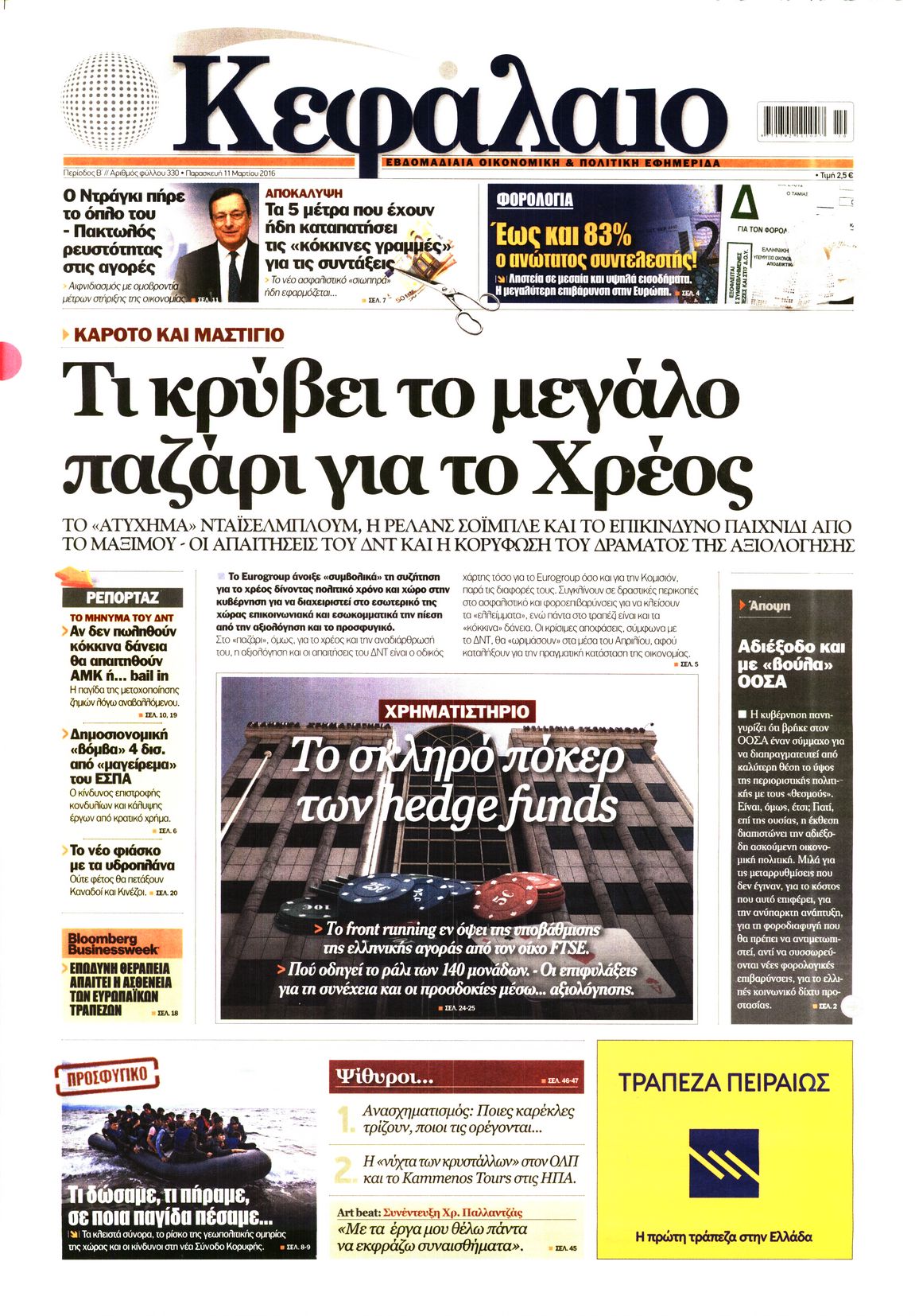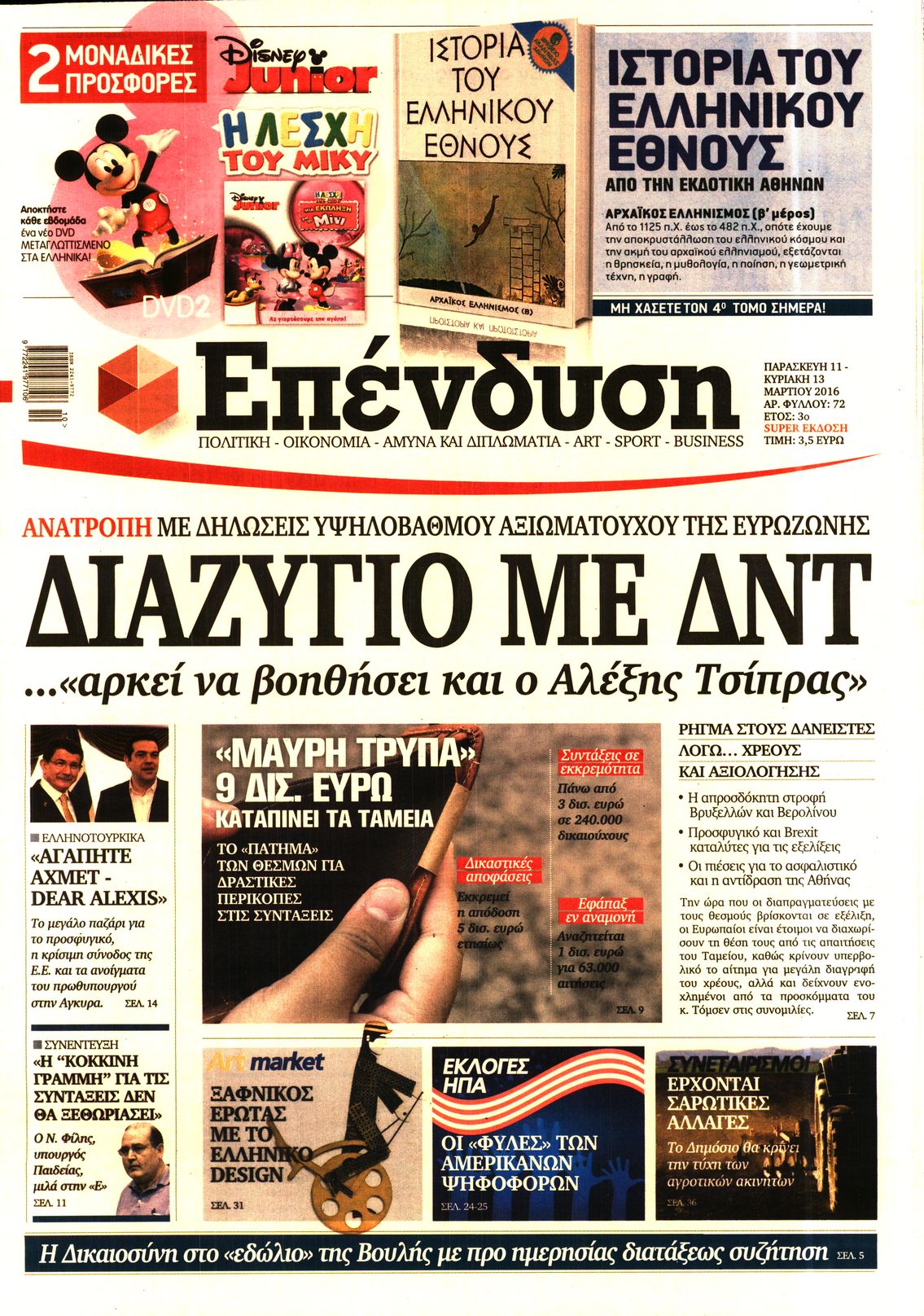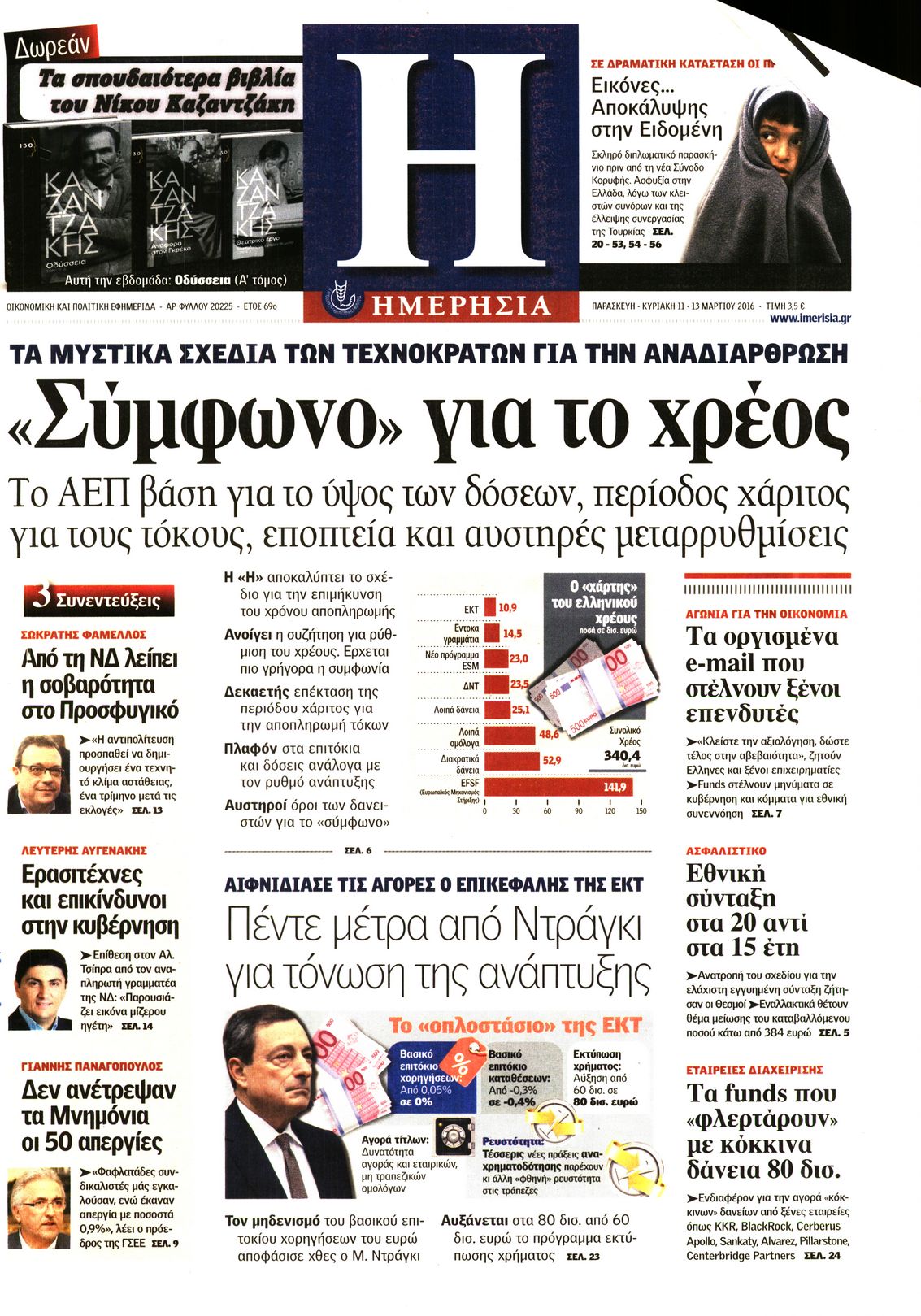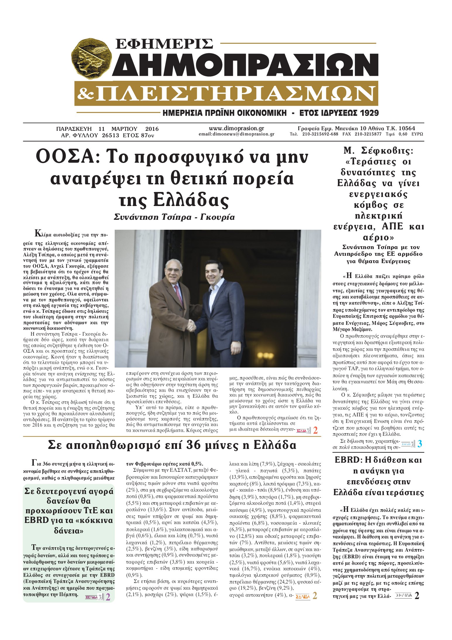 Oι οικονομικές εφημερίδες 11/3/2016 Enikos Newsroom 05:28, Παρασκευή 11 Μαρτίου 2016 Media Διαβάστε τα σημερινά πρωτοσέλιδα των οικονομικών εφημερίδων: ΟΙΚΟΝΟΜΙΚΕΣ ΕΦΗΜΕΡΙΔΕΣ ΠΡΩΤΟΣΕΛΙΔΑ Μοιράσου το: σχολίασε κι εσύ (0 σχόλια) Ακολουθήστε το enikos.gr στο Google News και μάθετε πρώτοι όλες τις ειδήσεις Δείτε όλες τις τελευταίες ειδήσεις από την Ελλάδα και τον Κόσμο στο enikos.gr Ειδήσεις Ροή Ειδήσεων 2 ώρες πριν ΑΑΔΕ: Στον Εισαγγελέα οι πρώτες 50 μαζικές διαγραφές αγρών στο Ε9 – Εξετάζονται συνολικά 3.000 περιπτώσεις 5 ώρες πριν Καιρός: Νέο έκτακτο δελτίο επιδείνωσης από την ΕΜΥ – Ποιες περιοχές θα «χτυπήσει» η κακοκαιρία τα Χριστούγεννα 1 ώρα πριν Ζελένσκι: Πέρασε στην αντεπίθεση με το σχέδιο ειρήνης – Ζητεί συνάντηση με Τραμπ για το εδαφικό 6 ώρες πριν Live – Έξοδος Χριστουγέννων: Αυξημένη η κίνηση στις Εθνικές Οδούς – Εικόνα αποσυμφόρησης με νέες λωρίδες κυκλοφορίας στα αγροτικά μπλόκα 5 ώρες πριν Αεροπορικό δυστύχημα στην Τουρκία: Στο μικροσκόπιο ο καταγραφέας ήχου και το μαύρο κουτί – Η αεροσυνοδός Maria Pappa ανάμεσα στα θύματα 1 ώρα πριν Τα 5 ζώδια που έχουν μεγάλες πιθανότητες να πλουτίσουν το 2026 – «Οι οικονομικές δυσκολίες ανήκουν στο παρελθόν» 2 ώρες πριν Επιστήμονες ανακάλυψαν κάτι συγκλονιστικό – Η μάζα μπορεί να προέρχεται από αόρατες διαστάσεις 6 ώρες πριν Γυναίκα που έχασε 30 κιλά αποκαλύπτει τα μυστικά της επιτυχίας της – «Οι υδατάνθρακες είναι καύσιμο του οργανισμού, όχι εχθρός» 5 ώρες πριν Οι άνθρωποι που αποφεύγουν να γιορτάσουν τα Χριστούγεννα με την οικογένειά τους, συνήθως είχαν αυτές τις 8 εμπειρίες στην παιδική ηλικία 6 λεπτά πριν Greek Mafia: Στον ανακριτή ο 35χρονος συνεργός του «Εντίκ» – Σε δύο δόσεις η απολογία του 13 λεπτά πριν Κουίζ για την παλιά Αθήνα: Αναγνωρίζετε την περιοχή; Είναι από τις πιο γνωστές 20 λεπτά πριν Νετανιάχου: Κατηγορεί τη Χαμάς για παραβίαση της συμφωνίας – 110 δισ. δολάρια για ανεξάρτητη βιομηχανία όπλων 26 λεπτά πριν Θεσσαλονίκη: Άναψαν οι ψησταριές παρά τη βροχή στη Βασιλέως Ηρακλείου – Δείτε βίντεο 32 λεπτά πριν Σούπερ προσφορές* για Boxing Day, Super League, NBA και EuroLeague από το Pamestoixima.gr ENIKOS NETWORK ΕΟΔΥ: Οι «χρυσές» συμβουλές για να απολαύσουμε το Χριστουγεννιάτικο τραπέζι χωρίς υπερβολές New Year’s Resolutions: Μικρές αποφάσεις για μια καλή χρονιά ΑΑΔΕ: Στον Εισαγγελέα οι πρώτες 50 μαζικές διαγραφές αγρών στο Ε9 – Η λίστα με 3.000 «ιδιοκτήτες» για επιδοτήσεις ΟΠΕΚΕΠΕ Αλλάζουν οι διατάξεις του Κτιριοδομικού του Κτιριοδομικού Κανονισμού – Τι είπε ο Ταγαράς Ο Google Assistant θα παραμείνει λίγο περισσότερο για ορισμένους χρήστες Android Τεστ προσωπικότητας: Το βάζο που θα επιλέξετε αποκαλύπτει πώς λύνετε προβλήματα στη ζωή σας περισσότερα 16:12 , Τετάρτη 24 Δεκεμβρίου 2025 ALPHA: Παραμονή Χριστουγέννων με τον Κωνσταντίνο Αργυρό Ο Alpha παρουσιάζει απόψε σε πρώτη τηλεοπτική μετάδοση τη συναρπαστική και sold out εμφάνιση ... 15:51 , Τετάρτη 24 Δεκεμβρίου 2025 ‘Αγιος Έρωτας: Ο σεισμός που έκοψε την ανάσα – Δείτε τις συγκλονιστικές σκηνές Με έναν συγκλονιστικό τρόπο έκλεισε χθες βράδυ το τελευταίο επεισόδιο του 2025 της σειράς R... 13:27 , Τετάρτη 24 Δεκεμβρίου 2025 Ο Χριστουγεννιάτικος Τηλεμαραθώνιος του ΑΝΤ1 ένωσε τους πολιτικούς αρχηγούς – Τα εγκωμιαστικά σχόλια για τον Θοδωρή Κυριακού Σπάνια ομοφωνία: Όλοι οι πολιτικοί αρχηγοί αποθεώνουν τον Θοδωρή Κυριακού Ο Χριστουγεννιάτικος... 12:05 , Τετάρτη 24 Δεκεμβρίου 2025 Έξοδος εκδρομέων για τα Χριστούγεννα: Στείλε βίντεο ή φωτογραφίες στο enikos.gr – Αποθήκ