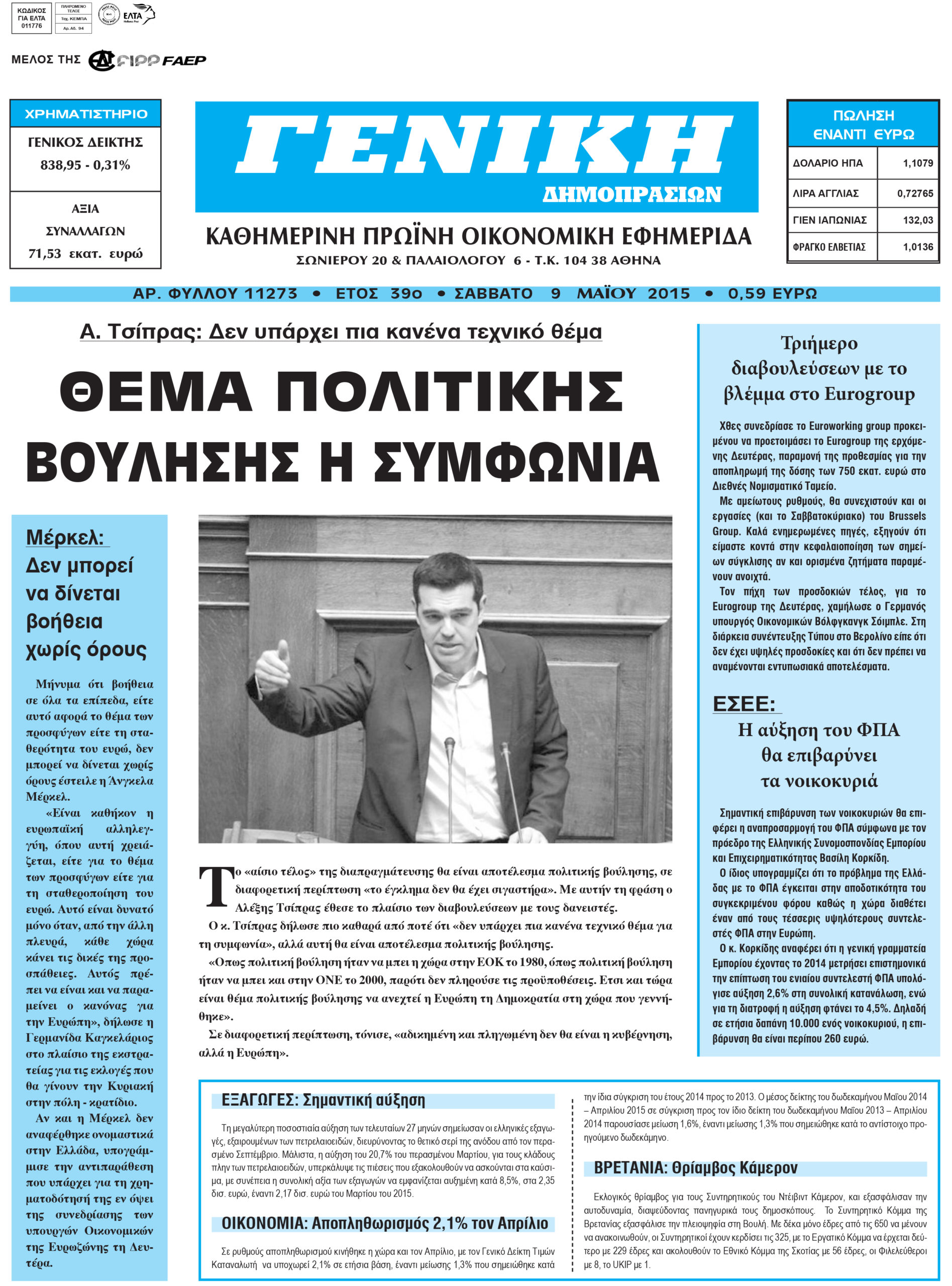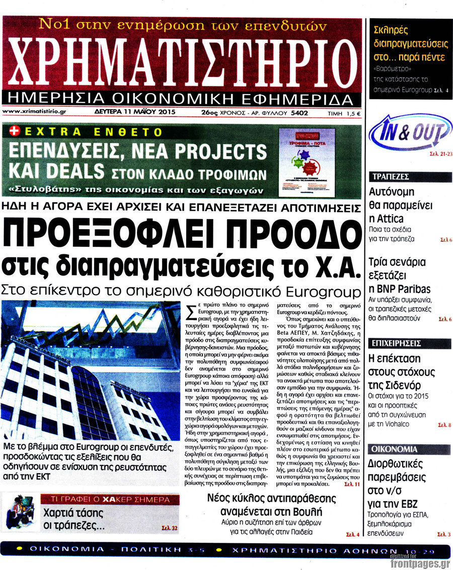 Οι οικονομικές εφημερίδες 11/5/2015 Enikos Newsroom 08:15, Δευτέρα 11 Μαΐου 2015 Media Διαβάστε τα σημερινά πρωτοσέλιδα των οικονομικών εφημερίδων: ΟΙΚΟΝΟΜΙΚΕΣ ΕΦΗΜΕΡΙΔΕΣ ΠΡΩΤΟΣΕΛΙΔΑ Μοιράσου το: σχολίασε κι εσύ (0 σχόλια) Ακολουθήστε το enikos.gr στο Google News και μάθετε πρώτοι όλες τις ειδήσεις Δείτε όλες τις τελευταίες ειδήσεις από την Ελλάδα και τον Κόσμο στο enikos.gr Ειδήσεις Ροή Ειδήσεων 7 ώρες πριν Μητσοτάκης: Αναγκαία η μεταρρύθμιση του πρωτογενούς τομέα – Τα 6 νέα μέτρα για το στεγαστικό και οι αναφορές σε «Ιθάκη» και «πολιτικούς του καναπέ» 6 ώρες πριν Δάνεια σε ελβετικό φράγκο: Τα βασικά σημεία της ρύθμισης – ανάσας για 40.000 δανειολήπτες – Αναλυτικός οδηγός με ερωτήσεις και απαντήσεις 6 ώρες πριν Κυψέλη: Εξιτήριο πήρε η 14χρονη μαθήτρια που μαχαιρώθηκε από την 16χρονη σε σχολείο – «Θέλω να βοηθήσω το παιδί, έχει μπλέξει με κακές παρέες» 6 ώρες πριν Τραμπ: Γιατί κατέθεσε τώρα την αγωγή κατά του BBC – Πώς η κίνησή του εξυπηρετεί το νέο δόγμα του για «αντίσταση» στην Ευρώπη, υπέρ των συντηρητικών 7 ώρες πριν ΟΠΕΚΕΠΕ – Παράνομες επιδοτήσεις: Ελεύθεροι με περιοριστικούς όρους και οι 7 κατηγορούμενοι που απολογήθηκαν σήμερα 6 ώρες πριν Ανακαλύφθηκε βυθισμένη πέτρινη κατασκευή ανοιχτά της Κριμαίας – Αποτελεί μέρος αρχαίας ελληνικής αποικίας 7 ώρες πριν Ύπνος: Αυτό μπορεί να είναι το χειρότερο λάθος για το βιολογικό ρολόι σας, σύμφωνα με ειδικό 8 ώρες πριν Αριθμολογία: Οι άνθρωποι που έχουν γεννηθεί αυτές τις 3 ημερομηνίες, προσελκύουν μεγάλη τύχη πριν από το τέλος του 2025 10 ώρες πριν Οι 7 συμπεριφορές που μαρτυρούν ότι ένας άνδρας επενδύει μακροπρόθεσμα σε μια σχέση 8 λεπτά πριν Παλαιστινιακό: «Η λύση των δύο κρατών είναι ο μόνος βιώσιμος δρόμος», τόνισε η Ελλάδα στο Συμβούλιο Ασφαλείας του ΟΗΕ 16 λεπτά πριν Ελένη Καρακάση: «Ένιωθα πολύ αδικημένη, δεν μπορούσα να ελέγξω τον εαυτό μου σε δύσκολες στιγμές» 24 λεπτά πριν Κλαούδια Σέινμπαουμ προς Ντόναλντ Τραμπ για φαιντανύλη: Να επιτεθούμε στα αίτια κατανάλωσης αντί να την κατατάσσουμε στα «όπλα μαζικής καταστροφής» 32 λεπτά πριν Ρωσία: Ουκρανική επίθεση με drones στο Κρασνοντάρ – Δύο τραυματίες, ζημιές σε σπίτια και διακοπή ρεύματος 40 λεπτά πριν Αντόνιο Ταγιάνι: Νομικά εμπόδια για τη χρήση των ρωσικών κεφαλαίων υπέρ της Ουκρανίας ENIKOS NETWORK Αίτημα ΙΣΑ για την εξαίρεση των προσωπικών γιατρών από τις κατ’ οίκον επισκέψεις Η σκανδιναβική μέθοδος στον ύπνο που μπορεί να σώσει έναν γάμο Πιερρακάκης: Ο προϋπολογισμός συμβάλλει ουσιαστικά στην ενίσχυση της αγοραστικής δύναμης της πλειονότητας των εργαζομένων e-ΕΦΚΑ: Παρατείνεται η προθεσμία για την υποβολή ΑΠΔ – Ποιους αφορά Σύγχρονος Νοστράδαμος: Προειδοποιεί για «μεγάλο γεγονός» τους επόμενους μήνες που θα συγκλονίσει τη Βρετανία και τον κόσμο Τεστ παρατηρητικότητας: Μπορείτε να βρείτε τις 3 διαφορές στις εικόνες με έναν πιγκουίνο σε 14 δευτερόλεπτα περισσότερα 20:06 , Τρίτη 16 Δεκεμβρίου 2025 Ο ΣΚΑΙ καταγγέλλει τον ΕΚΚΟΜΕΔ Επιστολή με την οποία καταγράφει την έντονη διαμαρτυρία του προς τον διευθύνοντα σύμβουλο του... 17:40 , Τρίτη 16 Δεκεμβρίου 2025 Eurovision: Στις 4 Ιανουαρίου αποκαλύπτονται τα 28 τραγούδια του ελληνικού τελικού Η αγωνία τελειώνει, η γιορτή της Eurovision αρχίζει στην ΕΡΤ από τις πρώτες ημέρες της νέας χρ... 17:09 , Τρίτη 16 Δεκεμβρίου 2025 Alter Ego Media: Βαθύτατη θλίψη και ειλικρινή συλλυπητήρια για την απώλεια της Ειρήνης Μαρινάκη Τη βαθύτατη θλίψη και τα ειλικρινή συλλυπητήριά της ε