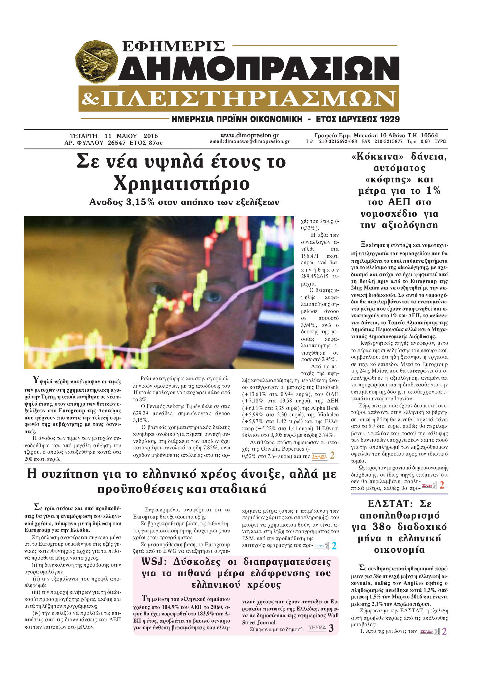 Οι οικονομικές εφημερίδες 11/5/2016 Enikos Newsroom 05:00, Τετάρτη 11 Μαΐου 2016 Media Διαβάστε τα σημερινά πρωτοσέλιδα των οικονομικών εφημερίδων: ΟΙΚΟΝΟΜΙΚΕΣ ΕΦΗΜΕΡΙΔΕΣ ΠΡΩΤΟΣΕΛΙΔΑ Μοιράσου το: σχολίασε κι εσύ (0 σχόλια) Ακολουθήστε το enikos.gr στο Google News και μάθετε πρώτοι όλες τις ειδήσεις Δείτε όλες τις τελευταίες ειδήσεις από την Ελλάδα και τον Κόσμο στο enikos.gr Ειδήσεις Ροή Ειδήσεων 2 ώρες πριν Δημοσκόπηση Metron Analysis: Στις 10 μονάδες η διαφορά ΝΔ-ΠΑΣΟΚ, στην 3η θέση η Πλεύση Ελευθερίας – 8 στους 10 στηρίζουν τον αγώνα των αγροτών 6 ώρες πριν Αγρότες: «Όχι στον διάλογο, μας εμπαίζει η κυβέρνηση» – Αποφάσισαν κλιμάκωση των κινητοποιήσεων, τι θα γίνει τα Χριστούγεννα 2 ώρες πριν Νίκος Παππάς στον ΑΝΤ1: «Δεν κρύβομαι – Μετά το συμβάν ακολούθησα κανονικά το πρόγραμμά μου» – ΒΙΝΤΕΟ 3 ώρες πριν Αθήνα: Εξαρθρώθηκε εγκληματική οργάνωση που διακινούσε ναρκωτικά σε μορφή σοκολάτας – Δύο τράπερ ανάμεσα στους 4 συλληφθέντες – ΒΙΝΤΕΟ 2 ώρες πριν Διαμαντής Καραναστάσης: Οδηγούσε υπό την επήρεια αλκοόλ – Του αφαιρέθηκε το δίπλωμα και του επιβλήθηκε πρόστιμο 350 ευρώ 2 ώρες πριν Manifesting: Πώς να συναντήσετε τον σύντροφο της ζωής σας, ανάλογα με τον μήνα γέννησής σας 4 ώρες πριν Γάμος: 11 ψυχρές αλλά ευγενικές φράσεις, που λέει ένας άνδρας όταν σκέφτεται τον χωρισμό 3 ώρες πριν Σφουγγάρισμα: Η συνήθεια που θα σας βοηθήσει να διατηρήσετε το σπίτι σας καθαρό και τακτοποιημένο 2 ημέρες πριν 20 χρόνια τα Χριστούγεννα ξεκινούν στα Public με μεγάλη ποικιλία σε δώρα! 3 λεπτά πριν Μπορεί ο Μαδούρο να αντέξει τον αποκλεισμό του Τραμπ; Τι θα χρειαστεί η Ουάσινγκτον για να τον ανατρέψει 7 λεπτά πριν Αρχαιολόγοι ανακάλυψαν ρωμαϊκά τεχνουργήματα από μια πόλη που δεν υπήρξε ποτέ – Τα τρία εντυπωσιακά κτίρια και ο αμφορέας με τις… σαρδέλες 9 λεπτά πριν Στο ΟΑΚΑ για το «Παναθηναϊκός – Χάποελ» η Κίμπερλι Γκίλφοϊλ – ΦΩΤΟ 16 λεπτά πριν Ούρσουλα φον ντερ Λάιεν: Μετατίθεται για τον Ιανουάριο η υπογραφή της εμπορικής συμφωνίας «ΕΕ-MERCOSUR» 21 λεπτά πριν Φοινικούντα: Το Σάββατο απολογείται ο 30χρονος γιος γνωστού επιχειρηματία της Πλάκας που παραδόθηκε – Όσα είπε στους αστυνομικούς και ο ρόλος του στο έγκλημα ENIKOS NETWORK Σε περίοδο αυξημένης δραστηριότητας η γρίπη στην Ελλάδα-Μέτρα προστασίας από τον ΕΟΔΥ Σκέφτεστε συνέχεια συζητήσεις που έχετε κάνει; Τι σημαίνει αυτό, σύμφωνα με ειδικό Λαγκάρντ: Αισιόδοξη για την ανάπτυξη της Ευρωζώνης, αβέβαιη για τον πληθωρισμό ΑΣΕΠ 2ΓΒ/2025: Σήμερα αρχίζει η υποβολή ενστάσεων – Πότε θα βγουν τα οριστικά αποτελέσματα Χαρτογραφώντας το «σημείο χωρίς επιστροφή»: Για πρώτη φορά αποκαλύπτεται με λεπτομέρεια το ακανθώδες όριο της ατμόσφαιρας τ... Η Google καταργεί τη λειτουργία «dark web report» – Πώς θα μπορούν οι χρήστες να διαγράφουν τα δεδομένα τους περισσότερα 17:45 , Πέμπτη 18 Δεκεμβρίου 2025 ROUK ZOUK: Εορταστικό επεισόδιο με καλεσμένους τους πρωταγωνιστές του «Γιατί ρε πατέρα» Το Σάββατο 20 Δεκεμβρίου στις 21:00, η Ζέτα Μακρυπούλια υποδέχεται εκλεκτούς ηθοποιούς που όλο... 17:20 , Πέμπτη 18 Δεκεμβρίου 2025 Άγιος έρωτας: Η Χριστίνα εξομολογείται στον πατέρα Νικόλαο, απόψε στις 21:00 στον Alpha Η Νότα αποφασίζει να εκδικηθεί τον Πέτρο και τον Στέφανο, για χάρη του Λούη, όμως τα πράγματα ... 16:50 , Πέμπτη 18 Δεκεμβρίου 2025 Να μ’ αγαπάς: Ζωή και Φωτεινή συμφιλιώνονται ως μάνα με κόρη, απόψε στις 20:00 Η ταυτότητα του Άγγελου αποκαλύπτεται στο νέο επεισόδιο της σειράς “Να μ’ αγαπάς... 15:52 , Πέμπτη 18 Δεκεμβρίου 2025 Το Σπίτι Δίπ