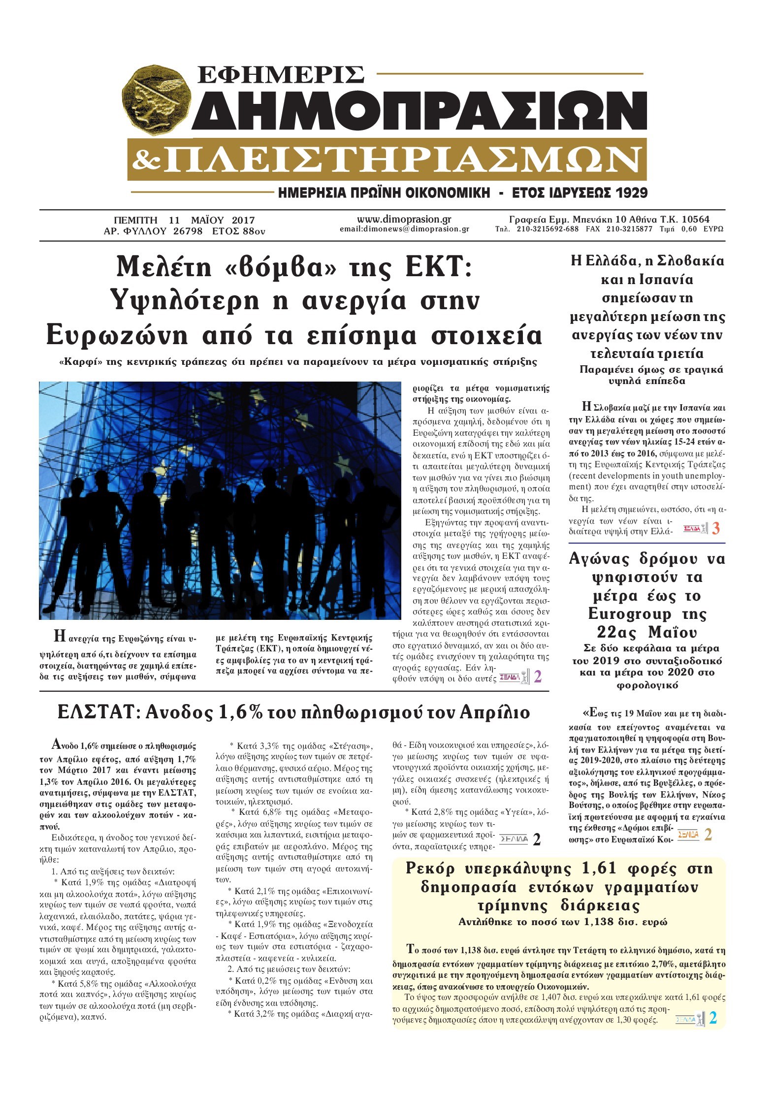 Οι οικονομικές εφημερίδες 11/5/2017 Enikos Newsroom 06:33, Πέμπτη 11 Μαΐου 2017 Media Διαβάστε τα σημερινά πρωτοσέλιδα των οικονομικών εφημερίδων: ΟΙΚΟΝΟΜΙΚΕΣ ΕΦΗΜΕΡΙΔΕΣ ΠΡΩΤΟΣΕΛΙΔΑ Μοιράσου το: σχολίασε κι εσύ (0 σχόλια) Ακολουθήστε το enikos.gr στο Google News και μάθετε πρώτοι όλες τις ειδήσεις Δείτε όλες τις τελευταίες ειδήσεις από την Ελλάδα και τον Κόσμο στο enikos.gr Ειδήσεις Ροή Ειδήσεων 2 ώρες πριν Λιμενικό για την τραγωδία στη Χίο: «Το ταχύπλοο προσέκρουσε στην δεξιά πλευρά του σκάφους μας, ανετράπη και βυθίστηκε» 2 ώρες πριν Μέση Ανατολή: Το Ιράν ζητεί διάλογο με τις ΗΠΑ ενώ η ένταση χτυπά «κόκκινο» στον Περσικό Κόλπο – Τα διπλό «παιχνίδι» της Τεχεράνης 1 ώρα πριν Τραγωδία στη Θεσσαλονίκη: Φορτηγό συγκρούστηκε με αυτοκίνητο – Νεκρός ένας 17χρονος 59 λεπτά πριν Ευρωβαρόμετρο: Πόλεμοι και μετανάστευση ανησυχούν τους πολίτες της ΕΕ – Το 56% στην Ελλάδα είναι απαισιόδοξο για το μέλλον του κόσμου 3 ώρες πριν Έρευνα: Η ακρίβεια αλλάζει τις καταναλωτικές συνήθειες – Περικοπές και σε βασικά αγαθά 4 ώρες πριν Οπτική ψευδαίσθηση: Μόνο αν είσαι ο Σέρλοκ Χολμς θα βρεις το ζώο σε 15 δευτερόλεπτα 4 ώρες πριν Το μπαχαρικό που «θωρακίζει» την υγεία: Μειώνει την χοληστερίνη και τον κίνδυνο καρκίνου 2 ώρες πριν Μυστήριο κάτω από τα βρύα: Ανακαλύφθηκαν βραχογραφίες 3.000 ετών – Τα μοτίβα που παραπέμπουν σε τελετουργικά για την μεταθανάτια ζωή 1 ώρα πριν Κατέστρεψε κατά λάθος έναν γάμο – «Ήρθε μια γυναίκα στην τράπεζα και με ρώτησε γιατί εξαφανίζονται τα λεφτά απ’ τον λογαριασμό της» 3 λεπτά πριν Σαβάνα Γκάθρι: Αναφορές για σημείωμα με λύτρα εκατομμυρίων σε Bitcoin – Σε πλήρη εξέλιξη οι έρευνες 10 λεπτά πριν Τα 4 ζώδια που λαμβάνουν ένα ισχυρό σημάδι από το σύμπαν – «Μια τυχαία κουβέντα μπορεί να κρύβει απαντήσεις για όσα μας απασχολούν» 13 λεπτά πριν Μηταράκης: Θλίψη για την τραγωδία στη Χίο – Πρέπει επιτέλους να τελειώνουμε με τους λαθροδιακινητές και την παράνομη μετανάστευση 18 λεπτά πριν Αυστραλία: Ελληνοκύπριος ξεκίνησε καμπάνια για να μετακομίσει στην έπαυλη της Billie Eilish – Αφορμή οι δηλώσεις της στα Grammy για «κλεμμένη γη» 26 λεπτά πριν LIVE – Ακούστε την εκπομπή του Νίκου Χατζηνικολάου 4/2/2026 ENIKOS NETWORK ΠΟΥ: Σχεδόν 4 στους 10 καρκίνους θα μπορούσαν να είχαν αποφευχθεί Παγκόσμια Ημέρα κατά του Καρκίνου: 14 συστάσεις για την πρόληψη του καρκίνου e-ΕΦΚΑ και ΔΥΠΑ: Ποιοι πληρώνονται σήμερα Αυγά: Αυτές είναι οι προβλέψεις για τις τιμές- Πόσο επηρεάζεται η επάρκεια από τη γρίπη των πτηνών Ευπάθεια στο moltbook ai αποκαλύπτει email, tokens σύνδεσης και api keys Αυτός είναι ο ρόλος της μικρής τρύπας στους νυχοκόπτες – «Είμαι ο μόνος που δεν το ήξερε;»» περισσότερα 09:58 , Τετάρτη 04 Φεβρουαρίου 2026 LIVE – Ακούστε την εκπομπή του Νίκου Χατζηνικολάου 4/2/2026 Ακούστε την εκπομπή του Νίκου Χατζηνικολάου, στον Realfm 97,8. Ακούστε LIVE εδώ 02:33 , Τετάρτη 04 Φεβρουαρίου 2026 MasterChef: Λύγισε ο Γιώργος Αχλαδιώτης – «Κερδίζω, συγκινούμαι… Τώρα θα τους δείξω τι αξίζω» Το πρώτο Τεστ Δημιουργικότητας του MasterChef ολοκληρώθηκε με έναν ξεκάθαρο πρωταγωνιστή. Ο Γι... 21:33 , Τρίτη 03 Φεβρουαρίου 2026 Porto Leone: Στη γειτονιά με τα κόκκινα φανάρια – Η Ασημίνα αποκαλύπτει στην Αλεξάνδρα την εγκυμοσύνη της Λένας Η μεγάλη δραματική σειρά του Apha «Porto Leone: Στη γειτονιά με τα κόκκινα φανάρια» επιστρέφει... 19:52 , Τρίτη 03 Φεβρουαρίου 2026 Να μ’ αγαπάς: Ο Θεόφιλος ζητά από την Σοφία να φύγει από το σπίτι Στο σπίτι των Καλλιγά, τα αληθινά αποτελέσματα DNA επιβεβαιώνουν ότι η Εβίτα ε