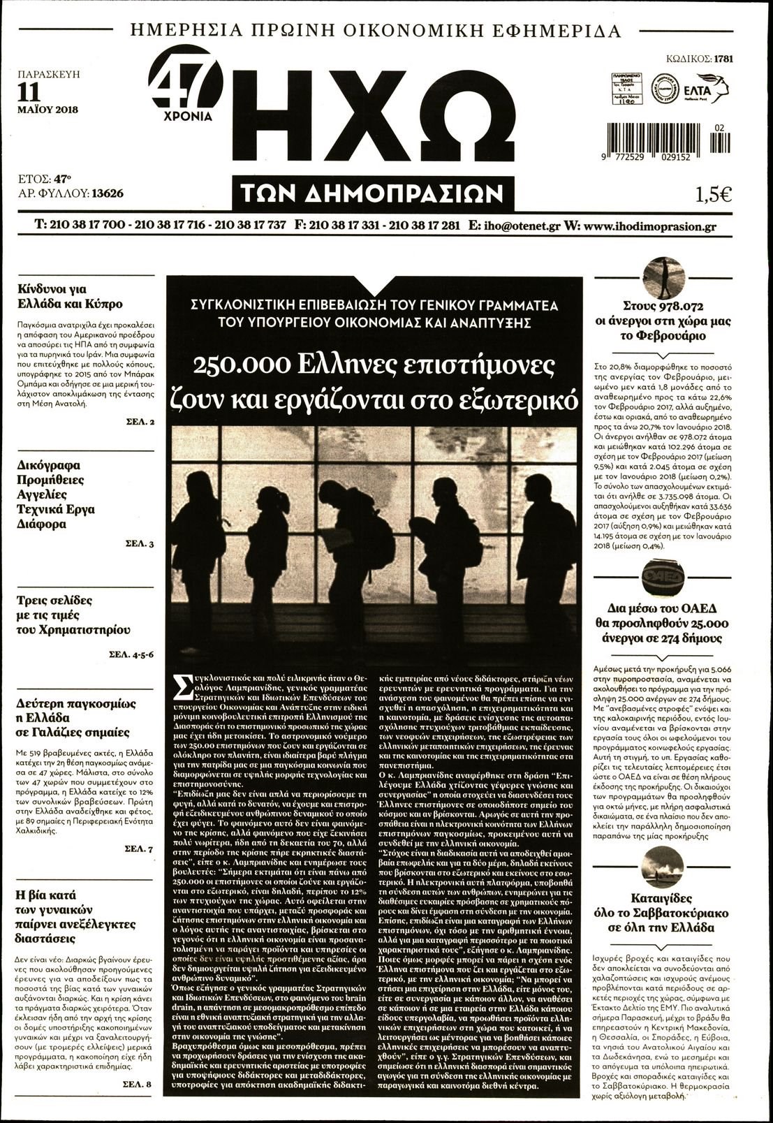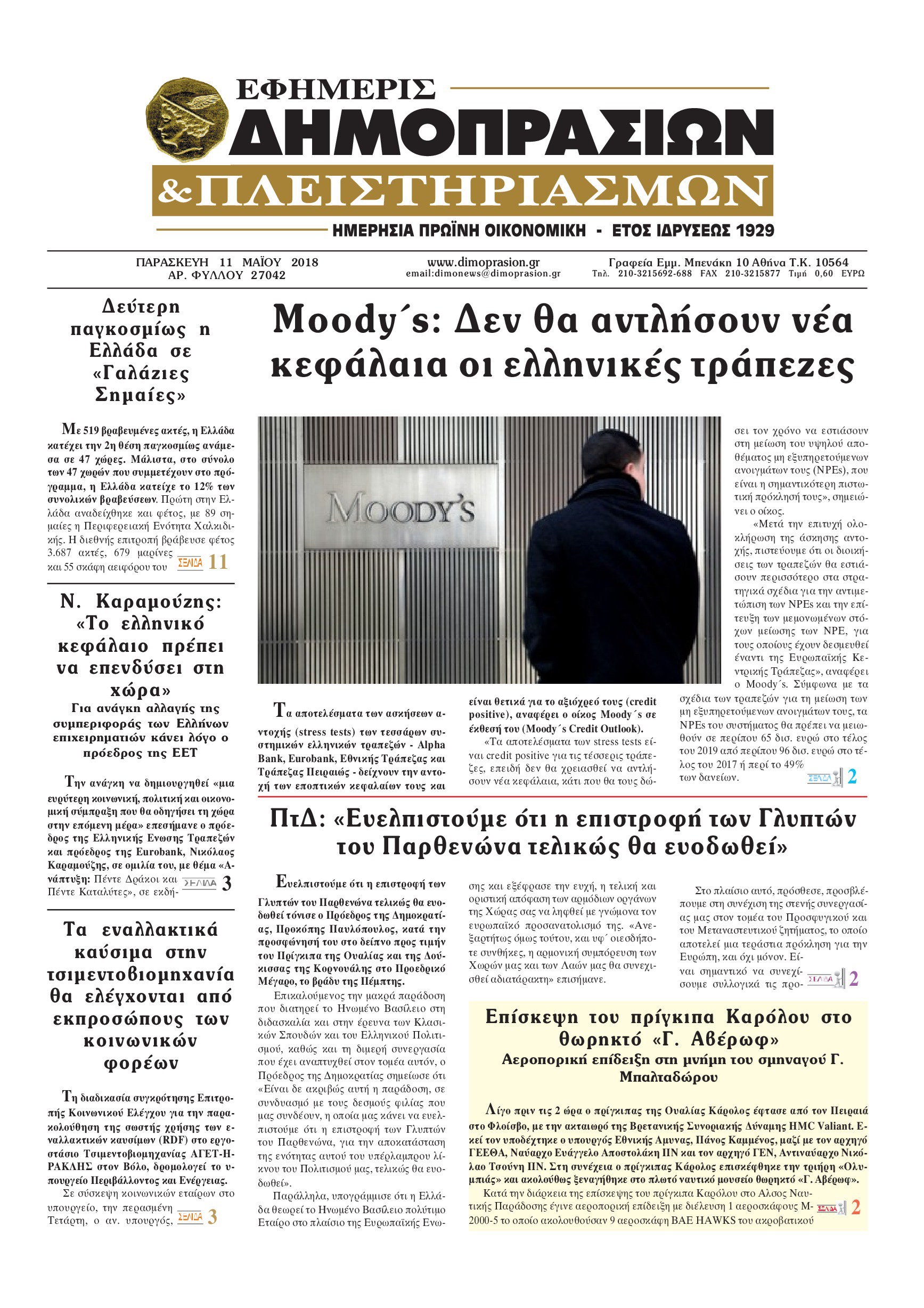 Οι οικονομικές εφημερίδες 11/5/2018 Enikos Newsroom 07:45, Παρασκευή 11 Μαΐου 2018 Media Διαβάστε τα σημερινά πρωτοσέλιδα των οικονομικών εφημερίδων: ΟΙΚΟΝΟΜΙΚΕΣ ΕΦΗΜΕΡΙΔΕΣ ΠΡΩΤΟΣΕΛΙΔΑ Μοιράσου το: σχολίασε κι εσύ (0 σχόλια) Ακολουθήστε το enikos.gr στο Google News και μάθετε πρώτοι όλες τις ειδήσεις Δείτε όλες τις τελευταίες ειδήσεις από την Ελλάδα και τον Κόσμο στο enikos.gr Ειδήσεις Ροή Ειδήσεων 4 ώρες πριν Αυξάνουν την πίεση προς την κυβέρνηση οι αγρότες: Κλείνουν παρακαμπτήριους και ανοίγουν διόδια – Τι θα γίνει τις γιορτές 3 ώρες πριν ΟΠΕΚΕΠΕ: Προφυλακιστέος ο φερόμενος αρχηγός και ο λογιστής της εγκληματικής οργάνωσης 4 ώρες πριν Φοινικούντα: Το Σάββατο απολογείται ο 30χρονος γιος γνωστού επιχειρηματία της Πλάκας που παραδόθηκε – Όσα είπε στους αστυνομικούς και ο ρόλος του στο έγκλημα 3 ώρες πριν Μπορεί ο Μαδούρο να αντέξει τον αποκλεισμό του Τραμπ; Τι θα χρειαστεί η Ουάσινγκτον για να τον ανατρέψει 2 ώρες πριν ΑΕΚ – Κραϊόβα 3-2: Επική ανατροπή και πρόκριση στους «16» του Conference League η Ένωση 3 ώρες πριν Αρχαιολόγοι ανακάλυψαν ρωμαϊκά τεχνουργήματα από μια πόλη που δεν υπήρξε ποτέ – Τα τρία εντυπωσιακά κτίρια και ο αμφορέας με τις… σαρδέλες 4 ώρες πριν Ύπνος: Η απλή βραδινή ρουτίνα για να προστατεύσετε τα μαλλιά σας από το κρύο κατά τη διάρκεια του χειμώνα 5 ώρες πριν Manifesting: Πώς να συναντήσετε τον σύντροφο της ζωής σας, ανάλογα με τον μήνα γέννησής σας 2 ημέρες πριν 20 χρόνια τα Χριστούγεννα ξεκινούν στα Public με μεγάλη ποικιλία σε δώρα! 3 λεπτά πριν Πόλεμος στην Ουκρανία: Ρωσικά drones έπληξαν την Οδησσό – Μία νεκρή και ζημιές σε ενεργειακές υποδομές 10 λεπτά πριν ΑΕΚ-Κραϊόβα: Τα highlights της μυθικής ανατροπής της «Ένωσης» 25 λεπτά πριν Μιχάλης Χρυσοχοΐδης από την Κωνσταντινούπολη: Κοινές επιχειρήσεις Ελλάδας – Τουρκίας ενάντια στο οργανωμένο έγκλημα 48 λεπτά πριν Μάρκο Νίκολιτς: «Είμαι περήφανος για τους παίκτες μου, όποιος αντίπαλος και να έρθει θα προετοιμαστούμε» 57 λεπτά πριν ΟΗΕ: Την εκλογή του νέου ύπατου αρμοστή για τους Πρόσφυγες Μπαρχάμ Άχμεντ Σαλίχ χαιρέτησε ο Αντόνιο Γκουτέρες ENIKOS NETWORK Σε περίοδο αυξημένης δραστηριότητας η γρίπη στην Ελλάδα-Μέτρα προστασίας από τον ΕΟΔΥ Σκέφτεστε συνέχεια συζητήσεις που έχετε κάνει; Τι σημαίνει αυτό, σύμφωνα με ειδικό Στεγαστικό: Τι λέει η ΠΟΜΙΔΑ για τα νέα μέτρα που ανακοίνωσε ο Κυριάκος Μητσοτάκης Λαγκάρντ: Αισιόδοξη για την ανάπτυξη της Ευρωζώνης, αβέβαιη για τον πληθωρισμό Χαρτογραφώντας το «σημείο χωρίς επιστροφή»: Για πρώτη φορά αποκαλύπτεται με λεπτομέρεια το ακανθώδες όριο της ατμόσφαιρας τ... Η Google καταργεί τη λειτουργία «dark web report» – Πώς θα μπορούν οι χρήστες να διαγράφουν τα δεδομένα τους περισσότερα 17:45 , Πέμπτη 18 Δεκεμβρίου 2025 ROUK ZOUK: Εορταστικό επεισόδιο με καλεσμένους τους πρωταγωνιστές του «Γιατί ρε πατέρα» Το Σάββατο 20 Δεκεμβρίου στις 21:00, η Ζέτα Μακρυπούλια υποδέχεται εκλεκτούς ηθοποιούς που όλο... 17:20 , Πέμπτη 18 Δεκεμβρίου 2025 Άγιος έρωτας: Η Χριστίνα εξομολογείται στον πατέρα Νικόλαο, απόψε στις 21:00 στον Alpha Η Νότα αποφασίζει να εκδικηθεί τον Πέτρο και τον Στέφανο, για χάρη του Λούη, όμως τα πράγματα ... 16:50 , Πέμπτη 18 Δεκεμβρίου 2025 Να μ’ αγαπάς: Ζωή και Φωτεινή συμφιλιώνονται ως μάνα με κόρη, απόψε στις 20:00 Η ταυτότητα του Άγγελου αποκαλύπτεται στο νέο επεισόδιο της σειράς “Να μ’ αγαπάς... 15:52 , Πέμπτη 18 Δεκεμβρίου 2025 Το Σπίτι Δίπλα Στο Ποτάμι: Το καθηλωτικό τελευταίο επεισόδιο για το 2025 απόψε στις 22:30 Καθηλώνει το σημερ