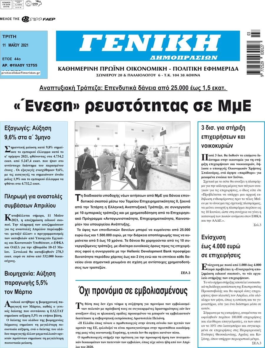 Οι οικονομικές εφημερίδες 11/5/2021 Διονύσης Νίκκας 06:29, Τρίτη 11 Μαΐου 2021 Media Διαβάστε τα πρωτοσέλιδα των οικονομικών εφημερίδων… ΟΙΚΟΝΟΜΙΚΕΣ ΕΦΗΜΕΡΙΔΕΣ Μοιράσου το: σχολίασε κι εσύ (0 σχόλια) Ακολουθήστε το enikos.gr στο Google News και μάθετε πρώτοι όλες τις ειδήσεις Δείτε όλες τις τελευταίες ειδήσεις από την Ελλάδα και τον Κόσμο στο enikos.gr Ειδήσεις Ροή Ειδήσεων 1 ώρα πριν Ευρωπαϊκή Ένωση: Συμφωνία για δάνειο 90 δισ. ευρώ στην Ουκρανία τη διετία 2026-2027 6 ώρες πριν ΟΠΕΚΕΠΕ: Προφυλακιστέος ο φερόμενος αρχηγός και ο λογιστής της εγκληματικής οργάνωσης 7 ώρες πριν Αυξάνουν την πίεση προς την κυβέρνηση οι αγρότες: Κλείνουν παρακαμπτήριους και ανοίγουν διόδια – Τι θα γίνει τις γιορτές 7 ώρες πριν Φοινικούντα: Το Σάββατο απολογείται ο 30χρονος γιος γνωστού επιχειρηματία της Πλάκας που παραδόθηκε – Όσα είπε στους αστυνομικούς και ο ρόλος του στο έγκλημα 5 ώρες πριν ΑΕΚ – Κραϊόβα 3-2: Επική ανατροπή και πρόκριση στους «16» του Conference League η Ένωση 6 ώρες πριν Αρχαιολόγοι ανακάλυψαν ρωμαϊκά τεχνουργήματα από μια πόλη που δεν υπήρξε ποτέ – Τα τρία εντυπωσιακά κτίρια και ο αμφορέας με τις… σαρδέλες 7 ώρες πριν Ύπνος: Η απλή βραδινή ρουτίνα για να προστατεύσετε τα μαλλιά σας από το κρύο κατά τη διάρκεια του χειμώνα 8 ώρες πριν Manifesting: Πώς να συναντήσετε τον σύντροφο της ζωής σας, ανάλογα με τον μήνα γέννησής σας 2 ημέρες πριν 20 χρόνια τα Χριστούγεννα ξεκινούν στα Public με μεγάλη ποικιλία σε δώρα! 6 λεπτά πριν Η TikTok στις ΗΠΑ πωλείται σε Oracle, Silver Lake και MGX – Οι λεπτομέρειες του «deal» 15 λεπτά πριν Αλεξάντερ Λουκασένκο: Η Λευκορωσία βρίσκεται κοντά στην αποκατάσταση των σχέσεών της με τις ΗΠΑ 30 λεπτά πριν Αυστραλία: Κήρυξε την Κυριακή (21/12) ημέρα εθνικού πένθους για τη φονική επίθεση στην παραλία Μπόνταϊ 40 λεπτά πριν Ρόδος: Δάσκαλος καράτε καταδικάστηκε για ασέλγεια σε ανήλικες αθλήτριες – Μαρτυρίες για αγγίγματα σε ευαίσθητα σημεία 54 λεπτά πριν Γουατεμάλα: Εξαρθρώθηκε κύκλωμα διακίνησης μεταναστών προς τις ΗΠΑ – Συνελήφθησαν 14 άτομα ENIKOS NETWORK Σε περίοδο αυξημένης δραστηριότητας η γρίπη στην Ελλάδα-Μέτρα προστασίας από τον ΕΟΔΥ Σκέφτεστε συνέχεια συζητήσεις που έχετε κάνει; Τι σημαίνει αυτό, σύμφωνα με ειδικό Στεγαστικό: Τι λέει η ΠΟΜΙΔΑ για τα νέα μέτρα που ανακοίνωσε ο Κυριάκος Μητσοτάκης Λαγκάρντ: Αισιόδοξη για την ανάπτυξη της Ευρωζώνης, αβέβαιη για τον πληθωρισμό Χαρτογραφώντας το «σημείο χωρίς επιστροφή»: Για πρώτη φορά αποκαλύπτεται με λεπτομέρεια το ακανθώδες όριο της ατμόσφαιρας τ... Η Google καταργεί τη λειτουργία «dark web report» – Πώς θα μπορούν οι χρήστες να διαγράφουν τα δεδομένα τους περισσότερα 02:50 , Παρασκευή 19 Δεκεμβρίου 2025 GNTM: «Κλείδωσαν» οι τέσσερις φιναλίστ – Μεγάλη ανατροπή στις τελευταίες αποχωρήσεις Για προτελευταία φορά εμφανίστηκαν στο πλατό του GNTM οι φιναλίστ του φετινού κύκλου, το βράδυ... 17:45 , Πέμπτη 18 Δεκεμβρίου 2025 ROUK ZOUK: Εορταστικό επεισόδιο με καλεσμένους τους πρωταγωνιστές του «Γιατί ρε πατέρα» Το Σάββατο 20 Δεκεμβρίου στις 21:00, η Ζέτα Μακρυπούλια υποδέχεται εκλεκτούς ηθοποιούς που όλο... 17:20 , Πέμπτη 18 Δεκεμβρίου 2025 Άγιος έρωτας: Η Χριστίνα εξομολογείται στον πατέρα Νικόλαο, απόψε στις 21:00 στον Alpha Η Νότα αποφασίζει να εκδικηθεί τον Πέτρο και τον Στέφανο, για χάρη του Λούη, όμως τα πράγματα ... 16:50 , Πέμπτη 18 Δεκεμβρίου 2025 Να μ’ αγαπάς: Ζωή και Φωτεινή συμφιλιώνονται ως μάνα με κόρη, απόψε στις 20:00 Η ταυτότητα του Άγγελου αποκαλύπτεται στο νέο επεισόδιο της σε
