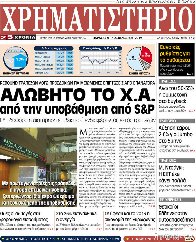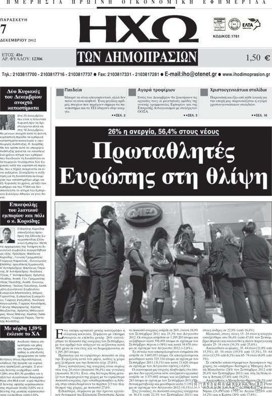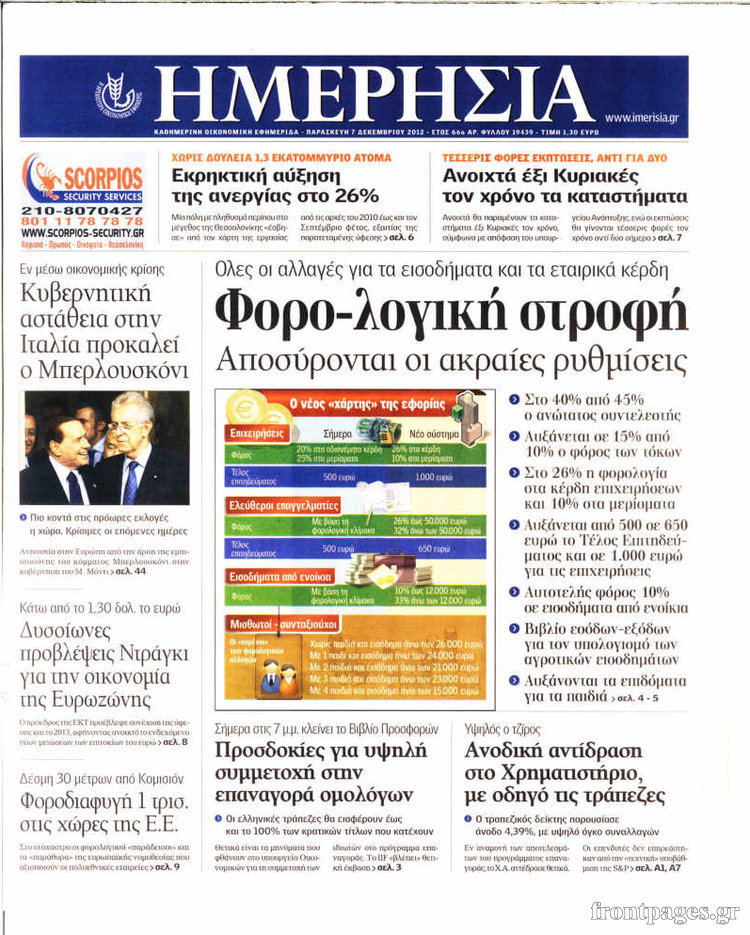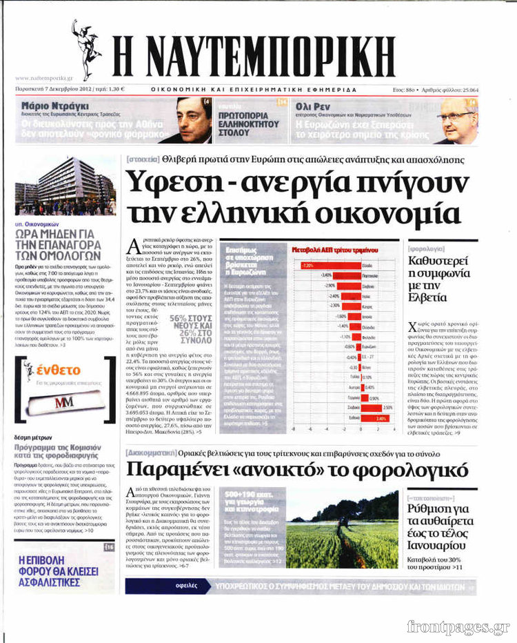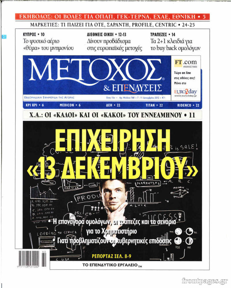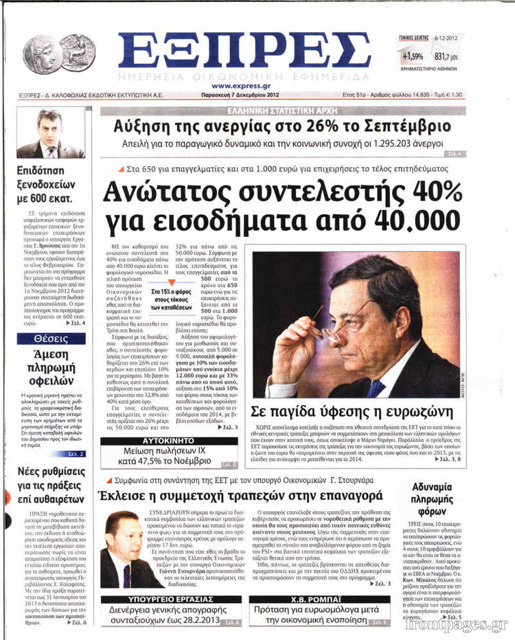 Οι οικονομικές εφημερίδες Enikos Newsroom 10:23, Παρασκευή 07 Δεκεμβρίου 2012 Media Οι οικονομικές εφημερίδες Δείτε τα πρωτοσέλιδα των οικονομικών εφημερίδων. ΟΙΚΟΝΟΜΙΚΕΣ ΕΦΗΜΕΡΙΔΕΣ Μοιράσου το: σχολίασε κι εσύ (0 σχόλια) Ακολουθήστε το enikos.gr στο Google News και μάθετε πρώτοι όλες τις ειδήσεις Δείτε όλες τις τελευταίες ειδήσεις από την Ελλάδα και τον Κόσμο στο enikos.gr Ειδήσεις Ροή Ειδήσεων 4 ώρες πριν Μακελειό στο Σίδνεϊ: Πατέρας και γιος οι δράστες της τρομοκρατικής επίθεσης – Γιατί η Αυστραλία βάζει στο στόχαστρο το Ιράν 5 ώρες πριν Μακελειό στην Αυστραλία: «Πέρασαν οι σφαίρες πάνω από το αυτοκίνητο» – Συγκλονίζει η μαρτυρία Έλληνα που ζει στο Σίδνεϊ 3 ώρες πριν Όλα τα αιτήματα αγροτών, κτηνοτρόφων και μελισσοκόμων προς την κυβέρνηση – Παραμένουν στα μπλόκα και προαναγγέλλουν κλιμάκωση 8 ώρες πριν Τραγική εξέλιξη στο Αίγιο: Πέθανε ο 43χρονος που γρονθοκόπησε γιατρό στο νοσοκομείο 6 ώρες πριν Λακωνία: Βίντεο ντοκουμέντο από την επιχείρηση διάσωσης της 13χρονης που έπεσε σε πηγάδι – Ποια ήταν τα πρώτα λόγια της 5 ώρες πριν Ύπνος: 5 λόγοι για τους οποίους ξυπνάτε κουρασμένοι το πρωί κατά τη διάρκεια του χειμώνα 8 ώρες πριν Οι 7 βραδινές συνήθειες που μαρτυρούν ότι κάποιος υποφέρει από βαθιά μοναξιά, σύμφωνα με την ψυχολογία 16 ώρες πριν Τα 8 πράγματα που τα ευτυχισμένα ζευγάρια δεν κάνουν ποτέ μπροστά στα παιδιά τους 7 ώρες πριν Κουζίνα: Η καθημερινή συνήθεια των ανθρώπων που την διατηρούν πάντα καθαρή 19 λεπτά πριν Νότια Κορέα: Έφοδος της αστυνομίας στα γραφεία της Ενωτικής Εκκλησίας στη Σεούλ 35 λεπτά πριν Serie A: Ήττα σοκ για την Φιορεντίνα στο ντέρμπι των ουραγών, κορυφή για την Ίντερ, στο «κόλπο» ξανά η Γιούβε – Τα αποτελέσματα και η βαθμολογία 49 λεπτά πριν Λίβανος: Οι IDF ανέφεραν ότι σκότωσαν τρία μέλη της Χεζμπολάχ 1 ώρα πριν Ρωσία: Στο στόχαστρο της Μόσχας η Deutsche Welle – «Δεν θα μας φιμώσουν», δηλώνει η Διεύθυνση 1 ώρα πριν Συγκίνησε η Ντορέττα Παπαδημητρίου: «Κλείνουν 11 χρόνια από όταν έφυγε από τη ζωή, ήταν πολύ ξαφνικό όπως έγινε και αυτό μας συσπείρωσε» ENIKOS NETWORK 8 κορυφαίες συμβουλές για άνδρες που θέλουν φλογερή σεξουαλική ζωή, σύμφωνα με ειδικό Baby botox: Ποια τα οφέλη και οι κίνδυνοι του να ξεκινήσει κάποιος τις ενέσεις πριν εμφανιστούν ρυτίδες Τέλος οι διώξεις για χρέη σε Εφορία και ΕΦΚΑ – Τι προβλέπει νέα διάταξη μετά την πτώχευση Υπουργείο Αγροτικής Ανάπτυξης: Ενισχύσεις de minimis ύψους 2,1 εκατ. ευρώ – Οι δικαιούχοι Σύγχρονος Νοστράδαμος: Προειδοποιεί για «μεγάλο γεγονός» τους επόμενους μήνες που θα συγκλονίσει τη Βρετανία και τον κόσμο Τεστ παρατηρητικότητας: Μπορείτε να βρείτε τις 3 διαφορές στις εικόνες με έναν πιγκουίνο σε 14 δευτερόλεπτα περισσότερα 21:34 , Κυριακή 14 Δεκεμβρίου 2025 Ο Δικαστής: Η Λέττα είναι αποφασισμένη να αποκαλύψει την αλήθεια για το τροχαίο, απόψε στις 21:45 στον ΑΝΤ1 Ραγδαίες οι εξελίξεις στο νέο επεισόδιο της σειράς “Ο Δικαστής” απόψε στις 21:45 σ... 17:38 , Κυριακή 14 Δεκεμβρίου 2025 Τηλεθέαση (13/12): Τα ποσοστά για το βράδυ του Σαββάτου Η «μάχη» της prime time για την τηλεθέαση, συνεχίστηκε δυναμικά το βράδυ του Σαββάτου (13/12).... 16:32 , Κυριακή 14 Δεκεμβρίου 2025 Τηλεθέαση (13/12): Πώς κινήθηκαν οι εκπομπές στην πρωινή ζώνη το Σάββατο Με αμείωτη ένταση συνεχίστηκε η μάχη για την τηλεθέαση στην πρωινή ζώνη των τηλεοπτικών καναλι... 15:07 , Κυριακή 14 Δεκεμβρίου 2025 IQ160: Η Μαρίνα στέλνει το φούτερ του Τηλέμαχου για το τεστ πατρότητας Η Πηνελόπη αποφασίζει να κάνει αμνιοπαρα