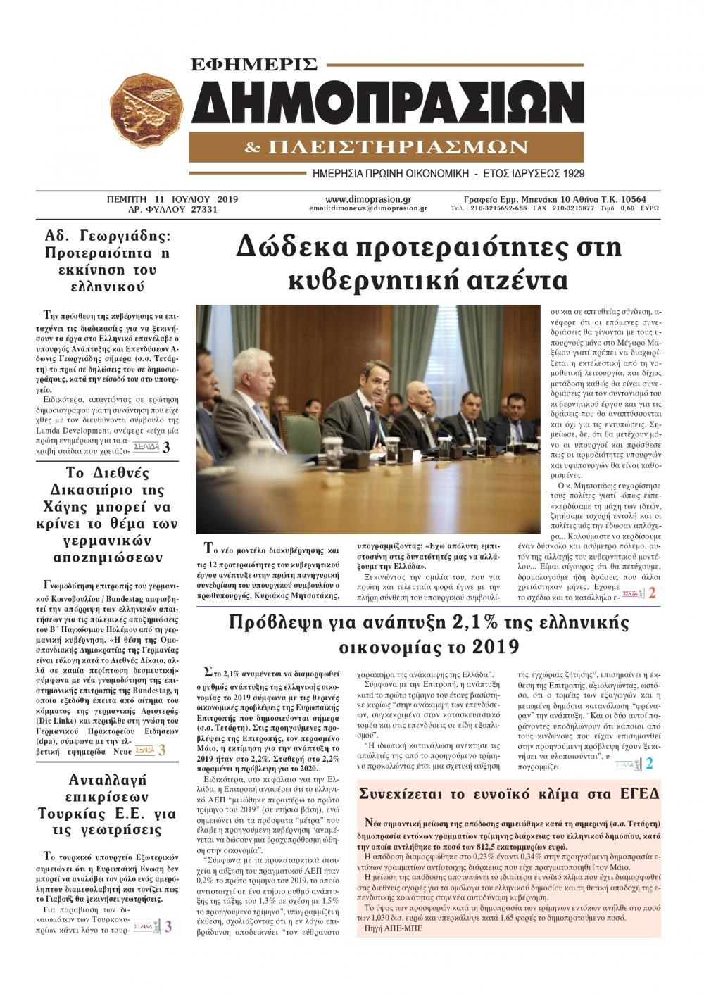 Οι οικονομικές εφημερίδες 11/7/19 Διονύσης Νίκκας 06:43, Πέμπτη 11 Ιουλίου 2019 Media Διαβάστε τα πρωτοσέλιδα των οικονομικών εφημερίδων… ΟΙΚΟΝΟΜΙΚΩΝ ΠΡΩΤΟΣΕΛΙΔΑ Μοιράσου το: σχολίασε κι εσύ (0 σχόλια) Ακολουθήστε το enikos.gr στο Google News και μάθετε πρώτοι όλες τις ειδήσεις Δείτε όλες τις τελευταίες ειδήσεις από την Ελλάδα και τον Κόσμο στο enikos.gr Ειδήσεις Ροή Ειδήσεων 3 ώρες πριν Σίδνεϊ: Τουλάχιστον 10 νεκροί και 16 τραυματίες σε ένοπλη επίθεση – Βίντεο από «ήρωα» περαστικό που αφόπλισε έναν δράστη 1 ώρα πριν ΟΠΕΚΕΠΕ: Ποινική δίωξη με βαρύτατες κατηγορίες για τους 15 συλληφθέντες στην Κρήτη για τις παράνομες επιδοτήσεις 3 ώρες πριν Σκληραίνουν τη στάση τους οι αγρότες: Αποφασίζουν τις δράσεις της εβδομάδας – Αύριο το συλλαλητήριο στα δικαστήρια της Λάρισας 3 ώρες πριν Στιγμές τρόμου για επιβάτες λεωφορείου στη Θεσσαλονίκη: Ο οδηγός πέρασε με κόκκινο σε σιδηροδρομική διάβαση ενώ ερχόταν τρένο και έσπασε την μπάρα 5 ώρες πριν Κυριάκος Μητσοτάκης μετά το «όχι» των αγροτών: Διάλογος δεν γίνεται με τελεσίγραφα και οι λύσεις προκύπτουν μόνο από συζήτηση 3 ώρες πριν Προπονήτρια ευεξίας που έχασε 24 κιλά αποκαλύπτει: «Αυτά είναι τα 6 ανησυχητικά σημάδια της υψηλής κορτιζόλης» 5 ώρες πριν Η ζωή γίνεται πολύ καλύτερη για 3 ζώδια – «Ίσως έχει έρθει η ώρα να κάνετε μια πραγματική και μόνιμη αλλαγή» 4 ώρες πριν Τα 8 πράγματα που τα ευτυχισμένα ζευγάρια δεν κάνουν ποτέ μπροστά στα παιδιά τους 6 ώρες πριν Ξέσπασε σε κλάματα με το χριστουγεννιάτικο δώρο του άνδρα της – «Μου είπε ότι είμαι το πιο αχάριστο άτομο που έχει γνωρίσει» 3 λεπτά πριν Λαμία: Τραυματίστηκε 15χρονος με ηλεκτρικό πατίνι – Έπεσε πάνω σε σταθμευμένο αυτοκίνητο 10 λεπτά πριν Συνέδριο: «Ελληνικός Τουρισμός, Μια Εθνική Υπόθεση!» 17 λεπτά πριν Κρεμλίνο: Επιπολαιότητα του Ρούτε να μιλήσει για πόλεμο με τη Ρωσία 26 λεπτά πριν Κυριάκος Μητσοτάκης για το μακελειό στην Αυστραλία: «Είμαι βαθιά συγκλονισμένος – Ο αντισημιτισμός και το μίσος δεν έχουν θέση στις κοινωνίες μας» 34 λεπτά πριν Ζελένσκι: «Θα υπάρξουν συμβιβασμοί» – Ενόψει κρίσιμων συνομιλιών στο Βερολίνο πιέζει για «αξιοπρεπή» ειρήνη ENIKOS NETWORK Άσκηση ή περισσότερος ύπνος: Τι είναι πιο σημαντικό για την υγεία όταν δεν έχετε χρόνο και για τα δύο; Σπλαχνικό λίπος: 3 υδατάνθρακες που μπορεί να σας βοηθήσουν να το χάσετε, σύμφωνα με ειδικό Βαρύς ο λογαριασμός για τους φορολογούμενους – Τι πρέπει να πληρώσετε έως το τέλος του μήνα Αντέχουν οι ευρωπαϊκές και οι ελληνικές εξαγωγές στους δασμούς Τραμπ – Αυξάνονται οι εισαγωγές από Κίνα Σύγχρονος Νοστράδαμος: Προειδοποιεί για «μεγάλο γεγονός» τους επόμενους μήνες που θα συγκλονίσει τη Βρετανία και τον κόσμο Τεστ παρατηρητικότητας: Μπορείτε να βρείτε τις 3 διαφορές στις εικόνες με έναν πιγκουίνο σε 14 δευτερόλεπτα περισσότερα 12:46 , Κυριακή 14 Δεκεμβρίου 2025 Η Realnews στο www.pressreader.com Διαβάστε την ψηφιακή έκδοση της εφημερίδας στην οθόνη του κινητού, του tablet και του υπολογισ... 10:07 , Κυριακή 14 Δεκεμβρίου 2025 Η γη της ελιάς: Η αρχή του τέλους του Δημοσθένη πλησιάζει Η δραματική σειρά του MEGA «Η γη της ελιάς» επιφυλάσσει ακόμα μεγαλύτερες ανατροπές. Κάθε επει... 08:15 , Κυριακή 14 Δεκεμβρίου 2025 Σήμερα με τη Realnews: Food & Travel μαζί Beaute και Μαστορέματα Σήμερα με τη Realnews: Food & Travel μαζί Beaute και Μαστορέματα Food & Travel Ετοιμάζ... 07:46 , Κυριακή 14 Δεκεμβρίου 2025 Σήμερα με τη Realnews: Σκάναρε & κέρδισε με το PaduApp Τo κορυφαίο app επιβράβευσης στην Ελλάδα που σε αν