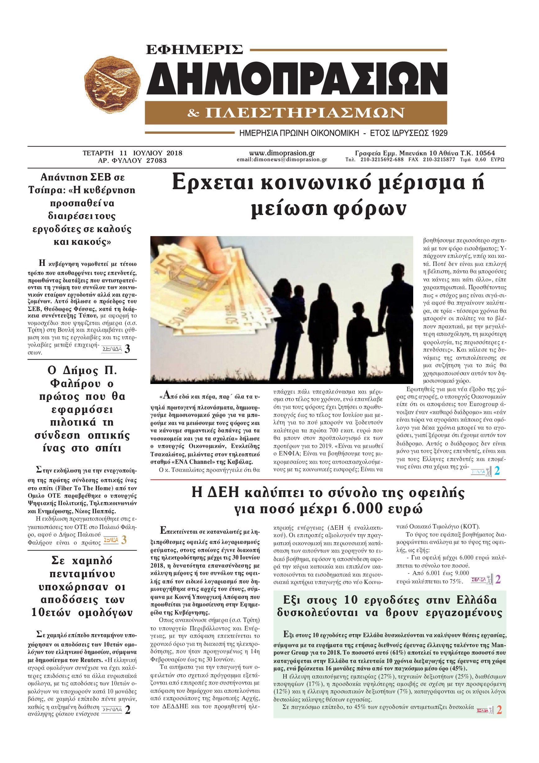 Οι οικονομικές εφημερίδες 11/7/2018 Enikos Newsroom 06:38, Τετάρτη 11 Ιουλίου 2018 Media Τα πρωτοσέλιδα των οικονομικών εφημερίδων. ΟΙΚΟΝΟΜΙΚΕΣ ΕΦΗΜΕΡΙΔΕΣ ΠΡΩΤΟΣΕΛΙΔΑ Μοιράσου το: σχολίασε κι εσύ (0 σχόλια) Ακολουθήστε το enikos.gr στο Google News και μάθετε πρώτοι όλες τις ειδήσεις Δείτε όλες τις τελευταίες ειδήσεις από την Ελλάδα και τον Κόσμο στο enikos.gr Ειδήσεις Ροή Ειδήσεων 8 ώρες πριν Μητσοτάκης: Αναγκαία η μεταρρύθμιση του πρωτογενούς τομέα – Τα 6 νέα μέτρα για το στεγαστικό και οι αναφορές σε «Ιθάκη» και «πολιτικούς του καναπέ» 8 ώρες πριν Δάνεια σε ελβετικό φράγκο: Τα βασικά σημεία της ρύθμισης – ανάσας για 40.000 δανειολήπτες – Αναλυτικός οδηγός με ερωτήσεις και απαντήσεις 7 ώρες πριν Κυψέλη: Εξιτήριο πήρε η 14χρονη μαθήτρια που μαχαιρώθηκε από την 16χρονη σε σχολείο – «Θέλω να βοηθήσω το παιδί, έχει μπλέξει με κακές παρέες» 7 ώρες πριν Τραμπ: Γιατί κατέθεσε τώρα την αγωγή κατά του BBC – Πώς η κίνησή του εξυπηρετεί το νέο δόγμα του για «αντίσταση» στην Ευρώπη, υπέρ των συντηρητικών 8 ώρες πριν ΟΠΕΚΕΠΕ – Παράνομες επιδοτήσεις: Ελεύθεροι με περιοριστικούς όρους και οι 7 κατηγορούμενοι που απολογήθηκαν σήμερα 7 ώρες πριν Ανακαλύφθηκε βυθισμένη πέτρινη κατασκευή ανοιχτά της Κριμαίας – Αποτελεί μέρος αρχαίας ελληνικής αποικίας 8 ώρες πριν Ύπνος: Αυτό μπορεί να είναι το χειρότερο λάθος για το βιολογικό ρολόι σας, σύμφωνα με ειδικό 9 ώρες πριν Αριθμολογία: Οι άνθρωποι που έχουν γεννηθεί αυτές τις 3 ημερομηνίες, προσελκύουν μεγάλη τύχη πριν από το τέλος του 2025 11 ώρες πριν Οι 7 συμπεριφορές που μαρτυρούν ότι ένας άνδρας επενδύει μακροπρόθεσμα σε μια σχέση 4 δευτερόλεπτα πριν Υγεία του εντέρου: Προσθέστε 1 superfood στα scrambled eggs για καλύτερη πέψη και ευεξία 7 λεπτά πριν Σαν σήμερα 17 Δεκεμβρίου: Τα σημαντικότερα γεγονότα της ημέρας 13 λεπτά πριν Οι οικονομικές εφημερίδες 17/12/2025 17 λεπτά πριν Οι αθλητικές εφημερίδες 17/12/2025 22 λεπτά πριν Οι πολιτικές εφημερίδες 17/12/2025 ENIKOS NETWORK Αίτημα ΙΣΑ για την εξαίρεση των προσωπικών γιατρών από τις κατ’ οίκον επισκέψεις Η σκανδιναβική μέθοδος στον ύπνο που μπορεί να σώσει έναν γάμο Πιερρακάκης: Ο προϋπολογισμός συμβάλλει ουσιαστικά στην ενίσχυση της αγοραστικής δύναμης της πλειονότητας των εργαζομένων e-ΕΦΚΑ: Παρατείνεται η προθεσμία για την υποβολή ΑΠΔ – Ποιους αφορά Σύγχρονος Νοστράδαμος: Προειδοποιεί για «μεγάλο γεγονός» τους επόμενους μήνες που θα συγκλονίσει τη Βρετανία και τον κόσμο Τεστ παρατηρητικότητας: Μπορείτε να βρείτε τις 3 διαφορές στις εικόνες με έναν πιγκουίνο σε 14 δευτερόλεπτα περισσότερα 05:48 , Τετάρτη 17 Δεκεμβρίου 2025 Οι οικονομικές εφημερίδες 17/12/2025 Διαβάστε τα πρωτοσέλιδα από τις οικονομικές εφημερίδες, σήμερα 17/12/2025. 05:43 , Τετάρτη 17 Δεκεμβρίου 2025 Οι αθλητικές εφημερίδες 17/12/2025 Διαβάστε τα πρωτοσέλιδα από τις αθλητικές εφημερίδες, σήμερα 17/12/2025. 05:38 , Τετάρτη 17 Δεκεμβρίου 2025 Οι πολιτικές εφημερίδες 17/12/2025 Διαβάστε τα πρωτοσέλιδα από τις πολιτικές εφημερίδες, σήμερα 17/12/2025. 20:06 , Τρίτη 16 Δεκεμβρίου 2025 Ο ΣΚΑΙ καταγγέλλει τον ΕΚΚΟΜΕΔ Επιστολή με την οποία καταγράφει την έντονη διαμαρτυρία του προς τον διευθύνοντα σύμβουλο του... ΤΕΛΕΥΤΑΙΕΣ ΕΙΔΗΣΕΙΣ 7 λεπτά πριν Σαν σήμερα 17 Δεκεμβρίου: Τα σημαντικότερα γεγονότα... 13 λεπτά πριν Οι οικονομικές εφημερίδες 17/12/2025 17 λεπτά πριν Οι αθλητικές εφημερίδες 17/12/2025 22 λεπτά πριν Οι πολιτικές εφημερίδες 17/12/2025 31 λεπτά πριν Τα ζώδια σήμερα, Τετάρτη 17 Δεκεμβρίου: Κριοί, η... 38 λεπτά πριν Εφημερεύοντα φαρ