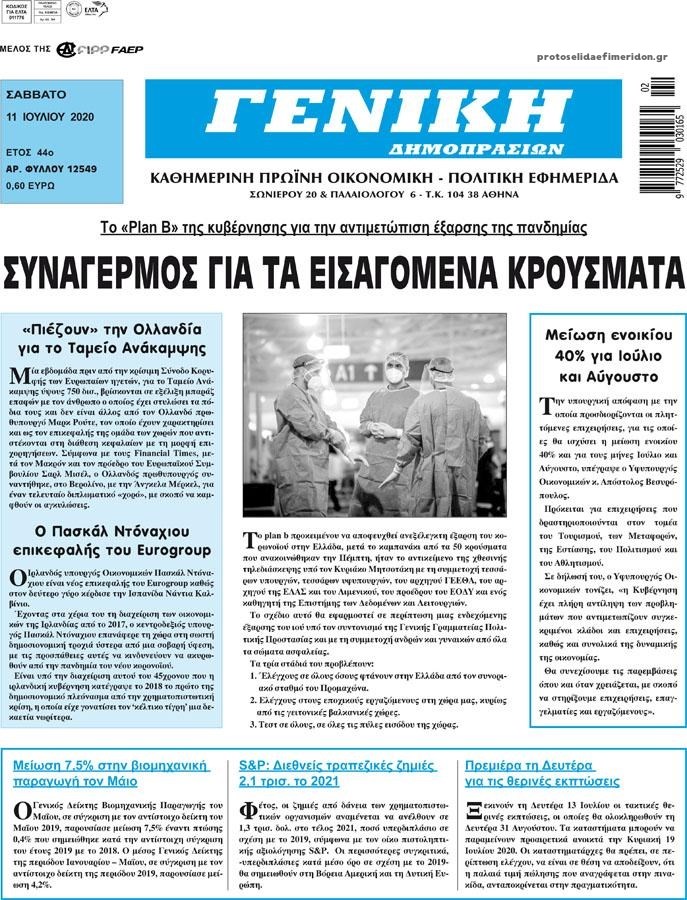 Οι οικονομικές εφημερίδες 11/7/2020 Διονύσης Νίκκας 07:52, Σάββατο 11 Ιουλίου 2020 Media Διαβάστε τα πρωτοσέλιδα των οικονομικών εφημερίδων… ΟΙΚΟΝΟΜΙΚΕΣ ΕΦΗΜΕΡΙΔΕΣ Μοιράσου το: σχολίασε κι εσύ (0 σχόλια) Ακολουθήστε το enikos.gr στο Google News και μάθετε πρώτοι όλες τις ειδήσεις Δείτε όλες τις τελευταίες ειδήσεις από την Ελλάδα και τον Κόσμο στο enikos.gr Ειδήσεις Ροή Ειδήσεων 1 ώρα πριν Χριστούγεννα στα μπλόκα: Επιμένουν στις κινητοποιήσεις τους οι αγρότες – Ανοίγουν τα διόδια το Σαββατοκύριακο 2 ώρες πριν Ουκρανία: Η άνευ προηγουμένου επίθεση σε ρωσικό τάνκερ στη Μεσόγειο και το μήνυμα προς στον Πούτιν – Το «μακρύ χέρι» του Κιέβου 48 λεπτά πριν Πούτιν: Τα μηνύματα σε Ευρώπη και ΝΑΤΟ από το μαραθώνιο «σόου» του – Η απαίτηση για «σεβασμό» και η ειρήνη «με τους όρους» της Μόσχας 2 ώρες πριν Τραμπ: Δεν αποκλείει την πιθανότητα ενός πολέμου στη Βενεζουέλα – «Ο Μαδούρο ξέρει καλύτερα από τον καθένα τι ακριβώς θέλω» 2 ώρες πριν Συνεχίζει να προκαλεί ο Μίτσκοσκι: «Για μένα το όνομα Μακεδονία είναι ιερό» 49 λεπτά πριν Ανακαλύφθηκαν αρχαία χρυσά νομίσματα 2.200 ετών που απεικονίζουν τον θεό Απόλλωνα – Η άγνωστη σύνδεση με τον Φίλιππο Β΄ της Μακεδονίας 2 ώρες πριν Ύπνος: Μια κρυφή κατάσταση του εγκεφάλου πριν από τον ύπνο μπορεί να είναι το “κλειδί” για υψηλή ευφυΐα και δημιουργικότητα 3 ώρες πριν Αριθμολογία: Οι άνθρωποι που έχουν γεννηθεί αυτές τις 4 ημερομηνίες, συχνά παρεξηγούνται – «Η καλοσύνη τους κρύβει τεράστια δύναμη» 4 ώρες πριν Ξεχάστε το καθάρισμα το Σαββατοκύριακο: Ο «κανόνας των 20 λεπτών» που θα σας λύσει τα χέρια 4 λεπτά πριν Σάμος: Άνοιξε το μπλόκο των αγροτών στον κόμβο Κοκκαρίου – Σε νέα συνεδρίαση θα καθορίσουν την στάση τους 12 λεπτά πριν Άνω Λιόσια: Πυροβολισμοί σε επιχείρηση με χαλιά – Εντοπίστηκαν 10 κάλυκες 19 λεπτά πριν Γάζα: Ισραηλινό πλήγμα σε σχολείο που είχαν καταφύγει εκτοπισμένοι – Τουλάχιστον έξι νεκροί 33 λεπτά πριν Ολυμπιακός – Βιλερμπάν 107-84: Επιστροφή στις νίκες με… προπόνηση 39 λεπτά πριν Νέος Κόσμος: Συνελήφθη 41χρονος με ένταλμα από την Τουρκία για εμπόριο ναρκωτικών και ληστεία ENIKOS NETWORK Το ΕΚΑΒ τιμήθηκε από την Ακαδημία Αθηνών για τα 40 χρόνια προσφοράς του Έχετε πραγματικά μεγάλη καρδιά; 10 χαρακτηριστικά όσων έχουν καλοσύνη Αναστολή μέτρων αναγκαστικής εκτέλεσης για κτηνοτρόφους που πλήττονται από την ευλογιά των αιγοπροβάτων Πλήρης επάρκεια προϊόντων στις λαϊκές της Αττικής, παρά τις αγροτικές κινητοποιήσεις – Τι απαντούν οι πωλητές Χαρτογραφώντας το «σημείο χωρίς επιστροφή»: Για πρώτη φορά αποκαλύπτεται με λεπτομέρεια το ακανθώδες όριο της ατμόσφαιρας τ... Η Google καταργεί τη λειτουργία «dark web report» – Πώς θα μπορούν οι χρήστες να διαγράφουν τα δεδομένα τους περισσότερα 22:42 , Παρασκευή 19 Δεκεμβρίου 2025 Γιώργος Γιαννόπουλος για “Το σόι σου”: “Είναι ευτυχία και ευλογία αυτή η σειρά” «Είναι ευτυχία και ευλογία η συγκυρία αυτής της σειράς», θα πει ο Γιώργος Γιαννόπουλος -ο αγαπ... 20:37 , Παρασκευή 19 Δεκεμβρίου 2025 Don’t Forget The Lyrics: Η Έλλη Κοκκίνου υποδέχεται 4 παίκτες που θα κάνουν τα πάντα για να μη χάσουν ούτε… μισή λέξη από τους στίχους Το «Don’t Forget The Lyrics» επιστρέφει απόψε, Παρασκευή 19 Δεκεμβρίου, στις 21:00 με νέο επει... 19:31 , Παρασκευή 19 Δεκεμβρίου 2025 GNTM: Απόψε ο μεγάλος τελικός για τους 4 φιναλίστ Έπειτα από μήνες γεμάτους μόδα, δημιουργία και έντονες αναμετρήσεις, το GNTM 2025 κορυφώνεται,... 18:11 , Παρασκευή 19 Δεκεμβρίου 2025 Το σόι σου: Ο Άρης έρχετα