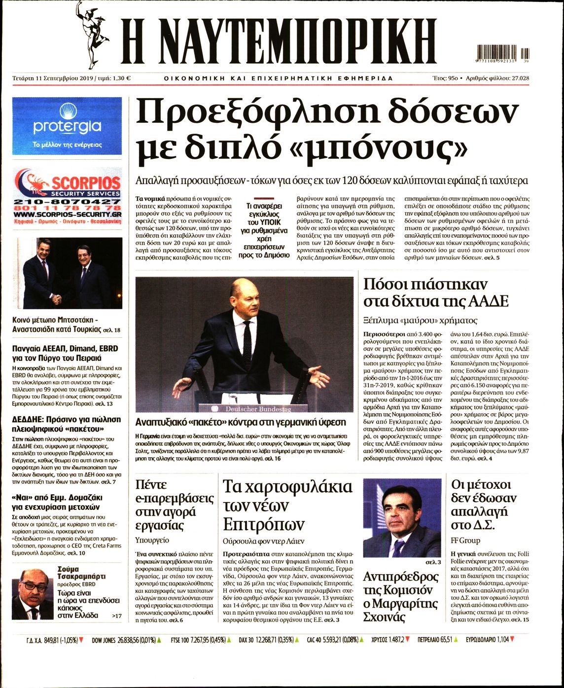 Οι οικονομικές εφημερίδες 11/9/19 Διονύσης Νίκκας 06:21, Τετάρτη 11 Σεπτεμβρίου 2019 Media Διαβάστε τα πρωτοσέλιδα των οικονομικών εφημερίδων… ΕΦΗΜΕΡΙΔΩΝ ΟΙΚΟΝΟΜΙΚΩΝ ΠΡΩΤΟΣΕΛΙΔΑ Μοιράσου το: σχολίασε κι εσύ (0 σχόλια) Ακολουθήστε το enikos.gr στο Google News και μάθετε πρώτοι όλες τις ειδήσεις Δείτε όλες τις τελευταίες ειδήσεις από την Ελλάδα και τον Κόσμο στο enikos.gr Ειδήσεις Ροή Ειδήσεων 4 ώρες πριν Ανυποχώρητοι οι αγρότες: Δεν πάνε στο Μαξίμου, κλιμακώνουν τις κινητοποιήσεις – Ποια είναι τα αιτήματά τους 1 ώρα πριν ΗΠΑ: Τουλάχιστον δύο νεκροί και αρκετοί τραυματίες ύστερα από ένοπλη επίθεση στο Πανεπιστήμιο Μπράουν 3 ώρες πριν ΟΠΕΚΕΠΕ-Κρήτη: Πώς δρούσε το κύκλωμα με τις παράνομες επιδοτήσεις – Τα ΚΥΔ, οι ψευδείς αιτήσεις και τα… «βράχια της Νορμανδίας» 3 ώρες πριν Διατλαντικό ρήγμα: Οι σχέσεις ΗΠΑ – Ευρώπης επιδεινώνονται λόγω του νέου δόγματος Τραμπ και της πίεσης που ασκεί στην Ουκρανία 4 ώρες πριν Διπλό φονικό στη Φοινικούντα: Δύο νέα πρόσωπα στο «κάδρο» των ερευνών – Οι αντιφάσεις στις καταθέσεις του ανιψιού 4 ώρες πριν Εκπληκτική ανακάλυψη σε αρχαία ελληνική πόλη: Βρέθηκε γυναικείο κεφάλι αγάλματος και οι αρχαιολόγοι εκτιμούν ότι μπορεί να συνδέεται με τη θεά Εστία 5 ώρες πριν Ύπνος: 9 πράγματα που μπορείτε να κάνετε πριν κοιμηθείτε για να ξυπνάτε πιο χαρούμενοι το πρωί, σύμφωνα με ειδικούς 6 ώρες πριν Αριθμολογία: Οι άνθρωποι που έχουν γεννηθεί αυτές τις 4 ημερομηνίες, δεν αντέχουν να κάνουν μία κλασική δουλειά γραφείου 7 ώρες πριν Χριστουγεννιάτικο δέντρο: Το έξυπνο κόλπο με τα στολίδια για να φαίνεται πιο γεμάτο 20 λεπτά πριν Λευτέρης Πετρούνιας: «Δεν μπορείς να φορτώνεις ένα εξάχρονο με τέτοιο βάρος, σε μένα μπορείς να πεις ό,τι θέλεις» 35 λεπτά πριν Βολοντίμιρ Ζελένσκι: Συναντήσεις με Αμερικανούς και Ευρωπαίους αντιπροσώπους στο Βερολίνο 50 λεπτά πριν Γιώργος Βαγιαννίδης: Δύο ασίστ από τον Έλληνα αμυντικό στη νίκη της «εξάσφαιρης» Σπόρτινγκ – Δείτε βίντεο 1 ώρα πριν ΗΠΑ: Τουλάχιστον δύο νεκροί και αρκετοί τραυματίες ύστερα από ένοπλη επίθεση στο Πανεπιστήμιο Μπράουν 1 ώρα πριν ΗΠΑ: Αναγκαστική προσγείωση αεροσκάφους της United Airlines στην Ουάσινγκτον εξαιτίας βλάβης σε κινητήρα ENIKOS NETWORK «Με αυτόν τον τρόπο κατάφερα να απογειώσω τη σεξουαλική μου ζωή» – Τι αποκαλύπτει 40χρονη Πείτε «τέλος» στην ακμή χωρίς φάρμακα – Ειδικός αποκαλύπτει αποτελεσματική ρουτίνα περιποίησης Νέα εποχή για την Εγνατία Οδό – Τι αλλάζει με επενδύσεις 1,8 δισ. ευρώ Στάση εργασίας στα λεωφορεία την Τετάρτη 17 Δεκεμβρίου – Κανονικά τα περιαστικά δρομολόγια Σύγχρονος Νοστράδαμος: Προειδοποιεί για «μεγάλο γεγονός» τους επόμενους μήνες που θα συγκλονίσει τη Βρετανία και τον κόσμο Τεστ παρατηρητικότητας: Μπορείτε να βρείτε τις 3 διαφορές στις εικόνες με έναν πιγκουίνο σε 14 δευτερόλεπτα περισσότερα 22:56 , Σάββατο 13 Δεκεμβρίου 2025 «Το παιδί»: Η Άρτεμις κάνει μια μακάβρια ανακάλυψη – Τι θα δούμε στα επόμενα επεισόδια Μη χάσετε τις εξελίξεις στα νέα επεισόδια της μαύρης κοινωνικής κωμωδίας «Το παιδί», στην ΕΡΤ1... 22:16 , Σάββατο 13 Δεκεμβρίου 2025 Άγιος έρωτας- επόμενα επεισόδια: Ο Αντρέας μαθαίνει ότι ο Χάρης είναι γιος του Μια εβδομάδα γεμάτη καταιγιστικές εξελίξεις στα νέα επεισόδια της σειράς “Άγιος Έρωτας... 20:40 , Σάββατο 13 Δεκεμβρίου 2025 HOTΕΛ ΕΛVIRA: Η Ελβίρα προσπαθεί να βγάλει οριστικά από το μυαλό της τον Χάρι, απόψε στις 21:00 Σε προεκλογικό πυρετό βρίσκεται το νησί, στο νέο επεισόδιο 
