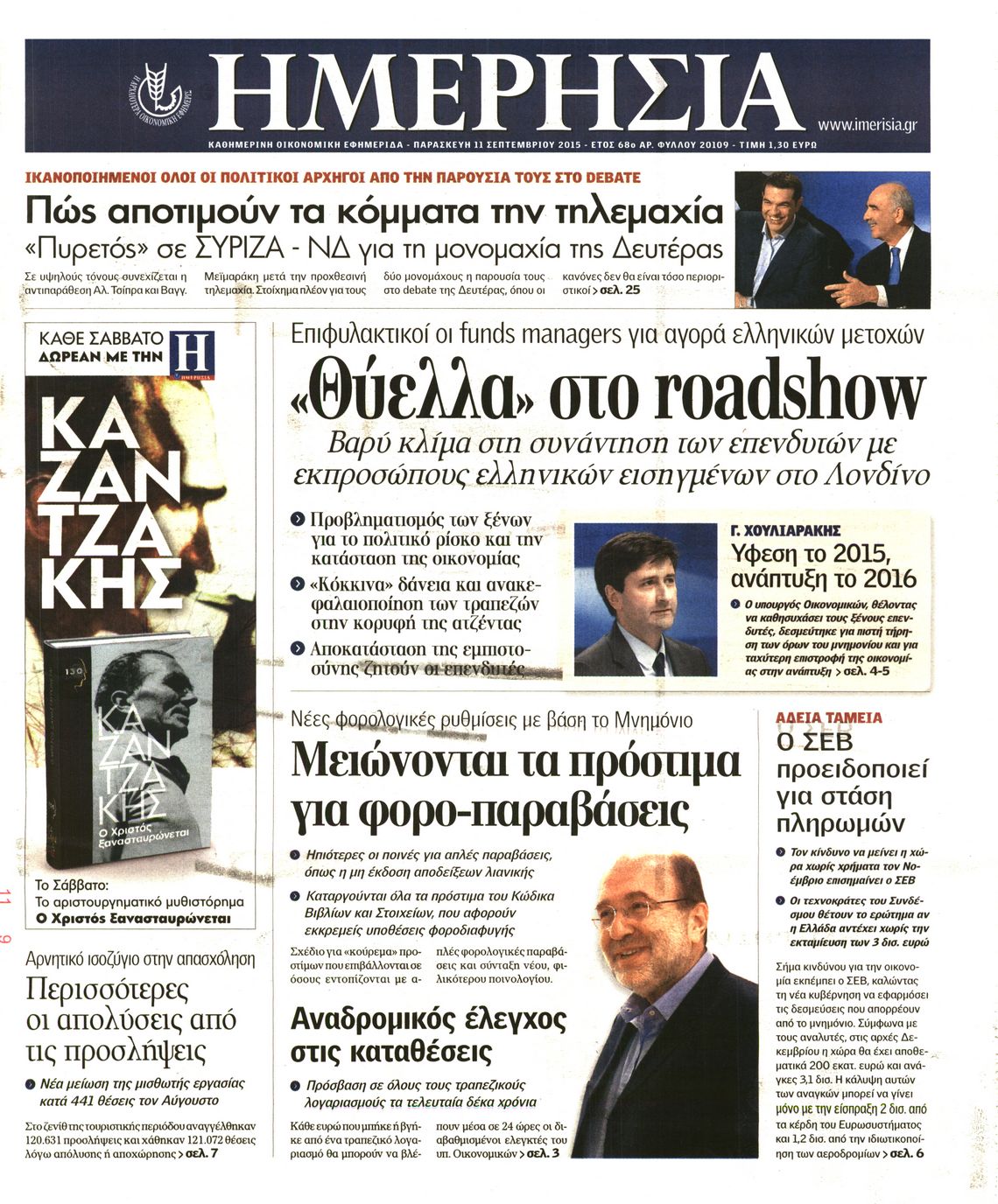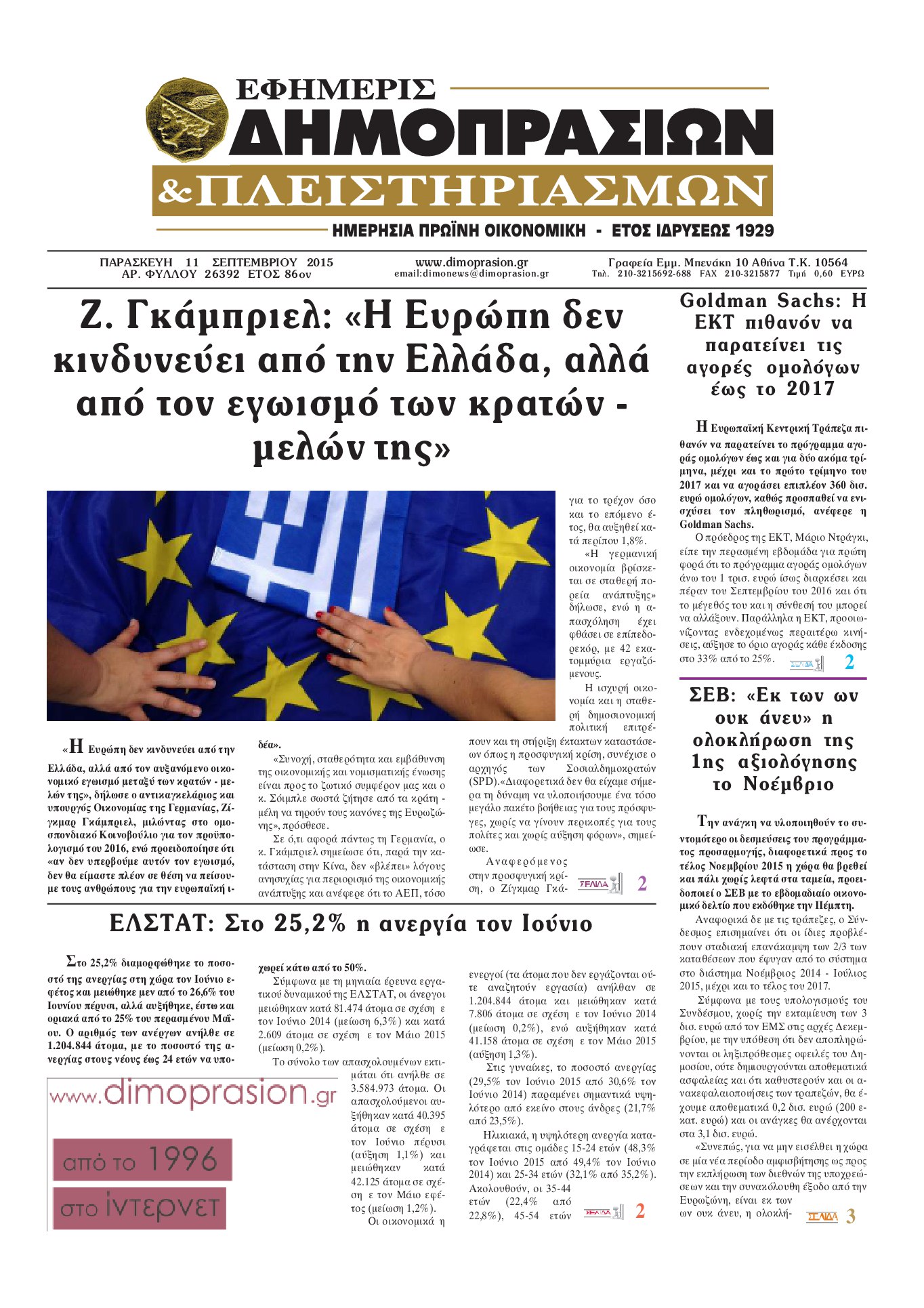 Οι οικονομικές εφημερίδες 11/9/2015 Enikos Newsroom 07:08, Παρασκευή 11 Σεπτεμβρίου 2015 Media Διαβάστε τα σημερινά πρωτοσέλιδα των οικονομικών εφημερίδων: ΟΙΚΟΝΟΜΙΚΕΣ ΕΦΗΜΕΡΙΔΕΣ ΠΡΩΤΟΣΕΛΙΔΑ Μοιράσου το: σχολίασε κι εσύ (0 σχόλια) Ακολουθήστε το enikos.gr στο Google News και μάθετε πρώτοι όλες τις ειδήσεις Δείτε όλες τις τελευταίες ειδήσεις από την Ελλάδα και τον Κόσμο στο enikos.gr Ειδήσεις Ροή Ειδήσεων 1 ώρα πριν Φοροδιαφυγή: Ποιοι φορολογούμενοι κινδυνεύουν να πληρώσουν «τσουχτερά» πρόστιμα 22 λεπτά πριν Φοινικούντα: Παραδόθηκε 30χρονος στην Καλαμάτα για τη διπλή δολοφονία 38 λεπτά πριν Αγρότες: Ανυποχώρητοι στα μπλόκα – Στις Σέρρες σήμερα η κρίσιμη συνεδρίαση της Πανελλαδικής Επιτροπής 51 λεπτά πριν Τα επίσημα χρονοδιαγράμματα που η Τουρκία θα παραλάβει τα Eurofighter 9 ώρες πριν «Θύελλα» αντιδράσεων για τον Νίκο Παππά μετά την επίθεση στον δημοσιογράφο Νίκο Γιαννόπουλο – Η μήνυση, οι δηλώσεις και η έξοδος από την ευρωομάδα του ΣΥΡΙΖΑ 2 ώρες πριν Καούρα: Το μπαχαρικό που είναι «εξίσου αποτελεσματικό» με την ομεπραζόλη, σύμφωνα με ειδικούς 3 ώρες πριν Τα ζώδια σήμερα, Πέμπτη 18 Δεκεμβρίου: Λέοντες, η καρδιά σας θέλει να εκφραστεί 2 ώρες πριν Οπτική ψευδαίσθηση: Μόνο οι πιο έξυπνοι άνθρωποι θα βρουν 7 ξωτικά 15 δευτερόλεπτα 23 ώρες πριν 20 χρόνια τα Χριστούγεννα ξεκινούν στα Public με μεγάλη ποικιλία σε δώρα! 4 λεπτά πριν Αλμπέρτο Εσκενάζυ: Το μεσημέρι το «τελευταίο αντίο» στο αποτεφρωτήριο της Ριτσώνας – Η απόφαση της οικογένειάς του 9 λεπτά πριν Τραγωδία στη Θεσσαλονίκη: Νεκρή η 57χρονη που παρασύρθηκε από αυτοκίνητο στον Εύοσμο 14 λεπτά πριν Ανακαλύφθηκαν σπάνια λυχνία λαδιού και μια γραφίδα 2.000 ετών 19 λεπτά πριν Την Κυριακή με τη Realnews: Δωροεπιταγή 10€ 22 λεπτά πριν Φοινικούντα: Παραδόθηκε 30χρονος στην Καλαμάτα για τη διπλή δολοφονία ENIKOS NETWORK Ουρική αρθρίτιδα: Μεγάλη μελέτη αποκαλύπτει τι μπορεί να προκαλεί τη νόσο Τι σημαίνει όταν ο σκύλος σας σάς φέρνει τυχαία αντικείμενα, σύμφωνα με εκπαιδεύτρια Οφειλές προς το Δημόσιο: «Φρένο» στα σενάρια για νέα ρύθμιση – Τι απαντά το υπουργείο Εθνικής Οικονομίας και Οικονομικών Φοροδιαφυγή: Ποιοι φορολογούμενοι κινδυνεύουν να πληρώσουν «τσουχτερά» πρόστιμα Χαρτογραφώντας το «σημείο χωρίς επιστροφή»: Για πρώτη φορά αποκαλύπτεται με λεπτομέρεια το ακανθώδες όριο της ατμόσφαιρας τ... Η Google καταργεί τη λειτουργία «dark web report» – Πώς θα μπορούν οι χρήστες να διαγράφουν τα δεδομένα τους περισσότερα 08:00 , Πέμπτη 18 Δεκεμβρίου 2025 Την Κυριακή με τη Realnews: Δωροεπιταγή 10€ Δωροεπιταγή αξίας 10€ για αγορές άνω των 60€ από τα πολυκαταστήματα FactoryOutlet H προσφορά ι... 07:50 , Πέμπτη 18 Δεκεμβρίου 2025 «Το σόι σου»: Backstage στα γυρίσματα για το εορταστικό επεισόδιο «Το σόι σου» φορά τα γιορτινά του για τα Χριστούγεννα και η Όλγα Λαφαζάνη, με την κάμερα του «... 07:36 , Πέμπτη 18 Δεκεμβρίου 2025 Οι αθλητικές μεταδόσεις 18/12/2025 – Πού θα δείτε τον αγώνα της ΑΕΚ με την Κραϊόβα για το Conference League Τα ματς ΑΕΚ – Ουνιβερσιτάτεα Κραϊόβα για το Conference League και Παναθηναϊκός – Χάποελ Τελ Αβ... 05:48 , Πέμπτη 18 Δεκεμβρίου 2025 Οι οικονομικές εφημερίδες 18/12/2025 Διαβάστε τα πρωτοσέλιδα από τις οικονομικές εφημερίδες, σήμερα 18/12/2025. ΤΕΛΕΥΤΑΙΕΣ ΕΙΔΗΣΕΙΣ 4 λεπτά πριν Αλμπέρτο Εσκενάζυ: Το μεσημέρι το «τελευταίο αντίο»... 9 λεπτά πριν Τραγωδία στη Θεσσαλονίκη: Νεκρή η 57χρονη που... 14 λεπτά πριν Ανακαλύφθηκαν σπάνια λυχνία λαδιού και μια γραφίδα... 19 λεπτά πριν Την Κυριακή με τη Realnews: Δωροεπιταγή 10€ 22 λεπτά πριν Φ