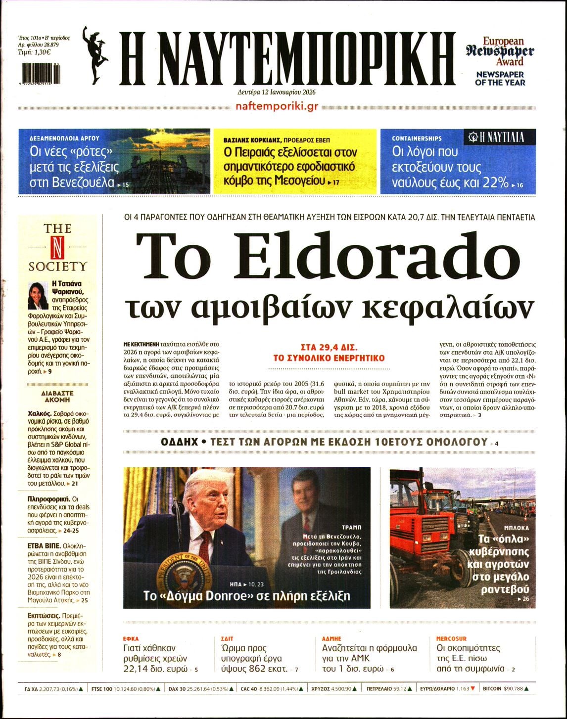 Οι οικονομικές εφημερίδες 12/1/2026 Σήφης Γαρυφαλάκης 05:48, Δευτέρα 12 Ιανουαρίου 2026 Media Διαβάστε τα πρωτοσέλιδα από τις οικονομικές εφημερίδες, σήμερα 12/1/2026. ΕΦΗΜΕΡΙΔΕΣ ΟΙΚΟΝΟΜΙΚΕΣ ΕΦΗΜΕΡΙΔΕΣ ΠΡΩΤΟΣΕΛΙΔΑ Μοιράσου το: σχολίασε κι εσύ (0 σχόλια) Ακολουθήστε το enikos.gr στο Google News και μάθετε πρώτοι όλες τις ειδήσεις Δείτε όλες τις τελευταίες ειδήσεις από την Ελλάδα και τον Κόσμο στο enikos.gr Ειδήσεις Ροή Ειδήσεων 5 λεπτά πριν Το Ιράν πλησιάζει σε μια επανάσταση που θα αναδιαμορφώσει τον κόσμο – «Η πιο σημαντική στιγμή για τη χώρα από το 1979» 9 λεπτά πριν ΔΥΠΑ: Επιδοτήσεις 17.500 ευρώ σε ανέργους για να ανοίξουν τη δική τους επιχείρηση – Όλες οι λεπτομέρειες 9 ώρες πριν Αγρότες: «Δεν έχει “κλειδώσει” η συνάντηση» – Αναμένουν την επίσημη ανακοίνωση της κυβέρνησης για τις επιτροπές που θα προσέλθουν στον διάλογο με τον Πρωθυπουργό 10 ώρες πριν Bloomberg: Βρετανία και Γερμανία συζητούν την παρουσία δυνάμεων του ΝΑΤΟ στη Γροιλανδία 8 ώρες πριν Θρίλερ στην Κύπρο: Μυστήριος θάνατος στην Ρωσική Πρεσβεία στην Λευκωσία και εξαφάνιση 56χρονου ολιγάρχη στη Λεμεσό 4 ώρες πριν Τα ζώδια σήμερα, Δευτέρα 12 Ιανουαρίου 2026: Ζυγοί, είστε έτοιμοι για μια ανανέωση στη ζωή σας 8 ώρες πριν Η θρυλική μάχη του 1003 αποδείχθηκε αληθινή – Πώς 500 άνδρες κατατρόπωσαν 20.000 στρατιώτες 1 ώρα πριν Οπτική ψευδαίσθηση: Μόνο αν είσαι ο Σέρλοκ Χολμς θα βρεις τον μοναχικό παπαγάλο σε 8 δευτερόλεπτα 1 ώρα πριν Κολλαγόνο: Ποια είναι η καλύτερη ώρα για τη λήψη του, σύμφωνα με διαιτολόγους 2 λεπτά πριν Αυτή την Κυριακή με τη Realnews: Στοιχειωμένα μυστικά της Emmeline Duncan – Μαζί αστυνομικά best sellers 3 λεπτά πριν Νέα Ιωνία: Έπεσαν τσιμέντα από γέφυρα – Κλειστή η αριστερή λωρίδα κυκλοφορίας στο ύψος του νοσοκομείου «Αγία Όλγα» 5 λεπτά πριν Το Ιράν πλησιάζει σε μια επανάσταση που θα αναδιαμορφώσει τον κόσμο – «Η πιο σημαντική στιγμή για τη χώρα από το 1979» 8 λεπτά πριν Καιρός: Κρύο, ισχυροί άνεμοι και χιόνια σήμερα – Σε ποιες περιοχές θα βρέξει 9 λεπτά πριν ΔΥΠΑ: Επιδοτήσεις 17.500 ευρώ σε ανέργους για να ανοίξουν τη δική τους επιχείρηση – Όλες οι λεπτομέρειες ENIKOS NETWORK Την Κυριακή με τη Realnews: Δωροεπιταγή 10€ Βρείτε τις 3 διαφορές στη φωτό με το λαγουδάκι που τρώει τη φράουλα – Μπορείτε να λύσετε το τεστ παρατηρητικότητας μέσα σε ... ΔΥΠΑ: Επιδοτήσεις 17.500 ευρώ σε ανέργους για να ανοίξουν την δική τους επιχείρηση Συντάξεις: Ολοταχώς προς νέο ρεκόρ συνταξιοδοτήσεων το 2025 – Οι βασικοί λόγοι Ο Google Assistant θα παραμείνει λίγο περισσότερο για ορισμένους χρήστες Android Τεστ προσωπικότητας: Το βάζο που θα επιλέξετε αποκαλύπτει πώς λύνετε προβλήματα στη ζωή σας περισσότερα 07:21 , Δευτέρα 12 Ιανουαρίου 2026 Αυτή την Κυριακή με τη Realnews: Στοιχειωμένα μυστικά της Emmeline Duncan – Μαζί αστυνομικά best sellers Αυτή την Κυριακή με τη Realnews: Στοιχειωμένα μυστικά της Emmeline Duncan – Μαζί αστυνομ... 13:34 , Κυριακή 11 Ιανουαρίου 2026 Σήμερα με τη Realnews: Μυστηριώδης εξαφάνιση – Ένα καθηλωτικό θρίλερ γεμάτο αγωνία από τον διεθνώς αναγνωρισμένο συγγραφέα Rick Mofina Σήμερα με τη Realnews: Μυστηριώδης εξαφάνιση –Ένα καθηλωτικό θρίλερ γεμάτο αγωνία από το... 13:23 , Κυριακή 11 Ιανουαρίου 2026 Τηλεθέαση 10/1: Οι νικητές και οι χαμένοι του Σαββάτου Δύσκολη μέρα ήταν για αρκετές εκπομπές το Σάββατο (10/1/2026) καθώς κατέγραψαν μεγάλες απώλειε... 11:15 , Κυριακή 11 Ιανουαρίου 2026 Σήμερα με τη Realnews: Ό,τι και αν αγοράσεις, σκανάρεις και κερδίζεις! Σήμερα με τη Realnews: Ό,τι και αν αγοράσεις, σκανάρεις και κερδίζεις! Με το PADU app, 