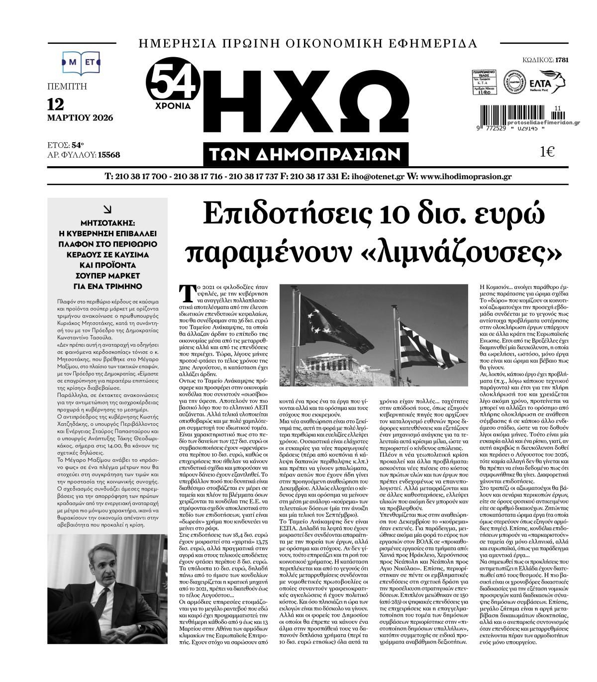 Οι οικονομικές εφημερίδες 12/3/2026 Enikos Newsroom 05:48, Πέμπτη 12 Μαρτίου 2026 Media Διαβάστε τα πρωτοσέλιδα από τις οικονομικές εφημερίδες, σήμερα 12/3/2026. ΕΦΗΜΕΡΙΔΕΣ ΟΙΚΟΝΟΜΙΚΕΣ ΕΦΗΜΕΡΙΔΕΣ ΠΡΩΤΟΣΕΛΙΔΑ Μοιράσου το: Η τιμή του βαρελιού αγγίζει ξανά τα 100 δολάρια, παρά τις αποδεσμεύσεις μέρους των στρατηγικών αποθεμάτων Ντόναλντ Τραμπ: Το Ιράν είναι «κοντά στην ήττα» Επίθεση του Ιράν σε δύο δεξαμενόπλοια στα ύδατα του Ιράκ – Δείτε βίντεο σχολίασε κι εσύ (0 σχόλια) Ακολουθήστε το enikos.gr στο Google News και μάθετε πρώτοι όλες τις ειδήσεις Δείτε όλες τις τελευταίες ειδήσεις από την Ελλάδα και τον Κόσμο στο enikos.gr Ειδήσεις Ροή Ειδήσεων 23 ώρες πριν LIVE – 12η ημέρα πολέμου ΗΠΑ-Ισραήλ με Ιράν – Οι εξελίξεις 8 ώρες πριν Μέση Ανατολή: Πώς ο πόλεμος του Τραμπ με το Ιράν άλλαξε τον κόσμο μέσα σε λίγες μόλις ημέρες 8 ώρες πριν Θανατηφόρο τροχαίο στην Θεσσαλονίκη: Συγκλονίζει ο πατέρας του άτυχου 25χρονου – Την Πέμπτη η απολογία του οδηγού 10 ώρες πριν Δημοσκόπηση Pulse: Στις 14,5 μονάδες η διαφορά ΝΔ-ΠΑΣΟΚ – Πόσο ανησυχούν οι πολίτες για τον πόλεμο στη Μέση Ανατολή 12 ώρες πριν Μάγδα Φύσσα: Με δάκρυα στα μάτια μετά την καταδίκη της «Χρυσής Αυγής» – «Παύλο, τα καταφέραμε, νικήσαμε» 53 λεπτά πριν Οπτική ψευδαίσθηση: Μόνο όσοι έχουν τέλεια όραση μπορούν να εντοπίσουν τη γάτα μέσα σε 11 δευτερόλεπτα 1 ώρα πριν Η διατροφή που μπορεί να ενισχύει την ευτυχία: Ο ρόλος των φλαβονοειδών, σύμφωνα με μελέτη 4 ώρες πριν Ζώδια 12/3: Ημερήσιες προβλέψεις – Παρθένοι, για να πάτε παρακάτω, πρέπει να διώξετε ό,τι σας βαραίνει 8 ώρες πριν Η ξηρασία αποκαλύπτει τα μυστικά της αρχαίας Νίκαιας – Ήρθε στο φως δεύτερη εκκλησία που ήταν βυθισμένη 4 λεπτά πριν Την Κυριακή με τη Realnews: Ό,τι και αν αγοράσεις, σκανάρεις και κερδίζεις! 18 λεπτά πριν MasterChef 2026: Υποψήφια προς αποχώρηση σχεδόν ολόκληρη η κόκκινη μπριγάδα – «Χαμός, δεν το περιμέναμε με τίποτα» 28 λεπτά πριν ΔΕΔΔΗΕ: Διακοπές ρεύματος σήμερα (12/3) στην Αθήνα και σε άλλες 10 περιοχές της Αττικής 36 λεπτά πριν UKMTO: Βλήμα έπληξε πλοίο μεταφοράς κοντέινερ κοντά στο Τζέμπελ Αλί των ΗΑΕ 47 λεπτά πριν Θάνος Πλεύρης: Η χώρα αυτή τη στιγμή είναι καλύτερα προετοιμασμένη από όλες τις χώρες πρώτης υποδοχής μεταναστών ENIKOS NETWORK Δοκιμάστε τη δύναμη του μυαλού σας! Μπορείτε να ονομάσετε αυτά τα αρπακτικά πουλιά σε 30 δευτερόλεπτα; Το λαχανικό που προσέφεραν οι αρχαίοι Έλληνες στους θεούς μπορεί να μειώνει τον κίνδυνο για διαβήτη και να ενισχύει την καρ... Παρεμβάσεις 262,6 εκατ. ευρώ για επενδύσεις στον πρωτογενή τομέα – Ποιοι είναι οι δικαιούχοι Ανακαίνιση κτιρίων: Τι ζητεί η Κομισιόν από την Ελλάδα Ευπάθεια στο moltbook ai αποκαλύπτει email, tokens σύνδεσης και api keys Αυτός είναι ο ρόλος της μικρής τρύπας στους νυχοκόπτες – «Είμαι ο μόνος που δεν το ήξερε;»» περισσότερα 07:03 , Πέμπτη 12 Μαρτίου 2026 Την Κυριακή με τη Realnews: Ό,τι και αν αγοράσεις, σκανάρεις και κερδίζεις! Την Κυριακή με τη Realnews: Ό,τι και αν αγοράσεις, σκανάρεις και κερδίζεις! Με το PADU app, το... 06:50 , Πέμπτη 12 Μαρτίου 2026 MasterChef 2026: Υποψήφια προς αποχώρηση σχεδόν ολόκληρη η κόκκινη μπριγάδα – «Χαμός, δεν το περιμέναμε με τίποτα» Με το… στόμα ανοιχτό μείναν οι διαγωνιζόμενοι στο τελευταίο επεισόδιο του MasterChef της... 05:22 , Πέμπτη 12 Μαρτίου 2026 Το Ποντίκι σήμερα Πέμπτη 12/3/2026 Διαβάστε το πρωτοσέλιδο της εφημερίδας «Το Ποντίκι» σήμερα 12/3/2026. 20:32 , Τετάρτη 11 Μαρτίου 2026 Μπαμπά σ’ αγαπώ: Ο Δημήτρης αρχίζει να συνειδητοποιεί ότι είναι πολύ ερωτευμένος με την Ελένη 
