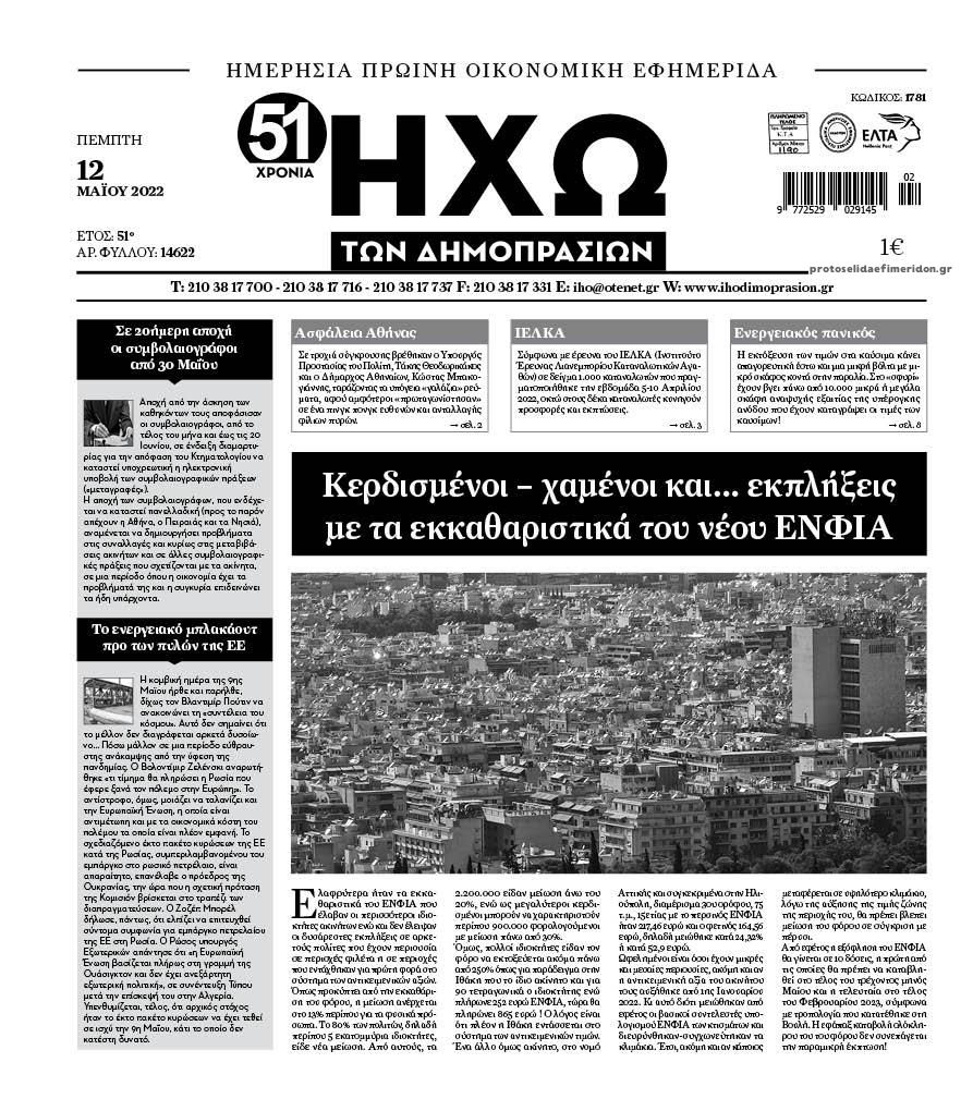 Οι οικονομικές εφημερίδες 12/5/2022 Σταύρος Ιωακείμ 06:30, Πέμπτη 12 Μαΐου 2022 Media Διαβάστε τα πρωτοσέλιδα από τις οικονομικές εφημερίδες… ΕΦΗΜΕΡΙΔΕΣ ΟΙΚΟΝΟΜΙΚΕΣ ΕΦΗΜΕΡΙΔΕΣ ΠΡΩΤΟΣΕΛΙΔΑ Μοιράσου το: Οι αθλητικές εφημερίδες 12/5/2022 Οι πολιτικές εφημερίδες 12/5/2022 Το Ποντίκι σήμερα Πέμπτη 12/5/2022 σχολίασε κι εσύ (0 σχόλια) Ακολουθήστε το enikos.gr στο Google News και μάθετε πρώτοι όλες τις ειδήσεις Δείτε όλες τις τελευταίες ειδήσεις από την Ελλάδα και τον Κόσμο στο enikos.gr Ειδήσεις Ροή Ειδήσεων 27 λεπτά πριν Την πρώτη Belharra παρέλαβε η χώρα μας, υψώθηκε η ελληνική σημαία στη φρεγάτα «Κίμων» – Δένδιας: «Το ισχυρότερο Πολεμικό Ναυτικό που είχε ποτέ ο ελληνισμός» 3 ώρες πριν Γιώργος Μαζωνάκης: «Δεν ζήτησα χρήματα, παρά μόνο ηθική δικαίωση» – Οι πρώτες δηλώσεις του 21χρονου μετά την κατάθεση της μήνυσης 2 ώρες πριν Δίκη Βαλυράκη: Καταθέτει ο βασικός αυτόπτης μάρτυρας – «Δέχτηκα πιέσεις να μη μιλήσω, πήγα να ψωνίσω και αυτοκίνητο με χτύπησε στο πόδι» 2 ώρες πριν Ώρα αποφάσεων για τους αγρότες – Ξεκίνησε η πανελλαδική σύσκεψη μπλόκων στις Σέρρες – ΦΩΤΟ 6 ώρες πριν Συναγερμός και στην Ελλάδα για τη «σούπερ γρίπη»: Πόσο σοβαρή είναι και ποιοι θεωρούνται πιο ευάλωτοι – 3 ειδικοί μιλούν στο enikos.gr 52 λεπτά πριν Τα 5 ζώδια που θα ευνοηθούν στα οικονομικά τους το 2026 – «Τραβούν το χρήμα σαν μαγνήτες» 6 ώρες πριν Αν κάνετε συνεχώς αυτά τα 8 πράγματα με τα κατοικίδιά σας, σας λείπει η ανθρώπινη επαφή 2 ώρες πριν Αυτό που κρύβεται κάτω από τη Γροιλανδία θα μπορούσε να ανατρέψει όσα γνωρίζουμε για την άνοδο της στάθμης των θαλασσών 1 ημέρα πριν 20 χρόνια τα Χριστούγεννα ξεκινούν στα Public με μεγάλη ποικιλία σε δώρα! 2 λεπτά πριν Να μ’ αγαπάς: Ζωή και Φωτεινή συμφιλιώνονται ως μάνα με κόρη, απόψε στις 20:00 7 λεπτά πριν Εξώδικο Γεωργιάδη στην Κωνσταντοπούλου – «Με κατηγόρησε ότι έχω καταδικαστεί για παιδεραστία» 12 λεπτά πριν Εξεταστική για ΟΠΕΚΕΠΕ – Μπρατάκος: «Δεν μου τέθηκε ζήτημα για πιέσεις από τον κ. Αυγενάκη ή οποιονδήποτε» – Τι είπε για τον Σημανδράκο 14 λεπτά πριν ΤΕΧΑΝ: 1ο Πανελλήνιο Σχολικό Πρωτάθλημα Ανακύκλωσης Δευτεροβάθμιας Εκπαίδευσης 17 λεπτά πριν Τραυματίστηκε 5χρονο παιδί σε νηπιαγωγείο στο Αγρίνιο – Χτυπήθηκε από αντικείμενο που έπεσε από έπιπλο ENIKOS NETWORK 100 χρόνια ΠΙΣ: Ένας αιώνας προσφοράς στην Ιατρική και την κοινωνία Ένα ποτήρι την ημέρα από αυτόν τον χυμό μειώνει τη χοληστερίνη, τη φλεγμονή και την πίεση Κρατική επιχορήγηση έως 14.500 ευρώ: Ποιοι θα λάβουν από σήμερα την προκαταβολή στον τραπεζικό λογαριασμό τους Αυτόματη απόδοση ΦΠΑ: Τα δύο σενάρια που επεξεργάζεται η ΑΑΔΕ Χαρτογραφώντας το «σημείο χωρίς επιστροφή»: Για πρώτη φορά αποκαλύπτεται με λεπτομέρεια το ακανθώδες όριο της ατμόσφαιρας τ... Η Google καταργεί τη λειτουργία «dark web report» – Πώς θα μπορούν οι χρήστες να διαγράφουν τα δεδομένα τους περισσότερα 16:50 , Πέμπτη 18 Δεκεμβρίου 2025 Να μ’ αγαπάς: Ζωή και Φωτεινή συμφιλιώνονται ως μάνα με κόρη, απόψε στις 20:00 Η ταυτότητα του Άγγελου αποκαλύπτεται στο νέο επεισόδιο της σειράς “Να μ’ αγαπάς... 15:52 , Πέμπτη 18 Δεκεμβρίου 2025 Το Σπίτι Δίπλα Στο Ποτάμι: Το καθηλωτικό τελευταίο επεισόδιο για το 2025 απόψε στις 22:30 Καθηλώνει το σημερινό επεισόδιο της σειράς “Το Σπίτι Δίπλα Στο Ποτάμι” που έρχεται... 15:20 , Πέμπτη 18 Δεκεμβρίου 2025 Άγιος έρωτας – Η Ελευθερία Αρβανιτάκη τραγουδά και ο Γιάννης Τσορτέκης καθηλώνει με τον χορό του Ο Κλεάνθης χορεύει στους ήχους της Ελευθερίας Αρβανιτάκη στη 