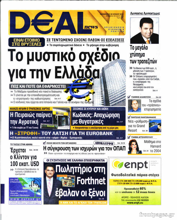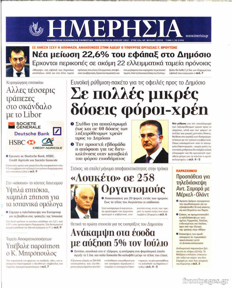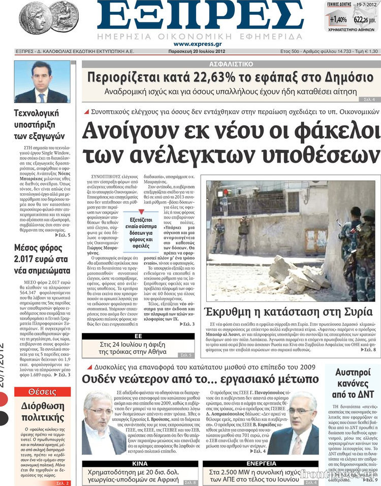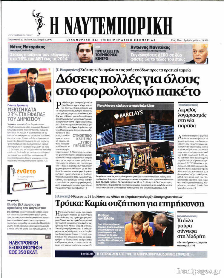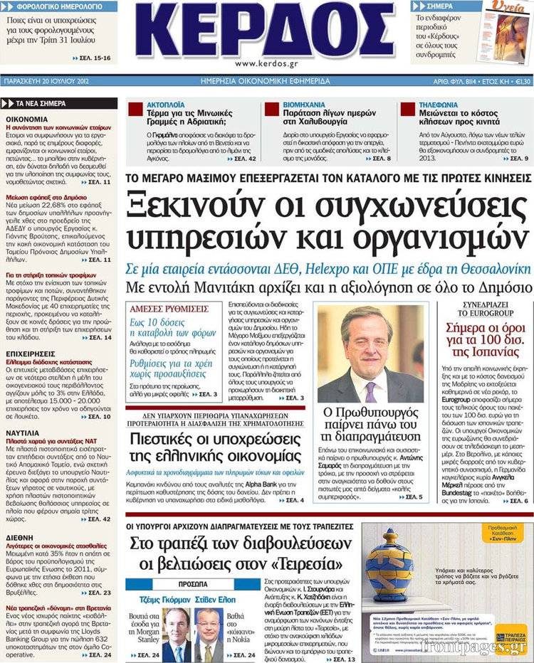 Τα σημερινά πρωτοσέλιδα των οικονομικών εφημερίδων.