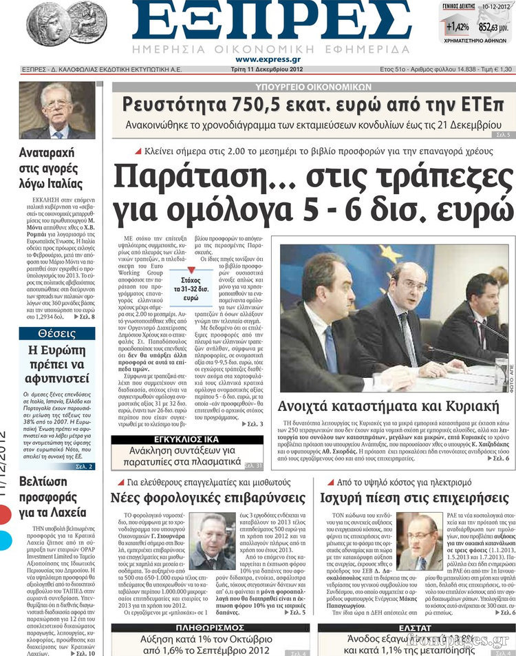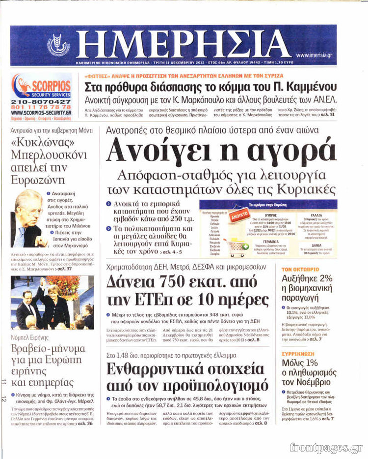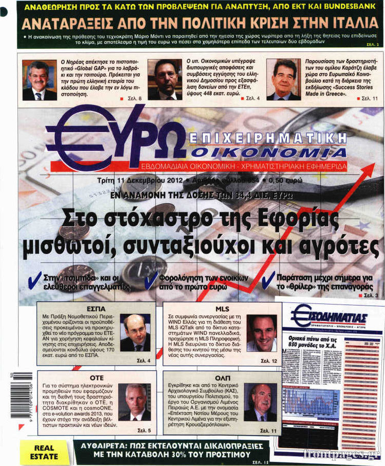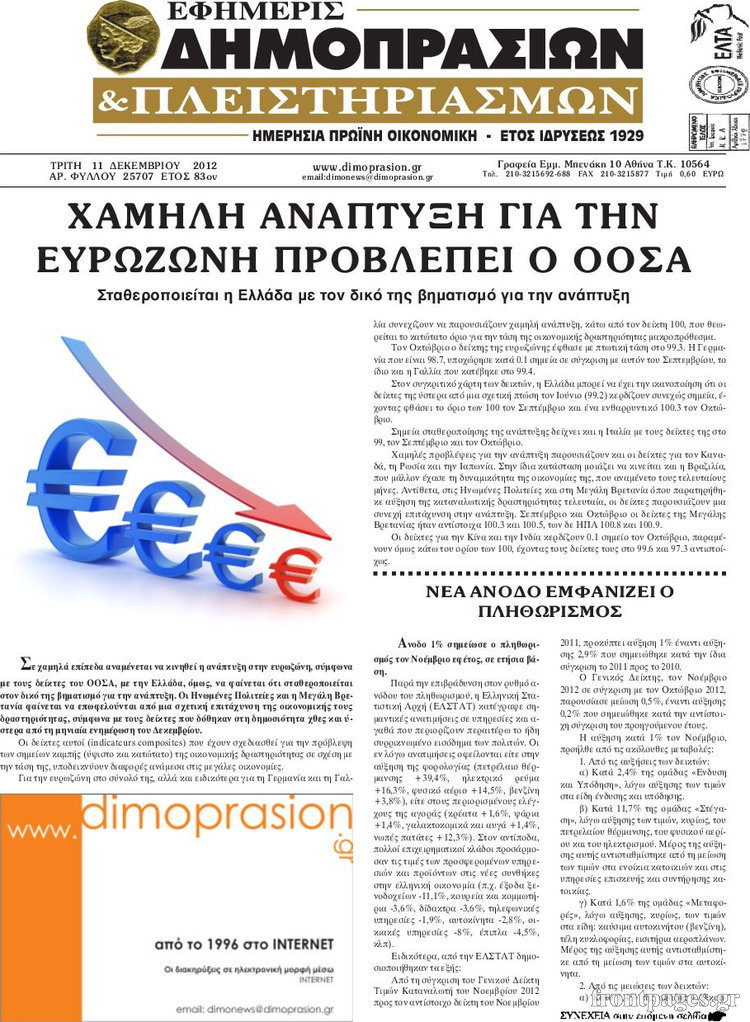 Οι οικονομικές εφημερίδες Enikos Newsroom 09:29, Τρίτη 11 Δεκεμβρίου 2012 Media Οι οικονομικές εφημερίδες Τα πρωτοσέλιδα των οικονομικών εφημερίδων. ΕΦΗΜΕΡΙΔΕΣ ΟΙΚΟΝΟΜΙΚΑ ΘΕΜΑΤΑ ΟΙΚΟΝΟΜΙΚΕΣ ΕΦΗΜΕΡΙΔΕΣ ΠΡΩΤΟΣΕΛΙΔΑ Μοιράσου το: σχολίασε κι εσύ (0 σχόλια) Ακολουθήστε το enikos.gr στο Google News και μάθετε πρώτοι όλες τις ειδήσεις Δείτε όλες τις τελευταίες ειδήσεις από την Ελλάδα και τον Κόσμο στο enikos.gr Ειδήσεις Ροή Ειδήσεων 2 ώρες πριν Κυψέλη: Επεισόδιο με μαχαίρωμα μέσα σε σχολείο – Τραυματίστηκε 14χρονη 3 ώρες πριν Βουλή: Κατατέθηκε το νομοσχέδιο για την αναδιάρθρωση των Ενόπλων Δυνάμεων – Όλα όσα προβλέπει 11 λεπτά πριν Λάρισα: Αναβλήθηκε για τον Οκτώβριο του 2026 η δίκη δύο αγροτών του μπλόκου της Νίκαιας 4 ώρες πριν Σίδνεϊ: Τα ονόματα των θυμάτων από την τρομοκρατική επίθεση – Η 10χρονη Ματίλντα και ο επιζών του Ολοκαυτώματος που έσωσε τη γυναίκα του 5 ώρες πριν Δείτε LIVE το συνέδριο «Ελληνικός Τουρισμός, Μια Εθνική Υπόθεση!» 4 ώρες πριν Μακροζωία: 55χρονος που ισχυρίζεται ότι βιολογικά είναι 20 ετών μοιράζεται μια απλή συμβουλή για υγιή εγκέφαλο 6 ώρες πριν Τα 3 ζώδια που μπαίνουν σε μια νέα δυναμική εποχή – «Είστε έτοιμοι για όλα» 5 ώρες πριν Οι 8 φράσεις που δίνουν αμέσως την εντύπωση πως είστε δύσκολος άνθρωπος 7 ώρες πριν Κληρονόμησε 2,8 εκατ. ευρώ και φοβάται ότι οι άνδρες θα την πλησιάζουν για τα λεφτά – «Μήπως καλύτερα να το κρατήσω μυστικό;» 2 λεπτά πριν Μπαρτζώκας: «Δύσκολο παιχνίδι με τη Βαλένθια, καθοριστική η Τετάρτη για τον Μόρις» 6 λεπτά πριν Συνέδριο «Ελληνικός Τουρισμός 2025, Μια εθνική υπόθεση!» – Το στοίχημα του ανθρώπινου δυναμικού στον τουρισμό 10 λεπτά πριν Ο «Ευρωπαίος Σεφ 2025» Καθηγητής της Ανώτερης Σχολής ΑΚΜΗ στη Χαλκίδα 11 λεπτά πριν Λάρισα: Αναβλήθηκε για τον Οκτώβριο του 2026 η δίκη δύο αγροτών του μπλόκου της Νίκαιας 17 λεπτά πριν Ρωσία: Η κεντρική τράπεζα ζητεί αποζημίωση 230 δισ. δολαρίων από τη Euroclear – «Νομικός εφιάλτης για την ΕΕ» ENIKOS NETWORK ΠΟΕΔΗΝ: Ανανέωση των συμβάσεων του ειδικού προγράμματος ΔΥΠΑ 55 ετών και άνω σε δομές Υγείας Γιατί τρώμε χωρίς να πεινάμε; Τα τρόφιμα που ανοίγουν την όρεξη ειδικά στους πιο νέους Ακτοπλοϊκά και αεροπορικά εισιτήρια: Έκπτωση έως 50% για τα Χριστούγεννα για τους αναπληρωτές εκπαιδευτικούς Πανελλαδικές Εξετάσεις 2026: Αυτό είναι το νέο ηλικιακό όριο εισαγωγής στις Σχολές της Αστυνομίας Σύγχρονος Νοστράδαμος: Προειδοποιεί για «μεγάλο γεγονός» τους επόμενους μήνες που θα συγκλονίσει τη Βρετανία και τον κόσμο Τεστ παρατηρητικότητας: Μπορείτε να βρείτε τις 3 διαφορές στις εικόνες με έναν πιγκουίνο σε 14 δευτερόλεπτα περισσότερα 15:31 , Δευτέρα 15 Δεκεμβρίου 2025 Συνέδριο «Ελληνικός Τουρισμός 2025, Μια εθνική υπόθεση!» – Το στοίχημα του ανθρώπινου δυναμικού στον τουρισμό Τον κρίσιμο ρόλο της εκπαίδευσης, της κατάρτισης και της επάρκειας ανθρώπινου δυναμικού για τη... 14:57 , Δευτέρα 15 Δεκεμβρίου 2025 Συνέδριο «Ελληνικός Τουρισμός 2025, Μια εθνική υπόθεση!» – Σταύρος Αρναουτάκης: Βασικό θέμα για την ανάπτυξη κάθε Περιφέρειας είναι οι υποδομές Το ετήσιο συνέδριο «Ελληνικός Τουρισμός 2025, Μια εθνική υπόθεση!» συνδιοργανώνουν η Next is N... 14:27 , Δευτέρα 15 Δεκεμβρίου 2025 Να μ’ αγαπάς: Η Φωτεινή αποφασίζει να δώσει τέλος στη ζωή της Η Φωτεινή βεβαιώνεται πως είναι έγκυος στο νέο επεισόδιο της σειράς “Να μ’ αγαπάς&... 14:08 , Δευτέρα 15 Δεκεμβρίου 2025 Grand Hotel: Η Μελίνα προσπαθεί να παρασύρει τον Χαραλάμπη και να τον μπλέξει στο σχέδιό της Ανατρεπτι