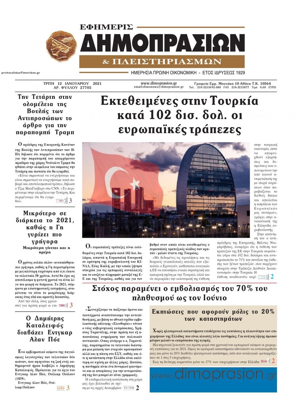 Οι οικονομικές εφημερίδες 12/1/2021 Σήφης Γαρυφαλάκης 06:09, Τρίτη 12 Ιανουαρίου 2021 Media Διαβάστε τα πρωτοσέλιδα των οικονομικών εφημερίδων… ΕΦΗΜΕΡΙΔΕΣ ΟΙΚΟΝΟΜΙΚΕΣ ΕΦΗΜΕΡΙΔΕΣ ΠΡΩΤΟΣΕΛΙΔΑ ΠΡΩΤΟΣΕΛΙΔΑ ΕΦΗΜΕΡΙΔΩΝ Μοιράσου το: σχολίασε κι εσύ (0 σχόλια) Ακολουθήστε το enikos.gr στο Google News και μάθετε πρώτοι όλες τις ειδήσεις Δείτε όλες τις τελευταίες ειδήσεις από την Ελλάδα και τον Κόσμο στο enikos.gr Ειδήσεις Ροή Ειδήσεων 47 λεπτά πριν ΣΥΡΙΖΑ: Διαγράφεται ο ευρωβουλευτής Νίκος Παππάς μετά την μήνυση δημοσιογράφου για ξυλοδαρμό 2 ώρες πριν Πώς στήθηκε η επιχείρηση «Ίπαλλος» που οδήγησε στη σύλληψη του «Έλληνα Εσκομπάρ» – «Ο πόλεμος ενάντια στους εμπόρους ναρκωτικών θα συνεχιστεί» 2 ώρες πριν Δίκη Χρυσής Αυγής: Την ενοχή και των 42 κατηγορουμένων ζητά η εισαγγελέας 2 ώρες πριν Κυψέλη: Στη φυλακή η 16χρονη που μαχαίρωσε συμμαθήτριά της 5 ώρες πριν Αμοργός: «Θα προσπαθήσω να το κάνω κάθε μέρα» – Ποιος είναι ο αγρότης που έστησε μόνος του το πρώτο μπλόκο στο νησί 2 ώρες πριν Τα 3 ζώδια που θα δουν τη ζωή τους να αλλάζει ριζικά το 2026 – «Όλα γίνονται καλύτερα σταδιακά» 7 ώρες πριν «Δεν είχα κλάψει από τότε που διαγνώστηκα με καρκίνο, ώσπου ένα τηλεφώνημα με έκανε να λυγίσω» – Η συγκλονιστική εξομολόγηση ενός άνδρα 3 ώρες πριν Ο σπάνιος σεισμός που έλυσε τα χέρια των επιστημόνων – Αποκάλυψε ακριβώς όσα αναζητούσαν 9 ώρες πριν 20 χρόνια τα Χριστούγεννα ξεκινούν στα Public με μεγάλη ποικιλία σε δώρα! 7 λεπτά πριν Αίγινα: Βλάβη στον υποθαλάσσιο αγωγό του νησιού – «Προσωρινά από τις γεωτρήσεις του Δήμου η κάλυψη των αναγκών ύδρευσης» 14 λεπτά πριν Βασιλιάς Κάρολος: Η κίνηση απομόνωσης προς τον αδελφό του Άντριου, στο γεύμα των Χριστουγέννων 18 λεπτά πριν Παύλος Μαρινάκης για Νίκο Παππά: Έπρεπε να χειροδικήσει για να αναγκαστεί ο ΣΥΡΙΖΑ να τον διαγράψει 25 λεπτά πριν Ελένη Βασάρα: Ανοιχτό το ενδεχόμενο καθαίρεσης της Καρυστιανού από την προεδρία του Συλλόγου Θυμάτων Τεμπών – Η ανάρτηση του Δημήτρη Πλακιά 30 λεπτά πριν Μαργαρίτα Θεοδωράκη για Γιώργο Χατζιδάκι: Προσβλητικό το εξώδικο – Ο Μίκης έγραψε «απαγορεύεται το απαγορεύεται» ENIKOS NETWORK Γιατί αναζητούμε τα Χριστούγεννα όλο και νωρίτερα; Ποιοι οι ψυχολογικοί και οι συναισθηματικοί λόγοι Σοβαροί κίνδυνοι από τη λάθος χορήγηση φαρμάκου για τις αιμορραγίες-Συστάσεις προς τους γιατρούς Δάνεια σε ελβετικό φράγκο: Αύριο η κατάθεση της τροπολογίας στη Βουλή – Όλες οι λεπτομέρειες Επίδομα παιδιού: Πότε θα δοθεί η τελευταία δόση για το 2025 από τον ΟΠΕΚΑ και τι πρέπει να γνωρίζετε Χαρτογραφώντας το «σημείο χωρίς επιστροφή»: Για πρώτη φορά αποκαλύπτεται με λεπτομέρεια το ακανθώδες όριο της ατμόσφαιρας τ... Η Google καταργεί τη λειτουργία «dark web report» – Πώς θα μπορούν οι χρήστες να διαγράφουν τα δεδομένα τους περισσότερα 12:35 , Τετάρτη 17 Δεκεμβρίου 2025 Μίρκα Παπακωνσταντίνου: «Δεν ήμουν αισιόδοξη για τα νούμερα – Είμαι ρεαλίστρια» Στα γυρίσματα του εορταστικού επεισοδίου της αγαπημένης σειράς “Το Σόι Σου”, βρέθηκε η κάμερα ... 12:12 , Τετάρτη 17 Δεκεμβρίου 2025 Ακούστε την εκπομπή του Νίκου Χατζηνικολάου 17/12/2025 Ακούστε την εκπομπή του Νίκου Χατζηνικολάου στον ραδιοφωνικό σταθμό RealFm 97,8, την Τετάρτη 1... 11:35 , Τετάρτη 17 Δεκεμβρίου 2025 Home Alone: Το σπίτι της ταινίας θα ανακαινιστεί – Επιστροφή στην αισθητική της δεκαετίας του ’90 Οι νέοι ιδιοκτήτες του πραγματικού σπιτιού που παρουσιάζεται στην κλασική ταινία του 1990 «Hom... 11:25 , Τετάρτη 17 Δεκεμβρίου 2025 Gran