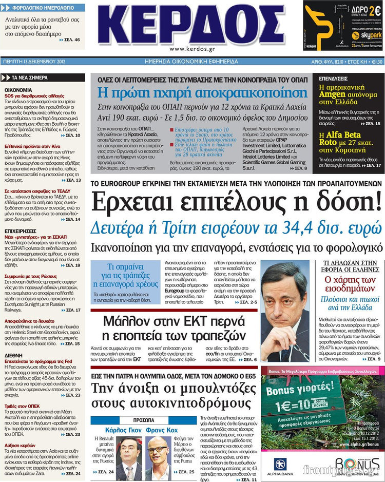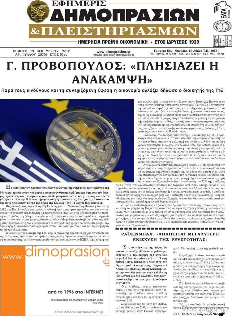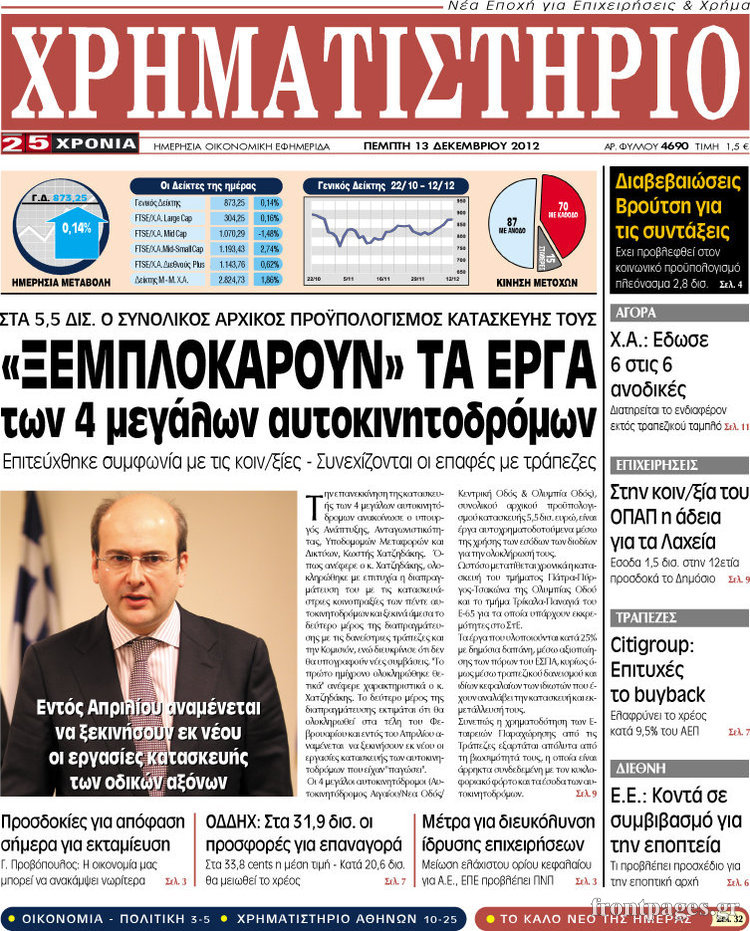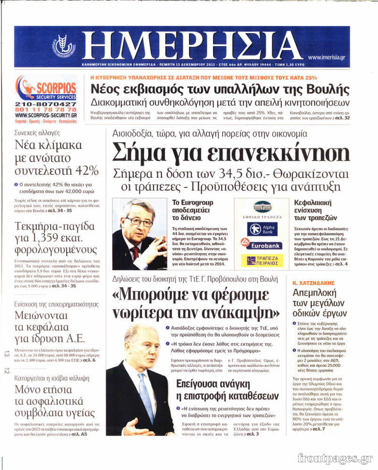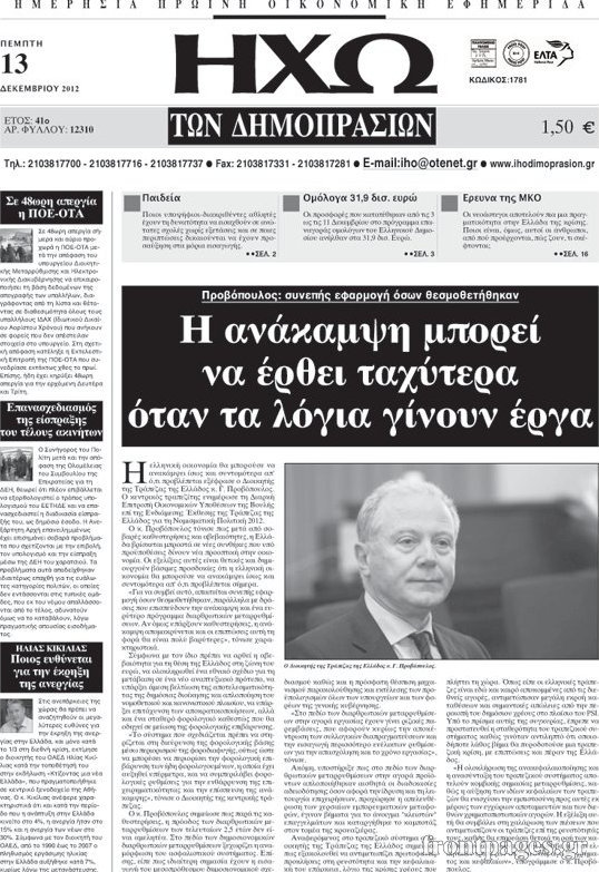 Οι οικονομικές εφημερίδες Enikos Newsroom 09:24, Πέμπτη 13 Δεκεμβρίου 2012 Media Οι οικονομικές εφημερίδες ΕΦΗΜΕΡΙΔΕΣ ΠΡΩΤΟΣΕΛΙΔΑ ΟΙΚΟΝΟΜΙΚΑ ΘΕΜΑΤΑ ΟΙΚΟΝΟΜΙΚΕΣ ΕΦΗΜΕΡΙΔΕΣ ΠΡΩΤΟΣΕΛΙΔΑ Μοιράσου το: σχολίασε κι εσύ (0 σχόλια) Ακολουθήστε το enikos.gr στο Google News και μάθετε πρώτοι όλες τις ειδήσεις Δείτε όλες τις τελευταίες ειδήσεις από την Ελλάδα και τον Κόσμο στο enikos.gr Ειδήσεις Ροή Ειδήσεων 1 ώρα πριν Τσιάρας: Καλούμε άμεσα τους εκπροσώπους των αγροτών σε ουσιαστικό διάλογο – Υπάρχουν περιθώρια, η κοινωνία περιμένει υπευθυνότητα 33 λεπτά πριν Κυψέλη: Για πρώτη ημέρα βρισκόταν στο σχολείο η 16χρονη που επιτέθηκε με μαχαίρι στην 14χρονη – Τι αναφέρουν μαρτυρίες μαθητών για το επεισόδιο 2 ώρες πριν Λάρισα: Αναβλήθηκε για τον Οκτώβριο του 2026 η δίκη δύο αγροτών του μπλόκου της Νίκαιας 6 ώρες πριν Σίδνεϊ: Τα ονόματα των θυμάτων από την τρομοκρατική επίθεση – Η 10χρονη Ματίλντα και ο επιζών του Ολοκαυτώματος που έσωσε τη γυναίκα του 7 ώρες πριν Δείτε LIVE το συνέδριο «Ελληνικός Τουρισμός, Μια Εθνική Υπόθεση!» 56 λεπτά πριν Τα 3 ζώδια που θα έχουν τύχη «βουνό» έως τις 21 Δεκεμβρίου – «Η ανατροπή που περιμένετε πλησιάζει» 5 ώρες πριν Μακροζωία: 55χρονος που ισχυρίζεται ότι βιολογικά είναι 20 ετών μοιράζεται μια απλή συμβουλή για υγιή εγκέφαλο 6 ώρες πριν Οι 8 φράσεις που δίνουν αμέσως την εντύπωση πως είστε δύσκολος άνθρωπος 8 ώρες πριν Κληρονόμησε 2,8 εκατ. ευρώ και φοβάται ότι οι άνδρες θα την πλησιάζουν για τα λεφτά – «Μήπως καλύτερα να το κρατήσω μυστικό;» 4 λεπτά πριν Ο Κώστας Μακεδόνας και ο Γιάννης Χριστοδουλόπουλος στο studio 9 λεπτά πριν Κεραμέως: Τα κόμματα θα κληθούν σύντομα να πάρουν θέση για την ιστορική συμφωνία με τους κοινωνικούς εταίρους – «Πυρά» από την αντιπολίτευση 14 λεπτά πριν ΠΑΟΚ: Την Τετάρτη στην Τούμπα ο Χρήστος Ζαφείρης 19 λεπτά πριν Συνέδριο «Ελληνικός Τουρισμός 2025, Μια εθνική υπόθεση!» – Ο κρίσιμος ρόλος των Περιφερειών στην ανάπτυξη του τουρισμού 23 λεπτά πριν Πέθανε ο Αλμπέρτο Εσκενάζυ ENIKOS NETWORK Οι 9 κορυφαίες ιατρικές έρευνες για το 2025 που αλλάζουν το τοπίο της υγείας Ραντεβού από σήμερα για ιατρικές εξετάσεις με ένα κλικ μέσω του MyHealth app ΕΛΣΤΑΤ: Μείωση 6,4% στον αριθμό των κενών θέσεων εργασίας στο σύνολο της οικονομίας κατά το γ’ τρίμηνο 2025 – Δείτε αναλυτι... IRIS: Τι αλλάζει μετά την Πρωτοχρονιά στις συναλλαγές και ποιες θα είναι «επικίνδυνες» Σύγχρονος Νοστράδαμος: Προειδοποιεί για «μεγάλο γεγονός» τους επόμενους μήνες που θα συγκλονίσει τη Βρετανία και τον κόσμο Τεστ παρατηρητικότητας: Μπορείτε να βρείτε τις 3 διαφορές στις εικόνες με έναν πιγκουίνο σε 14 δευτερόλεπτα περισσότερα 15:31 , Δευτέρα 15 Δεκεμβρίου 2025 Συνέδριο «Ελληνικός Τουρισμός 2025, Μια εθνική υπόθεση!» – Το στοίχημα του ανθρώπινου δυναμικού στον τουρισμό Τον κρίσιμο ρόλο της εκπαίδευσης, της κατάρτισης και της επάρκειας ανθρώπινου δυναμικού για τη... 14:57 , Δευτέρα 15 Δεκεμβρίου 2025 Συνέδριο «Ελληνικός Τουρισμός 2025, Μια εθνική υπόθεση!» – Σταύρος Αρναουτάκης: Βασικό θέμα για την ανάπτυξη κάθε Περιφέρειας είναι οι υποδομές Το ετήσιο συνέδριο «Ελληνικός Τουρισμός 2025, Μια εθνική υπόθεση!» συνδιοργανώνουν η Next is N... 14:27 , Δευτέρα 15 Δεκεμβρίου 2025 Να μ’ αγαπάς: Η Φωτεινή αποφασίζει να δώσει τέλος στη ζωή της Η Φωτεινή βεβαιώνεται πως είναι έγκυος στο νέο επεισόδιο της σειράς “Να μ’ αγαπάς&... 14:08 , Δευτέρα 15 Δεκεμβρίου 2025 Grand Hotel: Η Μελίνα προσπαθεί να παρασύρει τον Χαραλάμπη και να τον μπλέξει στο σχέδ