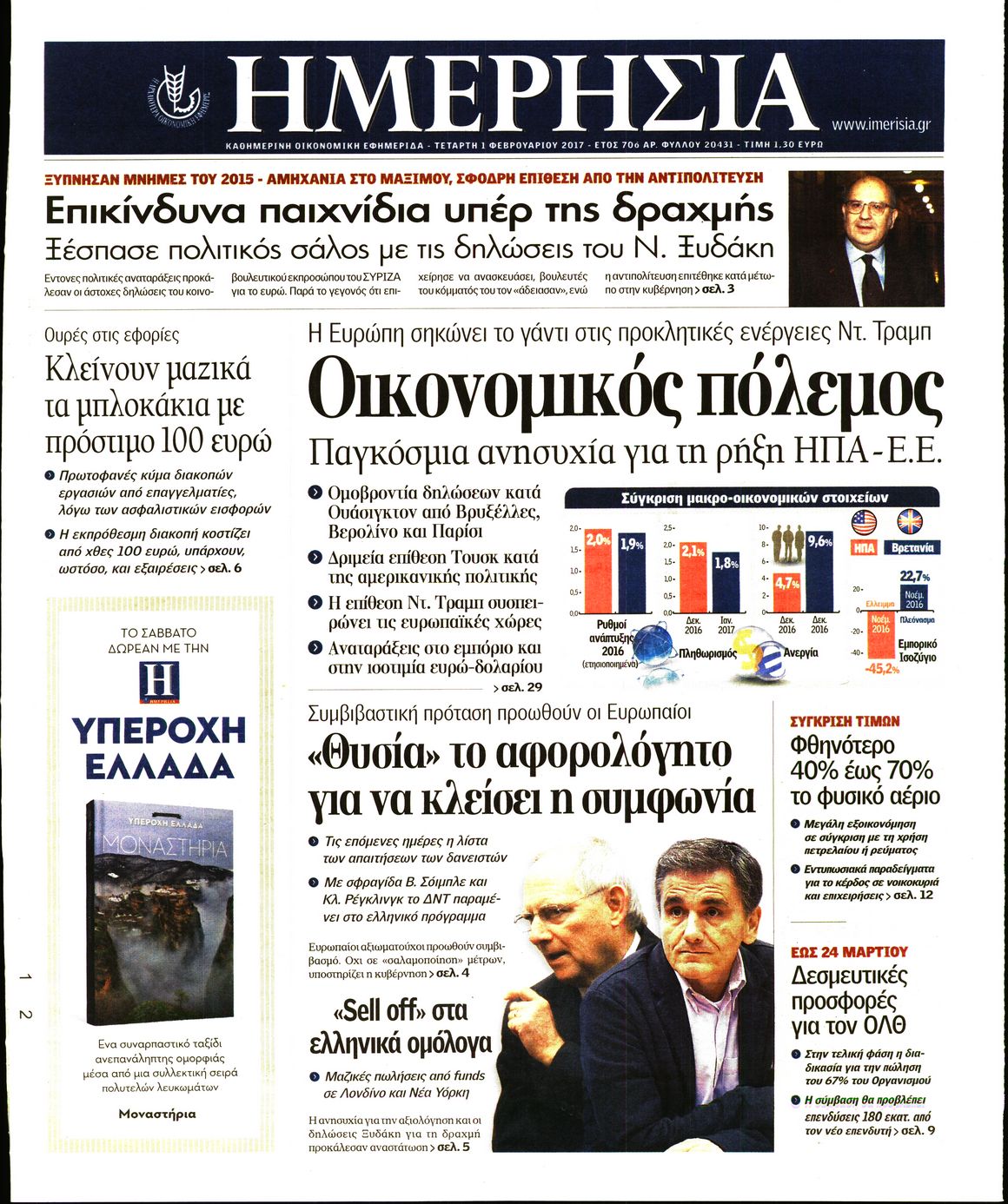 Οι οικονομικές εφημερίδες 1/2/2017 Enikos Newsroom 06:19, Τετάρτη 01 Φεβρουαρίου 2017 Media Διαβάστε τα σημερινά πρωτοσέλιδα των οικονομικών εφημερίδων: ΟΙΚΟΝΟΜΙΚΕΣ ΕΦΗΜΕΡΙΔΕΣ ΠΡΩΤΟΣΕΛΙΔΑ Μοιράσου το: σχολίασε κι εσύ (0 σχόλια) Ακολουθήστε το enikos.gr στο Google News και μάθετε πρώτοι όλες τις ειδήσεις Δείτε όλες τις τελευταίες ειδήσεις από την Ελλάδα και τον Κόσμο στο enikos.gr Ειδήσεις Ροή Ειδήσεων 2 ώρες πριν Νίκος Παππάς: «Είχα λάθος αντίδραση στη δική του δράση-πρόκληση – Δεν θα αναλύσω σε τι κατάσταση ήταν ο δημοσιογράφος» 35 λεπτά πριν Νίκος Γιαννόπουλος για Νίκο Παππά: «Είναι επικίνδυνος, θα του κάνω ασφαλιστικά» – ΒΙΝΤΕΟ 1 ώρα πριν Αλεξανδρούπολη: Πολυοργανική ανεπάρκεια λόγω υποσιτισμού η αιτία θανάτου του 3χρονου αγοριού 2 ώρες πριν Δημοσκόπηση Pulse: Η διαφορά ΝΔ-ΠΑΣΟΚ – Με ποια κριτήρια θα ψηφίσουν οι πολίτες στις επόμενες εκλογές 3 ώρες πριν Συγκλονιστικό βίντεο: Τρόμος για τουρίστες που σώθηκαν την τελευταία στιγμή από λεωφορείο που κατρακυλούσε σε φαράγγι 50 λεπτά πριν Ύπνος: Ειδικός εξηγεί τον πραγματικό λόγο που ξυπνάτε στις 4 τα ξημερώματα – Ο ρόλος των ορμονών και του κιρκάδιου ρυθμού 2 ώρες πριν Αριθμολογία: Οι άνθρωποι που έχουν γεννηθεί αυτές τις 4 ημερομηνίες, είναι τρυφεροί και αγαπούν ανιδιοτελώς 3 ώρες πριν Καθρέφτες μπάνιου: Το απλό κόλπο με την οδοντόκρεμα για να μην θολώνουν 13 ώρες πριν 20 χρόνια τα Χριστούγεννα ξεκινούν στα Public με μεγάλη ποικιλία σε δώρα! 6 λεπτά πριν «Αγριεύουν» οι αγρότες: «Δεν συντρέχει λόγος συνάντησης με τον πρωθυπουργό» – Ώρα αποφάσεων στη σύσκεψη της Πέμπτης 11 λεπτά πριν Χρίστος Αντωνιάδης: «Όποιος δεν έχει κάνει δίδυμα, δεν δικαιούται διά να ομιλεί» 20 λεπτά πριν Ρούτε: Η μεγαλύτερη επιτυχία εξωτερικής πολιτικής του Τραμπ είναι η δέσμευση των χωρών του ΝΑΤΟ για τις αμυντικές δαπάνες 26 λεπτά πριν Το Σπίτι Δίπλα Στο Ποτάμι: Σε κίνδυνο η υγεία του Απόστολου – Τι θα δούμε απόψε 35 λεπτά πριν Νίκος Γιαννόπουλος για Νίκο Παππά: «Είναι επικίνδυνος, θα του κάνω ασφαλιστικά» – ΒΙΝΤΕΟ ENIKOS NETWORK Αϋπνία: Το κόλπο που θα σας βοηθήσει να κοιμηθείτε απόψε – Είναι απλό και έχει αποτέλεσμα 2,6 εκατομμύρια πολίτες έχουν ήδη εμβολιαστεί κατά της γρίπης Χειμερινές εκπτώσεις: Πότε αρχίζουν και τι πρέπει να προσέξουν οι καταναλωτές ΑΑΔΕ: Καταβλήθηκε η τέταρτη δόση επιστροφής ΕΦΚ αγροτικού πετρελαίου – Οδηγίες για τη διόρθωση παραστατικών Χαρτογραφώντας το «σημείο χωρίς επιστροφή»: Για πρώτη φορά αποκαλύπτεται με λεπτομέρεια το ακανθώδες όριο της ατμόσφαιρας τ... Η Google καταργεί τη λειτουργία «dark web report» – Πώς θα μπορούν οι χρήστες να διαγράφουν τα δεδομένα τους περισσότερα 22:24 , Τετάρτη 17 Δεκεμβρίου 2025 Το Σπίτι Δίπλα Στο Ποτάμι: Σε κίνδυνο η υγεία του Απόστολου – Τι θα δούμε απόψε “Το Σπίτι Δίπλα στο Ποτάμι” ξετυλίγει το νήμα της ζωής των πέντε αδελφών με καταισ... 21:14 , Τετάρτη 17 Δεκεμβρίου 2025 Παιχνίδια Εκδίκησης: Θα καταφέρει ο Χρήστος να κλονίσει την εμπιστοσύνη της Μάγιας απέναντι στον Άγη; Τα «Παιχνίδια Εκδίκησης» έρχονται απόψε στις 22:30, στον Αντ1, με το τελευταίο επεισόδιο της χ... 20:57 , Τετάρτη 17 Δεκεμβρίου 2025 Άγιος Έρωτας: Η Χλόη καταθέτει εναντίον του πατέρα της και ο Χάρης αποκαλύπτει στον Κλεάνθη ότι δεν είναι ο βιολογικός του πατέρας. Γεμάτο αποκαλύψεις είναι το νέο επεισόδιο της σειράς “Άγιος Έρωτας” απόψε στις 21:... 20:15 , Τετάρτη 17 Δεκεμβρίου 2025 Η ανακοίνωση της ΕΣΗΕΑ για την επίθεση του Ευρωβουλευτή Νίκου Παππά κατά του δημοσιογ