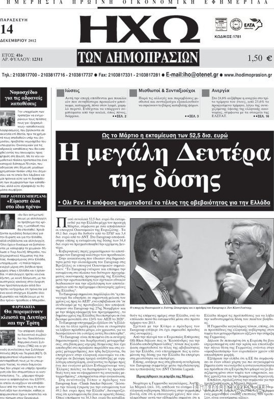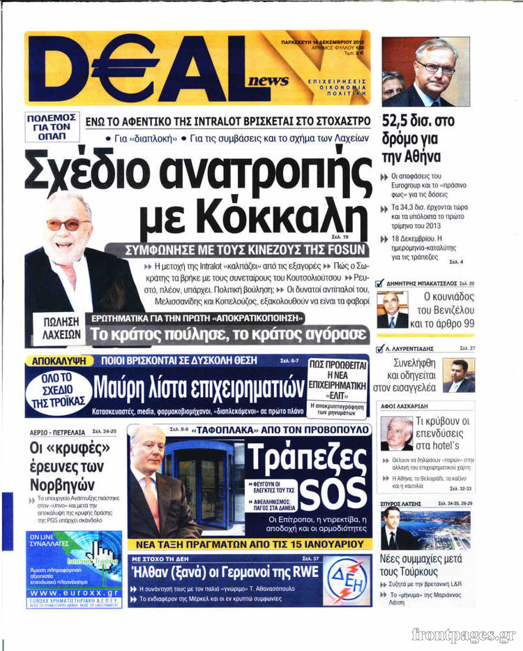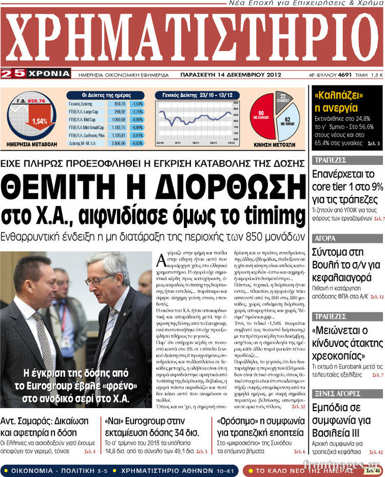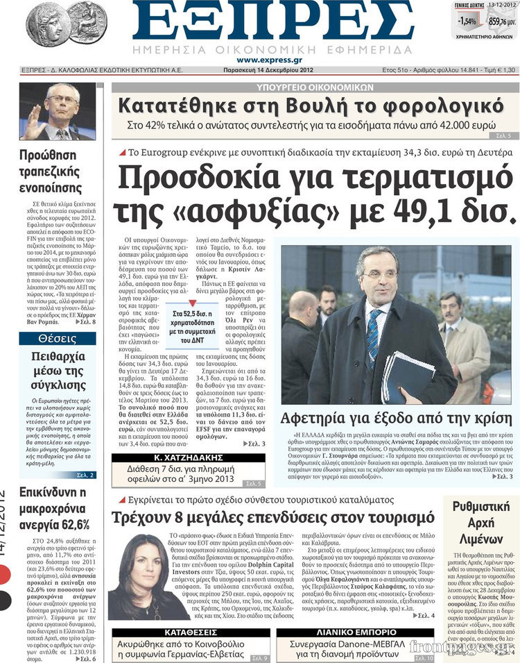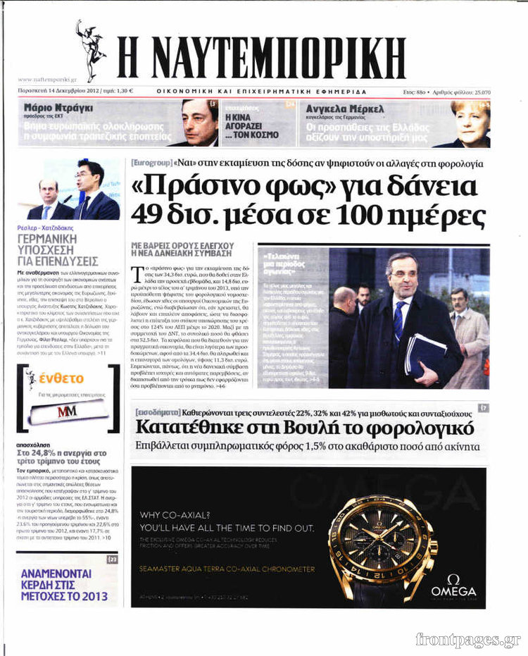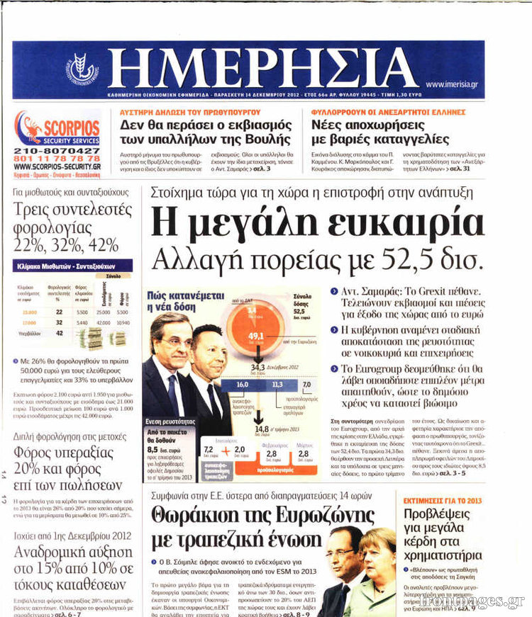 Οι οικονομικές εφημερίδες Enikos Newsroom 09:01, Παρασκευή 14 Δεκεμβρίου 2012 Media Οι οικονομικές εφημερίδες ΕΦΗΜΕΡΙΔΕΣ ΟΙΚΟΝΟΜΙΚΑ ΘΕΜΑΤΑ ΟΙΚΟΝΟΜΙΚΕΣ ΕΦΗΜΕΡΙΔΕΣ ΠΡΩΤΟΣΕΛΙΔΑ Μοιράσου το: σχολίασε κι εσύ (0 σχόλια) Ακολουθήστε το enikos.gr στο Google News και μάθετε πρώτοι όλες τις ειδήσεις Δείτε όλες τις τελευταίες ειδήσεις από την Ελλάδα και τον Κόσμο στο enikos.gr Ειδήσεις Ροή Ειδήσεων 50 λεπτά πριν Βουλή: Κατατέθηκε το νομοσχέδιο για την αναδιάρθρωση των Ενόπλων Δυνάμεων – Όλα όσα προβλέπει 14 λεπτά πριν Παύλος Μαρινάκης: Στις 15:00 οι ανακοινώσεις Τσιάρα για τα αιτήματα των αγροτών – «Δεν γίνεται διάλογος με ταχυδρομικά περιστέρια» 2 ώρες πριν Σίδνεϊ: Τα ονόματα των θυμάτων από την τρομοκρατική επίθεση – Η 10χρονη Ματίλντα και ο επιζών του Ολοκαυτώματος που έσωσε τη γυναίκα του 3 ώρες πριν Η διαδρομή του σκάφους με την τεράστια ποσότητα κοκαΐνης που κατασχέθηκε στο λιμάνι του Πειραιά – Συνελήφθη και γνωστός «βαρώνος» 3 ώρες πριν Δείτε LIVE το συνέδριο «Ελληνικός Τουρισμός, Μια Εθνική Υπόθεση!» 1 ώρα πριν Μακροζωία: 55χρονος που ισχυρίζεται ότι βιολογικά είναι 20 ετών μοιράζεται μια απλή συμβουλή για υγιή εγκέφαλο 4 ώρες πριν Τα 3 ζώδια που μπαίνουν σε μια νέα δυναμική εποχή – «Είστε έτοιμοι για όλα» 3 ώρες πριν Οι 8 φράσεις που δίνουν αμέσως την εντύπωση πως είστε δύσκολος άνθρωπος 4 ώρες πριν Κληρονόμησε 2,8 εκατ. ευρώ και φοβάται ότι οι άνδρες θα την πλησιάζουν για τα λεφτά – «Μήπως καλύτερα να το κρατήσω μυστικό;» 4 λεπτά πριν Εισαγγελέας στη δίκη της Χρυσής Αυγής: Οι επιθέσεις σε μετανάστες δεν ήταν τυχαία περιστατικά – Βασίζονταν στο μίσος απέναντι σε όσους χαρακτήριζαν «υπανθρώπους» 8 λεπτά πριν Κρεμλίνο: Η μη ένταξη της Ουκρανίας στο ΝΑΤΟ αποτελεί έναν από τους «ακρογωνιαίους λίθους» των συνομιλιών 14 λεπτά πριν Παύλος Μαρινάκης: Στις 15:00 οι ανακοινώσεις Τσιάρα για τα αιτήματα των αγροτών – «Δεν γίνεται διάλογος με ταχυδρομικά περιστέρια» 19 λεπτά πριν Συνέδριο «Ελληνικός Τουρισμός 2025, Μια εθνική υπόθεση!» – Πώς χτίζεται το τουριστικό προϊόν του αύριο 24 λεπτά πριν Ρωσία: Το συγκρότημα «Pussy Riot» χαρακτηρίστηκε εξτρεμιστική οργάνωση από δικαστήριο ENIKOS NETWORK Νέα φάρμακα για την παχυσαρκία: Υπάρχει κίνδυνος καρκίνου; Αρτηριακή πλάκα: Ειδικός στη μακροζωία εξηγεί πώς μπορεί να αντιστραφεί μέσα σε 12 μήνες Συνολικά 150 μόνιμες προσλήψεις στην ΕΑΒ: Ποιοι μπορούν να υποβάλουν αίτηση και μέχρι πότε Δημόσιο: Έρχεται ρύθμιση-ανάσα για εκατομμύρια οφειλέτες Σύγχρονος Νοστράδαμος: Προειδοποιεί για «μεγάλο γεγονός» τους επόμενους μήνες που θα συγκλονίσει τη Βρετανία και τον κόσμο Τεστ παρατηρητικότητας: Μπορείτε να βρείτε τις 3 διαφορές στις εικόνες με έναν πιγκουίνο σε 14 δευτερόλεπτα περισσότερα 13:12 , Δευτέρα 15 Δεκεμβρίου 2025 Συνέδριο «Ελληνικός Τουρισμός 2025, Μια εθνική υπόθεση!» – Πώς χτίζεται το τουριστικό προϊόν του αύριο Τον καθοριστικό ρόλο των επενδύσεων, των στρατηγικών υποδομών και της ανάπτυξης του θεματικού ... 12:27 , Δευτέρα 15 Δεκεμβρίου 2025 Συνέδριο «Ελληνικός Τουρισμός 2025, Μια εθνική υπόθεση!» – Όλγα Κεφαλογιάννη: Στα 23,5 δισ. ευρώ τα τουριστικά έσοδα για το 2025 Τον πήχη στα 23,5 δισ. ευρώ σε ό,τι αφορά τις ταξιδιωτικές εισπράξεις για το 2025 έθεσε η υπου... 11:59 , Δευτέρα 15 Δεκεμβρίου 2025 Γιατί καθυστερεί η πρεμιέρα του «Survivor» – Το παρασκήνιο Μετατίθεται για αργότερα η πρεμιέρα του «Survivor» στην prime time του ΣΚΑΪ, κλείνοντας τη χρο... 11:58 , Δευτέρα 15 Δεκεμβρίου 2025 Συνέδριο «Ελλην
