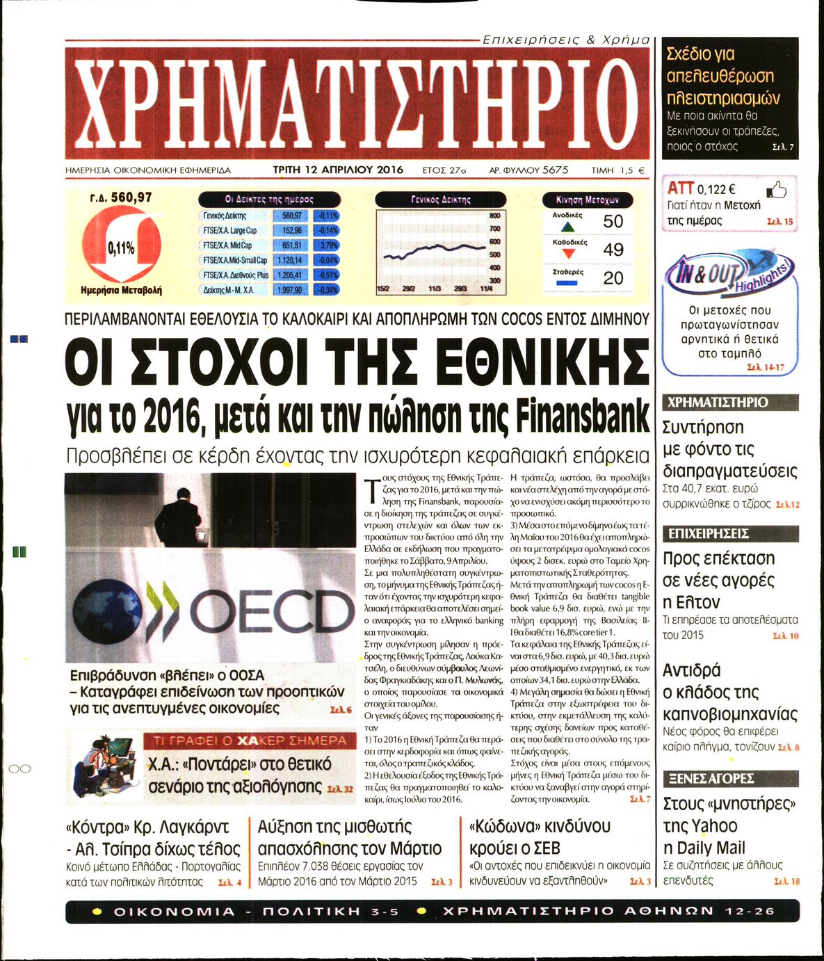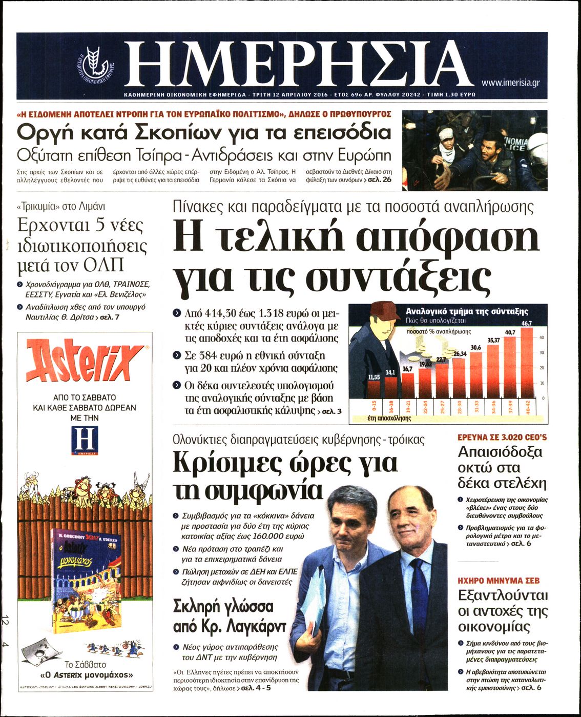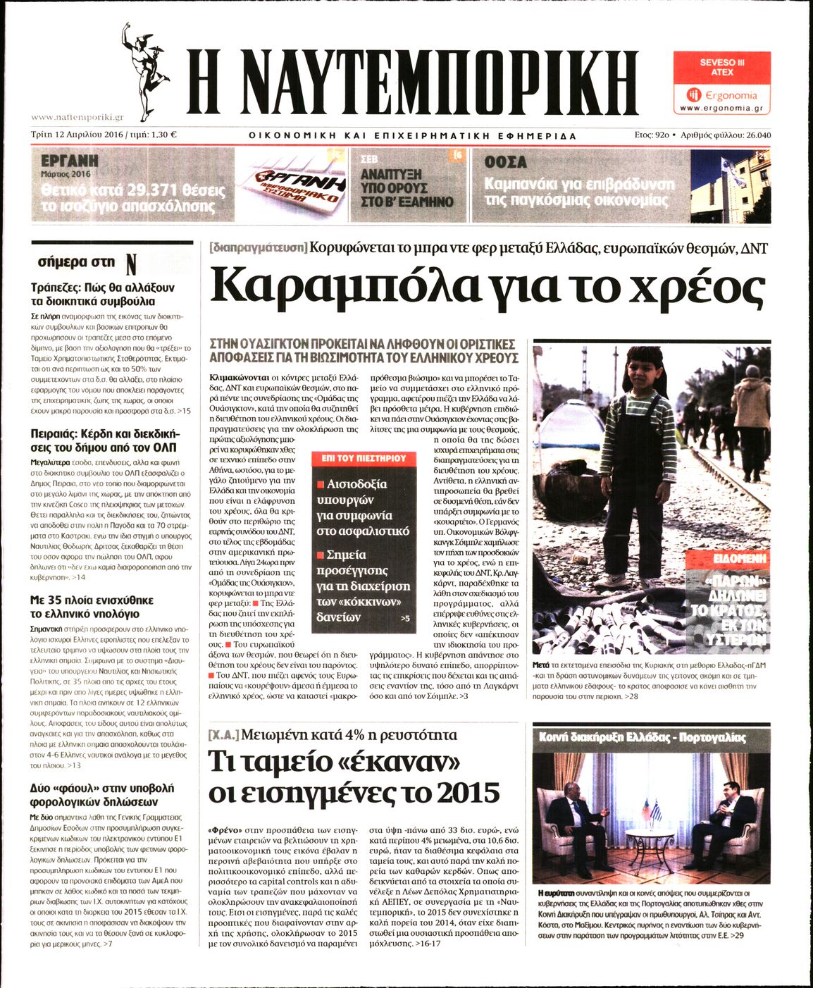 Οι οικονομικές εφημερίδες 12/4/2016 Enikos Newsroom 05:17, Τρίτη 12 Απριλίου 2016 Media Διαβάστε τα σημερινά πρωτοσέλιδα των οικονομικών εφημερίδων: ΟΙΚΟΝΟΜΙΚΕΣ ΕΦΗΜΕΡΙΔΕΣ ΠΡΩΤΟΣΕΛΙΔΑ Μοιράσου το: σχολίασε κι εσύ (0 σχόλια) Ακολουθήστε το enikos.gr στο Google News και μάθετε πρώτοι όλες τις ειδήσεις Δείτε όλες τις τελευταίες ειδήσεις από την Ελλάδα και τον Κόσμο στο enikos.gr Ειδήσεις Ροή Ειδήσεων 27 λεπτά πριν Την πρώτη Belharra παρέλαβε η χώρα μας, υψώθηκε η ελληνική σημαία στη φρεγάτα «Κίμων» – Δένδιας: «Το ισχυρότερο Πολεμικό Ναυτικό που είχε ποτέ ο ελληνισμός» 3 ώρες πριν Γιώργος Μαζωνάκης: «Δεν ζήτησα χρήματα, παρά μόνο ηθική δικαίωση» – Οι πρώτες δηλώσεις του 21χρονου μετά την κατάθεση της μήνυσης 2 ώρες πριν Δίκη Βαλυράκη: Καταθέτει ο βασικός αυτόπτης μάρτυρας – «Δέχτηκα πιέσεις να μη μιλήσω, πήγα να ψωνίσω και αυτοκίνητο με χτύπησε στο πόδι» 2 ώρες πριν Ώρα αποφάσεων για τους αγρότες – Ξεκίνησε η πανελλαδική σύσκεψη μπλόκων στις Σέρρες – ΦΩΤΟ 6 ώρες πριν Συναγερμός και στην Ελλάδα για τη «σούπερ γρίπη»: Πόσο σοβαρή είναι και ποιοι θεωρούνται πιο ευάλωτοι – 3 ειδικοί μιλούν στο enikos.gr 52 λεπτά πριν Τα 5 ζώδια που θα ευνοηθούν στα οικονομικά τους το 2026 – «Τραβούν το χρήμα σαν μαγνήτες» 6 ώρες πριν Αν κάνετε συνεχώς αυτά τα 8 πράγματα με τα κατοικίδιά σας, σας λείπει η ανθρώπινη επαφή 2 ώρες πριν Αυτό που κρύβεται κάτω από τη Γροιλανδία θα μπορούσε να ανατρέψει όσα γνωρίζουμε για την άνοδο της στάθμης των θαλασσών 1 ημέρα πριν 20 χρόνια τα Χριστούγεννα ξεκινούν στα Public με μεγάλη ποικιλία σε δώρα! 2 λεπτά πριν Να μ’ αγαπάς: Ζωή και Φωτεινή συμφιλιώνονται ως μάνα με κόρη, απόψε στις 20:00 7 λεπτά πριν Εξώδικο Γεωργιάδη στην Κωνσταντοπούλου – «Με κατηγόρησε ότι έχω καταδικαστεί για παιδεραστία» 12 λεπτά πριν Εξεταστική για ΟΠΕΚΕΠΕ – Μπρατάκος: «Δεν μου τέθηκε ζήτημα για πιέσεις από τον κ. Αυγενάκη ή οποιονδήποτε» – Τι είπε για τον Σημανδράκο 13 λεπτά πριν ΤΕΧΑΝ: 1ο Πανελλήνιο Σχολικό Πρωτάθλημα Ανακύκλωσης Δευτεροβάθμιας Εκπαίδευσης 17 λεπτά πριν Τραυματίστηκε 5χρονο παιδί σε νηπιαγωγείο στο Αγρίνιο – Χτυπήθηκε από αντικείμενο που έπεσε από έπιπλο ENIKOS NETWORK 100 χρόνια ΠΙΣ: Ένας αιώνας προσφοράς στην Ιατρική και την κοινωνία Ένα ποτήρι την ημέρα από αυτόν τον χυμό μειώνει τη χοληστερίνη, τη φλεγμονή και την πίεση Κρατική επιχορήγηση έως 14.500 ευρώ: Ποιοι θα λάβουν από σήμερα την προκαταβολή στον τραπεζικό λογαριασμό τους Αυτόματη απόδοση ΦΠΑ: Τα δύο σενάρια που επεξεργάζεται η ΑΑΔΕ Χαρτογραφώντας το «σημείο χωρίς επιστροφή»: Για πρώτη φορά αποκαλύπτεται με λεπτομέρεια το ακανθώδες όριο της ατμόσφαιρας τ... Η Google καταργεί τη λειτουργία «dark web report» – Πώς θα μπορούν οι χρήστες να διαγράφουν τα δεδομένα τους περισσότερα 16:50 , Πέμπτη 18 Δεκεμβρίου 2025 Να μ’ αγαπάς: Ζωή και Φωτεινή συμφιλιώνονται ως μάνα με κόρη, απόψε στις 20:00 Η ταυτότητα του Άγγελου αποκαλύπτεται στο νέο επεισόδιο της σειράς “Να μ’ αγαπάς... 15:52 , Πέμπτη 18 Δεκεμβρίου 2025 Το Σπίτι Δίπλα Στο Ποτάμι: Το καθηλωτικό τελευταίο επεισόδιο για το 2025 απόψε στις 22:30 Καθηλώνει το σημερινό επεισόδιο της σειράς “Το Σπίτι Δίπλα Στο Ποτάμι” που έρχεται... 15:20 , Πέμπτη 18 Δεκεμβρίου 2025 Άγιος έρωτας – Η Ελευθερία Αρβανιτάκη τραγουδά και ο Γιάννης Τσορτέκης καθηλώνει με τον χορό του Ο Κλεάνθης χορεύει στους ήχους της Ελευθερίας Αρβανιτάκη στη σειρά “Άγιος Έρωτας“.... 08:00 , Πέμπτη 18 Δεκεμβρίου 2025 Την Κυριακή με τη Realnews: Δωροεπιταγή 10€ Δωροεπιταγή 