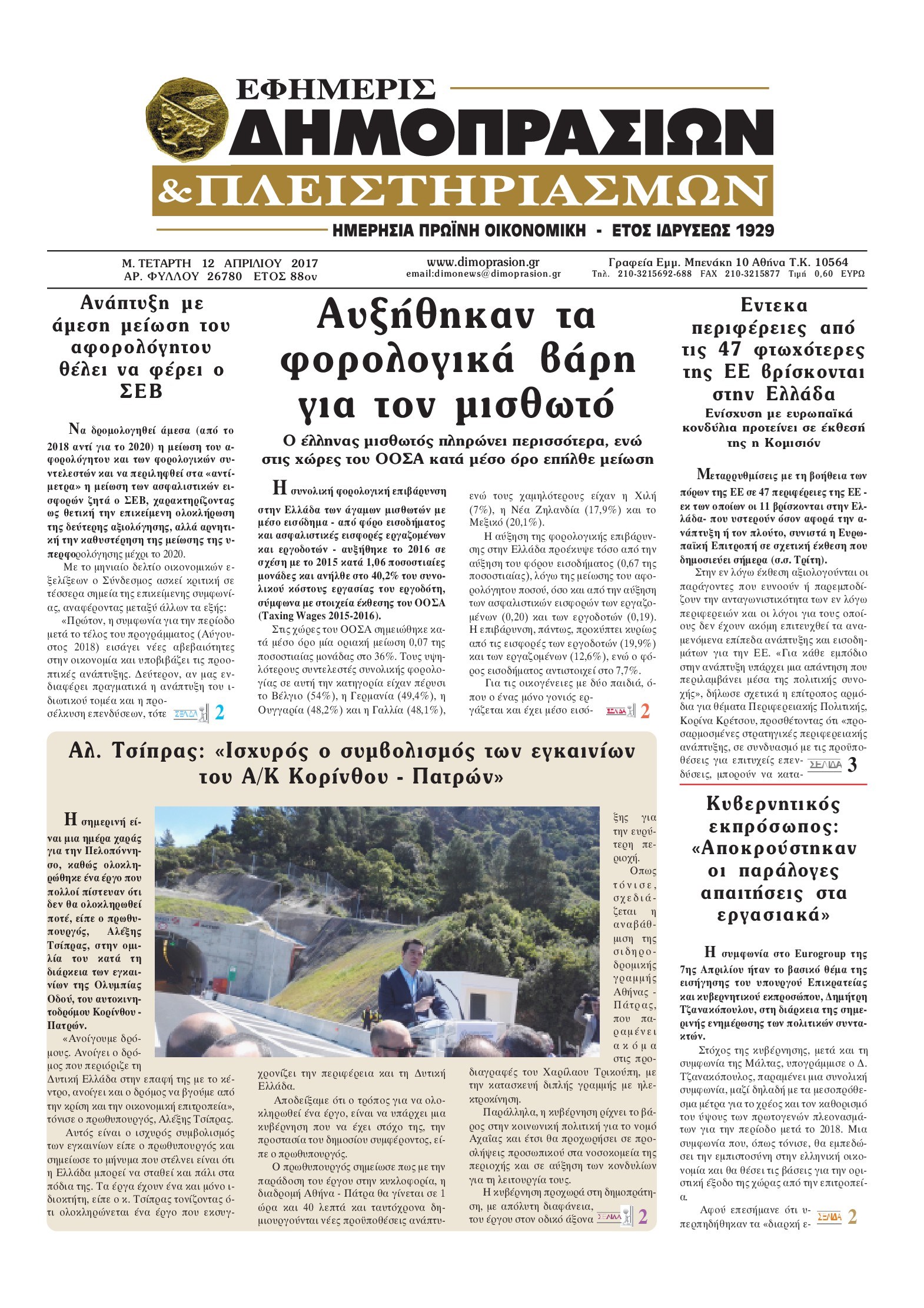 Διαβάστε τα σημερινά πρωτοσέλιδα των οικονομικών εφημερίδων:
