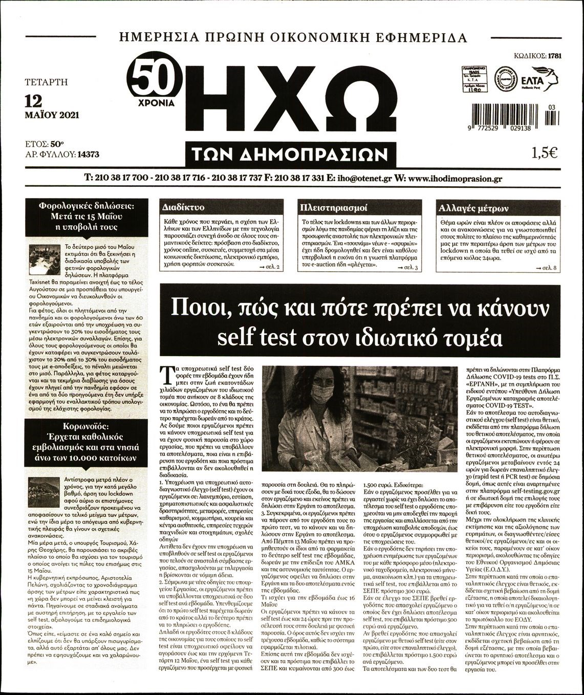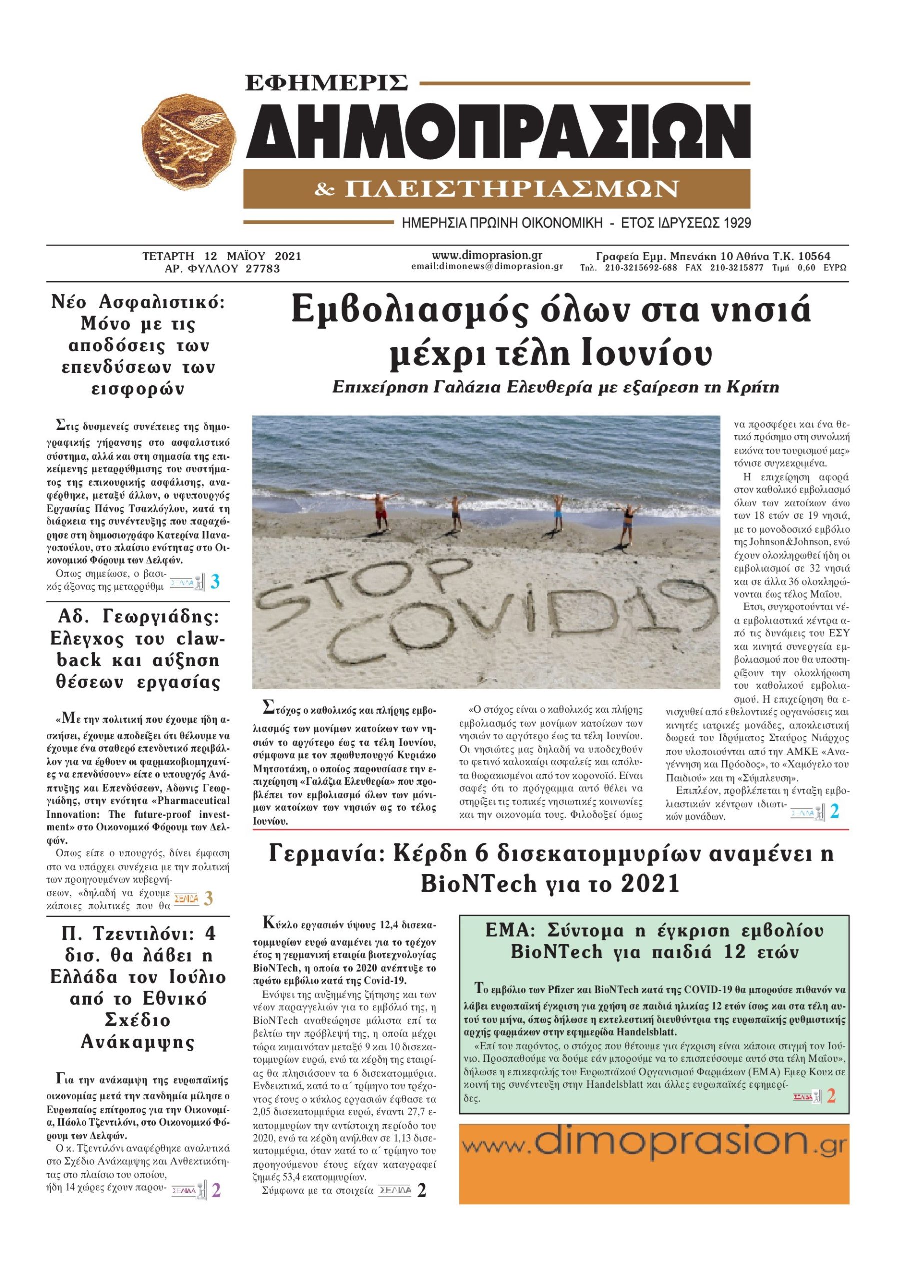 Οι οικονομικές εφημερίδες 12/5/2021 Διονύσης Νίκκας 06:50, Τετάρτη 12 Μαΐου 2021 Media Διαβάστε τα πρωτοσέλιδα των οικονομικών εφημερίδων… ΟΙΚΟΝΟΜΙΚΕΣ ΕΦΗΜΕΡΙΔΕΣ Μοιράσου το: σχολίασε κι εσύ (0 σχόλια) Ακολουθήστε το enikos.gr στο Google News και μάθετε πρώτοι όλες τις ειδήσεις Δείτε όλες τις τελευταίες ειδήσεις από την Ελλάδα και τον Κόσμο στο enikos.gr Ειδήσεις Ροή Ειδήσεων 1 ώρα πριν Ευρωπαϊκή Ένωση: Συμφωνία για δάνειο 90 δισ. ευρώ στην Ουκρανία τη διετία 2026-2027 6 ώρες πριν ΟΠΕΚΕΠΕ: Προφυλακιστέος ο φερόμενος αρχηγός και ο λογιστής της εγκληματικής οργάνωσης 7 ώρες πριν Αυξάνουν την πίεση προς την κυβέρνηση οι αγρότες: Κλείνουν παρακαμπτήριους και ανοίγουν διόδια – Τι θα γίνει τις γιορτές 7 ώρες πριν Φοινικούντα: Το Σάββατο απολογείται ο 30χρονος γιος γνωστού επιχειρηματία της Πλάκας που παραδόθηκε – Όσα είπε στους αστυνομικούς και ο ρόλος του στο έγκλημα 5 ώρες πριν ΑΕΚ – Κραϊόβα 3-2: Επική ανατροπή και πρόκριση στους «16» του Conference League η Ένωση 6 ώρες πριν Αρχαιολόγοι ανακάλυψαν ρωμαϊκά τεχνουργήματα από μια πόλη που δεν υπήρξε ποτέ – Τα τρία εντυπωσιακά κτίρια και ο αμφορέας με τις… σαρδέλες 7 ώρες πριν Ύπνος: Η απλή βραδινή ρουτίνα για να προστατεύσετε τα μαλλιά σας από το κρύο κατά τη διάρκεια του χειμώνα 8 ώρες πριν Manifesting: Πώς να συναντήσετε τον σύντροφο της ζωής σας, ανάλογα με τον μήνα γέννησής σας 2 ημέρες πριν 20 χρόνια τα Χριστούγεννα ξεκινούν στα Public με μεγάλη ποικιλία σε δώρα! 5 λεπτά πριν Εφημερεύοντα φαρμακεία σε Αθήνα και Θεσσαλονίκη (19/12) 11 λεπτά πριν Η TikTok στις ΗΠΑ πωλείται σε Oracle, Silver Lake και MGX – Οι λεπτομέρειες του «deal» 20 λεπτά πριν Αλεξάντερ Λουκασένκο: Η Λευκορωσία βρίσκεται κοντά στην αποκατάσταση των σχέσεών της με τις ΗΠΑ 35 λεπτά πριν Αυστραλία: Κήρυξε την Κυριακή (21/12) ημέρα εθνικού πένθους για τη φονική επίθεση στην παραλία Μπόνταϊ 45 λεπτά πριν Ρόδος: Δάσκαλος καράτε καταδικάστηκε για ασέλγεια σε ανήλικες αθλήτριες – Μαρτυρίες για αγγίγματα σε ευαίσθητα σημεία ENIKOS NETWORK Σε περίοδο αυξημένης δραστηριότητας η γρίπη στην Ελλάδα-Μέτρα προστασίας από τον ΕΟΔΥ Σκέφτεστε συνέχεια συζητήσεις που έχετε κάνει; Τι σημαίνει αυτό, σύμφωνα με ειδικό Στεγαστικό: Τι λέει η ΠΟΜΙΔΑ για τα νέα μέτρα που ανακοίνωσε ο Κυριάκος Μητσοτάκης Λαγκάρντ: Αισιόδοξη για την ανάπτυξη της Ευρωζώνης, αβέβαιη για τον πληθωρισμό Χαρτογραφώντας το «σημείο χωρίς επιστροφή»: Για πρώτη φορά αποκαλύπτεται με λεπτομέρεια το ακανθώδες όριο της ατμόσφαιρας τ... Η Google καταργεί τη λειτουργία «dark web report» – Πώς θα μπορούν οι χρήστες να διαγράφουν τα δεδομένα τους περισσότερα 02:50 , Παρασκευή 19 Δεκεμβρίου 2025 GNTM: «Κλείδωσαν» οι τέσσερις φιναλίστ – Μεγάλη ανατροπή στις τελευταίες αποχωρήσεις Για προτελευταία φορά εμφανίστηκαν στο πλατό του GNTM οι φιναλίστ του φετινού κύκλου, το βράδυ... 17:45 , Πέμπτη 18 Δεκεμβρίου 2025 ROUK ZOUK: Εορταστικό επεισόδιο με καλεσμένους τους πρωταγωνιστές του «Γιατί ρε πατέρα» Το Σάββατο 20 Δεκεμβρίου στις 21:00, η Ζέτα Μακρυπούλια υποδέχεται εκλεκτούς ηθοποιούς που όλο... 17:20 , Πέμπτη 18 Δεκεμβρίου 2025 Άγιος έρωτας: Η Χριστίνα εξομολογείται στον πατέρα Νικόλαο, απόψε στις 21:00 στον Alpha Η Νότα αποφασίζει να εκδικηθεί τον Πέτρο και τον Στέφανο, για χάρη του Λούη, όμως τα πράγματα ... 16:50 , Πέμπτη 18 Δεκεμβρίου 2025 Να μ’ αγαπάς: Ζωή και Φωτεινή συμφιλιώνονται ως μάνα με κόρη, απόψε στις 20:00 Η ταυτότητα του Άγγελου αποκαλύπτεται στο νέο επεισόδιο της σειράς “Να μ’ αγαπάς... ΤΕΛΕΥΤΑΙΕΣ ΕΙΔ
